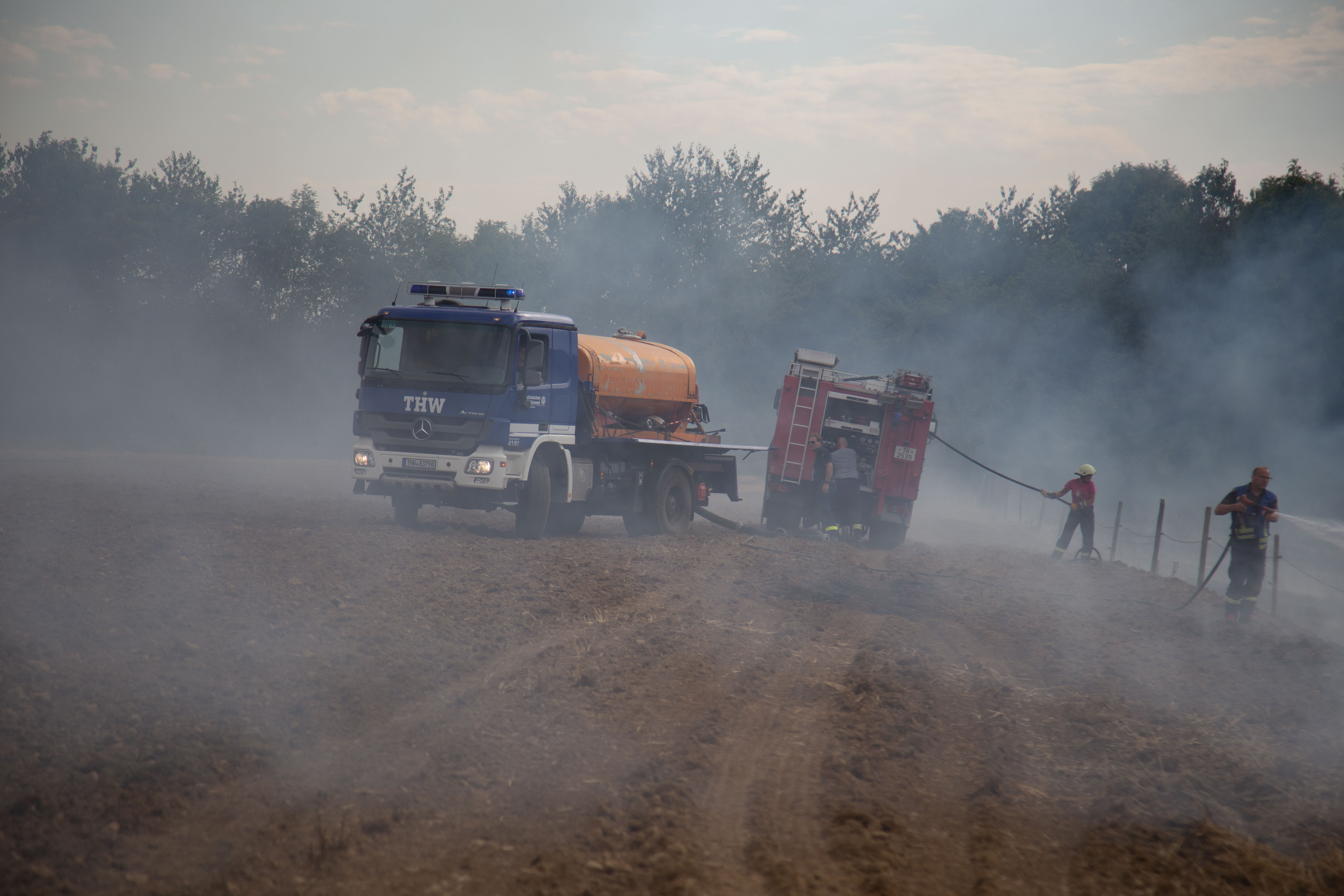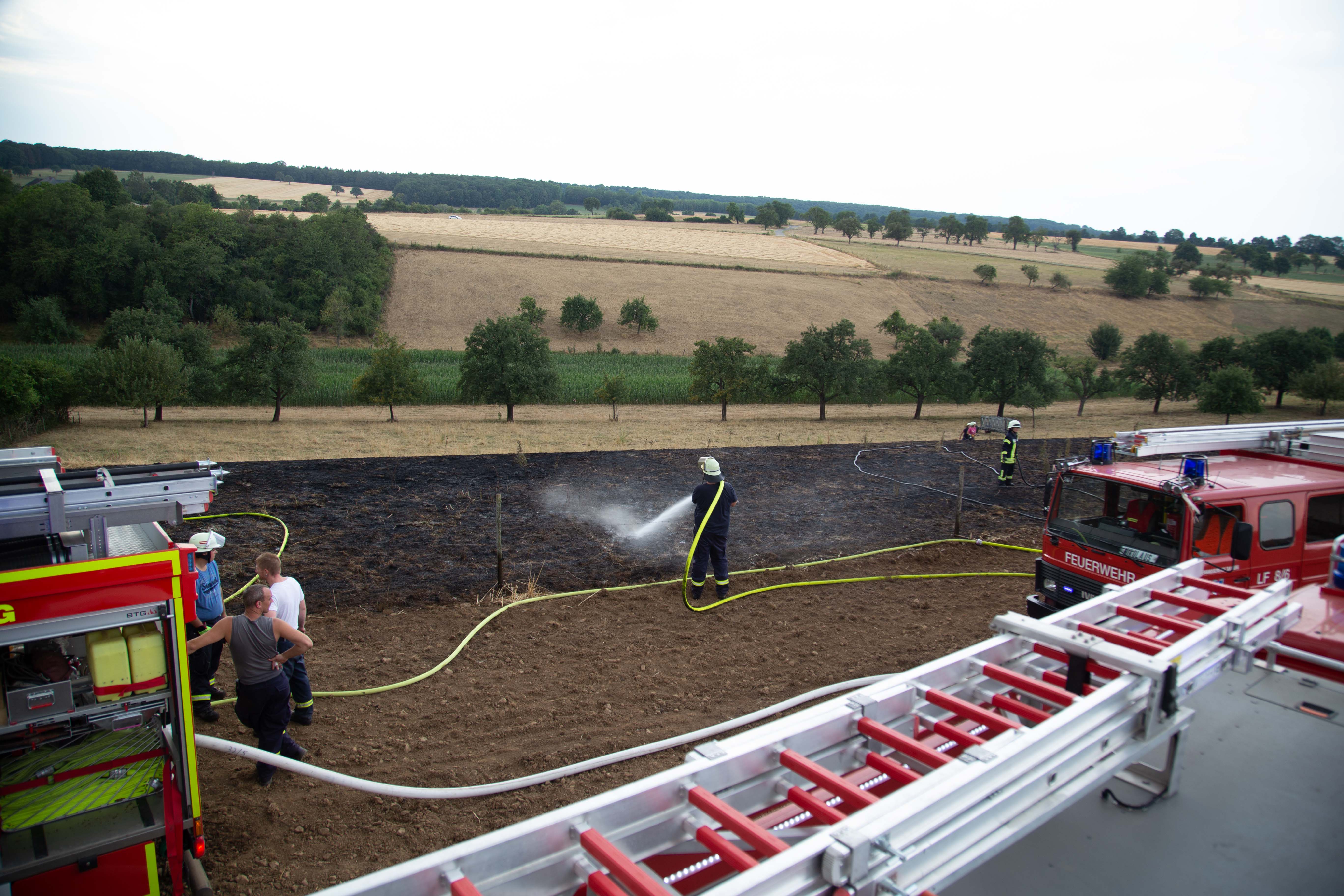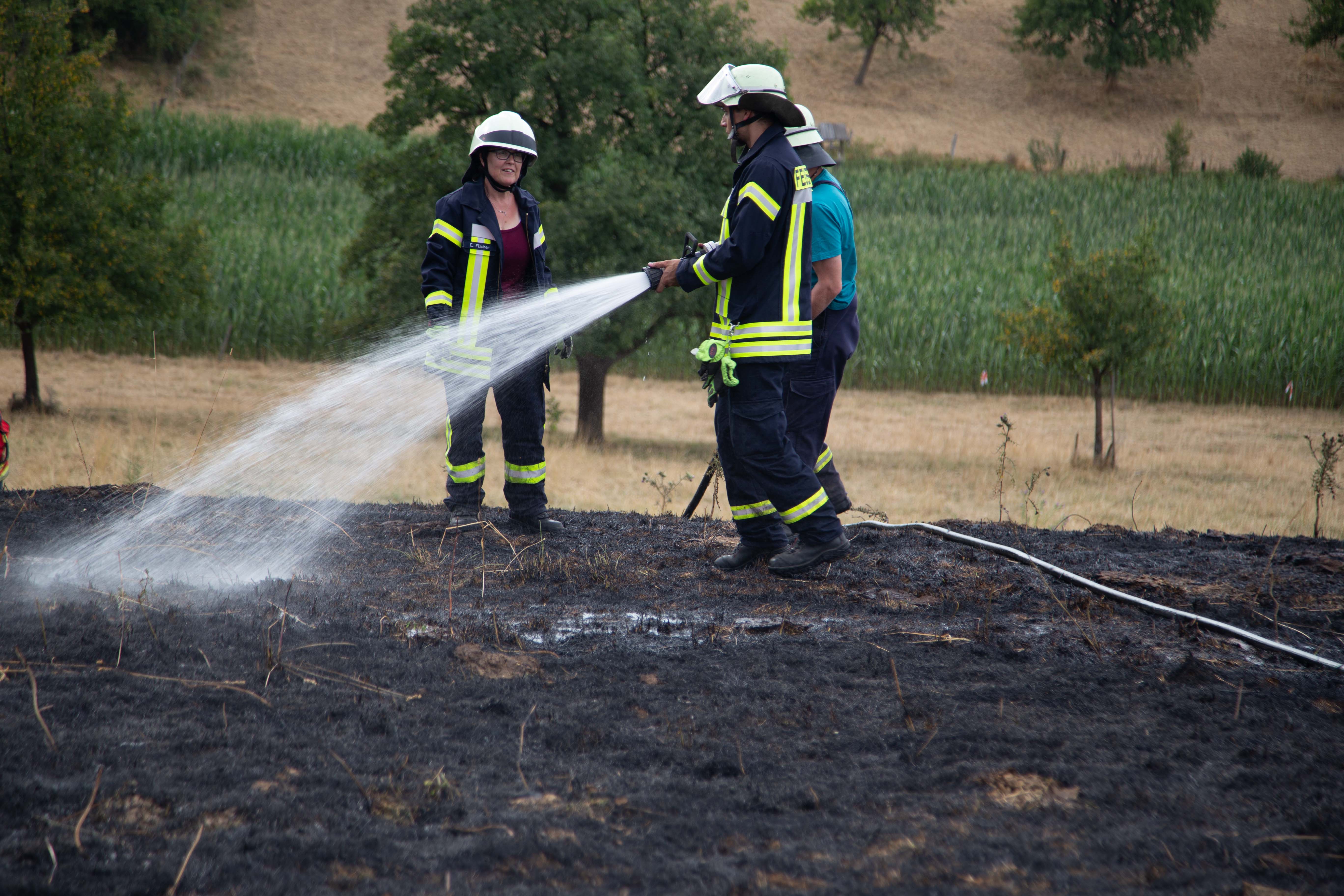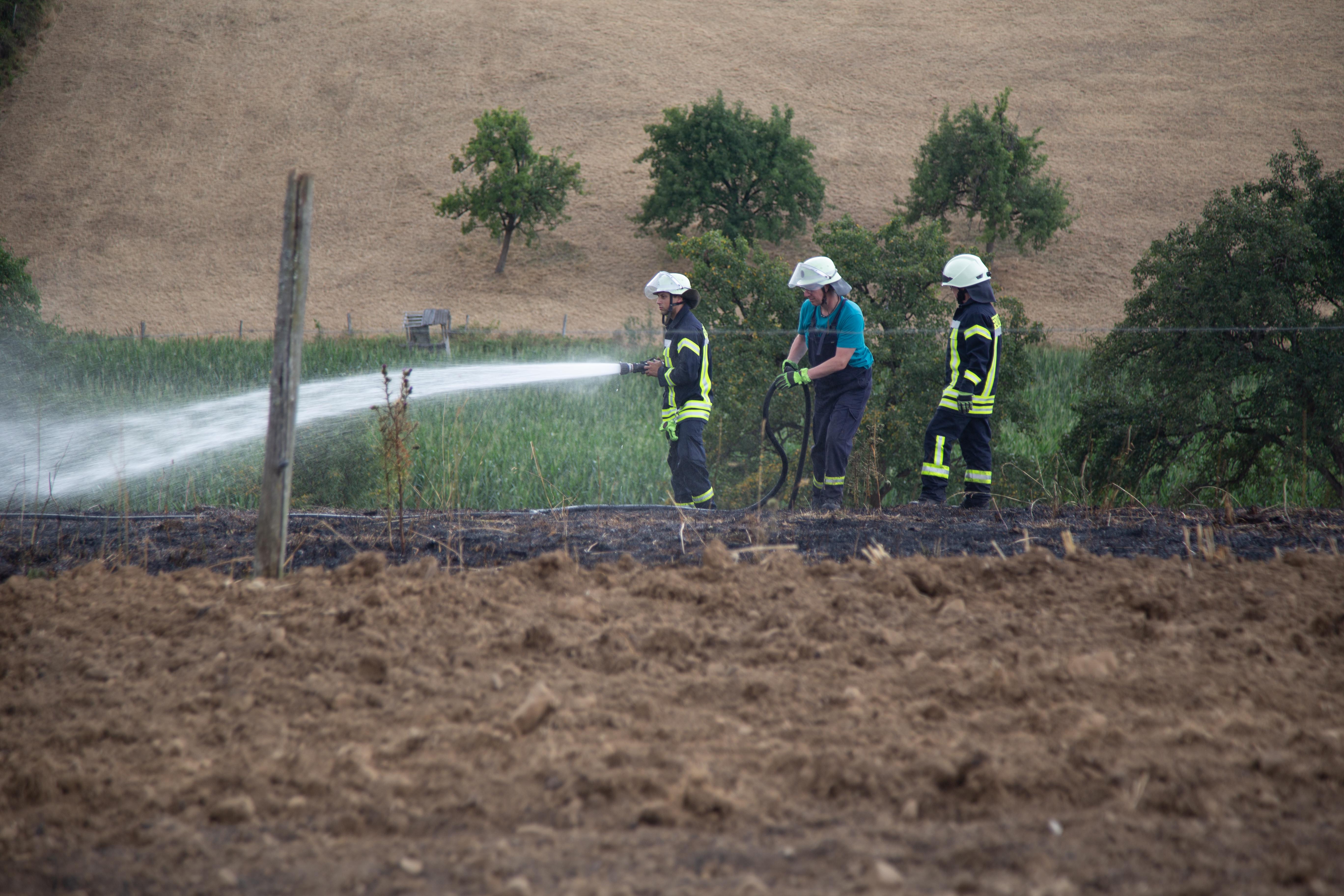 Noch vor eintreffen der Feuerwehr konnten die Landwirte mit Traktoren die Brandfläche eingrenzen und somit ein Übergreifen der Flammen auf andere Felder und ein Waldstück verhindern. Hierzu wurden die Außenränder des Feldes umgepflügt.