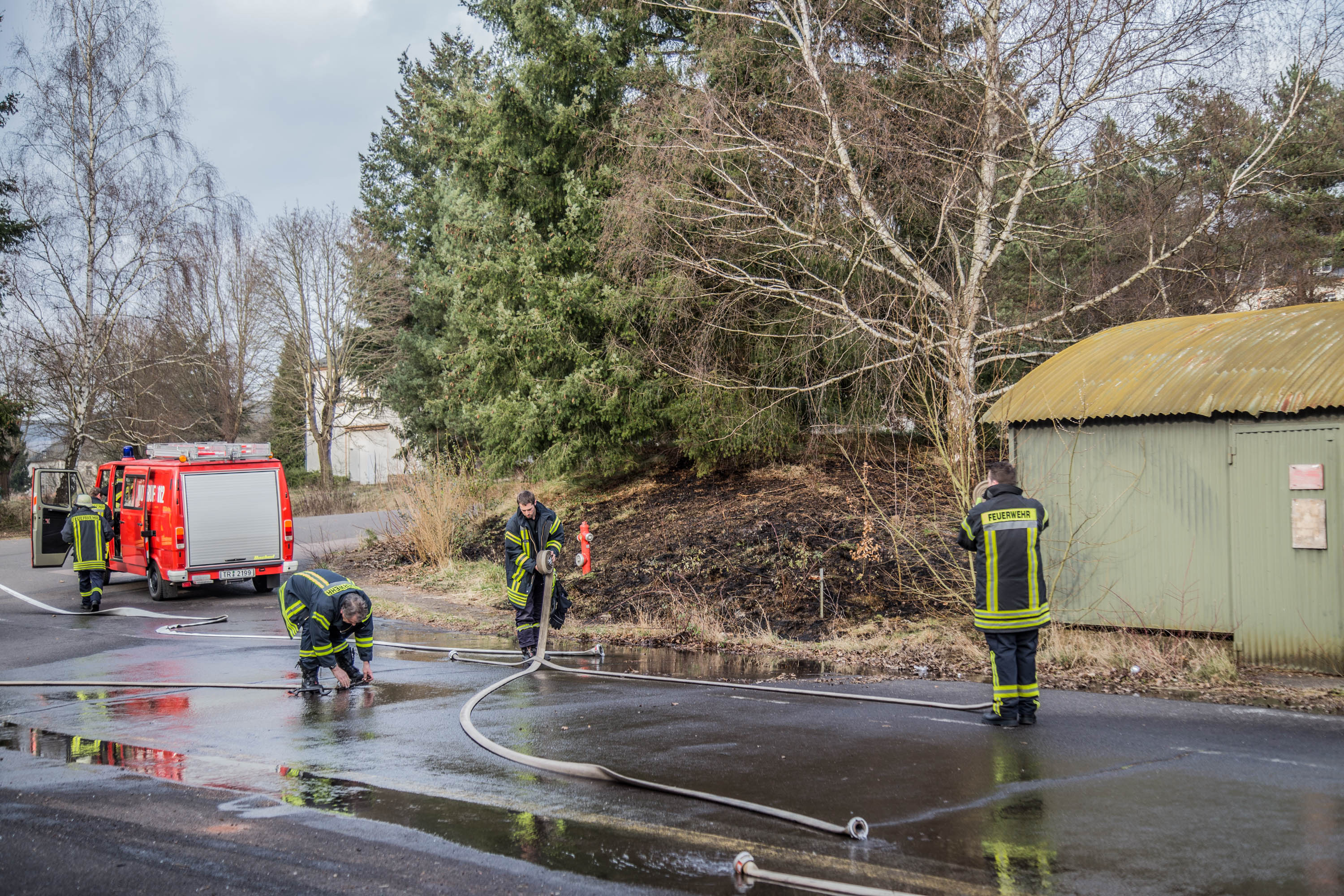 Der Leitstelle wurde dort ein Flächenbrand gemeldet. Vor Ort brannten rund 20 m² trockenes Gras zwischen den alten Militärgebäuden. Schäden an Gebäuden entstanden keine, Personen kamen nicht zu Schaden.