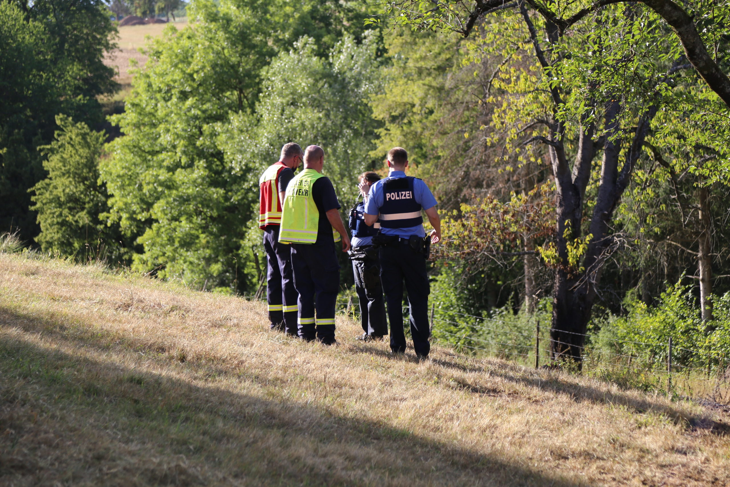 Anwohner haben bereits vor eintreffen der Feuerwehr den Brand eindämmen können. Die Feuerwehr hatte den Brand anschließend schnell unter Kontrolle und konnte ein Übergreifen der Flammen auf den angrenzenden Wald verhindern. Nachfolgende Kräfte konnten die Anfahrt daraufhin abbrechen.