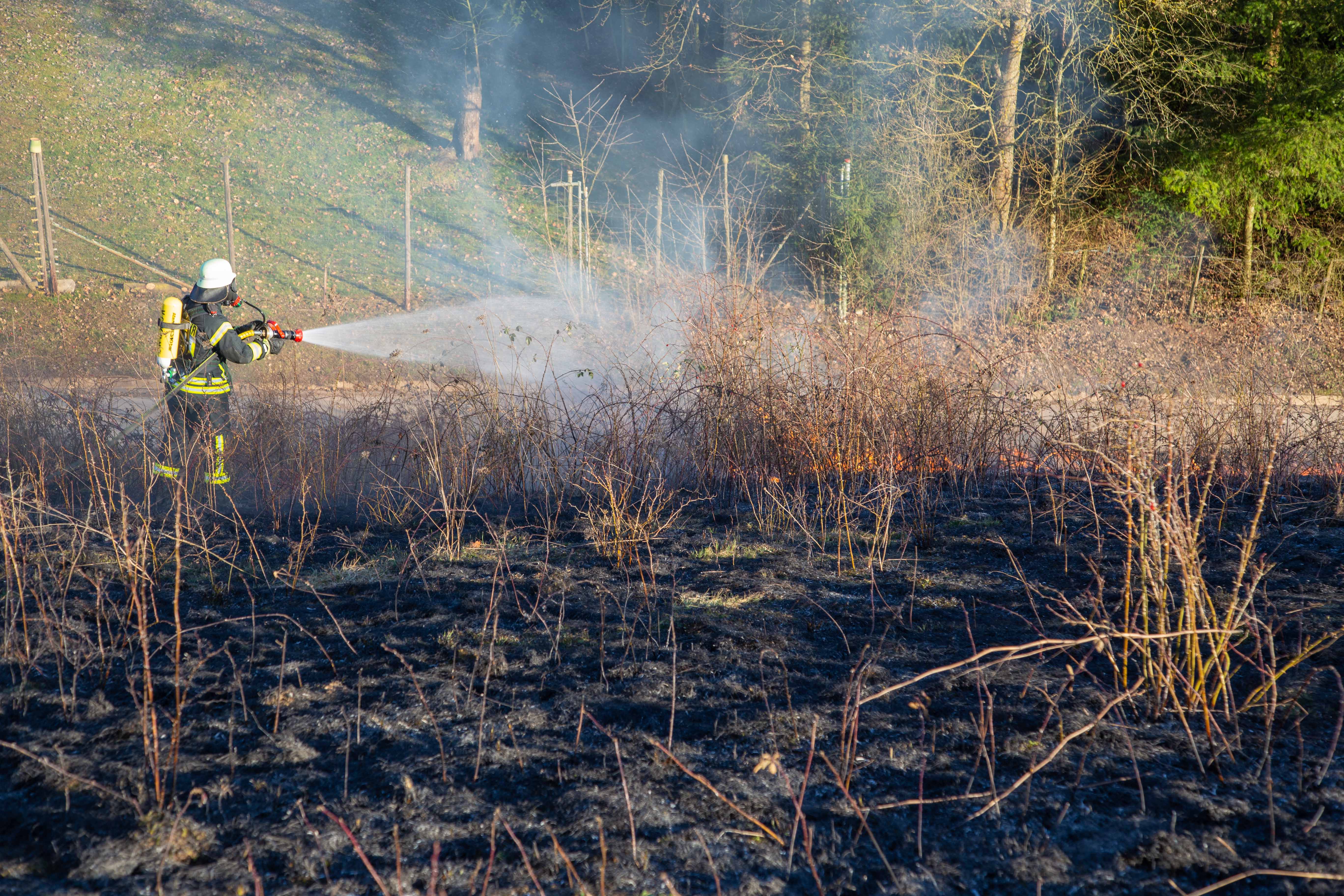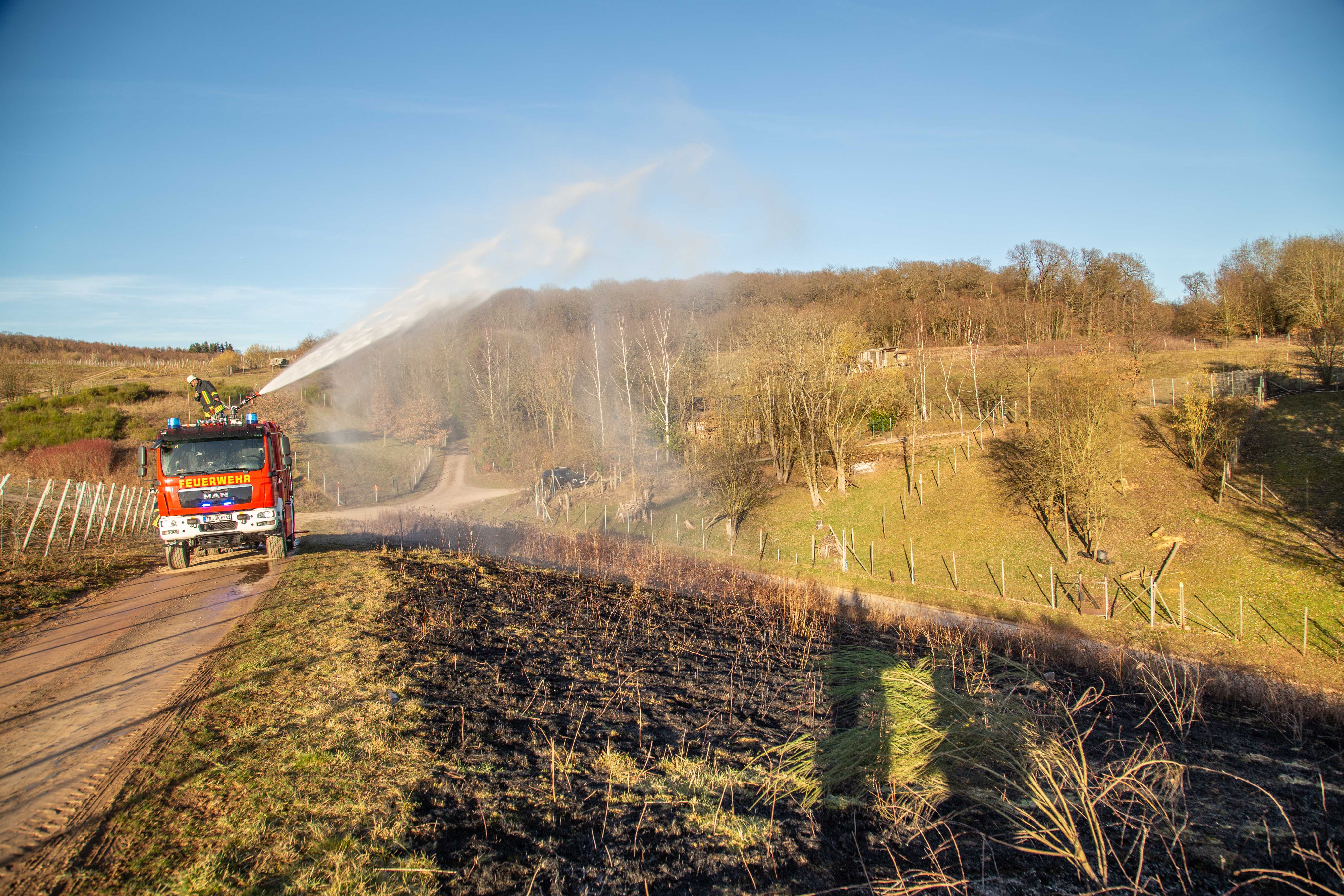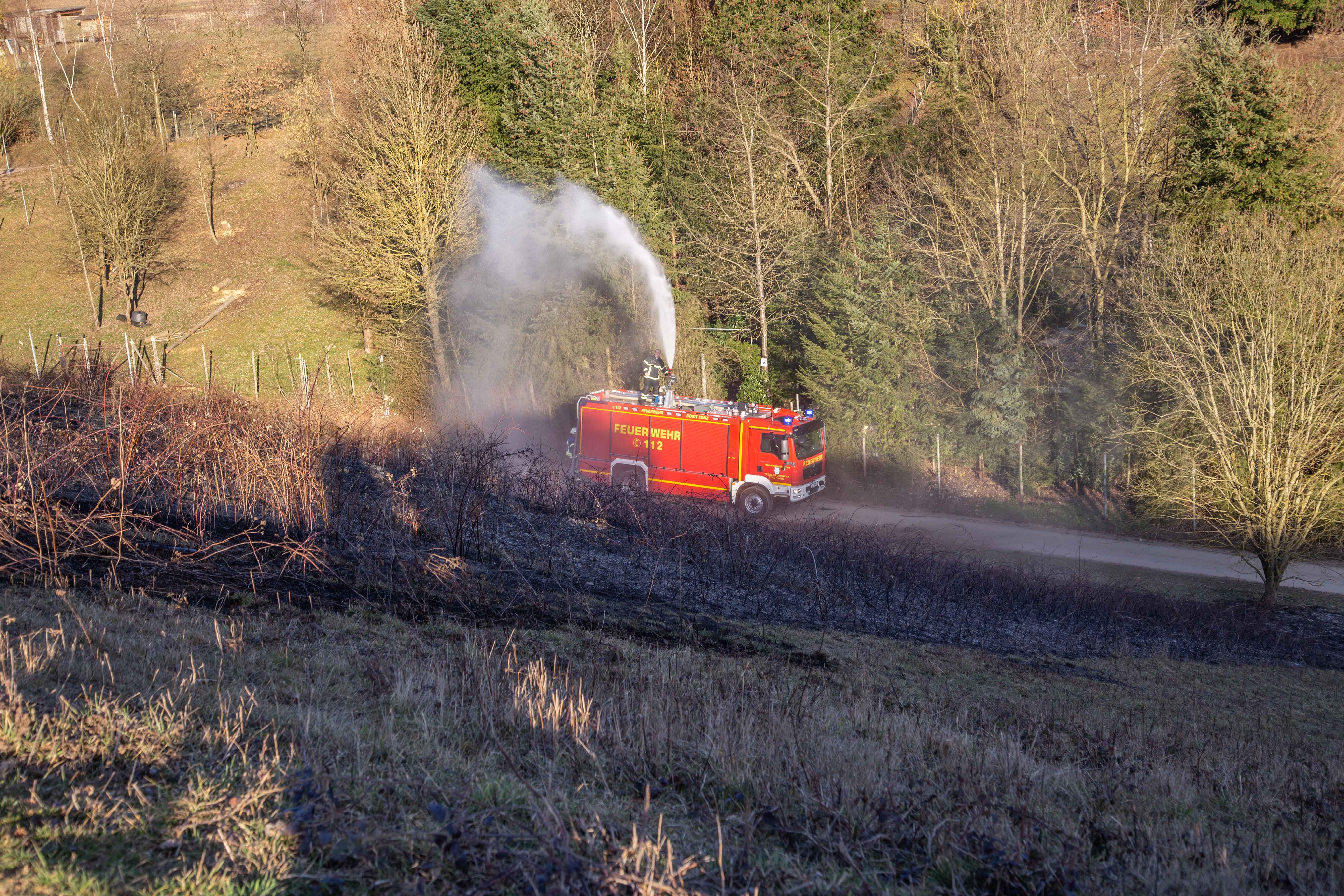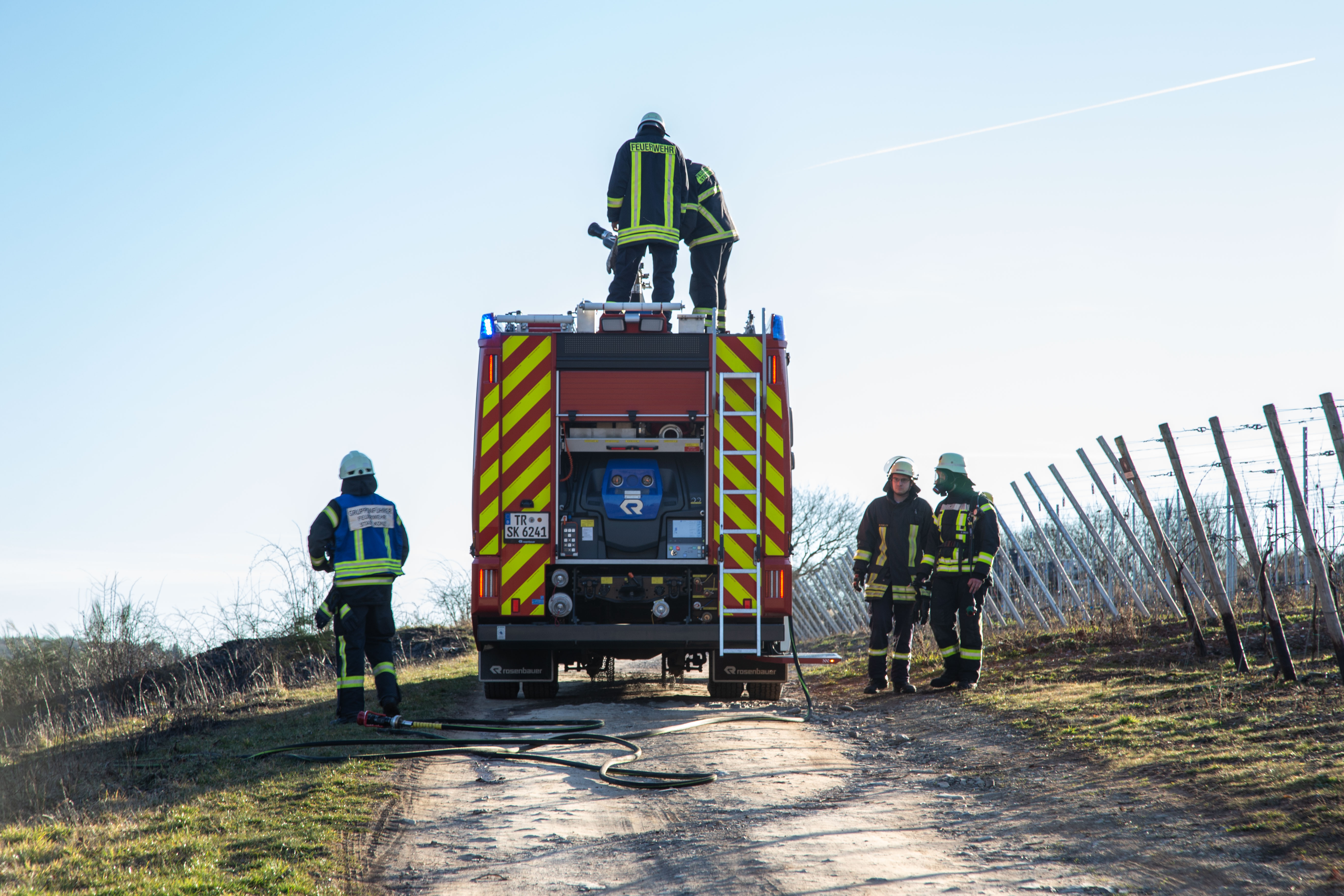 Die erst eintreffenden Kräfte aus Wiltingen konnten den Brand schnell unter Kontrolle bringen. Mit Unterstützung der Feuerwehr Stadt Konz wurde die Fläche von rund 20 auf 20 Metern komplett abgelöscht.