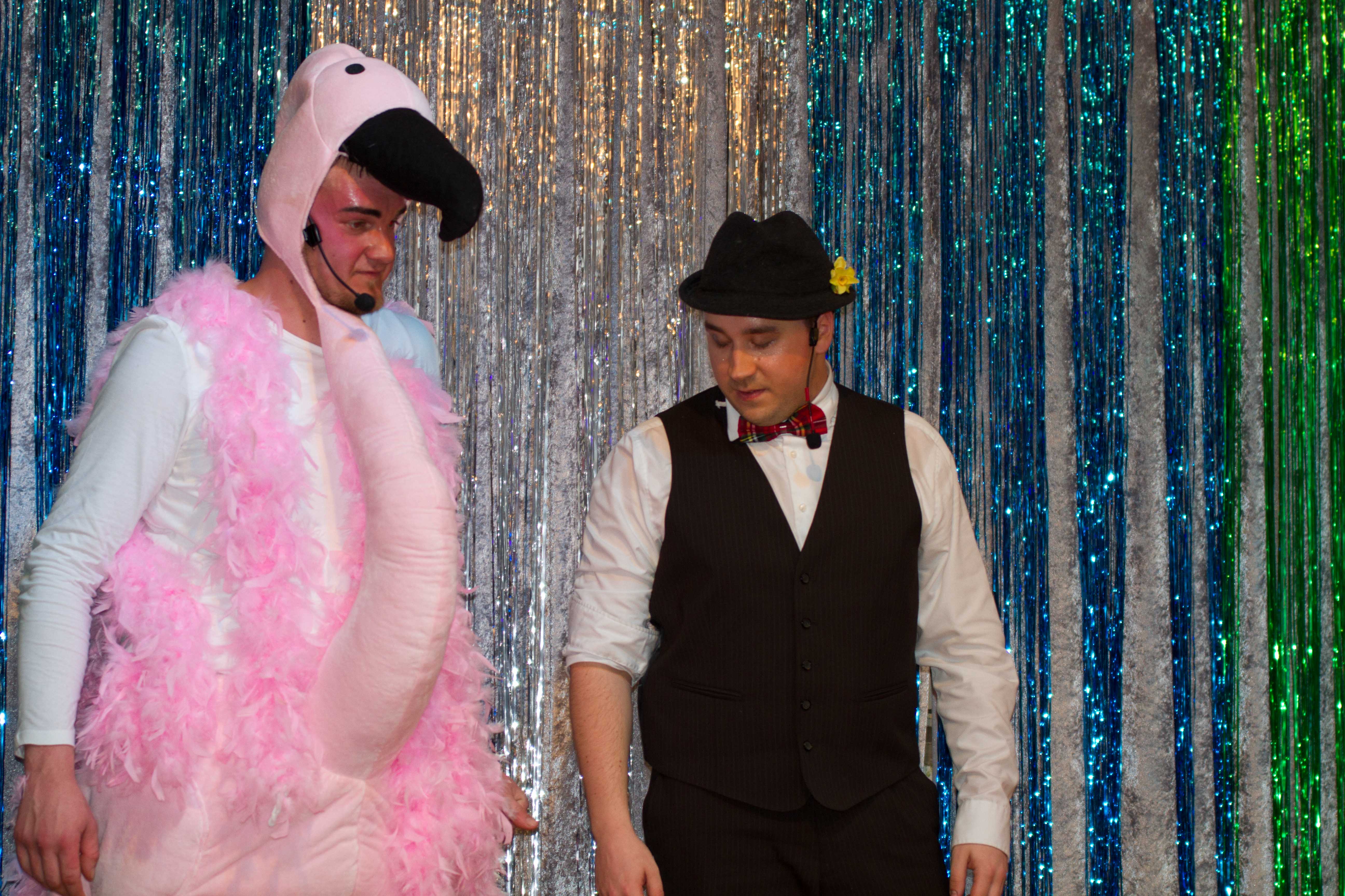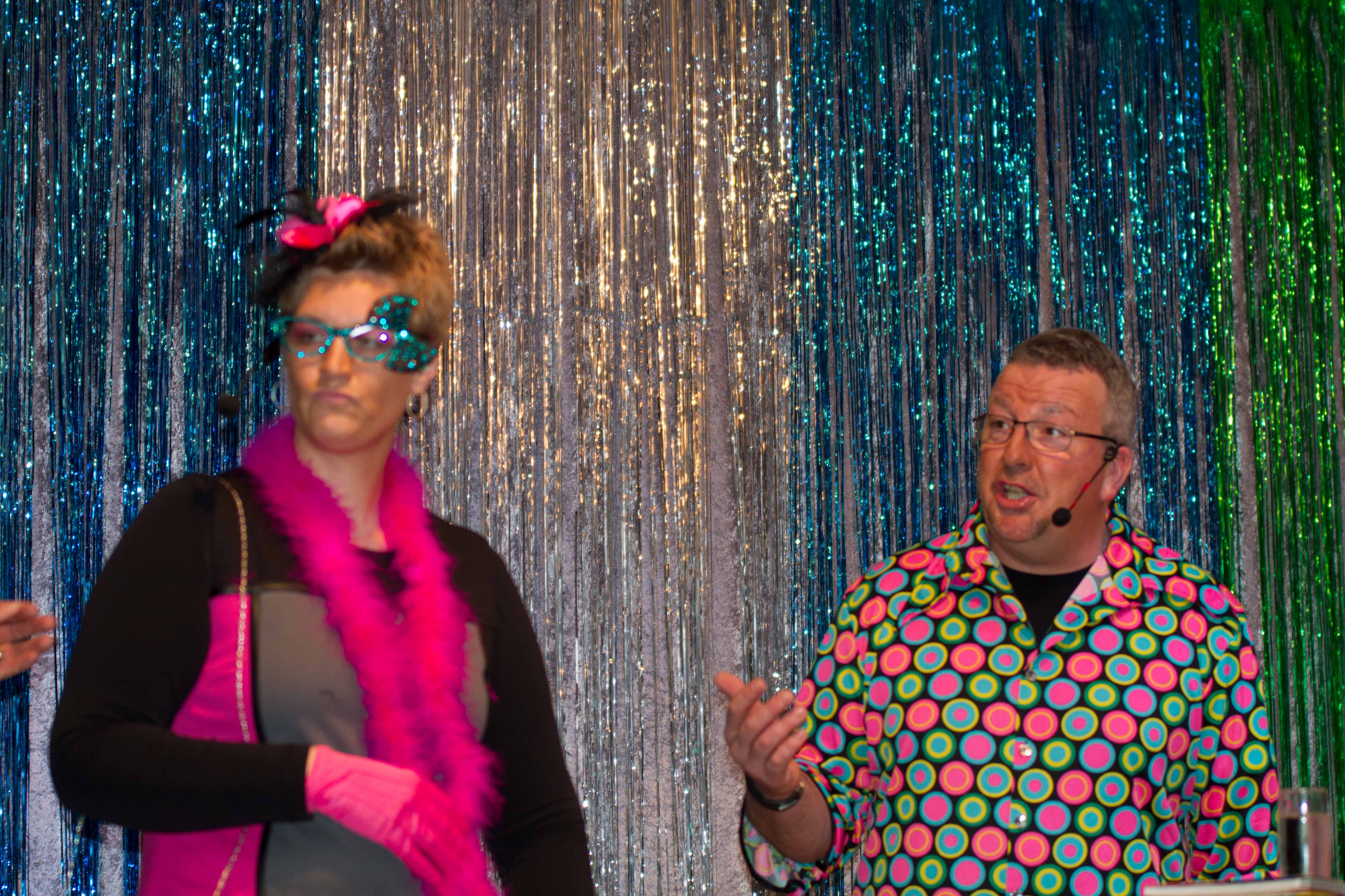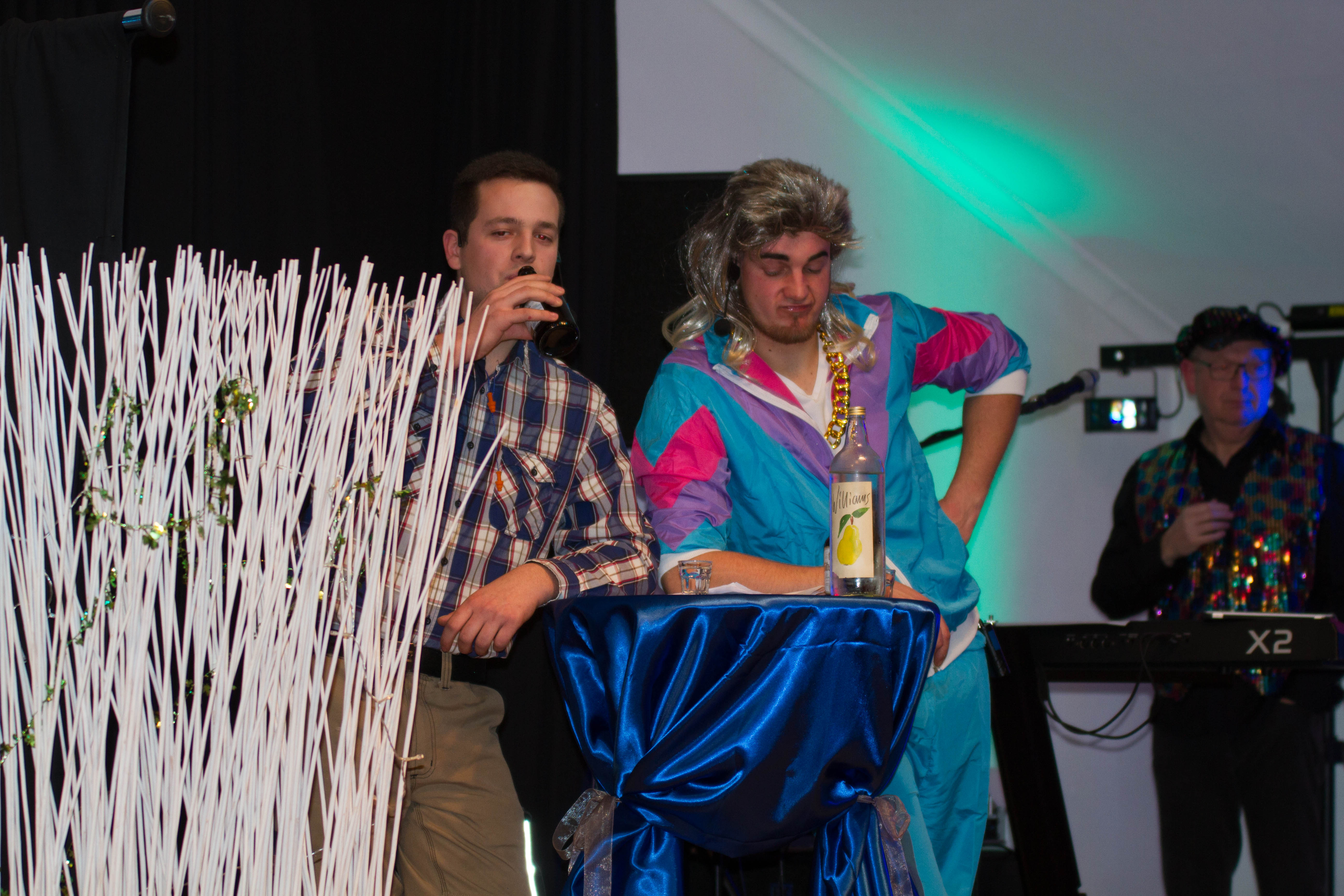 Ein realistischer Früher und Heute Vergleich präsentierten Opa und Enkelkind (Maria Sophie Bitsch und Helge Bitsch. Das Ehepaar Ursel und Edgar Funk hatten mit kleinen und großen Problemen in der Ehe zu kämpfen. Im Flamingokostüm unterhielten sich Stefan Scheuer und Marin Könen als Bauchredner. Die große Garde Söst und der Showtanz machten die Unterhaltung zwischendurch perfekt. (Trainerin Sara Kerner) Mit ein Höhepunkt war das Männerballett unter ihrer Trainerin Marie-Sophie Bitsch.