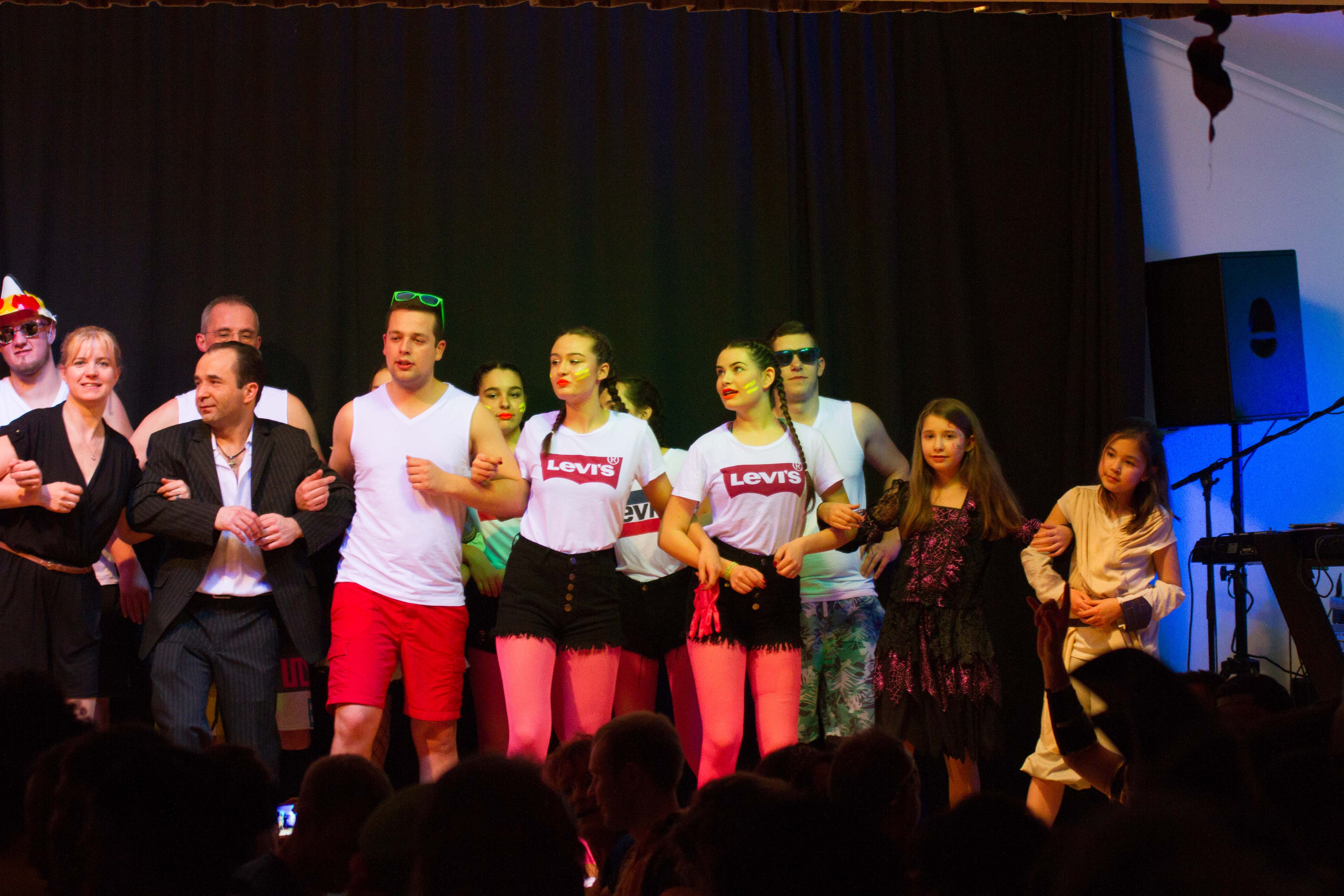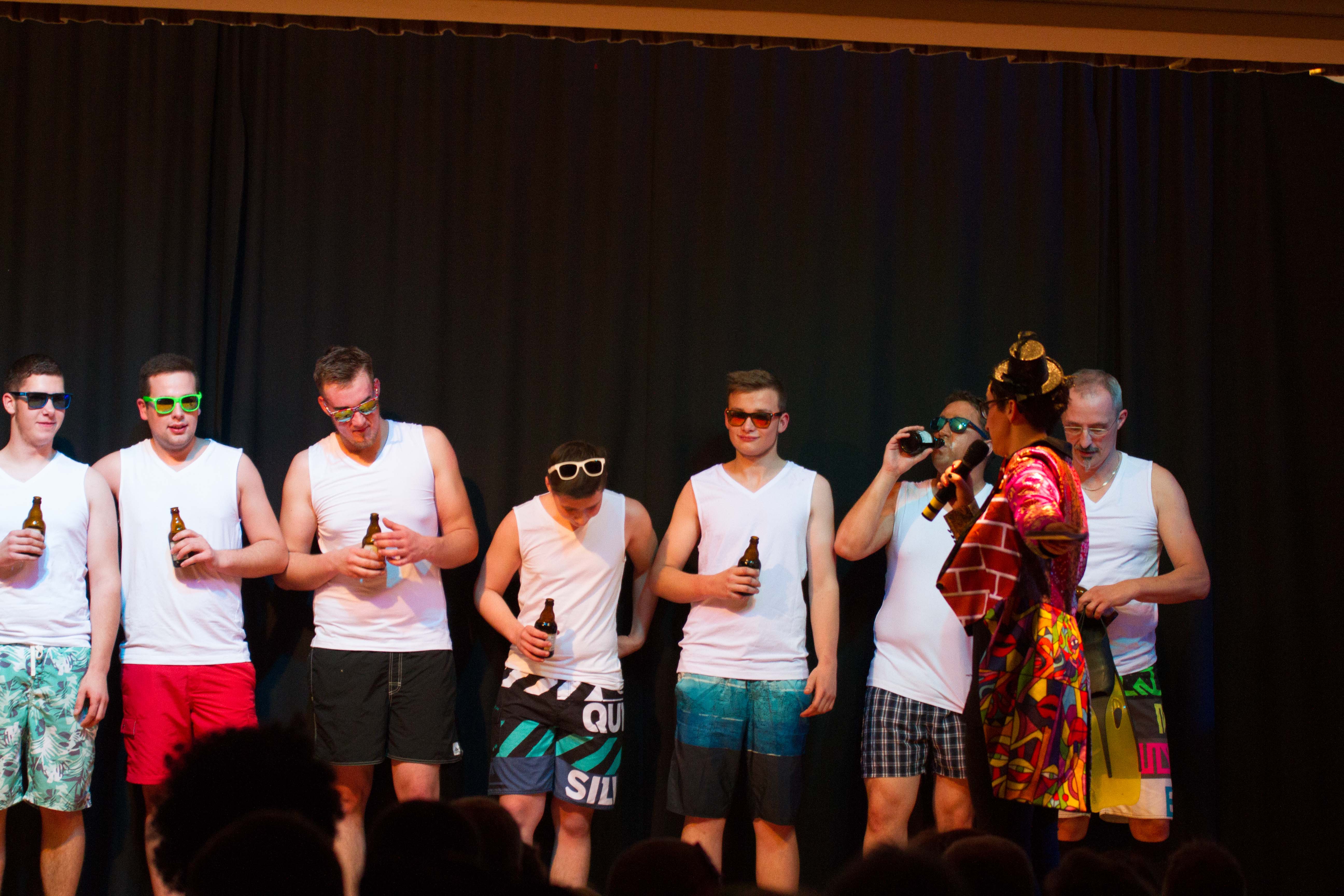Der Familien Sketch über drei Akte mit Marvin Könen, Stefan Scheuer, Matthias Müller, Sloveig Scheuer, Christian Scheuer, Lukas Strupp, Felix Stoffel und Nils Scheuer lösten beim Publikum Riesen Beifall aus.