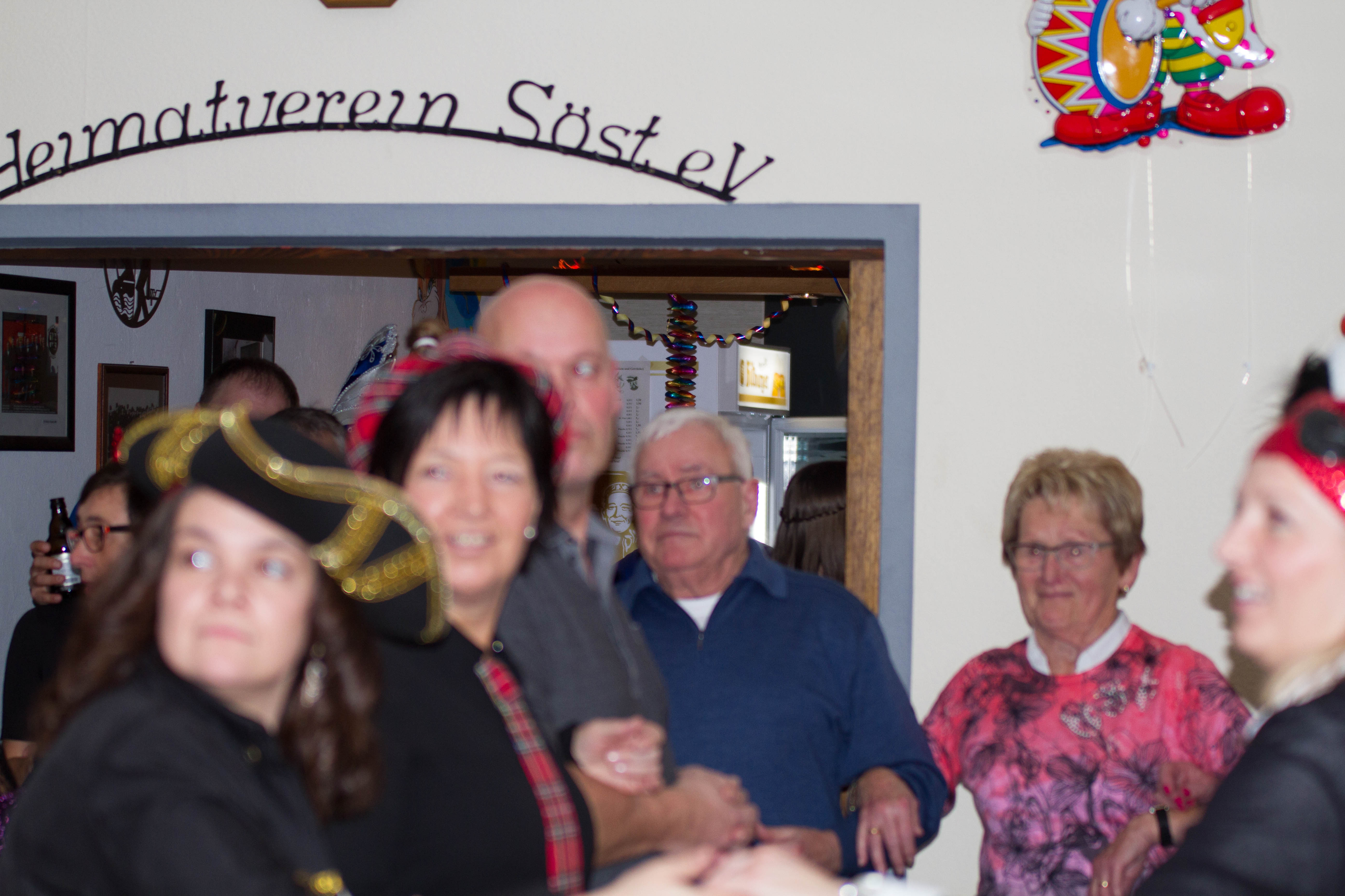 Wincheringen-Soest. Seit mehr als 30 Jahre richtet der Heimatverein Soest e.V. die Karnevalsveranstaltungen aus. So auch bei der 1.ten Kappensitzung am 20.Januar im vollbesetzten Saal des Heimatvereins mit mehr als einhundert Gästen im Vereinshaus in Soest. Unter dem Schlagwort -Fösent bei den Soester Hösen- eröffneten die Sitzungspräsidentinnen Renate Espen und Marita Geitz die Veranstaltung. Zum Stimmungsauftakt tanzte die kleine Garde. (Trainerin Sara Kerner) Dieter alias Marvin Könen und seine Frau Fransiska alias Stefan Steuer boten in einem Familien Dreiersketch einen trommelstarken Beitrag.