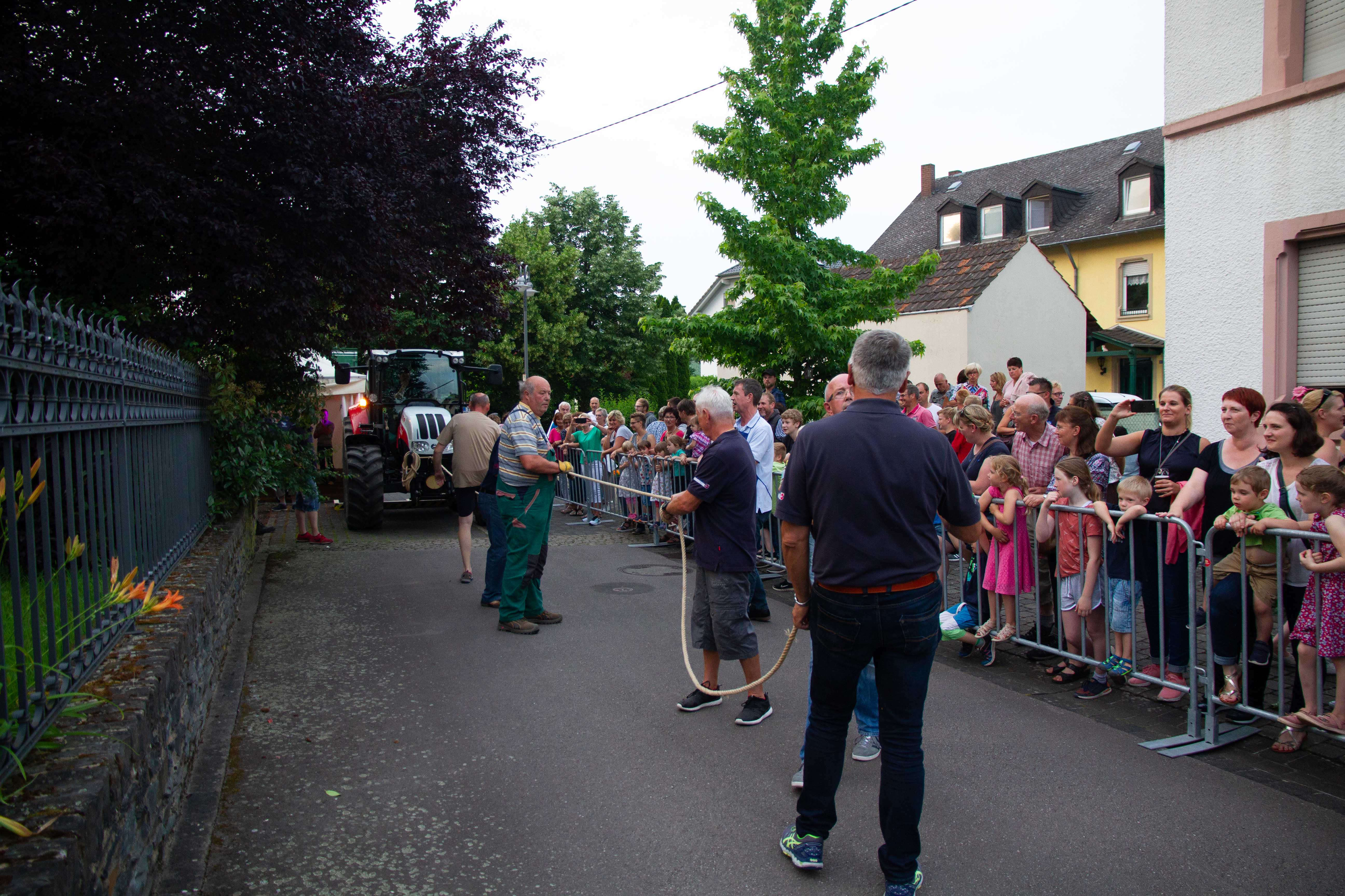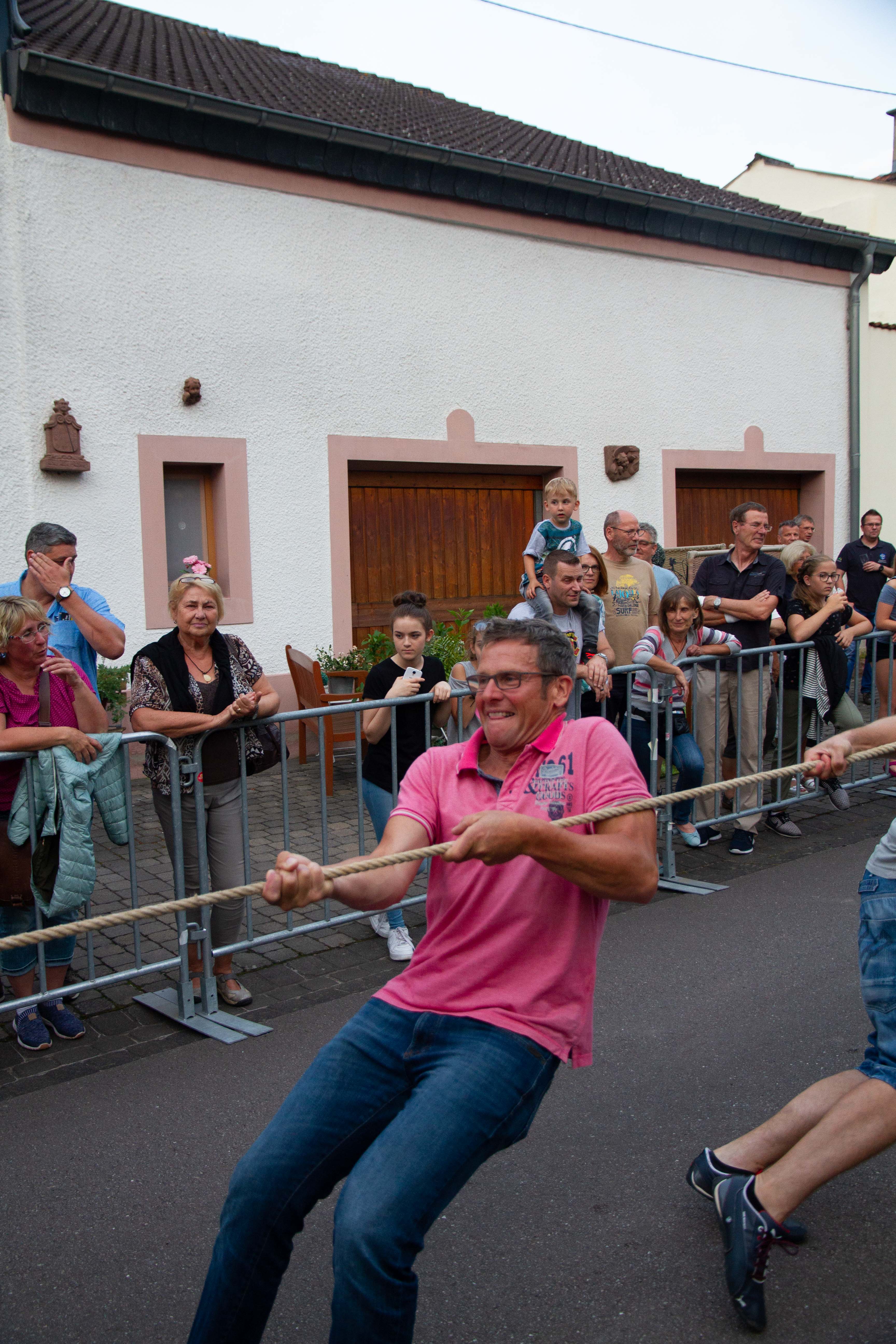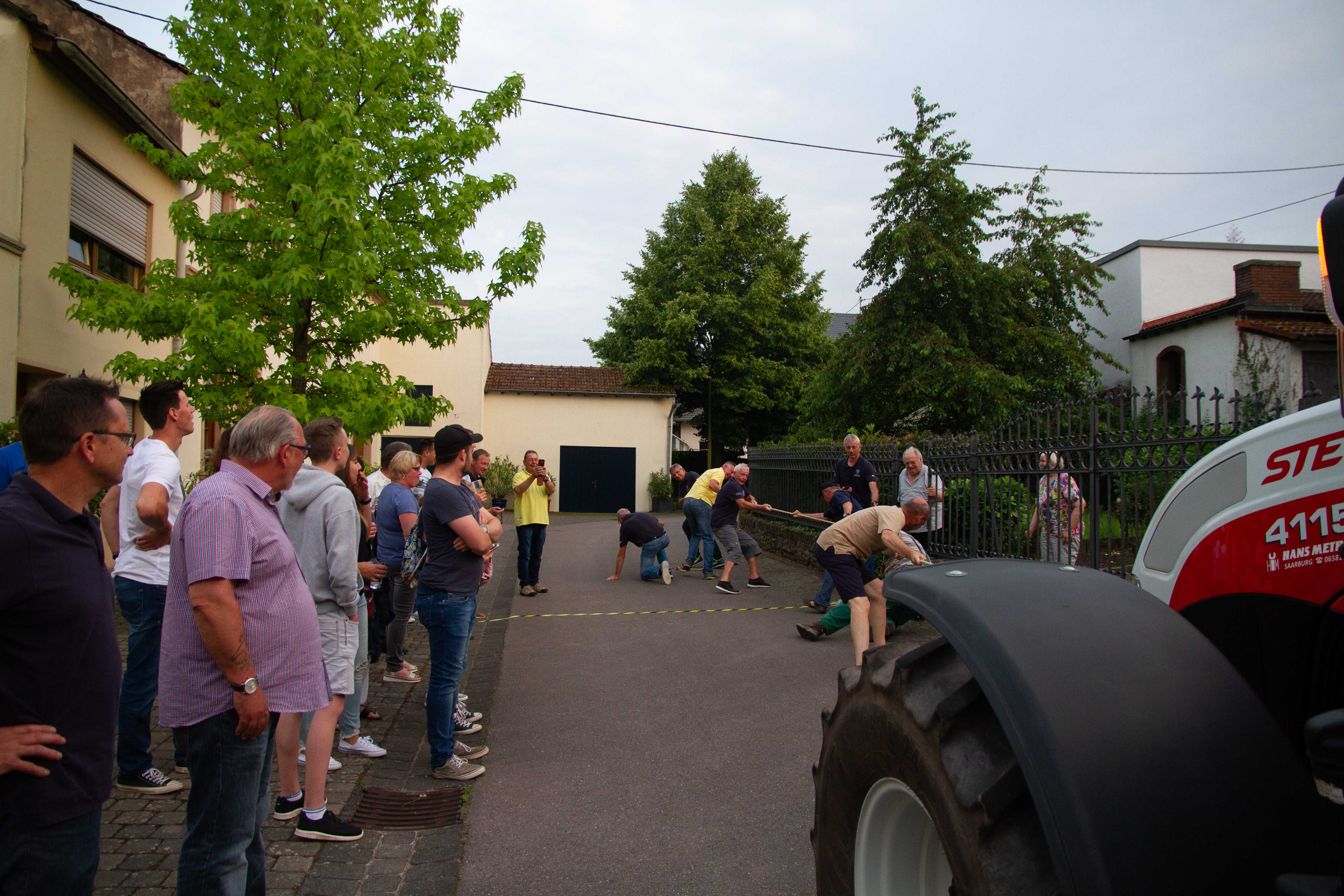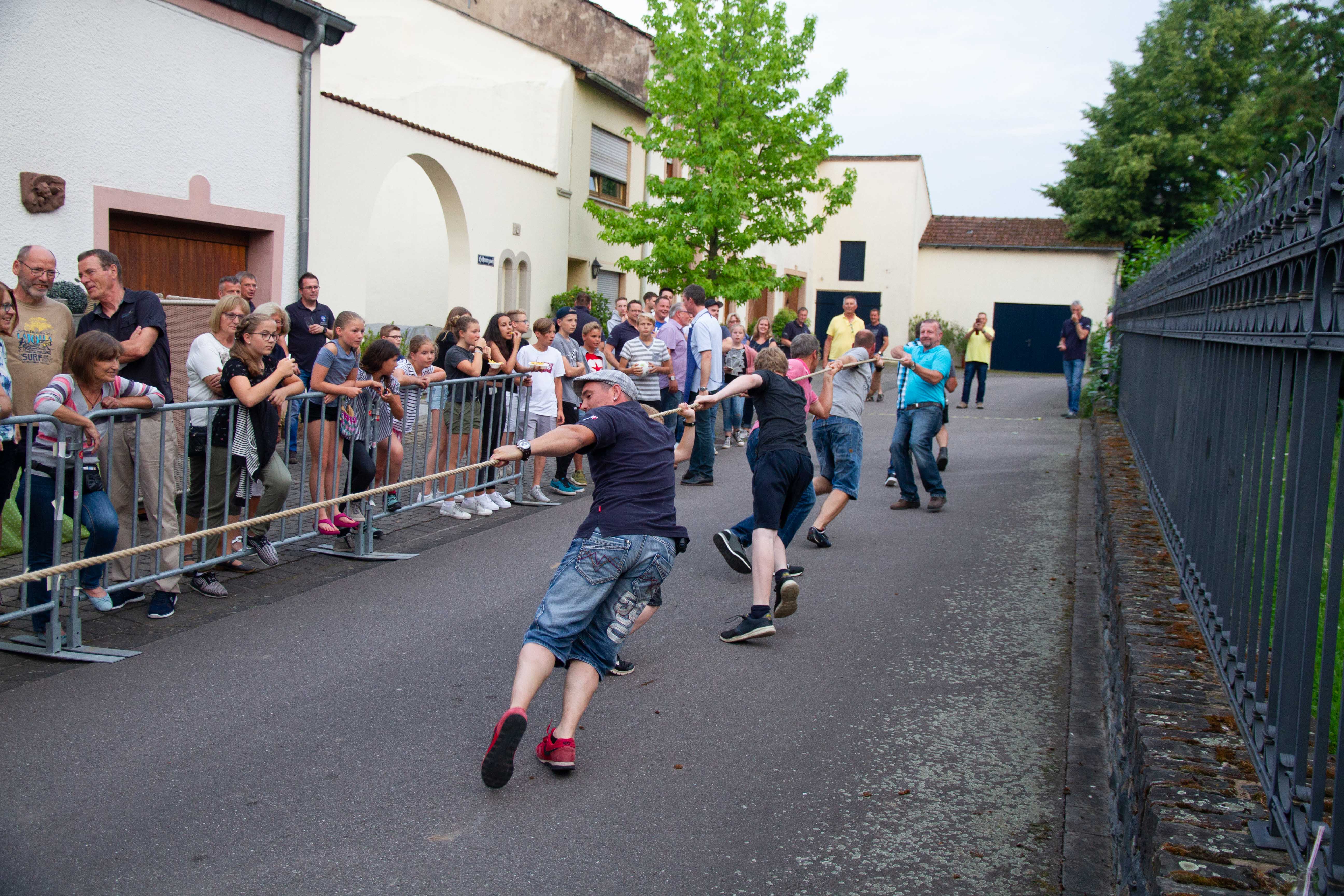 Auf dem Flipchart an der bereits präparierten 30 Meter Zugstrecke konnte in Kürze sechs Mannschaften notiert werden. Biebelhausener Bürger halten halt zusammen. Die Bestzeit lag wie im Vorjahr auf Platz 1, die „Hühnergaß bei 27,3 Sekunden, um genau genommen eine Sekunde länger als in 2017