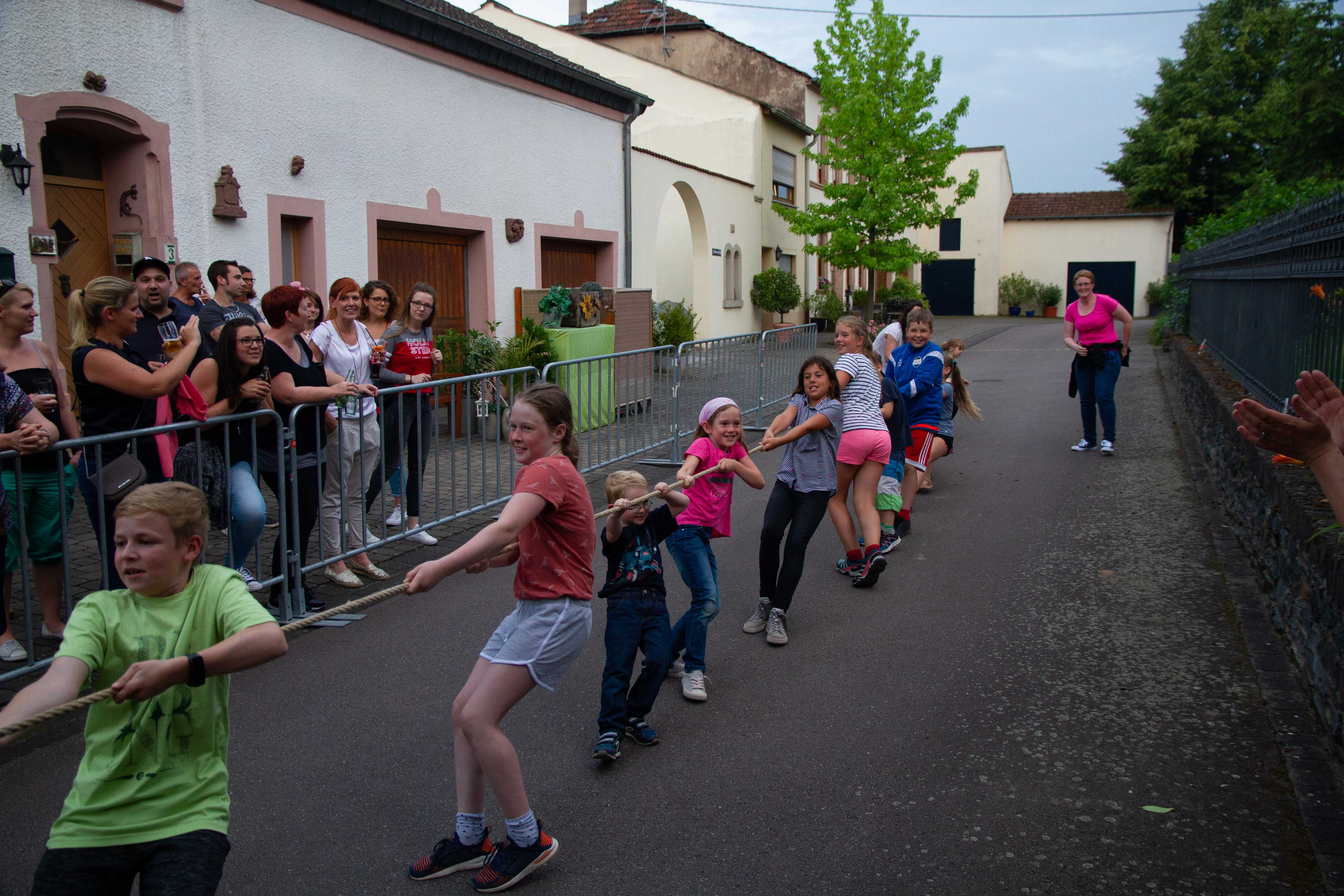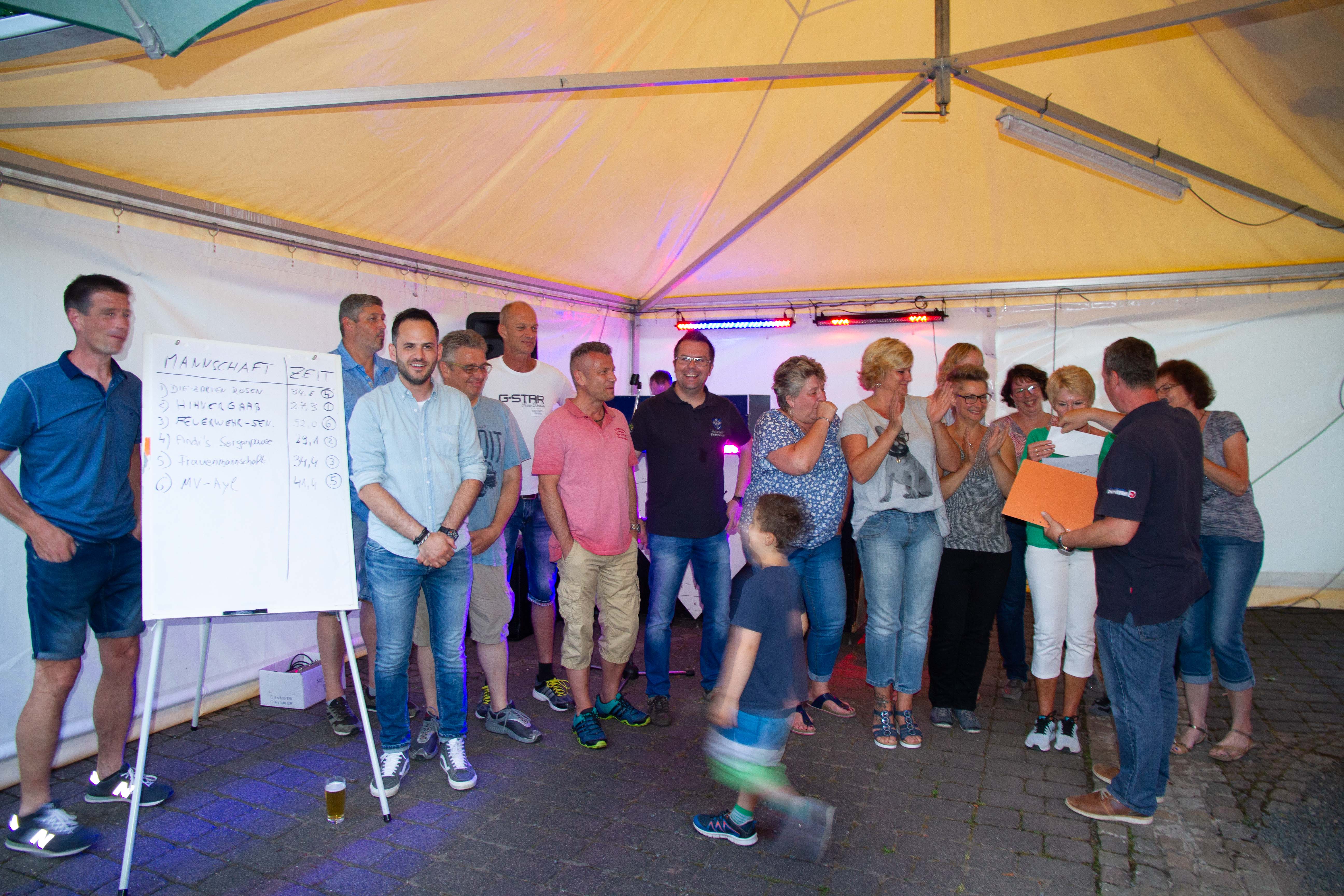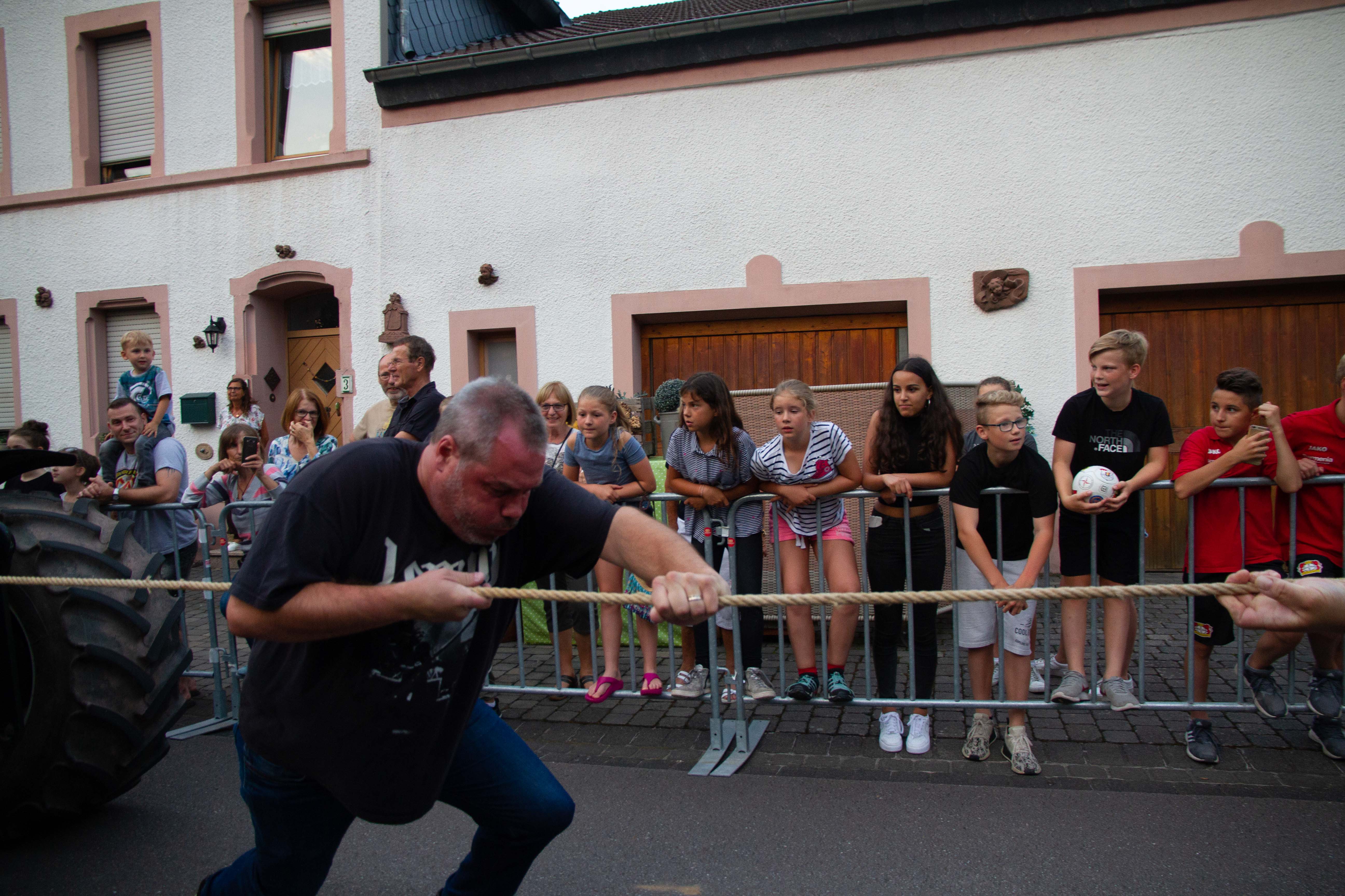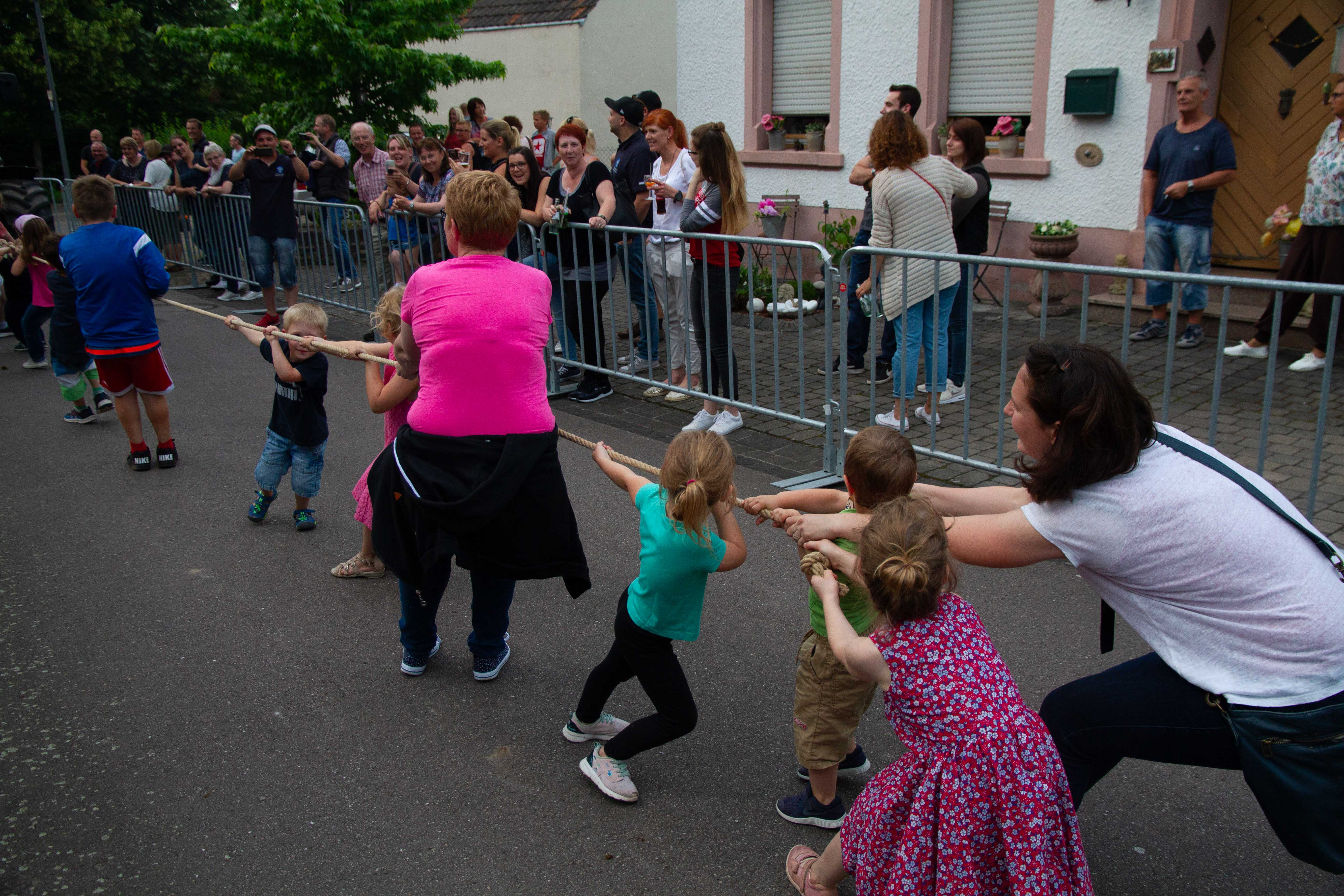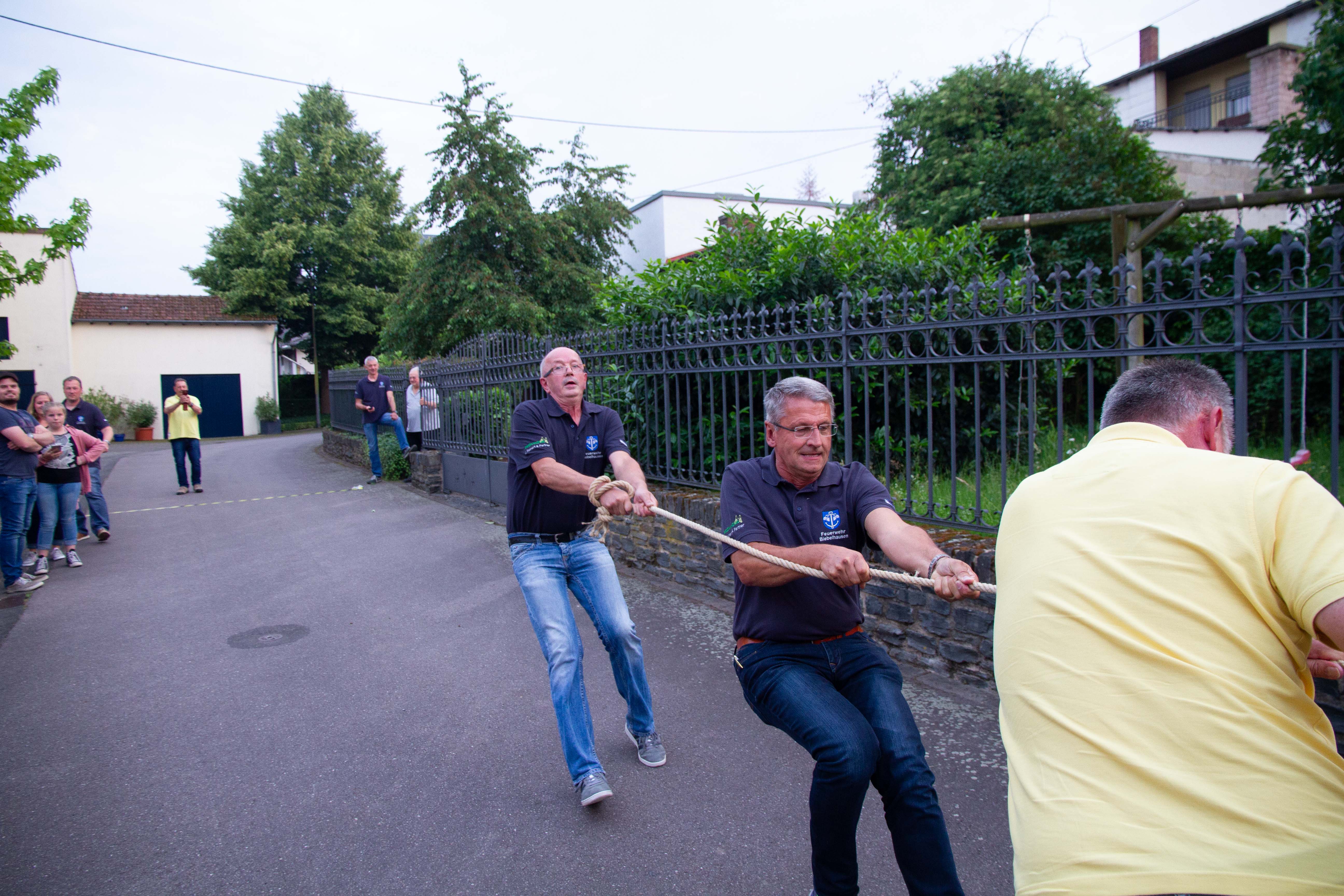 Auf dem Flipchart an der bereits präparierten 30 Meter Zugstrecke konnte in Kürze sechs Mannschaften notiert werden. Biebelhausener Bürger halten halt zusammen. Die Bestzeit lag wie im Vorjahr auf Platz 1, die „Hühnergaß bei 27,3 Sekunden, um genau genommen eine Sekunde länger als in 2017