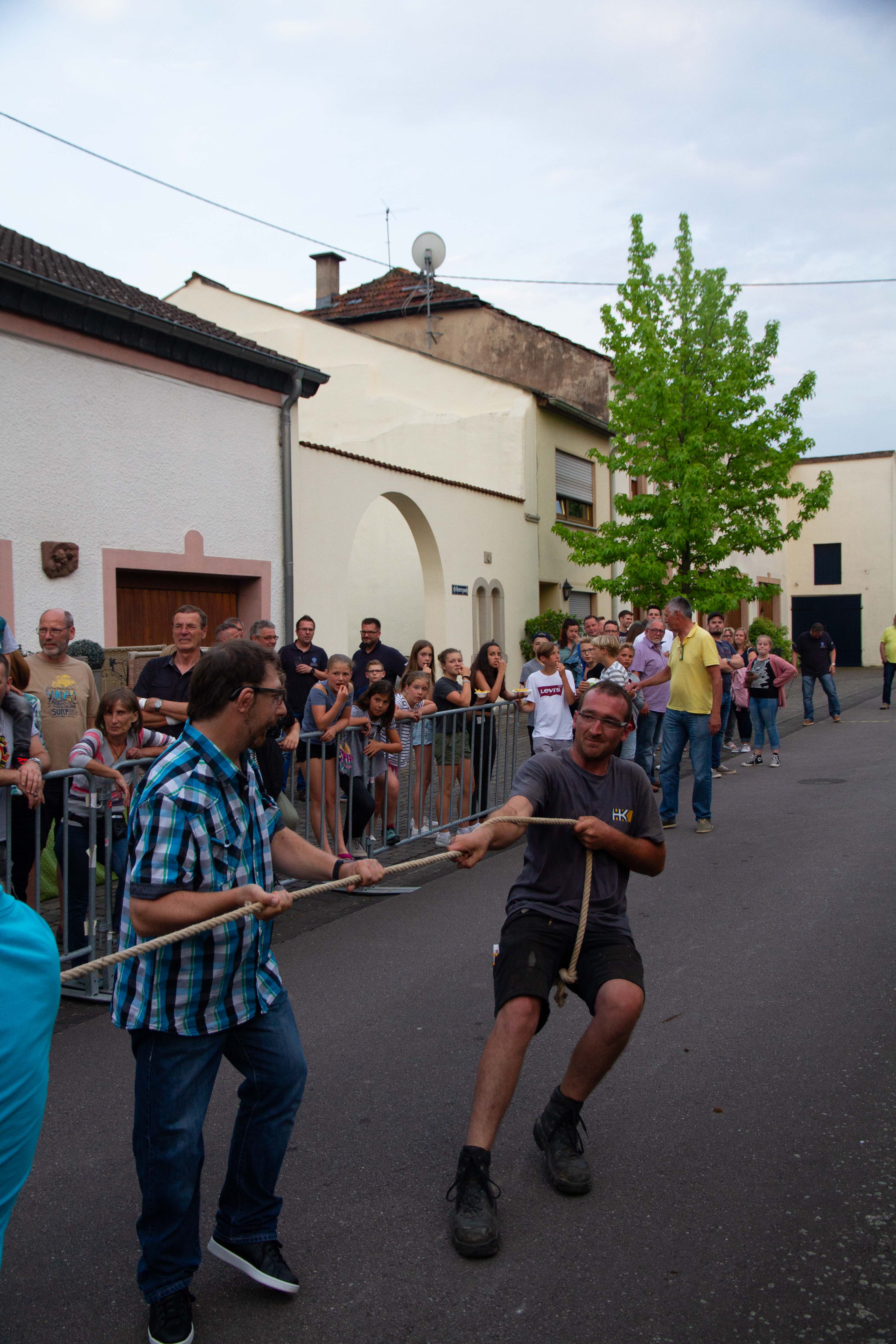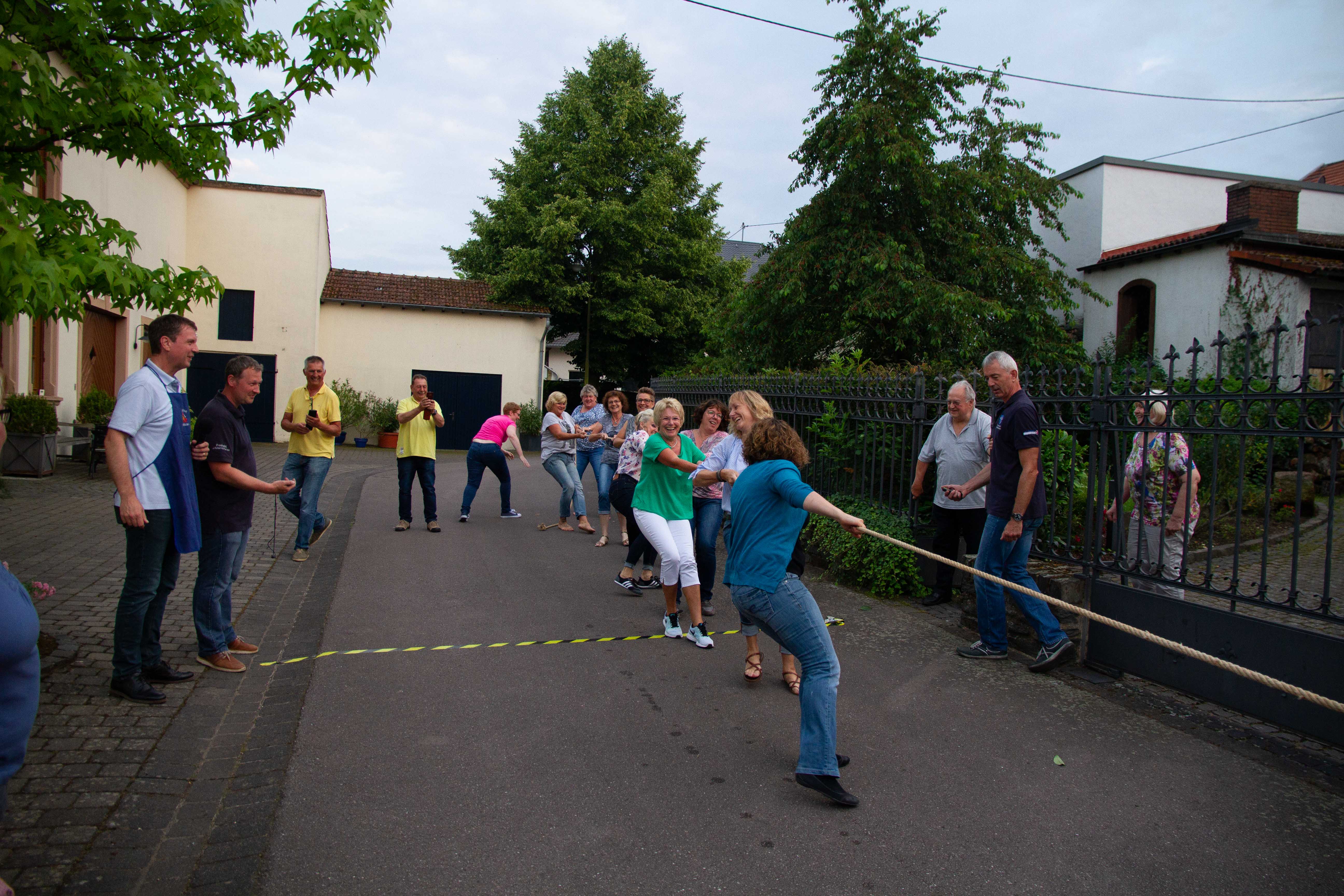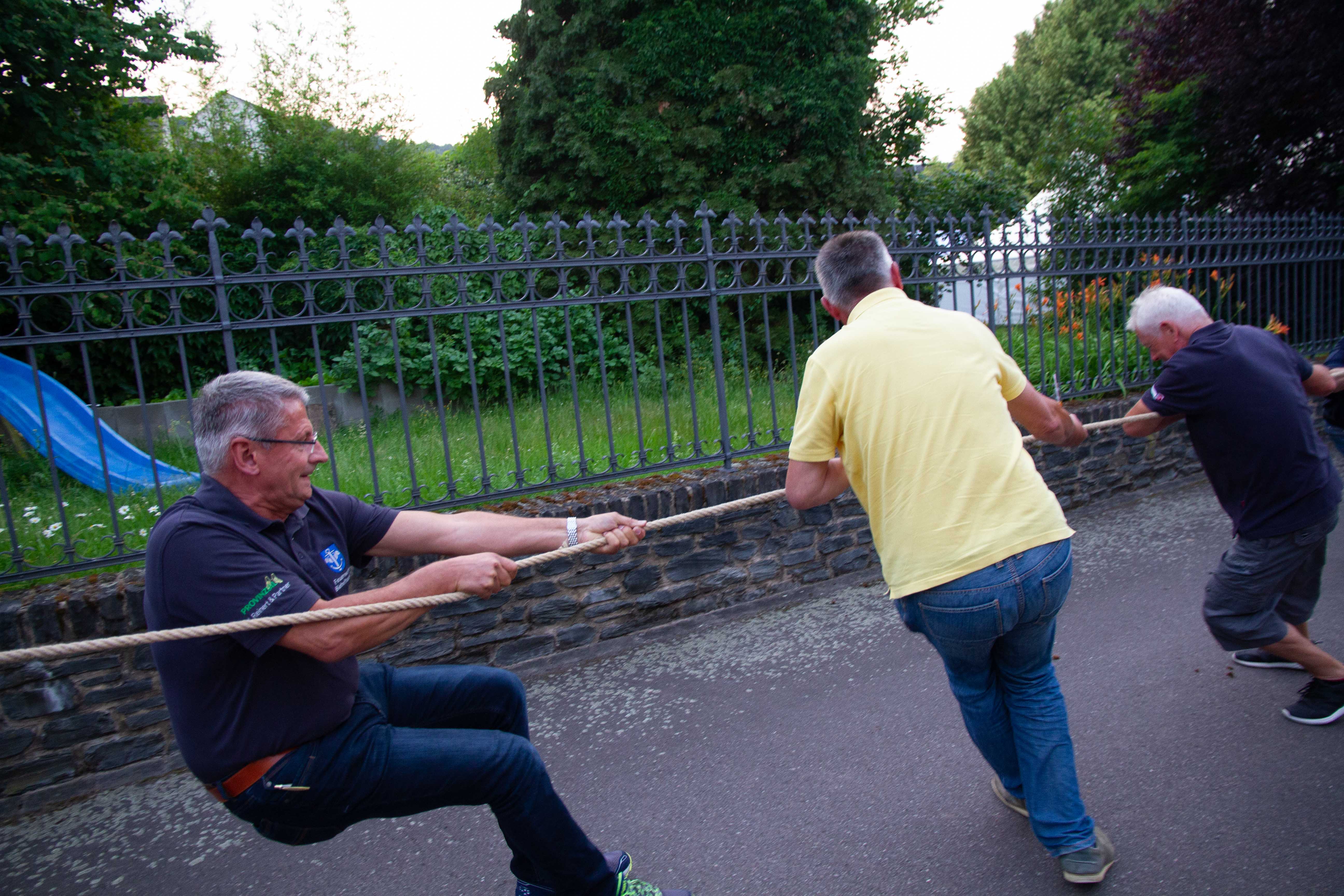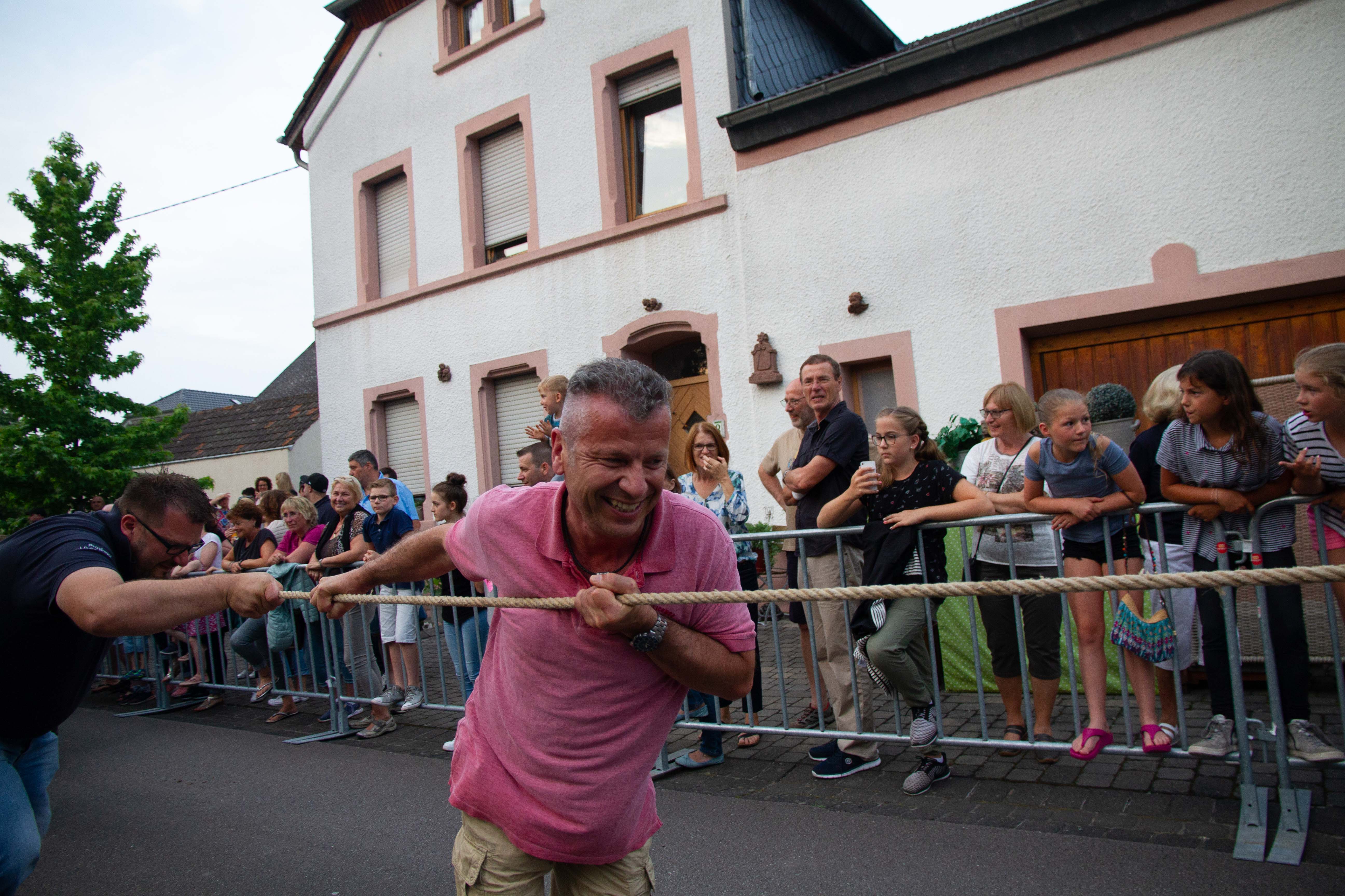 Auf dem Flipchart an der bereits präparierten 30 Meter Zugstrecke konnte in Kürze sechs Mannschaften notiert werden. Biebelhausener Bürger halten halt zusammen. Die Bestzeit lag wie im Vorjahr auf Platz 1, die „Hühnergaß bei 27,3 Sekunden, um genau genommen eine Sekunde länger als in 2017