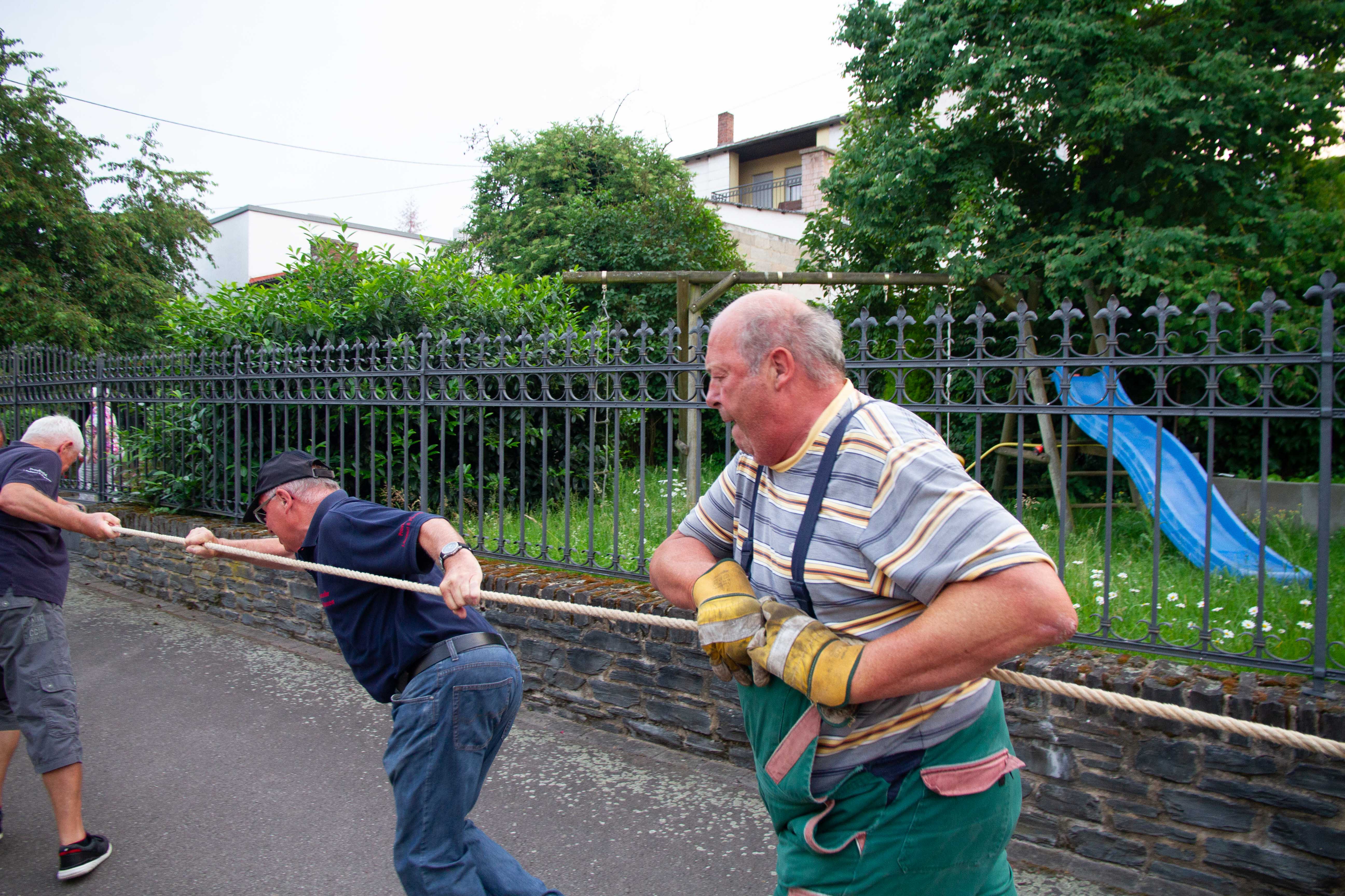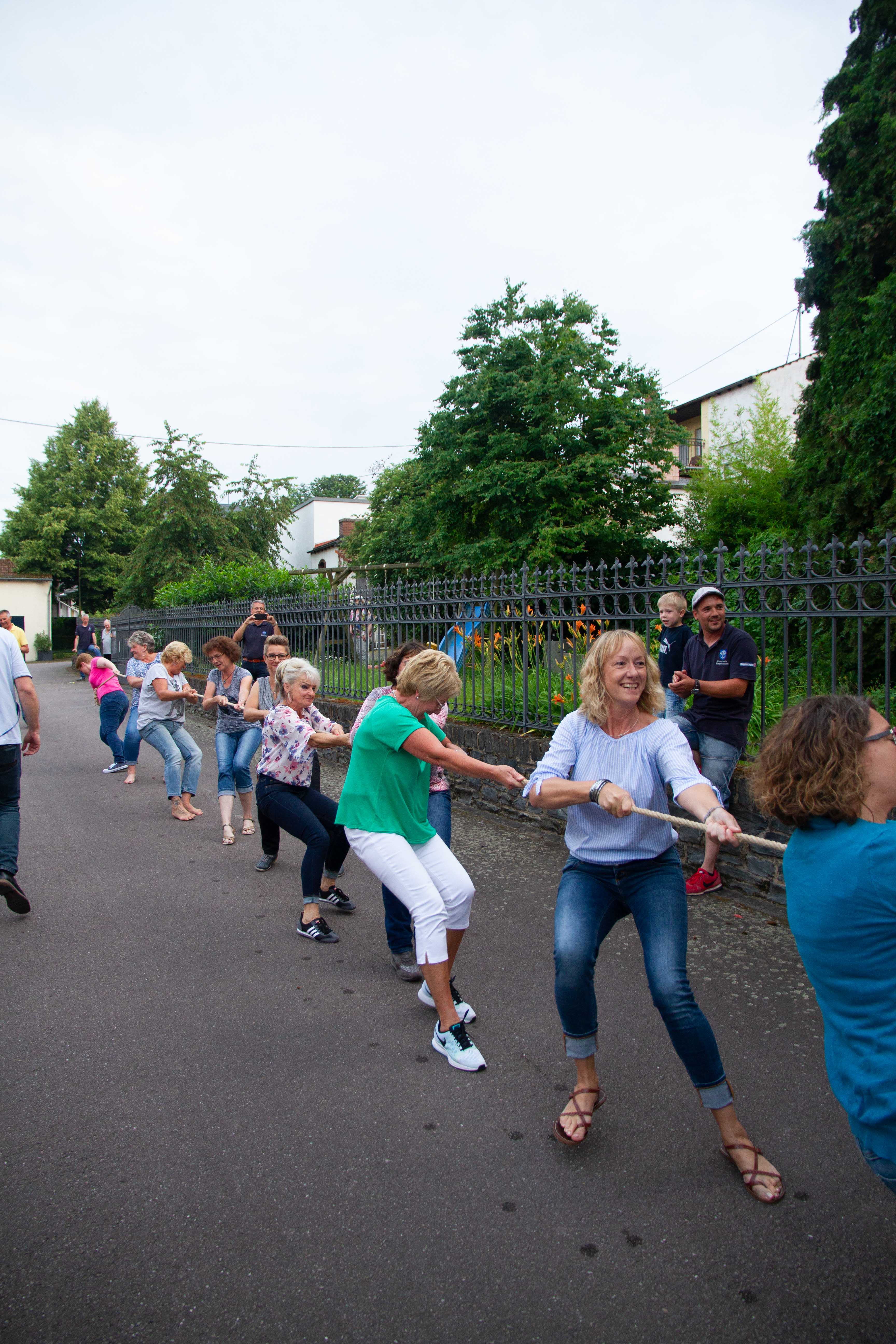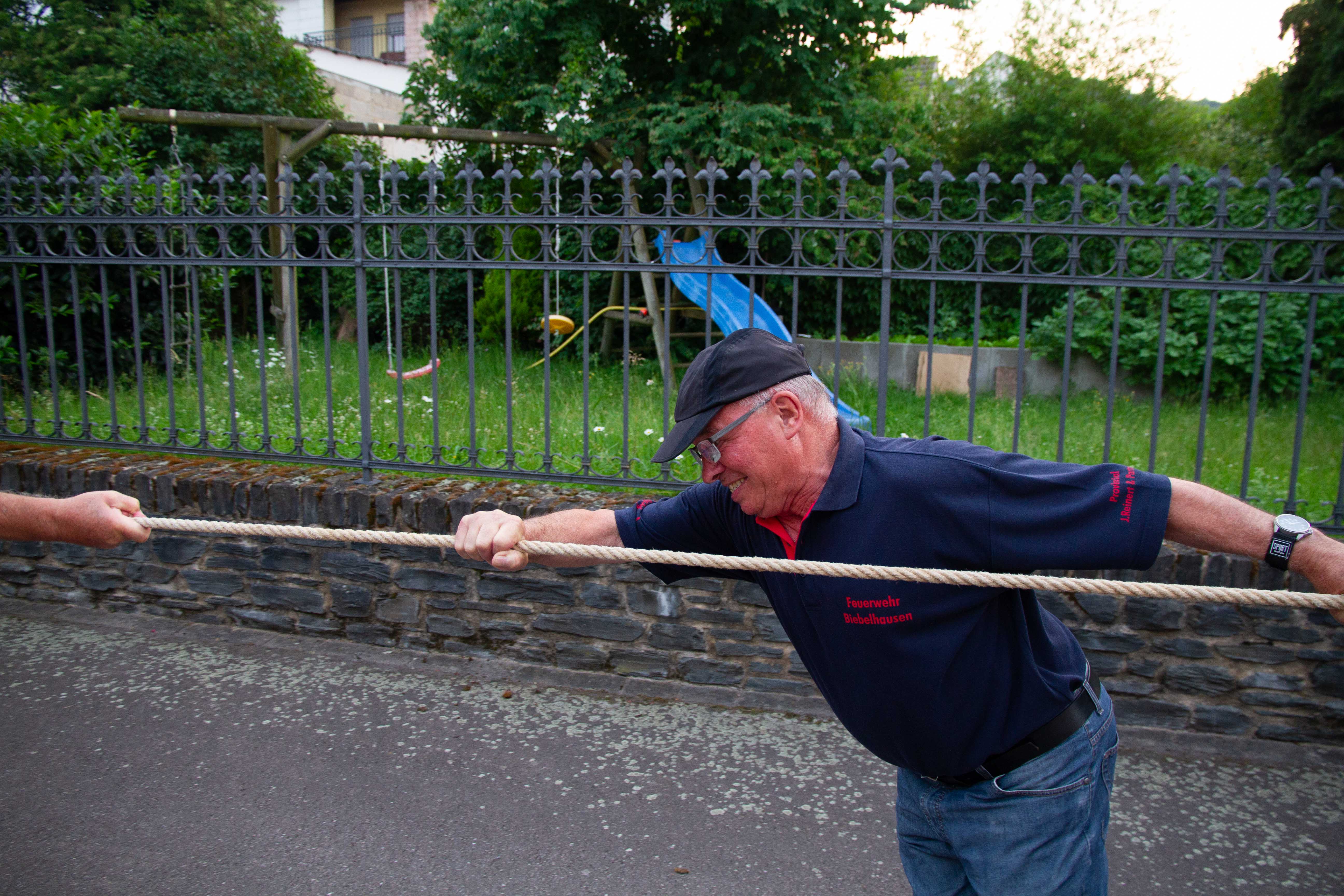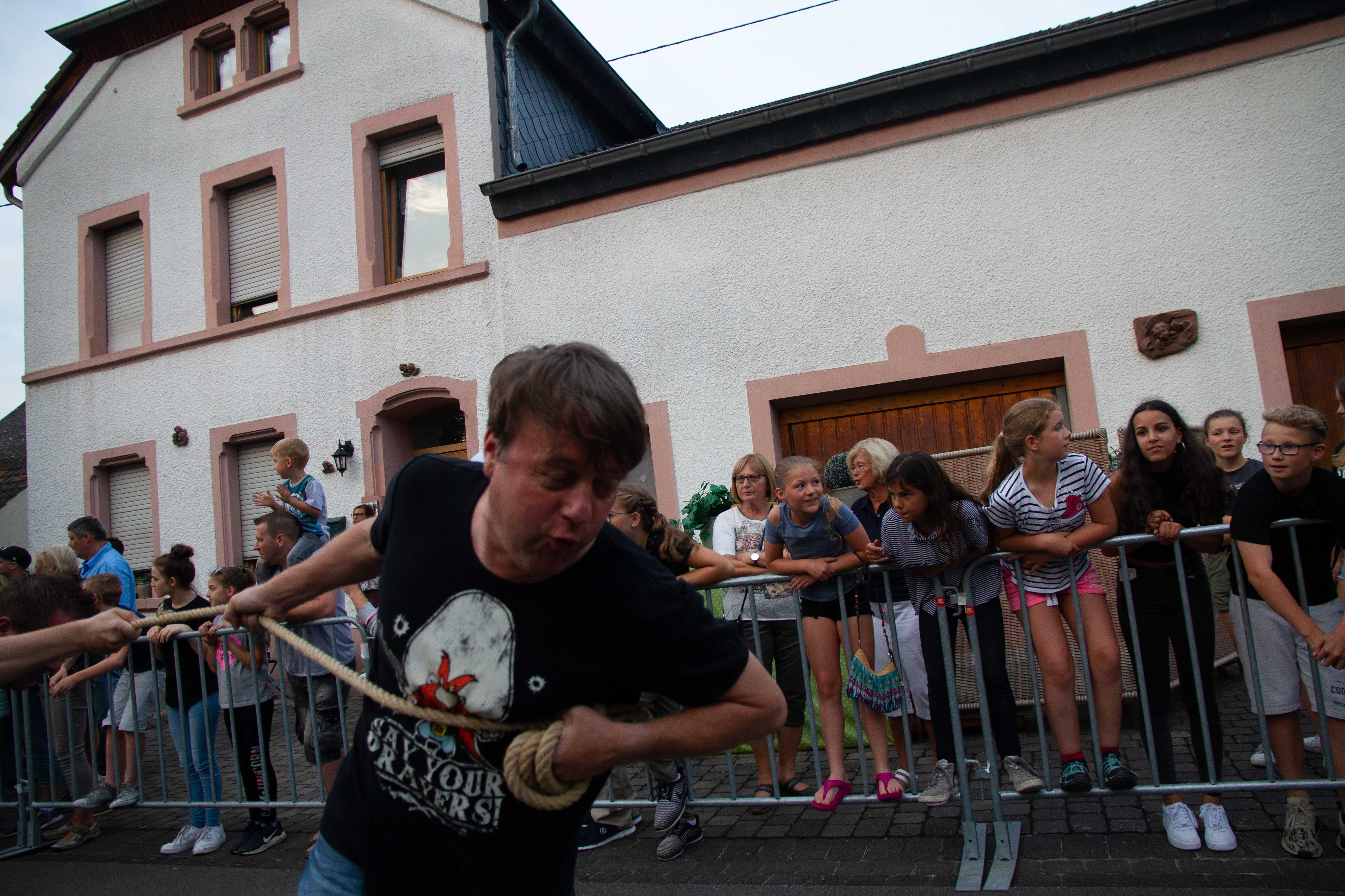 Auf dem Flipchart an der bereits präparierten 30 Meter Zugstrecke konnte in Kürze sechs Mannschaften notiert werden. Biebelhausener Bürger halten halt zusammen. Die Bestzeit lag wie im Vorjahr auf Platz 1, die „Hühnergaß bei 27,3 Sekunden, um genau genommen eine Sekunde länger als in 2017