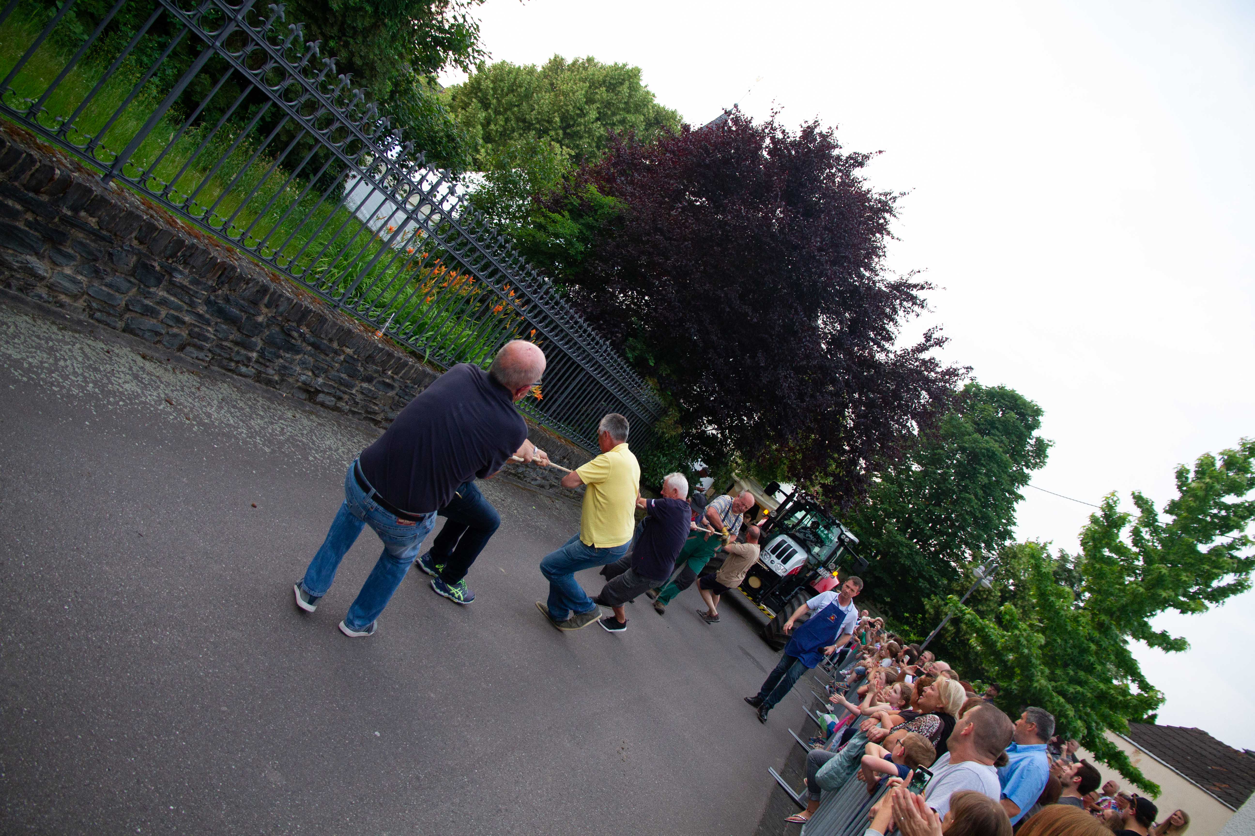 Sechs Mannschaften stellten sich der Herausforderung den fünf Tonnen schweren Traktor per Strick bis zur Ziellinie zu ziehen.
