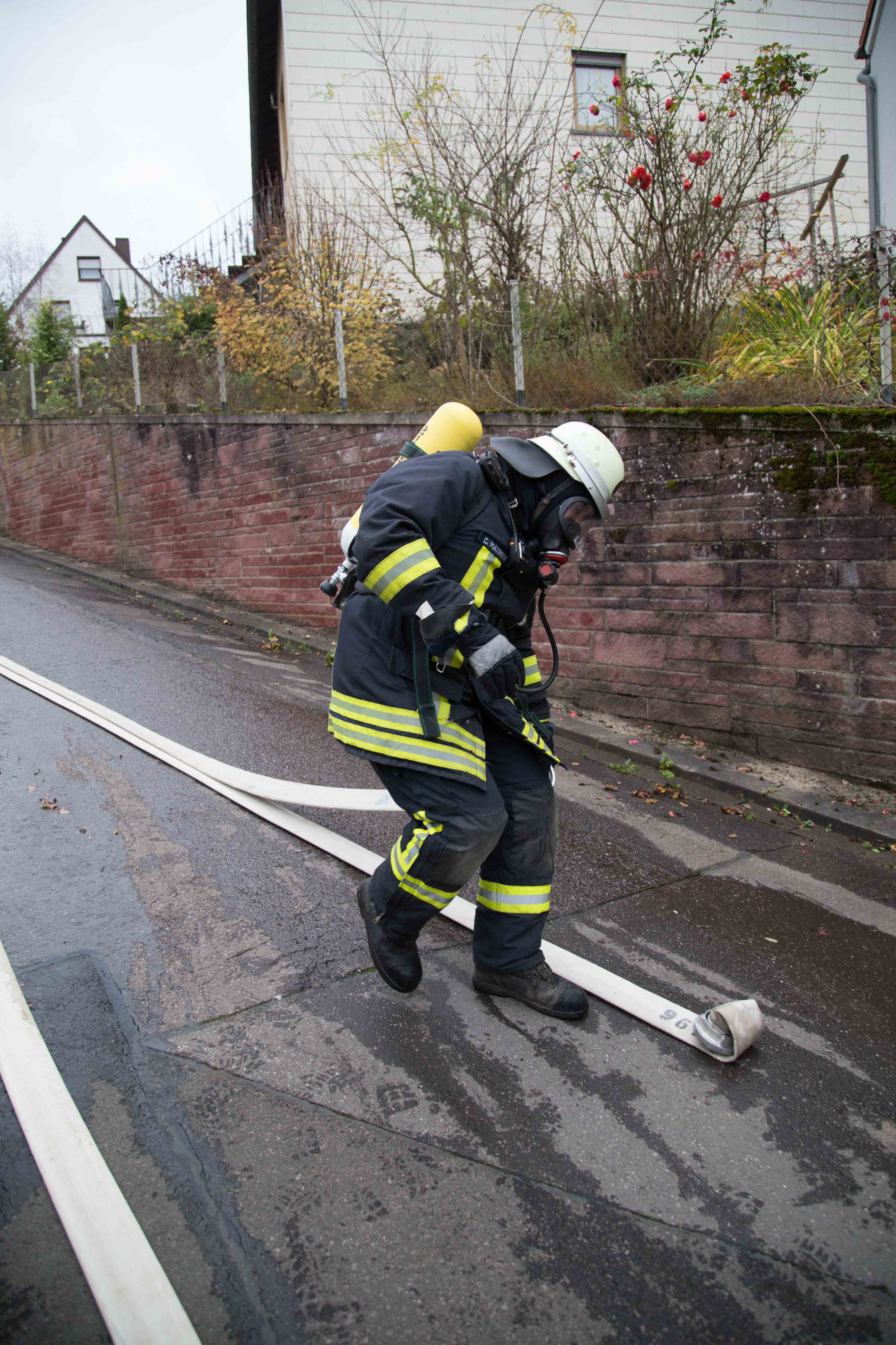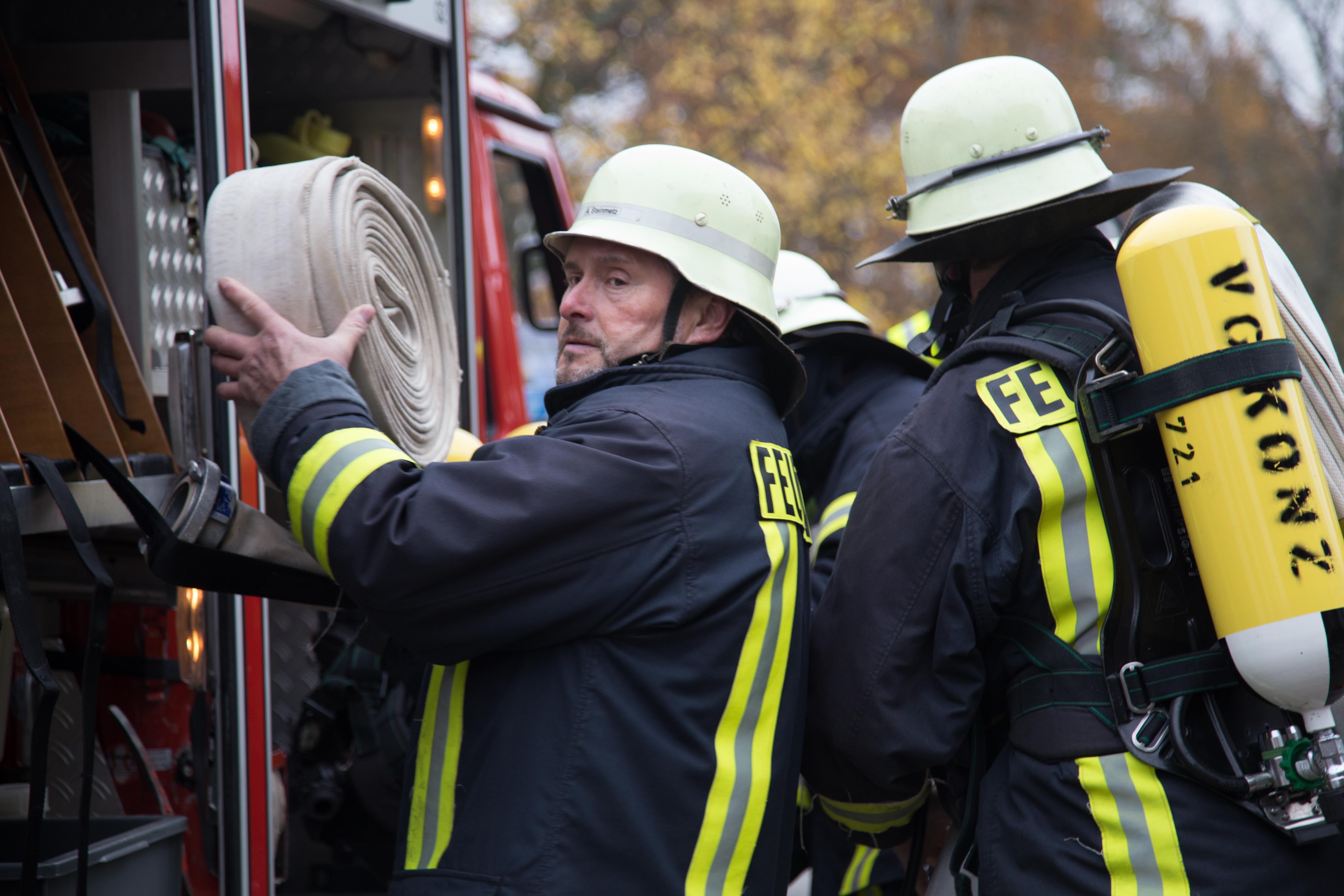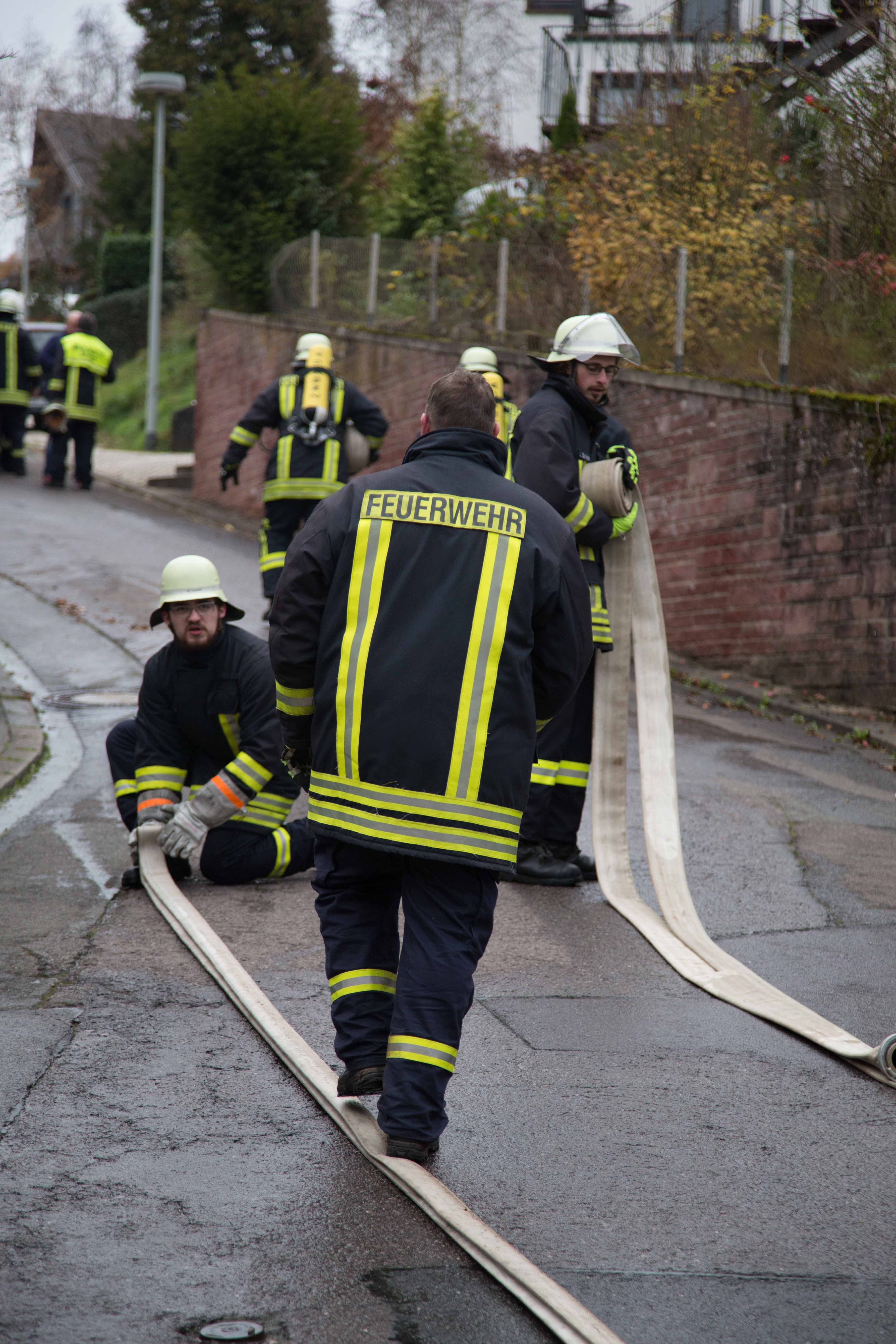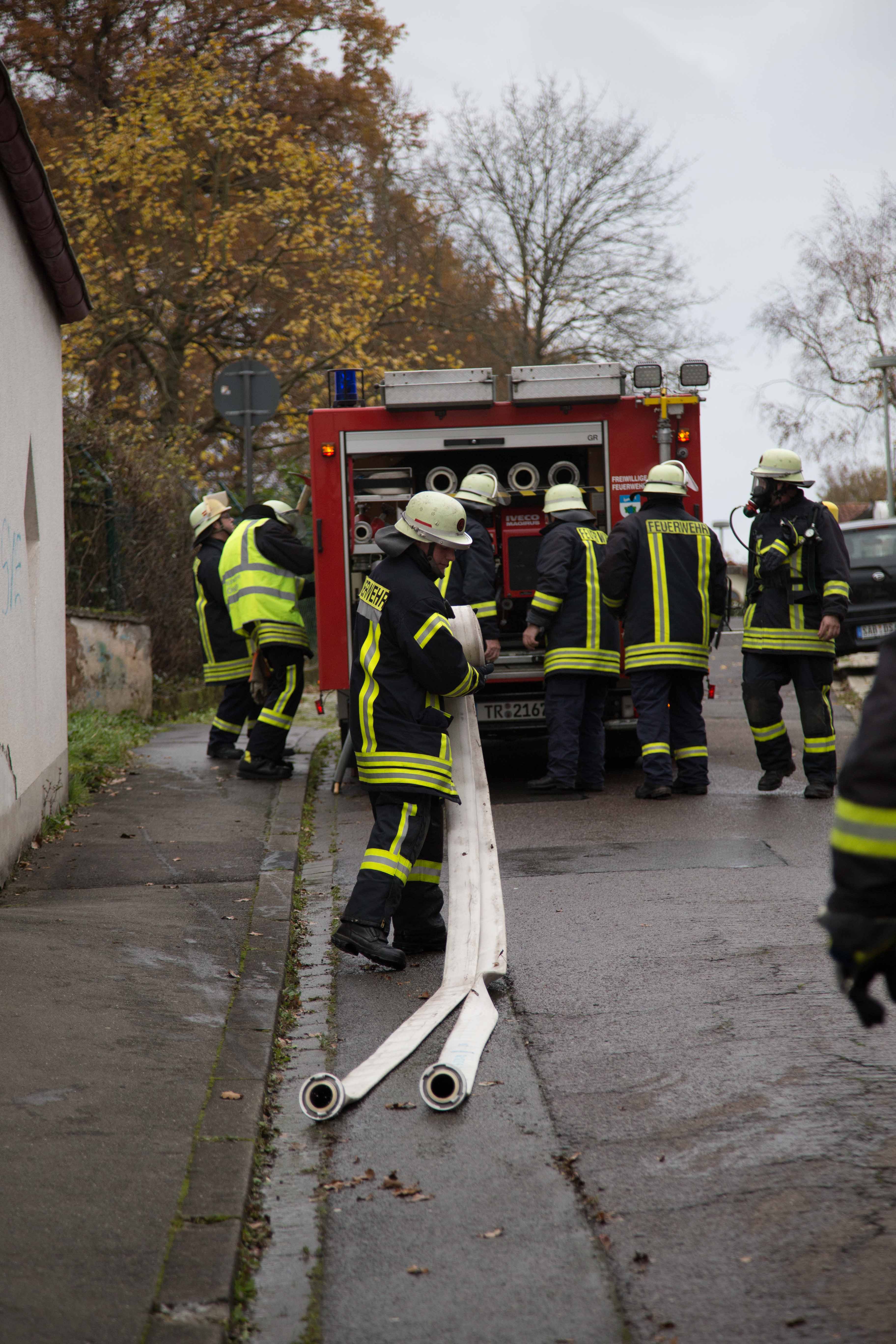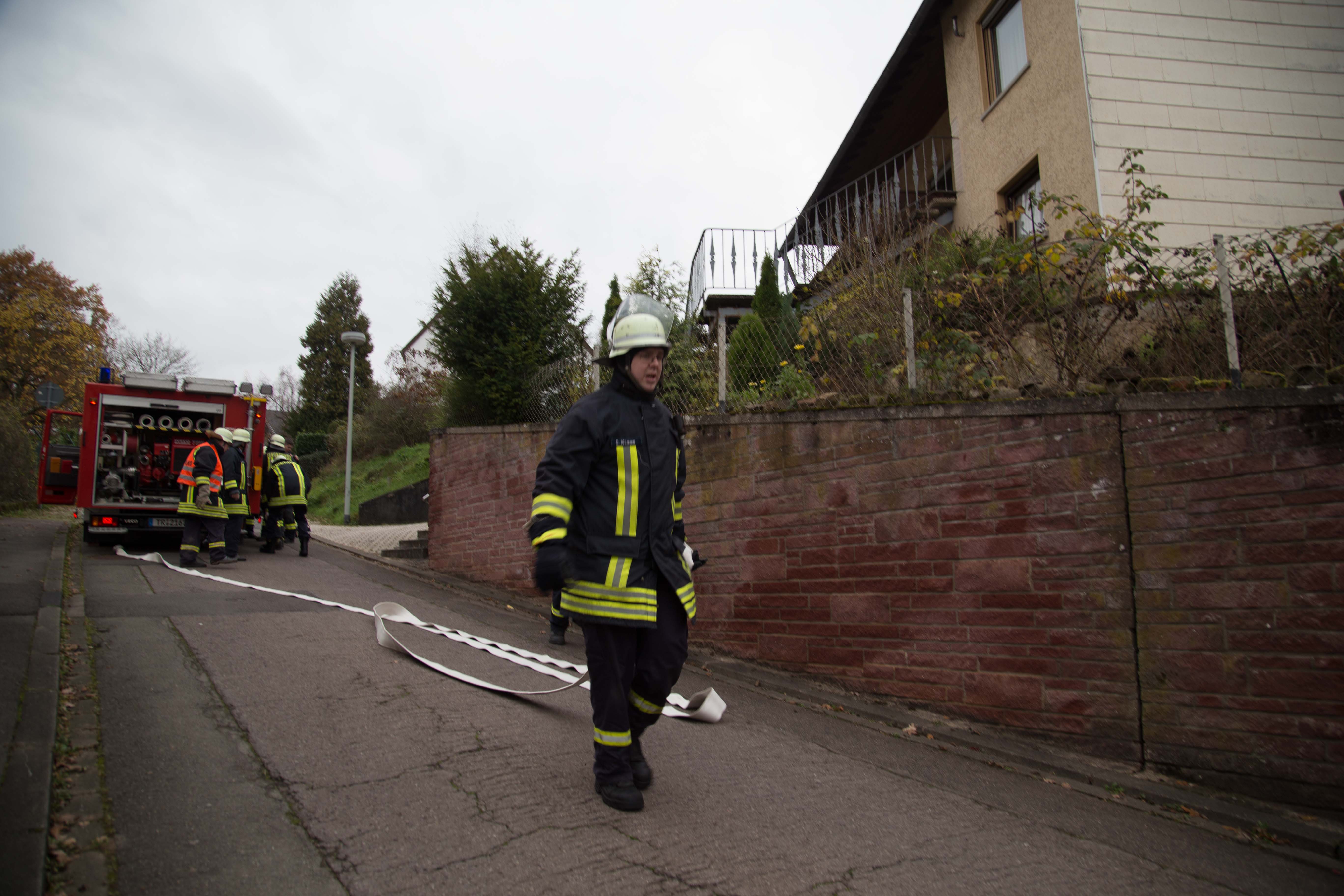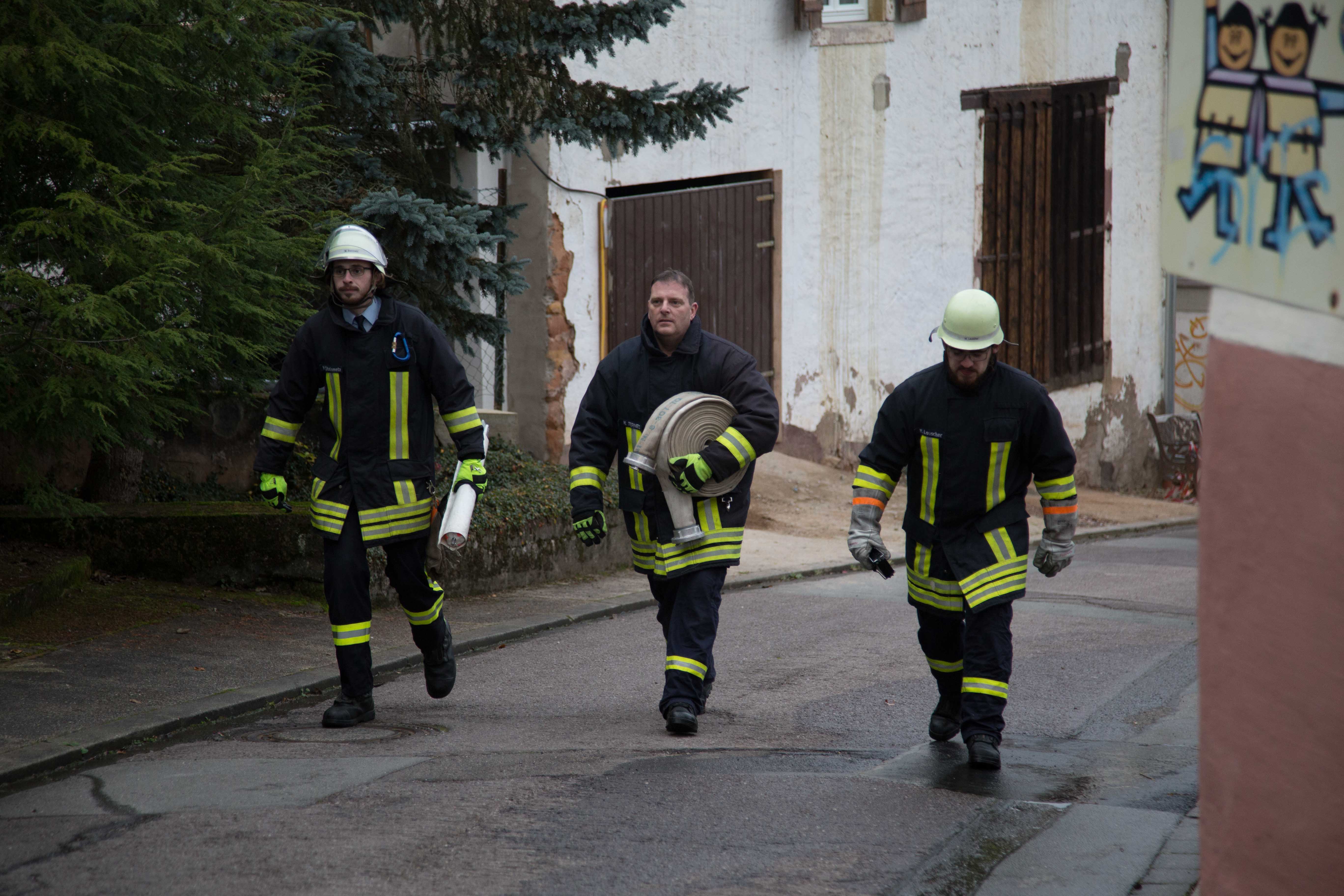 Es war die letzte Jahreshauptübung an gestrigen Samstag für Wehrführer Ralf Kieslich in Konz-Könen. Um 14.00 Uhr heulten mit Unterstützung der FEZ Konz die Sirenen in Könen. Im Jugendheim Am Hohberg entstand ein Schwelbrand mit drei Verletzen im Erdgeschoss. Eine Wasserversorgung aus zwei weiter entfernt liegenden Hydranten mussten aufgebaut werden, während sich der erste Angriffstrupp mit Atemschutzgeräten ausstattete und in das Gebäude vorrückte. Ein zweiter AGT Trupp machte sich zur Ablösung ebenfalls bereit. Viele Könener Bürger schauten die kommentierte Übung über ein Megaphon zu. Drei „Mimen“ konnten im Gebäude unter Bänken und Stühlen aus der Gefahrenzone gerettet werden. Der Wehrleiter der VG Konz Mario Gaspar, der neue Bürgermeister der VG Konz und der Stadt Konz, Joachim Weber und Ortsvorsteher Dr. Detlef Müller-Greis beobachteten den Übungsablauf.