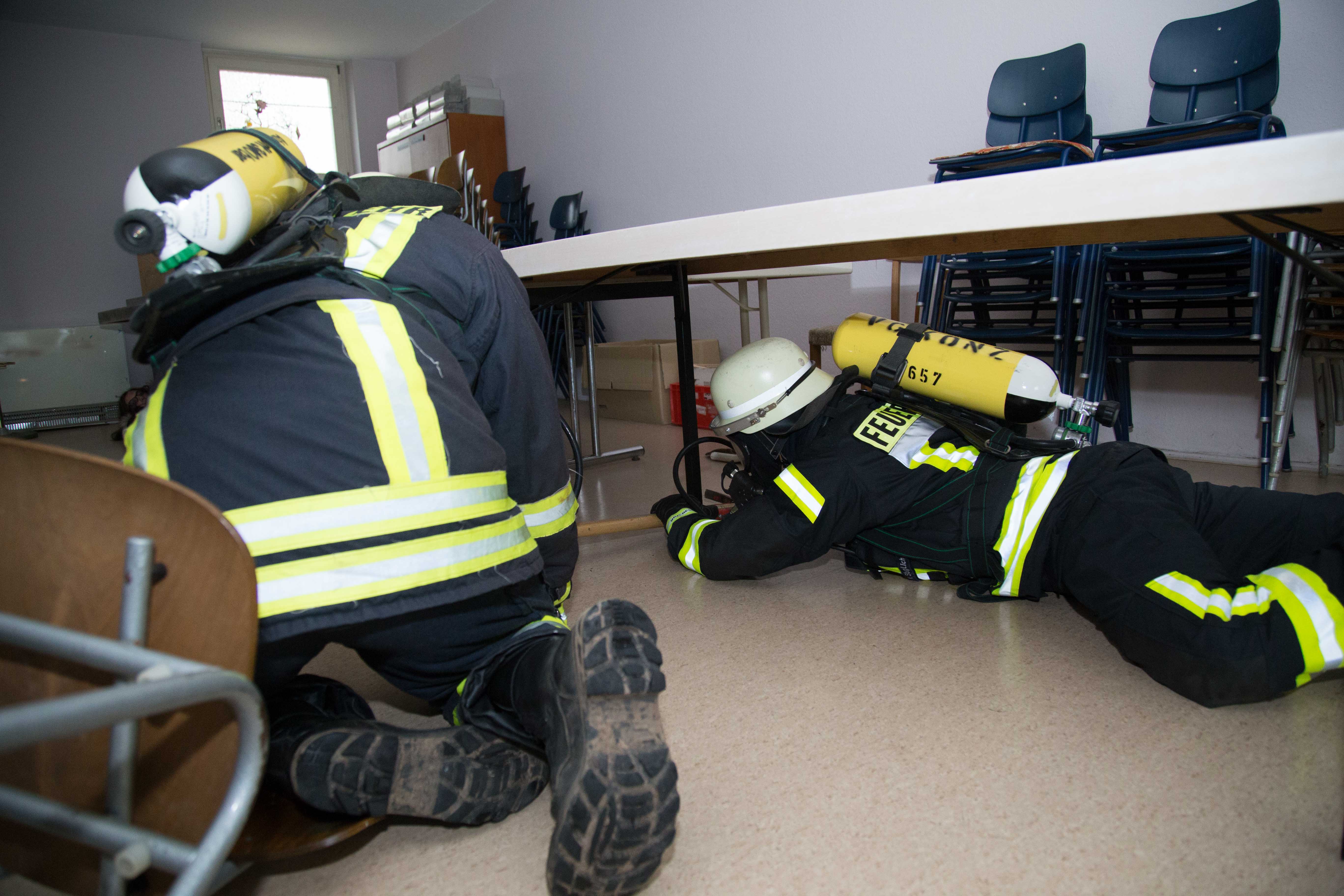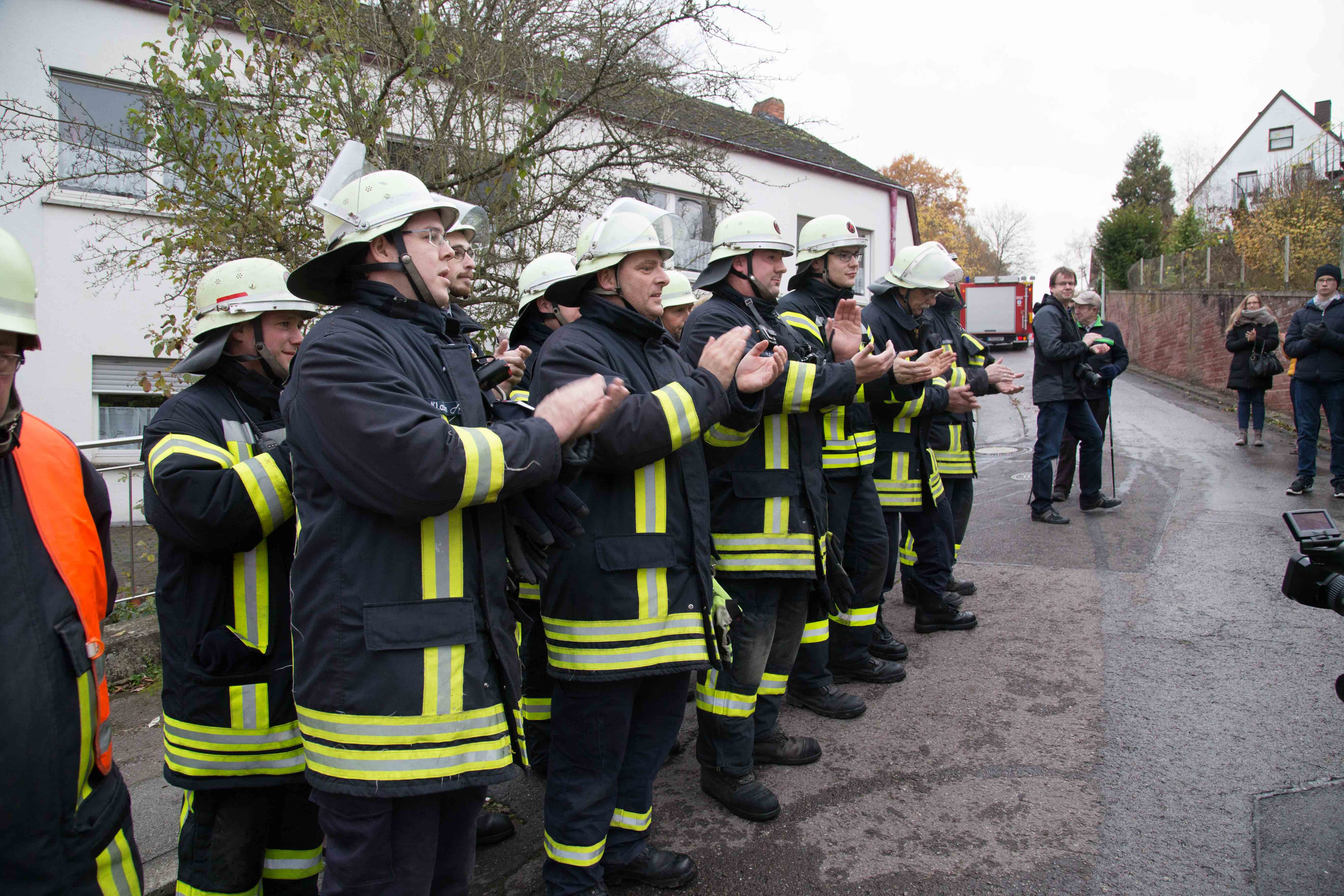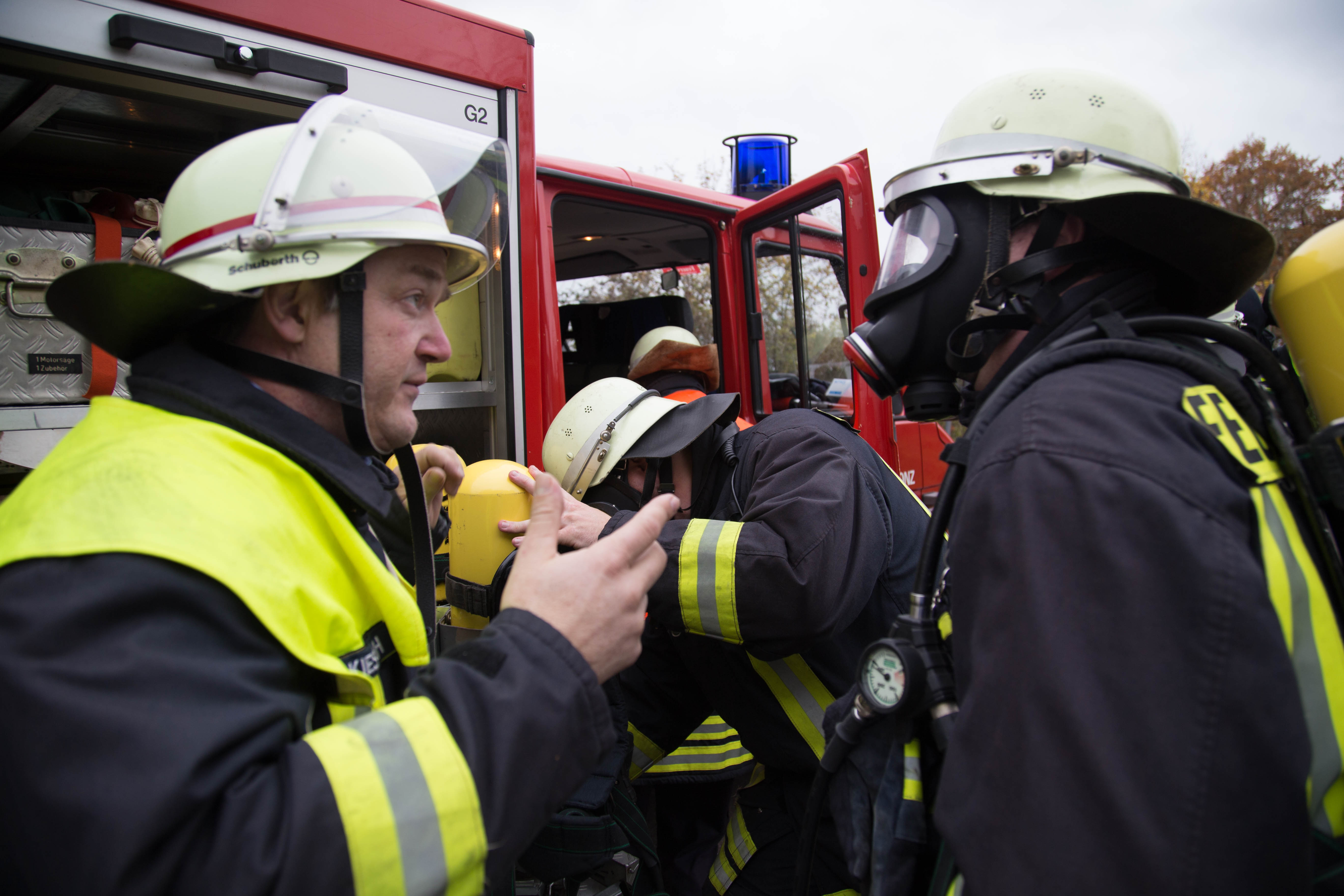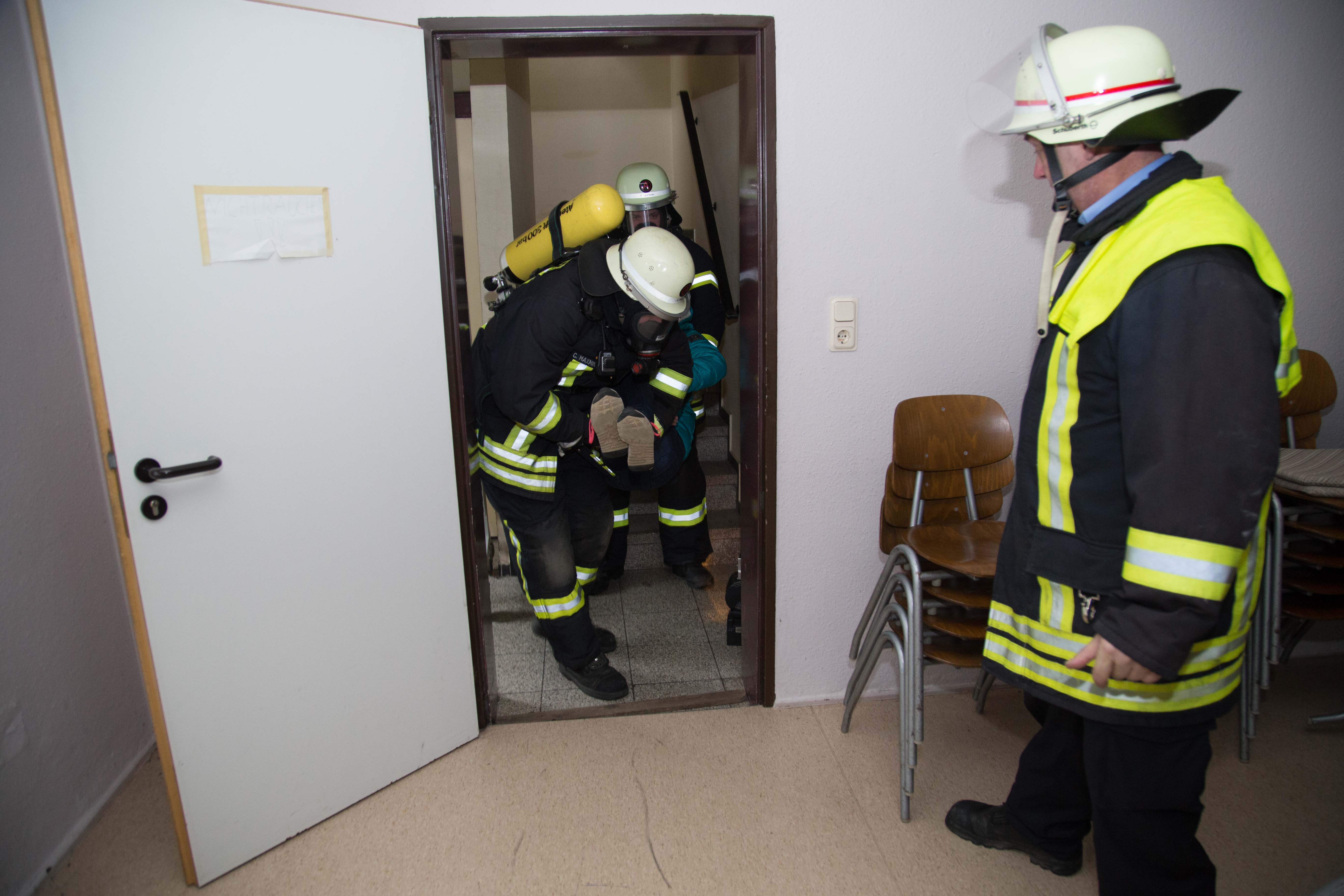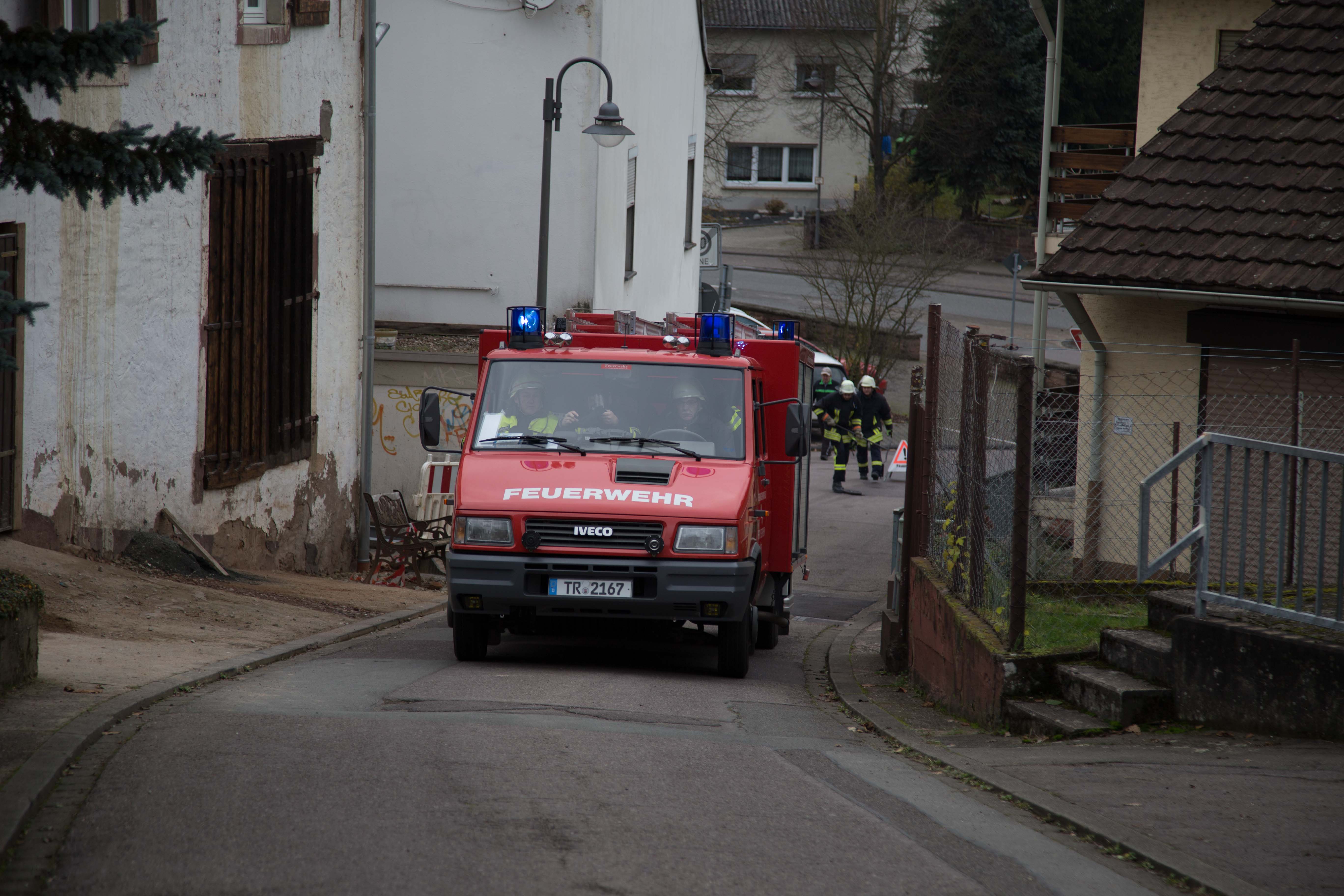 Es war die letzte Jahreshauptübung an gestrigen Samstag für Wehrführer Ralf Kieslich in Konz-Könen. Um 14.00 Uhr heulten mit Unterstützung der FEZ Konz die Sirenen in Könen. Im Jugendheim Am Hohberg entstand ein Schwelbrand mit drei Verletzen im Erdgeschoss. Eine Wasserversorgung aus zwei weiter entfernt liegenden Hydranten mussten aufgebaut werden, während sich der erste Angriffstrupp mit Atemschutzgeräten ausstattete und in das Gebäude vorrückte. Ein zweiter AGT Trupp machte sich zur Ablösung ebenfalls bereit. Viele Könener Bürger schauten die kommentierte Übung über ein Megaphon zu. Drei „Mimen“ konnten im Gebäude unter Bänken und Stühlen aus der Gefahrenzone gerettet werden. Der Wehrleiter der VG Konz Mario Gaspar, der neue Bürgermeister der VG Konz und der Stadt Konz, Joachim Weber und Ortsvorsteher Dr. Detlef Müller-Greis beobachteten den Übungsablauf.