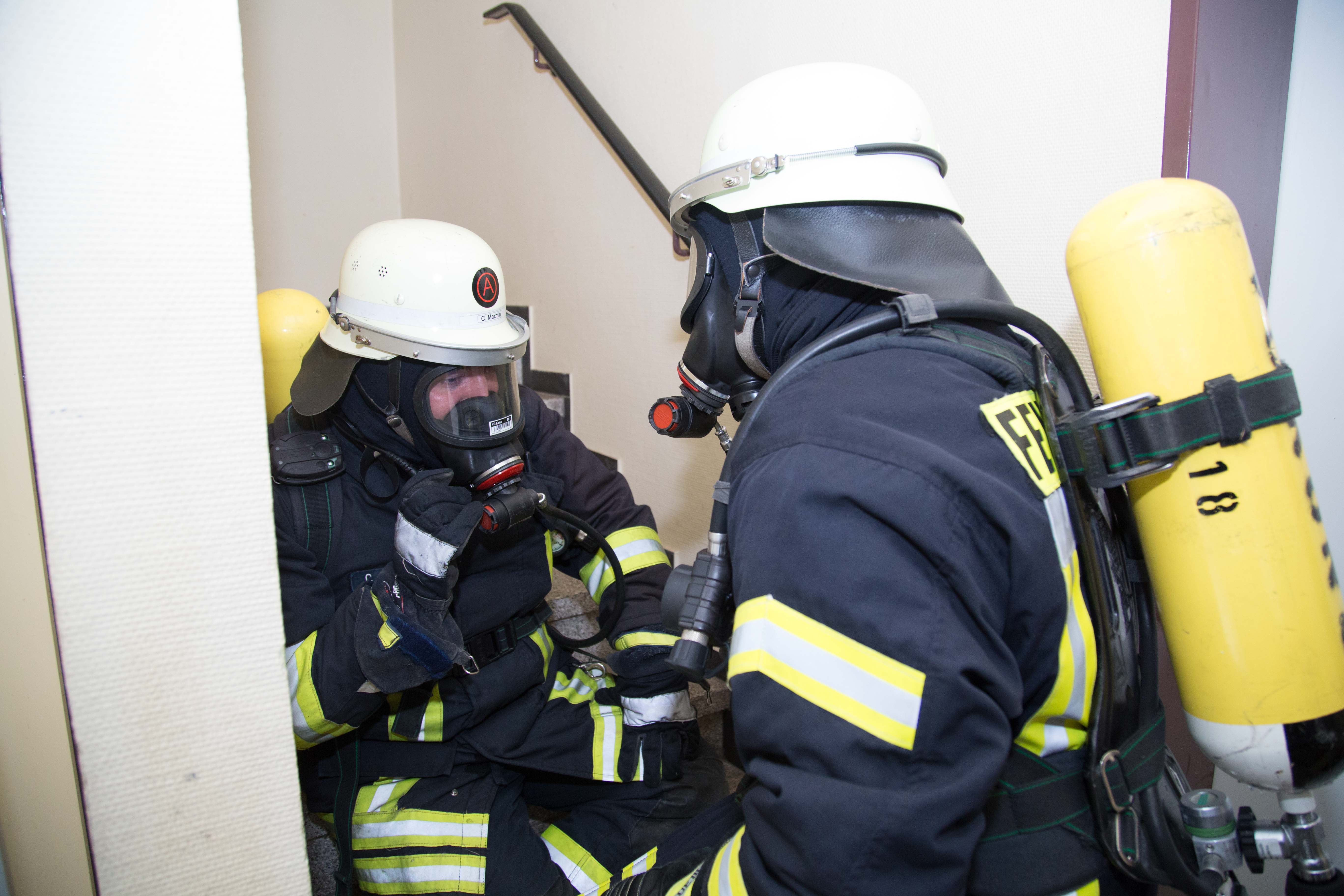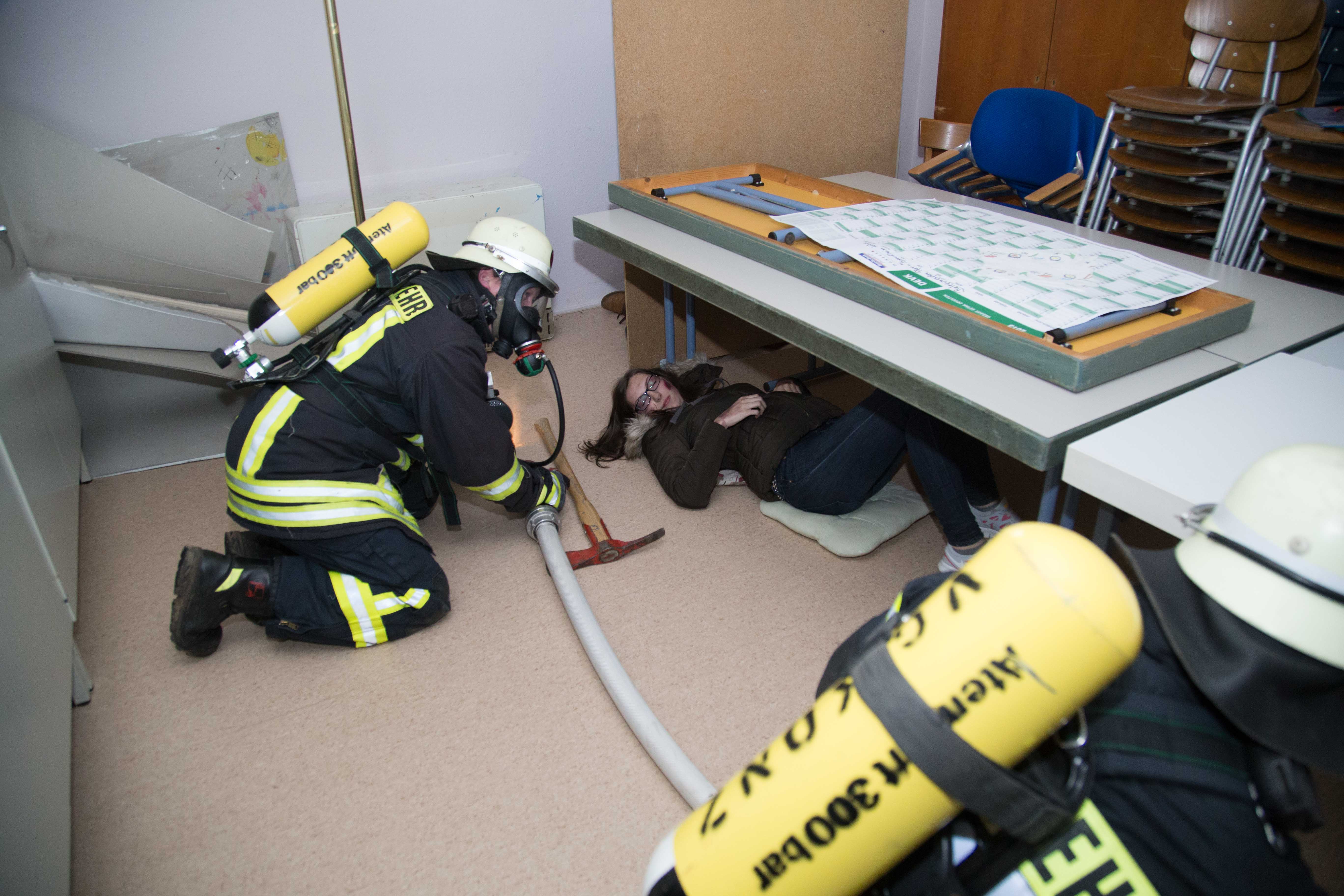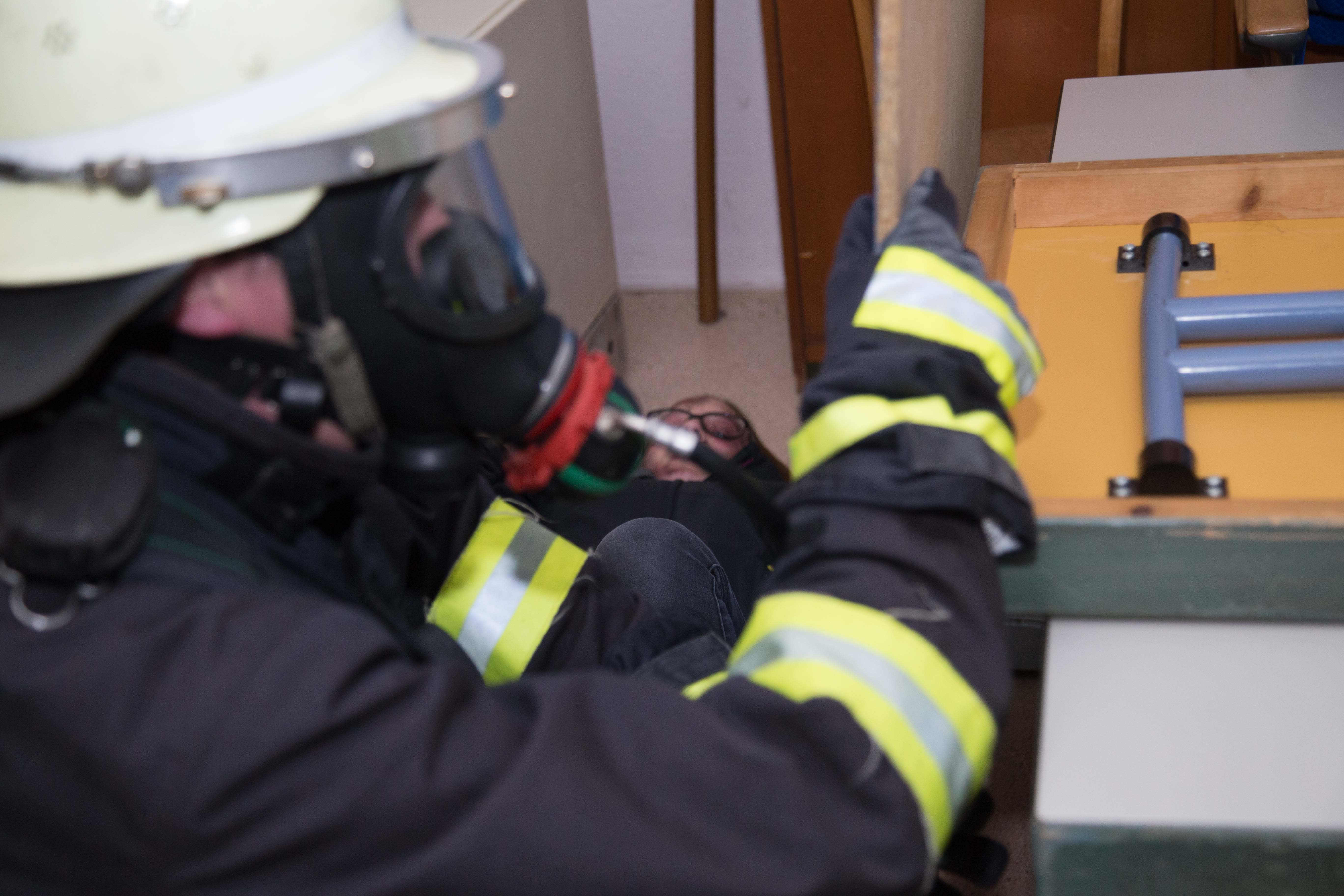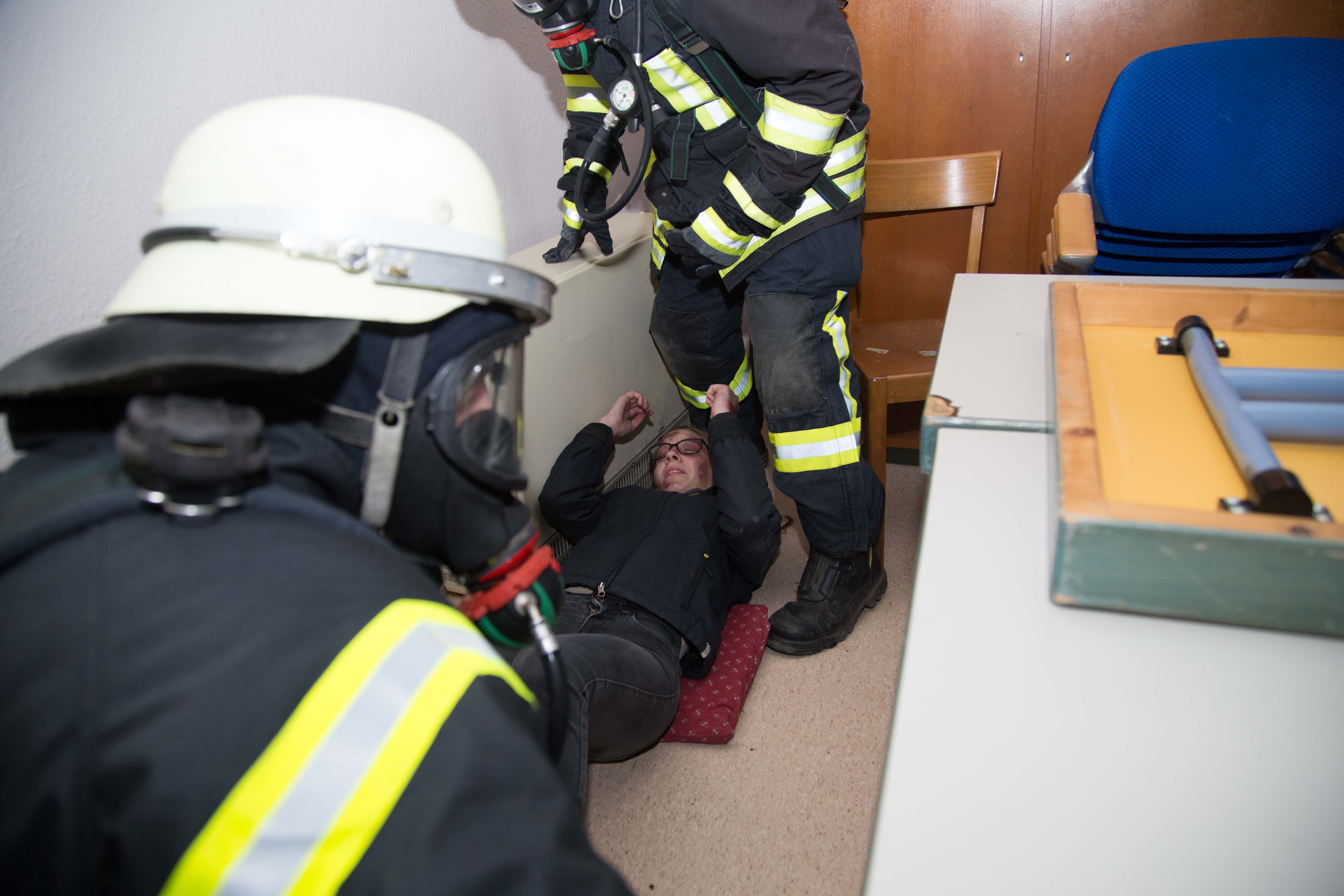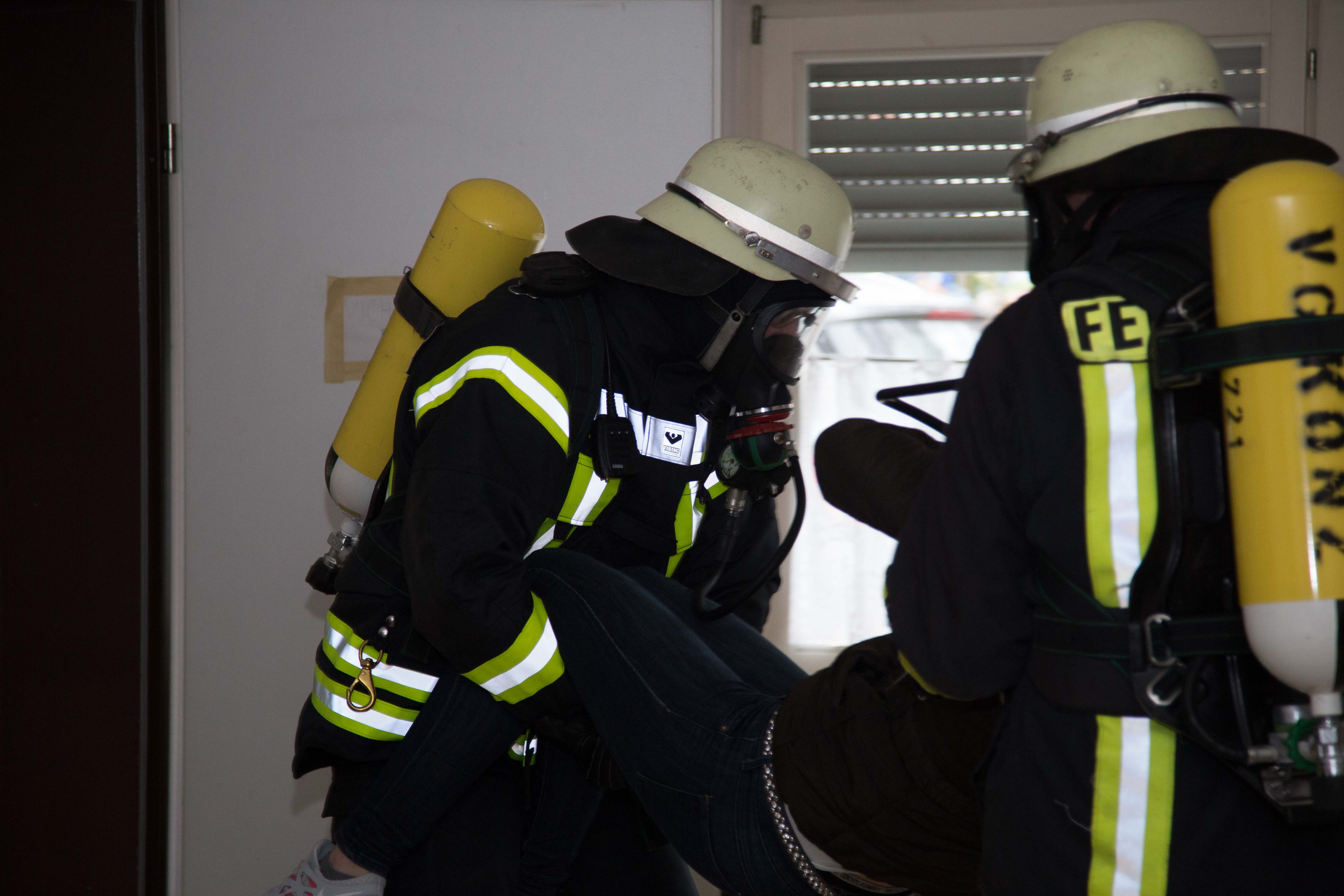 Es war die letzte Jahreshauptübung an gestrigen Samstag für Wehrführer Ralf Kieslich in Konz-Könen. Um 14.00 Uhr heulten mit Unterstützung der FEZ Konz die Sirenen in Könen. Im Jugendheim Am Hohberg entstand ein Schwelbrand mit drei Verletzen im Erdgeschoss. Eine Wasserversorgung aus zwei weiter entfernt liegenden Hydranten mussten aufgebaut werden, während sich der erste Angriffstrupp mit Atemschutzgeräten ausstattete und in das Gebäude vorrückte. Ein zweiter AGT Trupp machte sich zur Ablösung ebenfalls bereit. Viele Könener Bürger schauten die kommentierte Übung über ein Megaphon zu. Drei „Mimen“ konnten im Gebäude unter Bänken und Stühlen aus der Gefahrenzone gerettet werden. Der Wehrleiter der VG Konz Mario Gaspar, der neue Bürgermeister der VG Konz und der Stadt Konz, Joachim Weber und Ortsvorsteher Dr. Detlef Müller-Greis beobachteten den Übungsablauf.