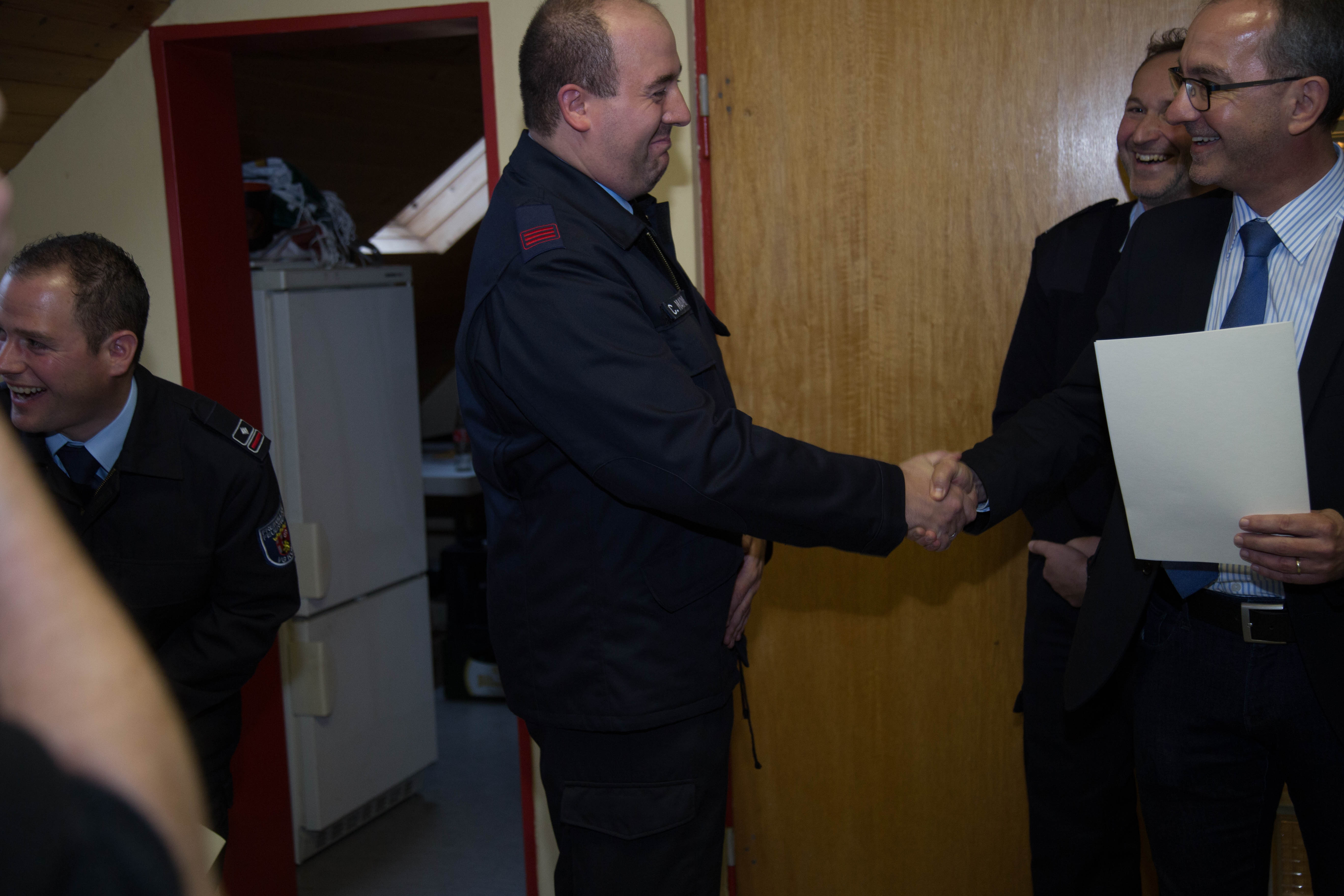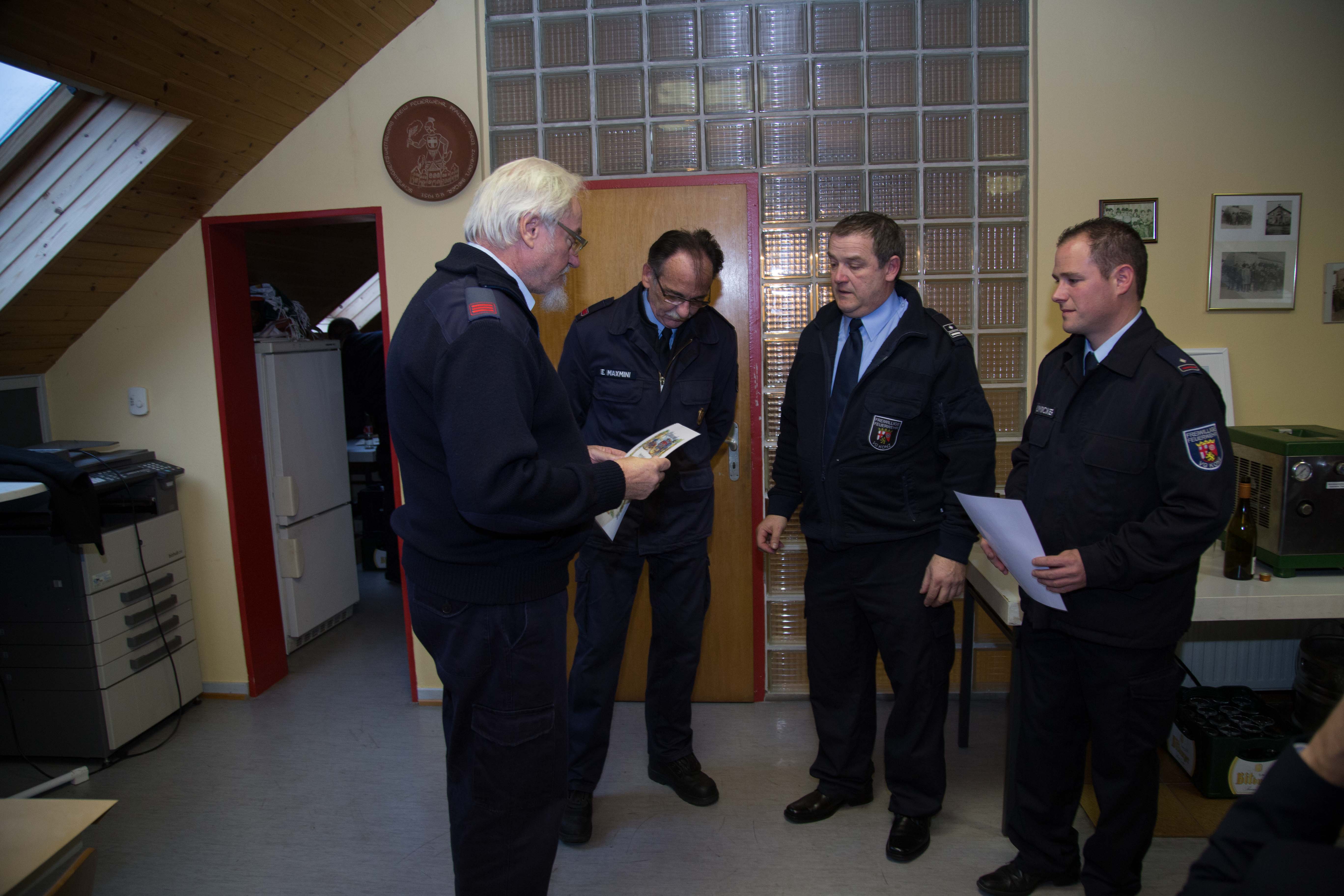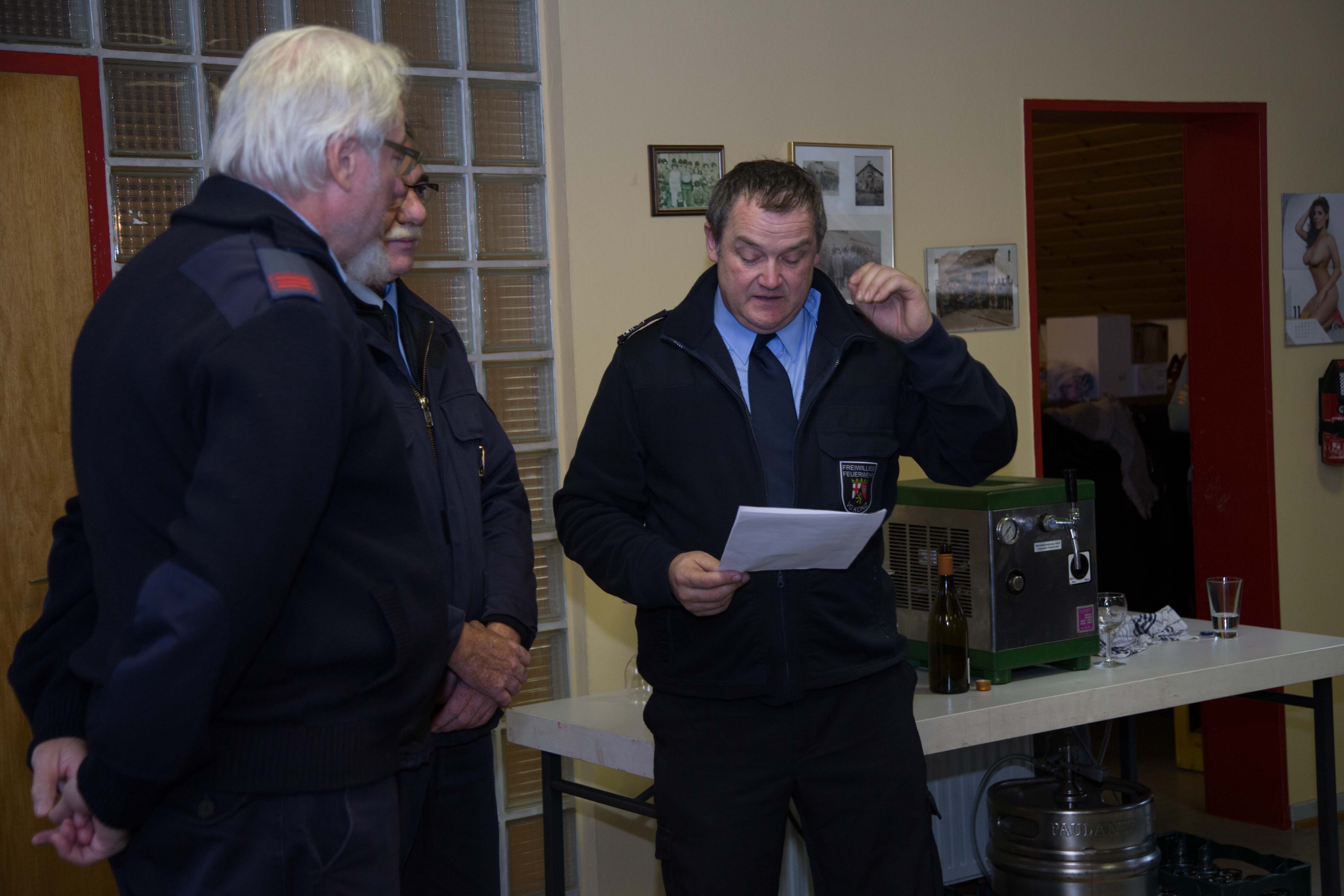 Nach Abschluss der Übung traf man sich im Gerätehaus zur den wehmütigen Verabschiedungen und Neuverpflichtungen.