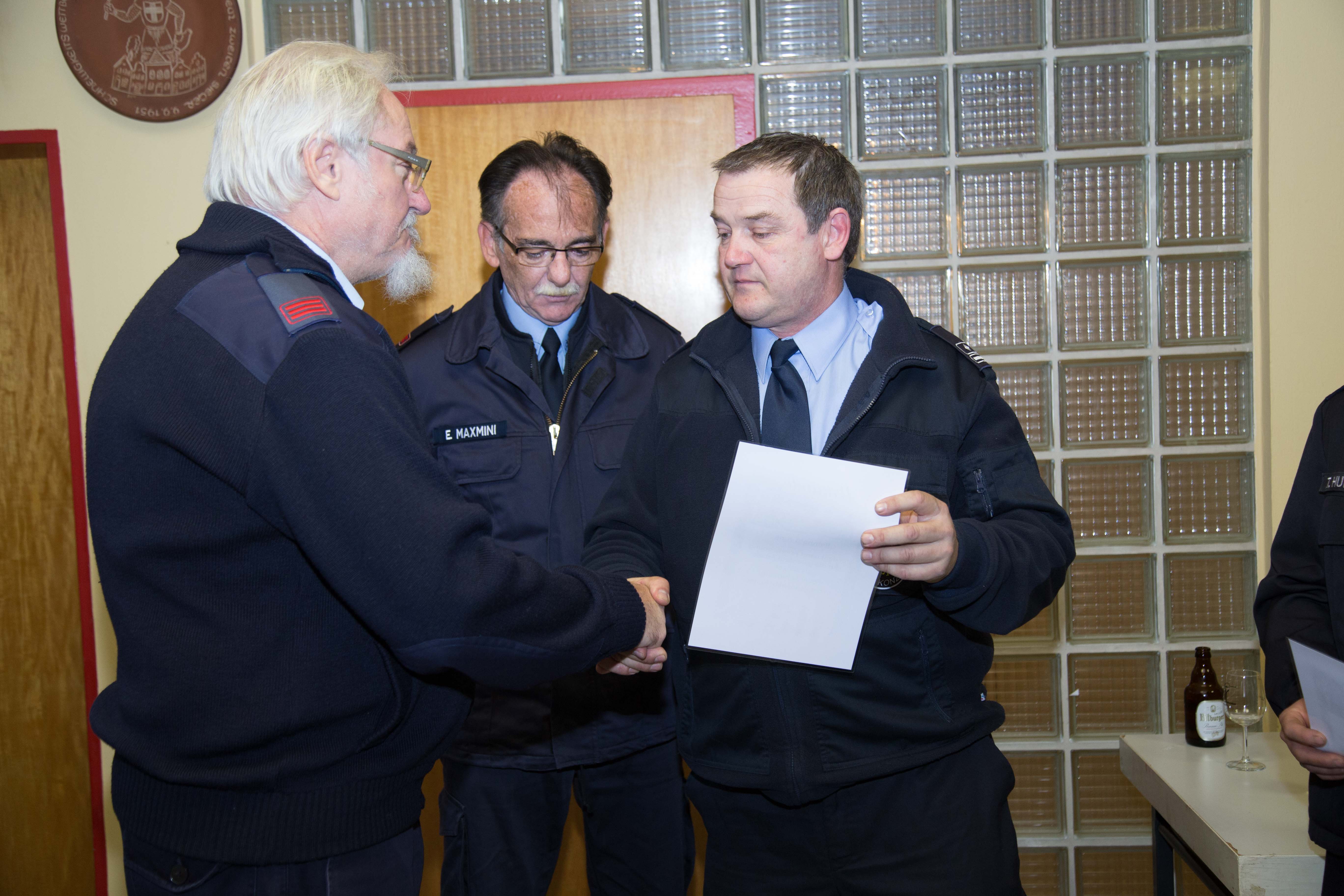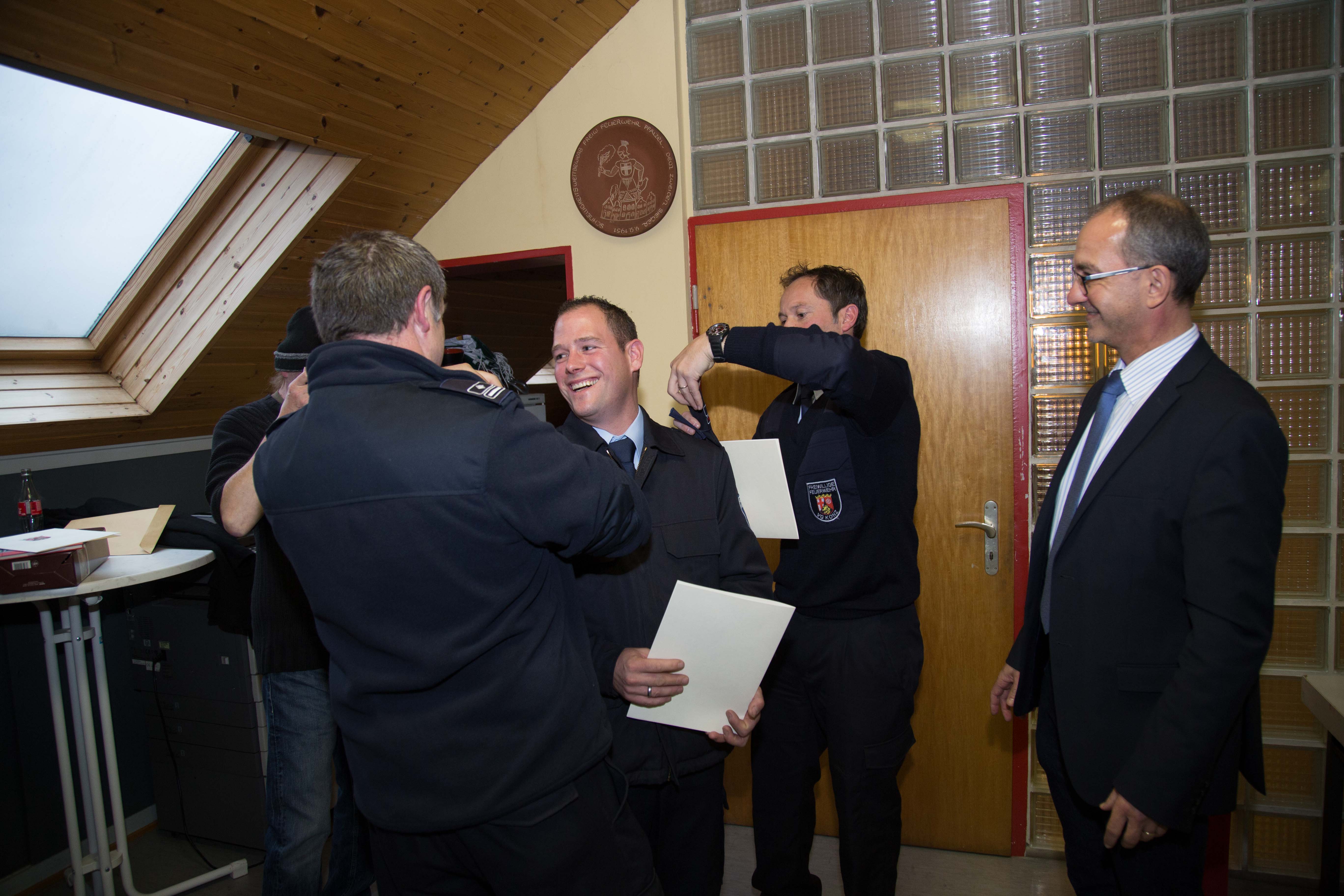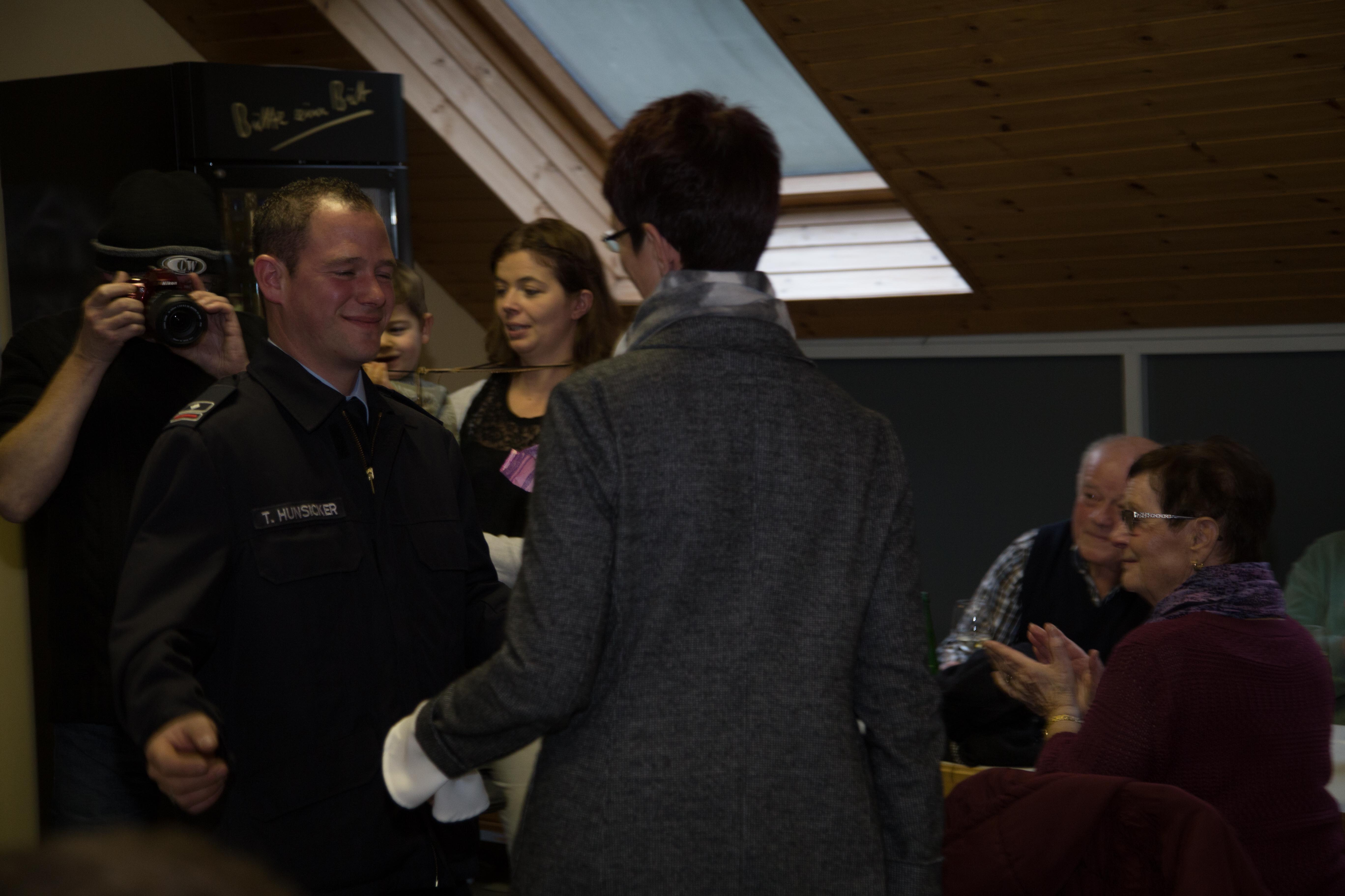 Nach Abschluss der Übung traf man sich im Gerätehaus zur den wehmütigen Verabschiedungen und Neuverpflichtungen.