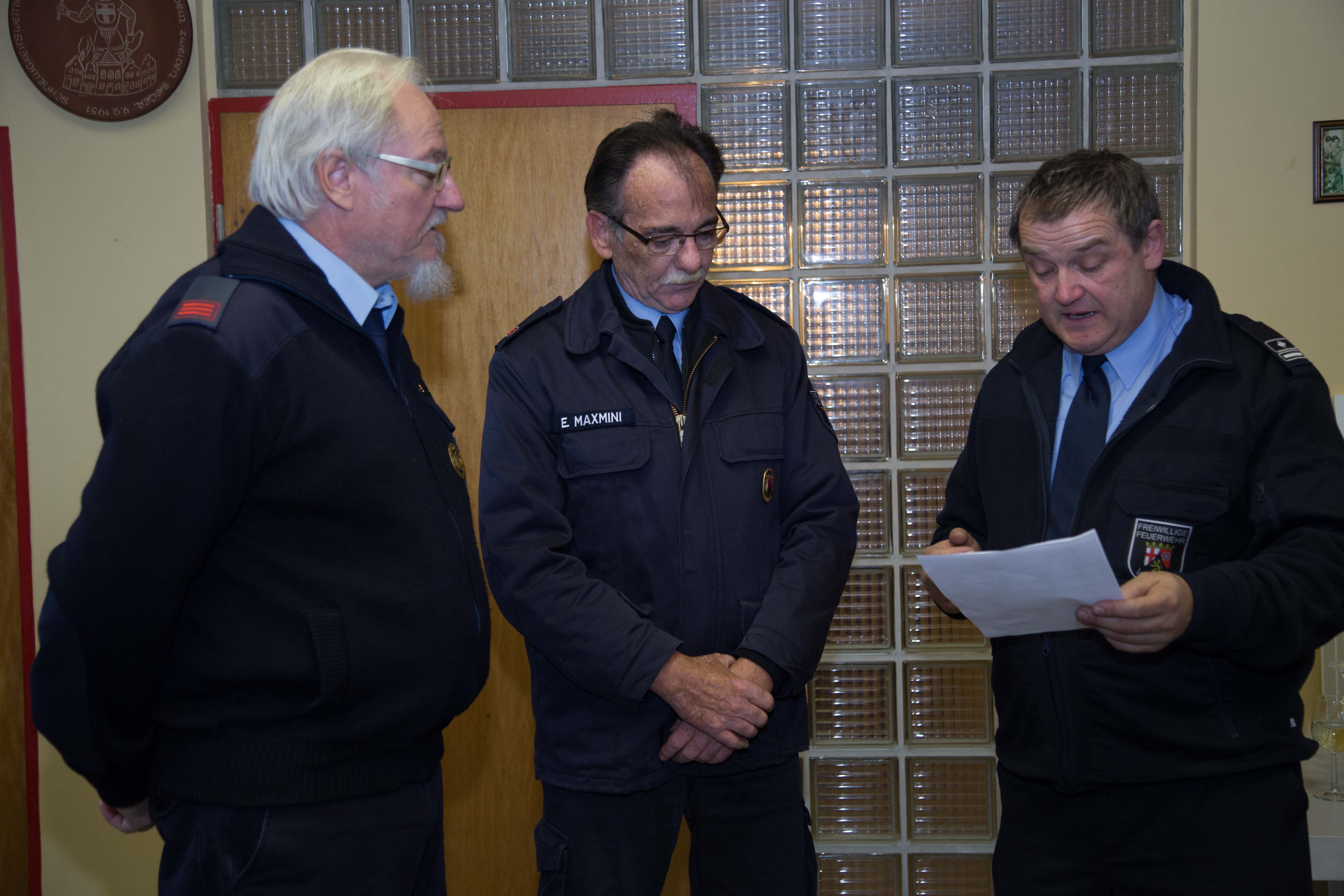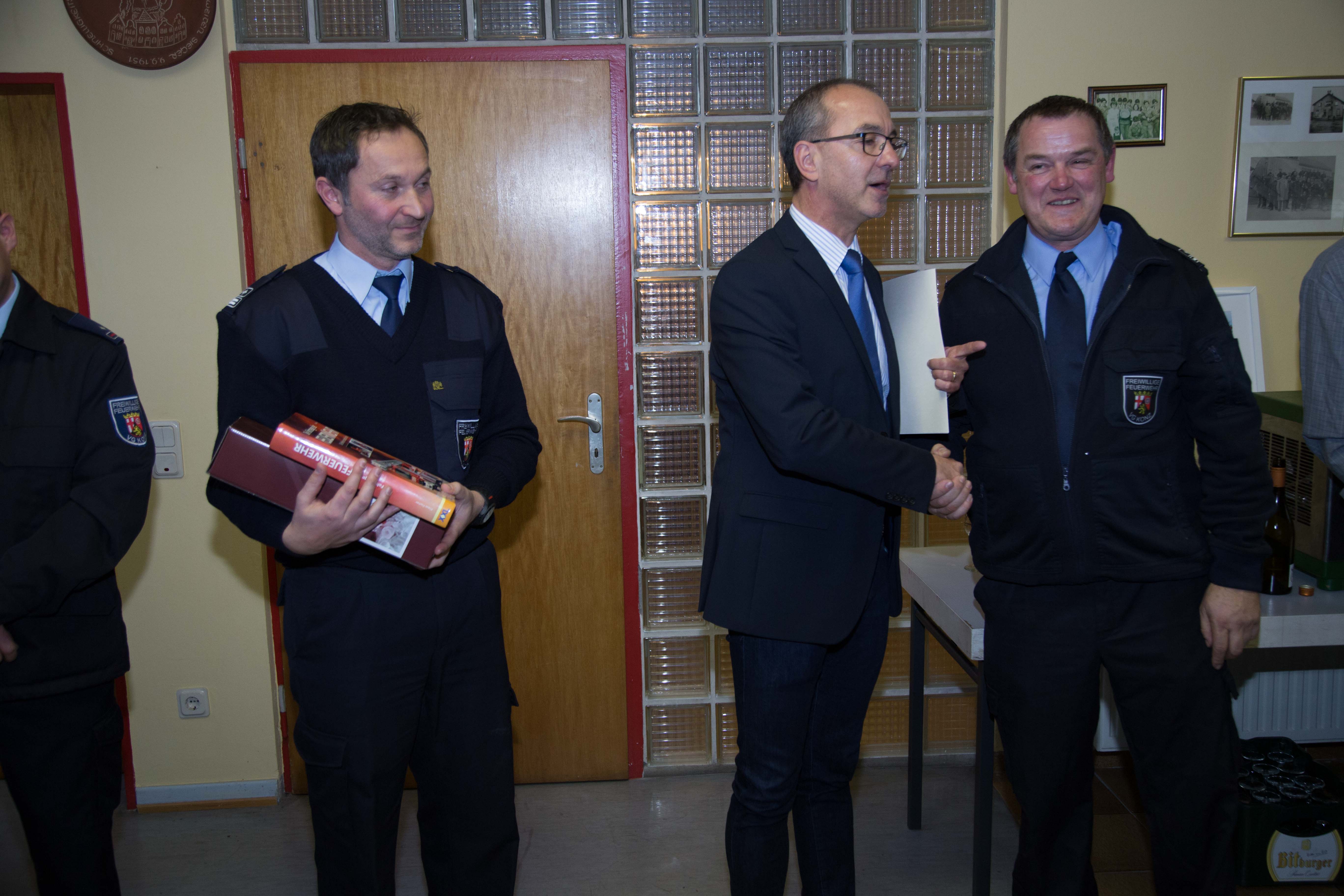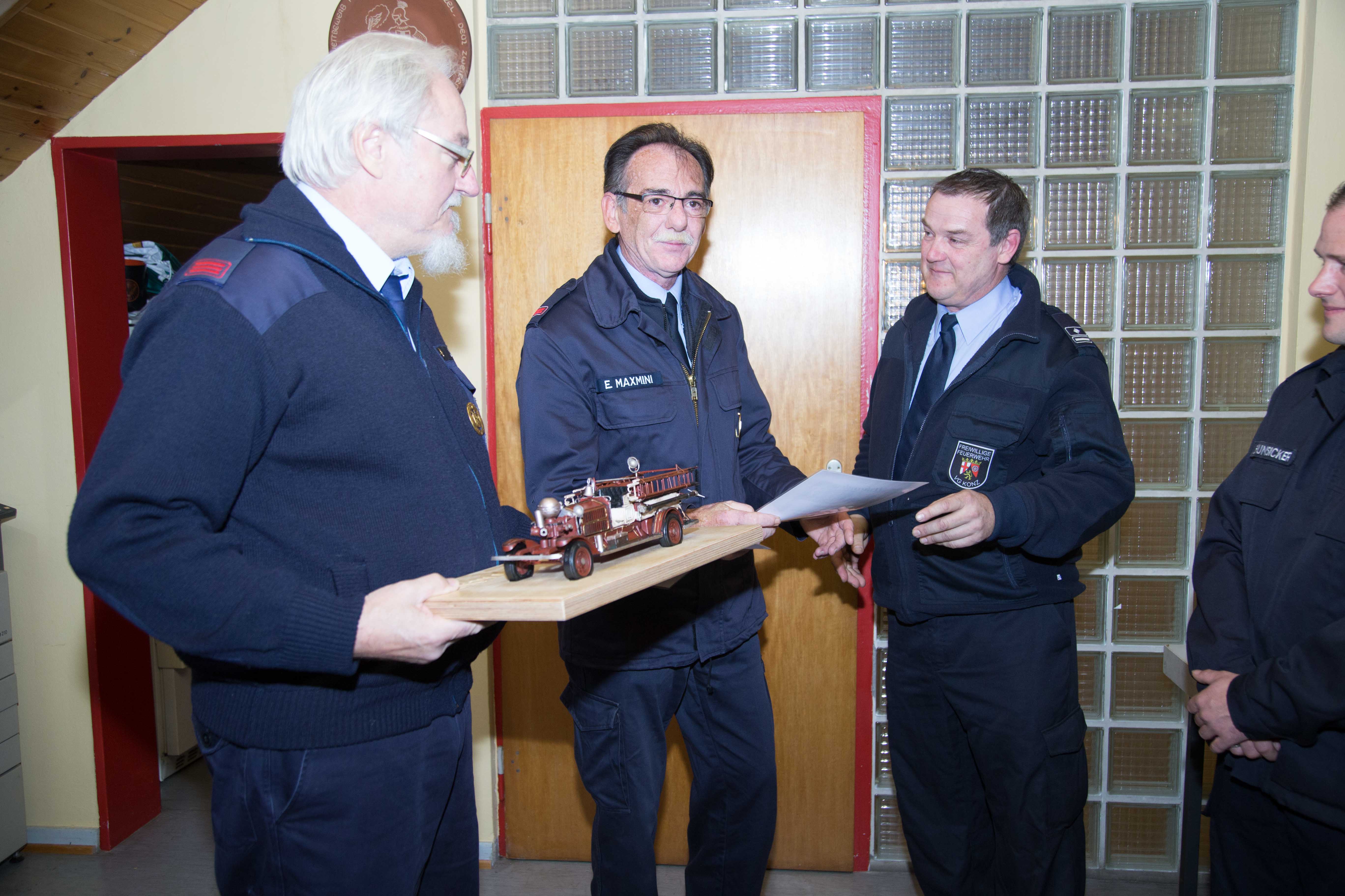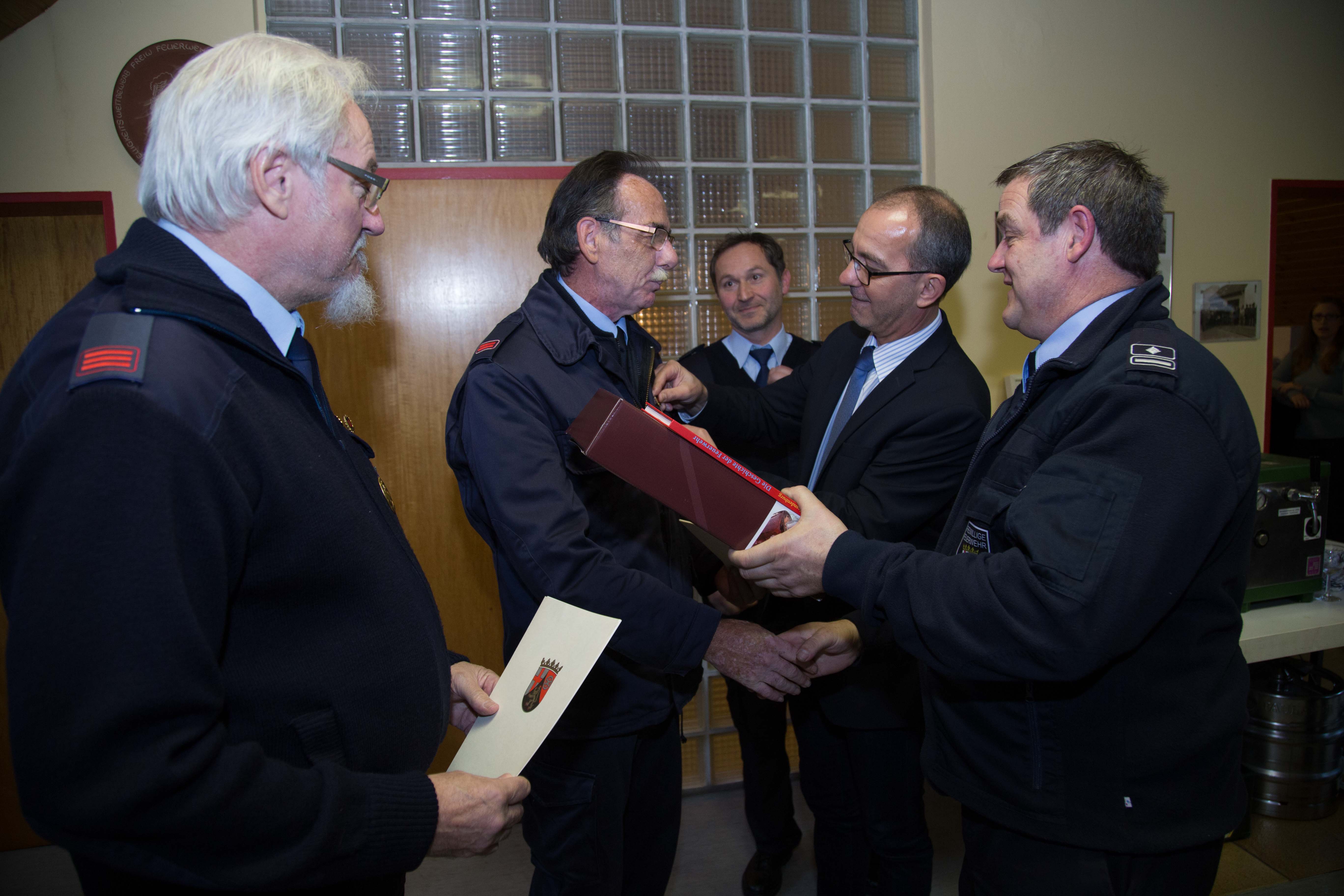 Den besonderen Dank galt zunächst den Verabschiedungen aus dem aktiven Dienst nach 48 Jahren in der Feuerwehr Könen für Reinhard Junk und Erwin Maximini. Solch ein lange Zeit als ehrenamtlicher und freiwilliger Kamerad in der Feuerwehr ist nur mit Unterstützung der Partner und Familie möglich. Ein großes Dankeschön galt auch den Kameradinnen und Kameraden in der „Familie“ der Feuerwehr Könen.Die Urkunden, das Ehrenzeichen sowie Präsente, auch für die Ehepartner wurden seitens der Verwaltung und der Wehrleitung überreicht.
