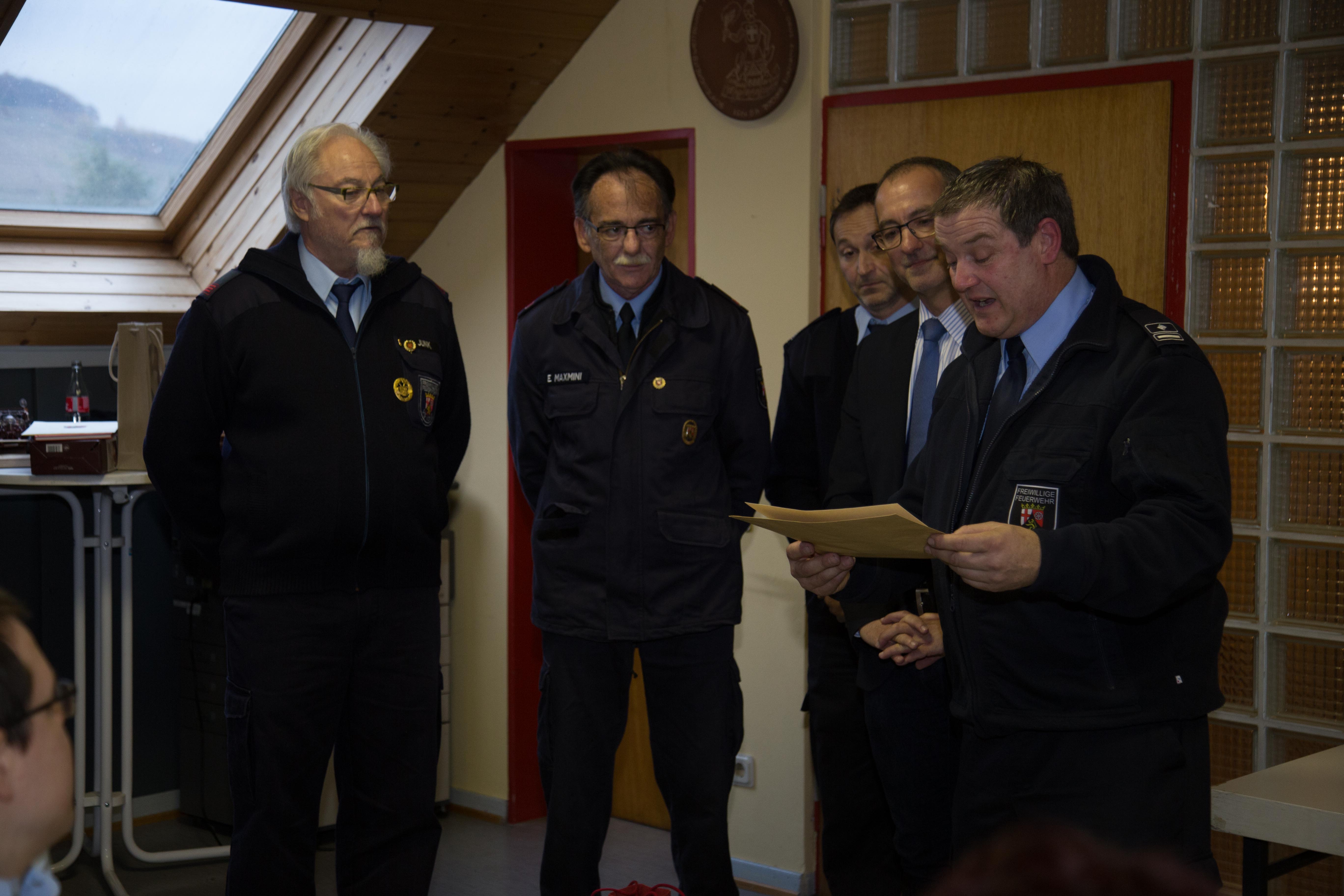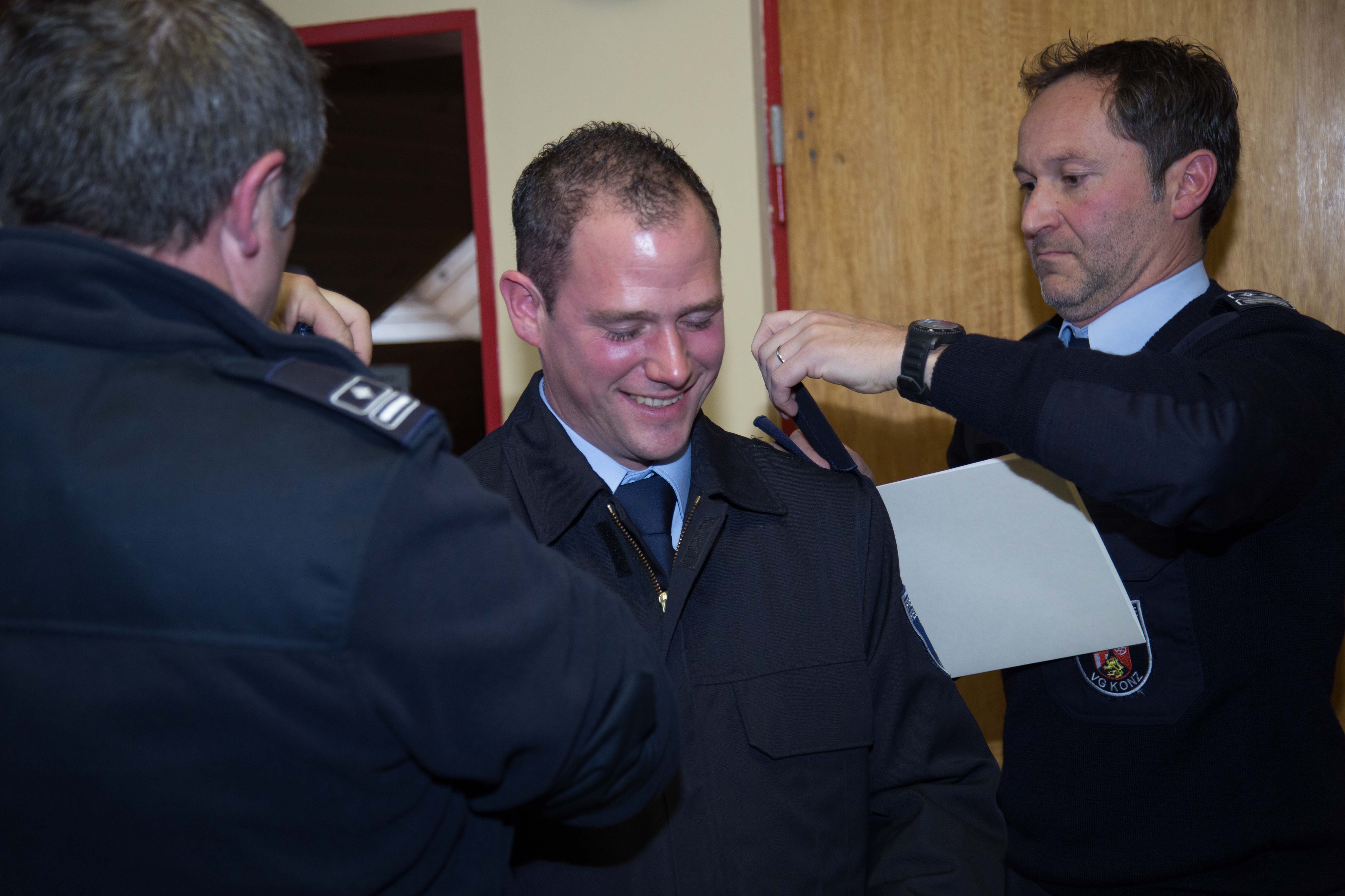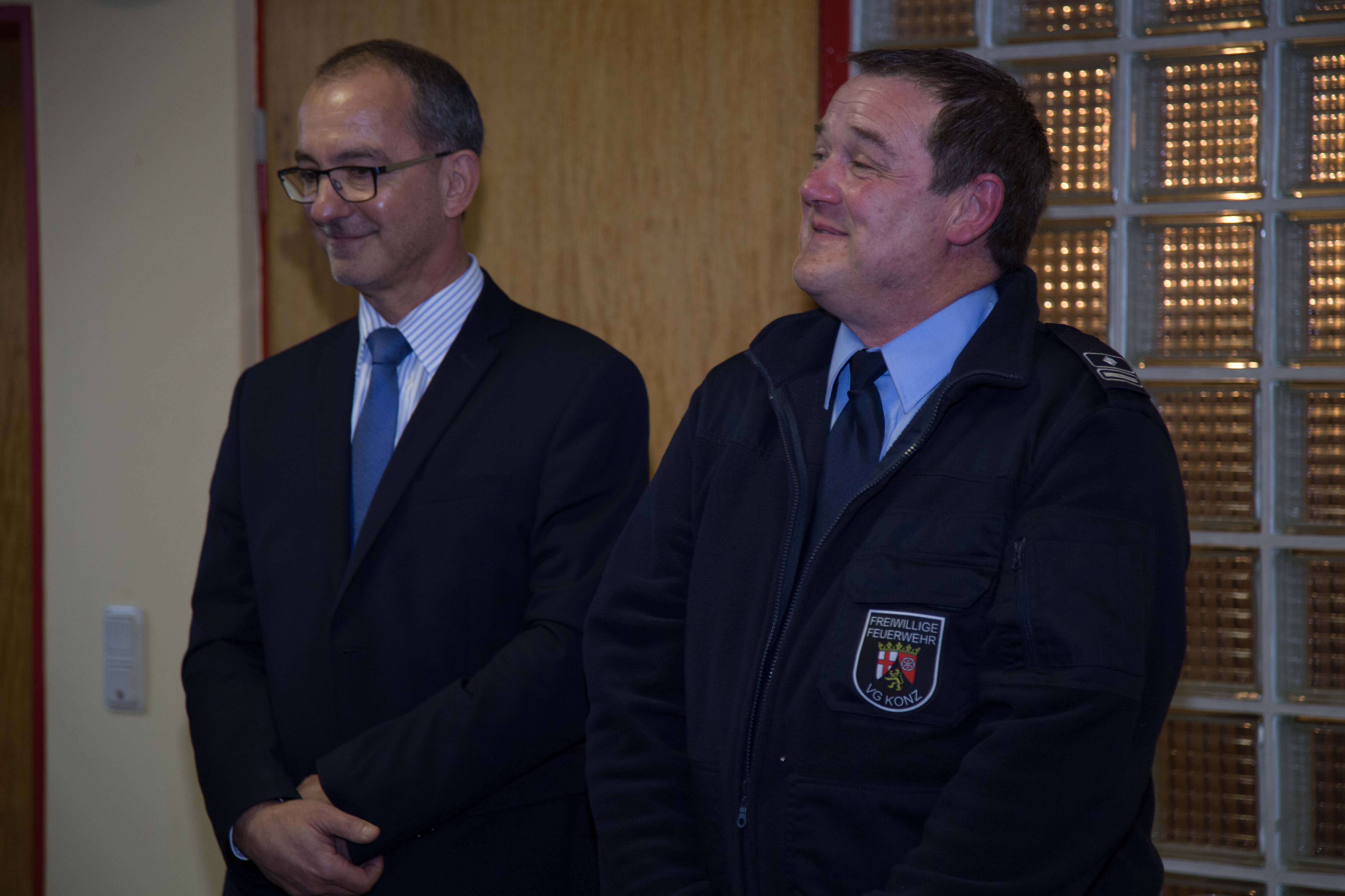 Der Höhepunkt galt der Verabschiedung von Wehrführer Ralf Kieslich. Schon vorher war der gewählte Wehrführer Ralf Kieslich kameradschaftlich bereit, sein Ehrenamt an jüngere Nachfolger zu übertragen. Es fällt nicht leicht, so Ralf Kieslich. Seine Ehrlichkeit und sein Charakter veranlassten auch Mario Gaspar zu Anekdoten während Ihrer gemeinsamen Ausbildung. Ralf Kieslich bleibt der Feuerwehr Könen auch zukünftig erhalten, den seit fünf Jahren ist er auch der stellvertretende Wehrleiter der VG Konz. Zu seinem Nachfolger wurde Timo Hunsicker zunächst mit der Wehrführung beauftragt und urkundlich ernannt, die Schulterklappen angebracht. (es stehen noch Ausbildungen an) Zu seinen Stellvertreter wurde Christoph Maximini ernannt.