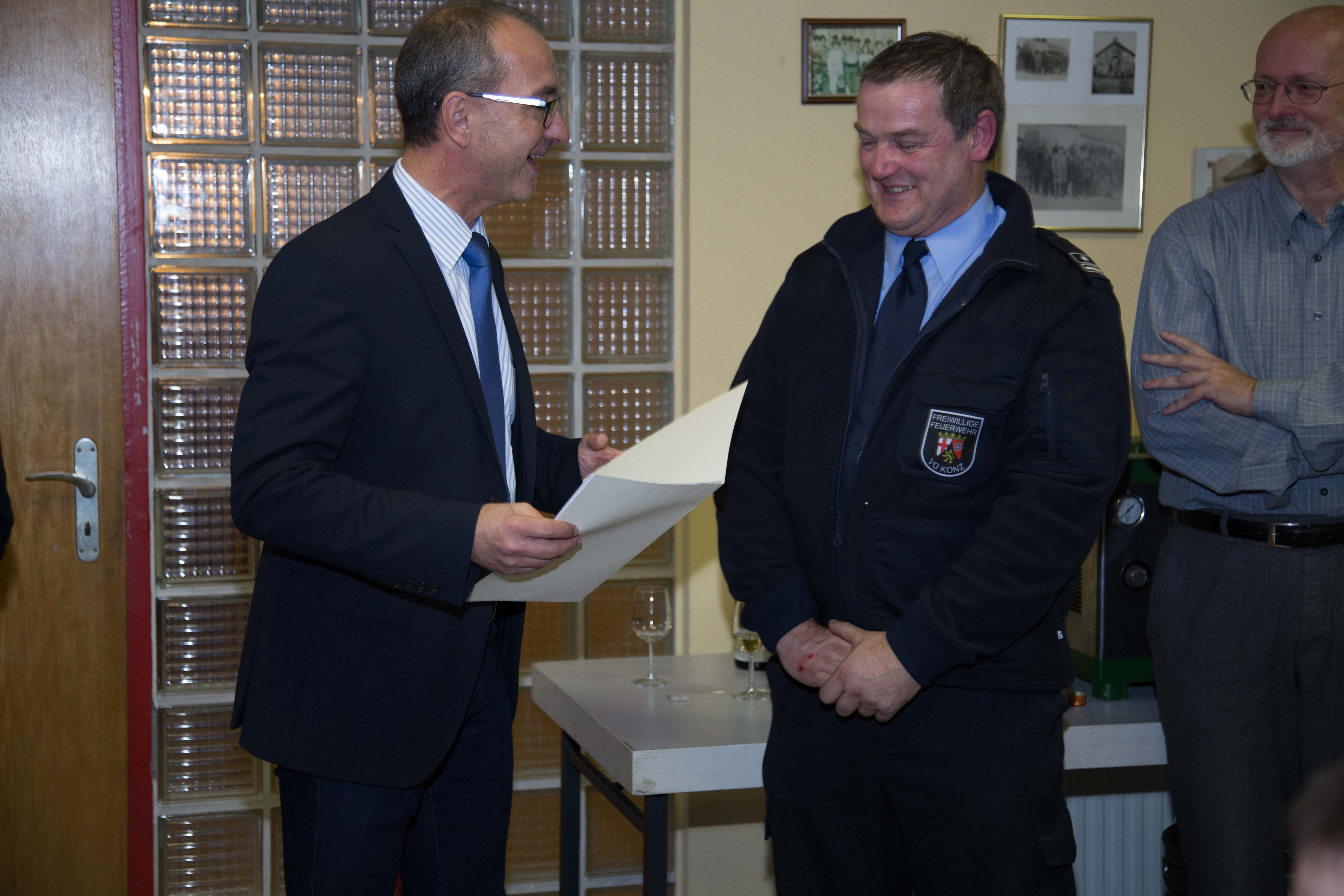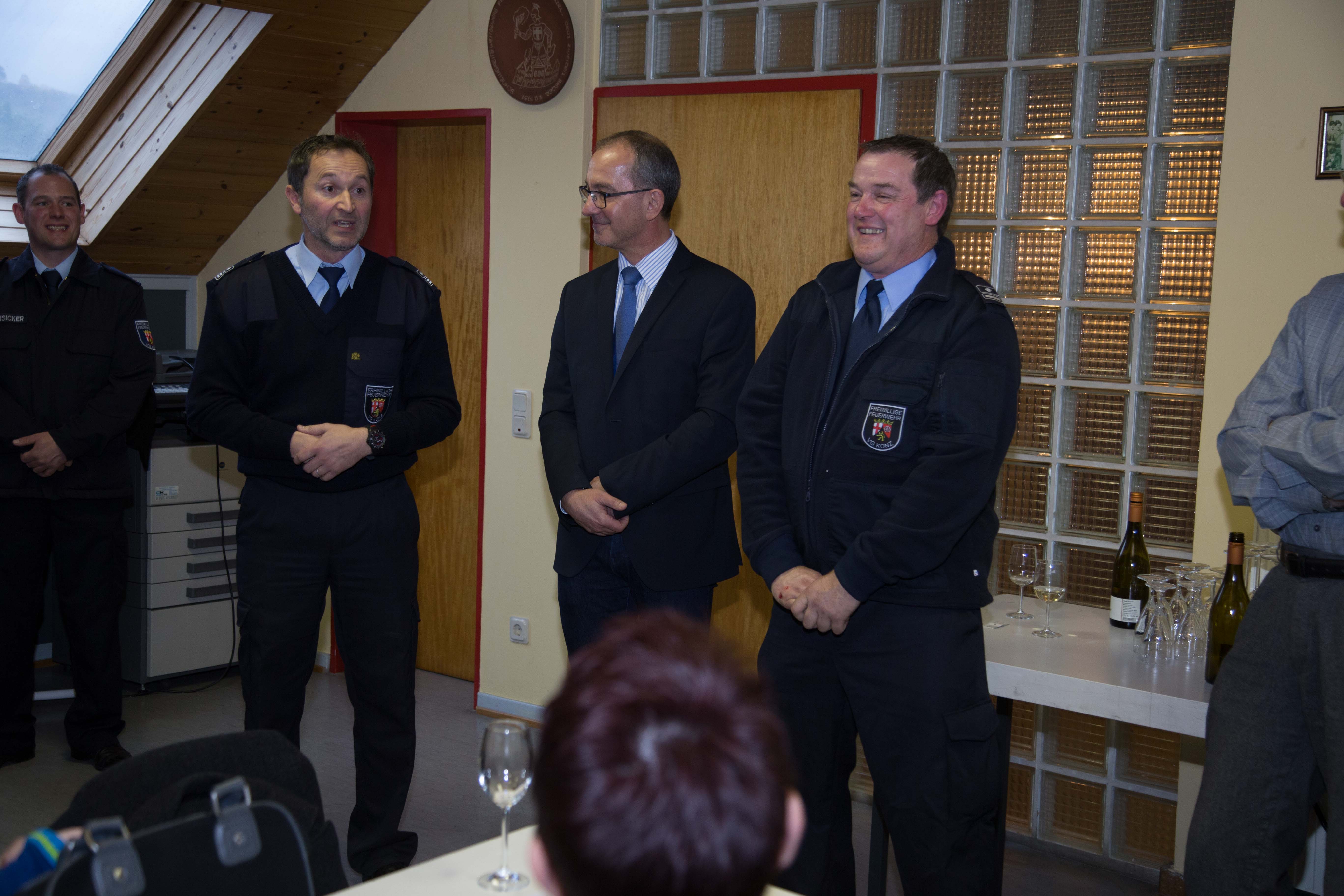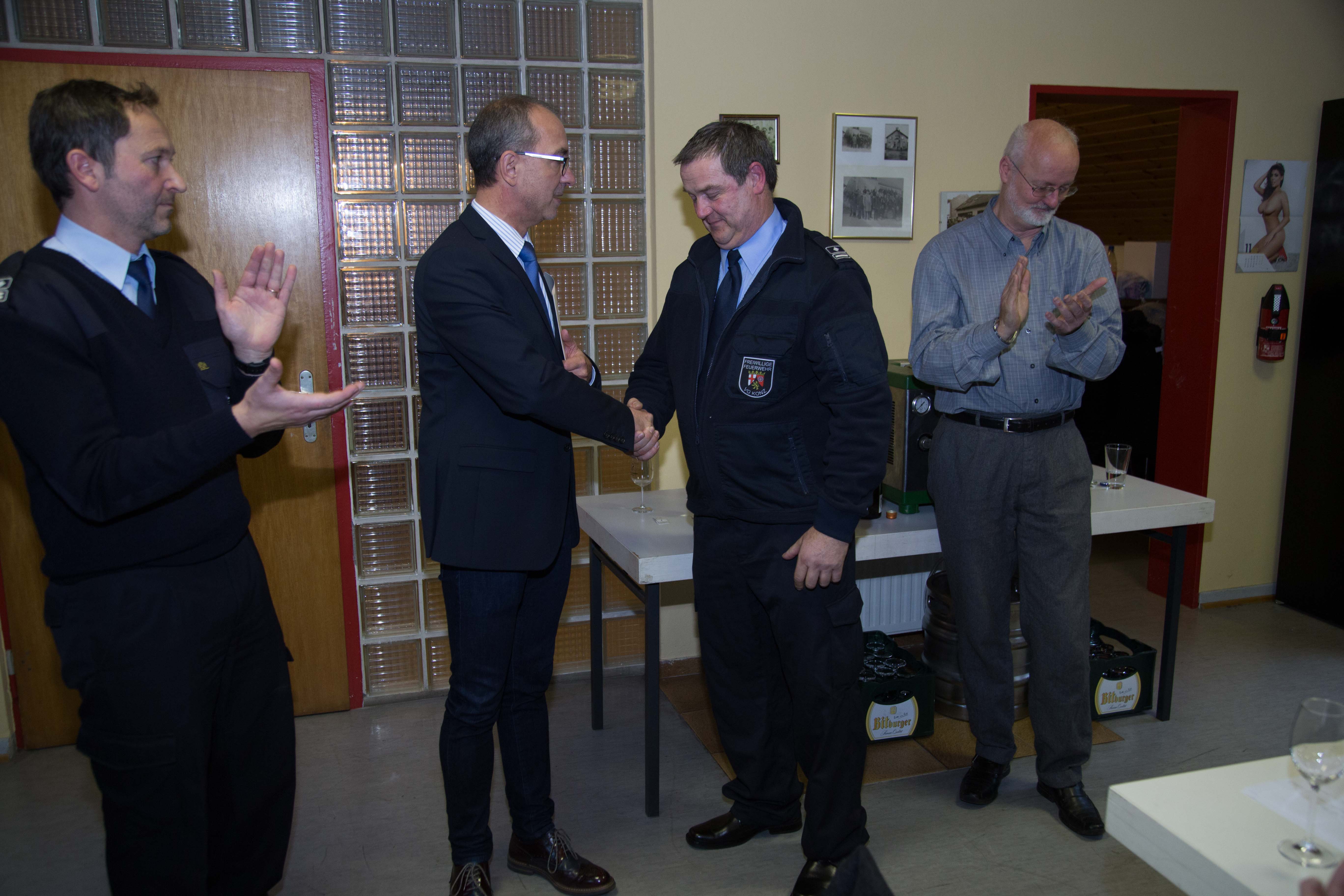 Der Höhepunkt galt der Verabschiedung von Wehrführer Ralf Kieslich. Schon vorher war der gewählte Wehrführer Ralf Kieslich kameradschaftlich bereit, sein Ehrenamt an jüngere Nachfolger zu übertragen. Es fällt nicht leicht, so Ralf Kieslich. Seine Ehrlichkeit und sein Charakter veranlassten auch Mario Gaspar zu Anekdoten während Ihrer gemeinsamen Ausbildung. Ralf Kieslich bleibt der Feuerwehr Könen auch zukünftig erhalten, den seit fünf Jahren ist er auch der stellvertretende Wehrleiter der VG Konz. Zu seinem Nachfolger wurde Timo Hunsicker zunächst mit der Wehrführung beauftragt und urkundlich ernannt, die Schulterklappen angebracht. (es stehen noch Ausbildungen an) Zu seinen Stellvertreter wurde Christoph Maximini ernannt.