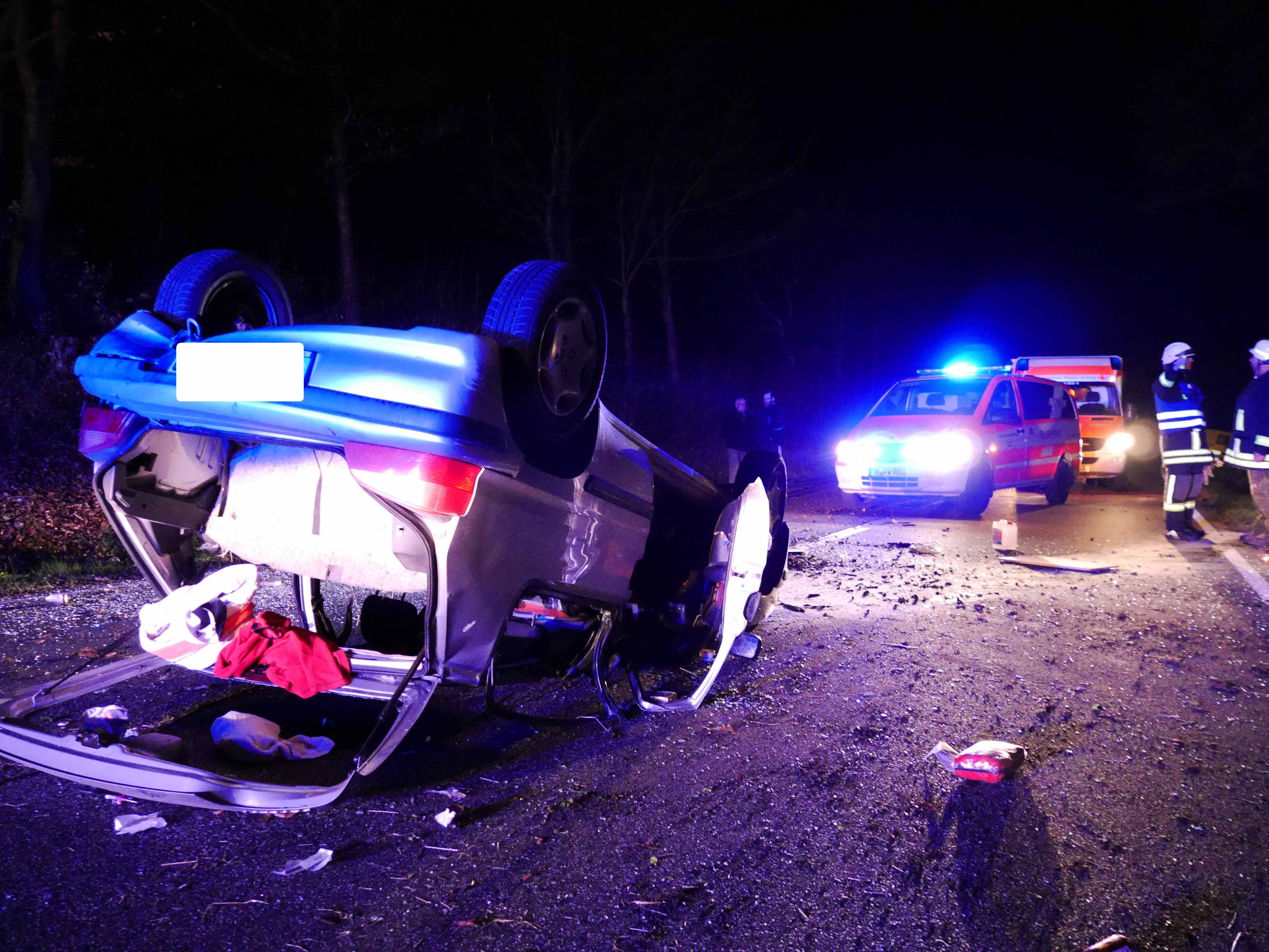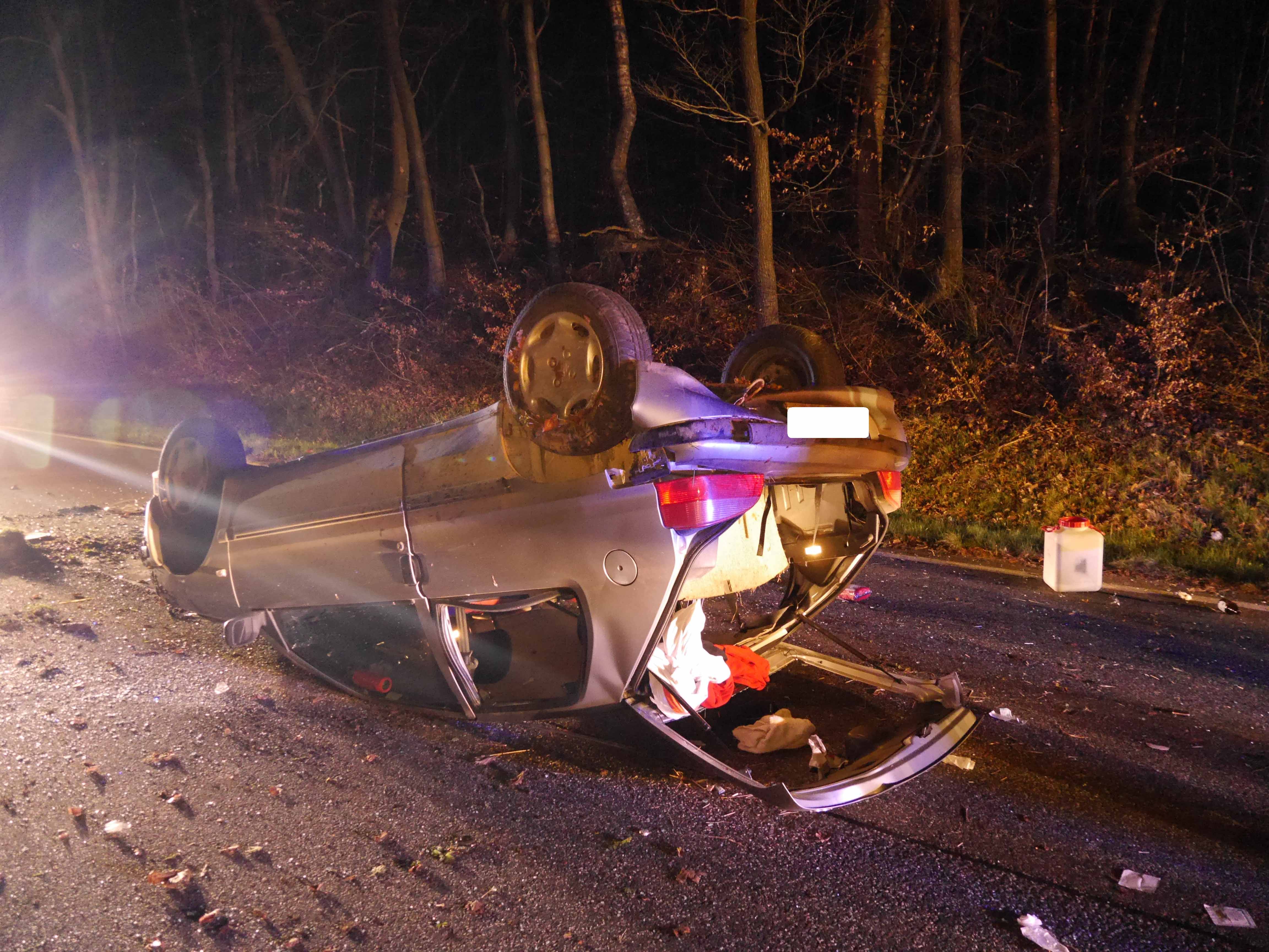 Laut Polizei geriet, ein mit fünf Personen besetztes Fahrzeug, kurz nach Steinbachweiher in einer langgezogenen Linkskurve in den Grünstreifen. Dort kam das Auto rechts von der Fahrbahn ab, prallte gegen eine Böschung und überschlug sich dabei mehrfach. Schließlich kam der PKW auf der Bundesstraße kopfüber wieder zum liegen. Der 18 – jährige Fahrer war, laut Polizei, zu schnell unterwegs gewesen und verlor die Kontrolle über das Fahrzeug.