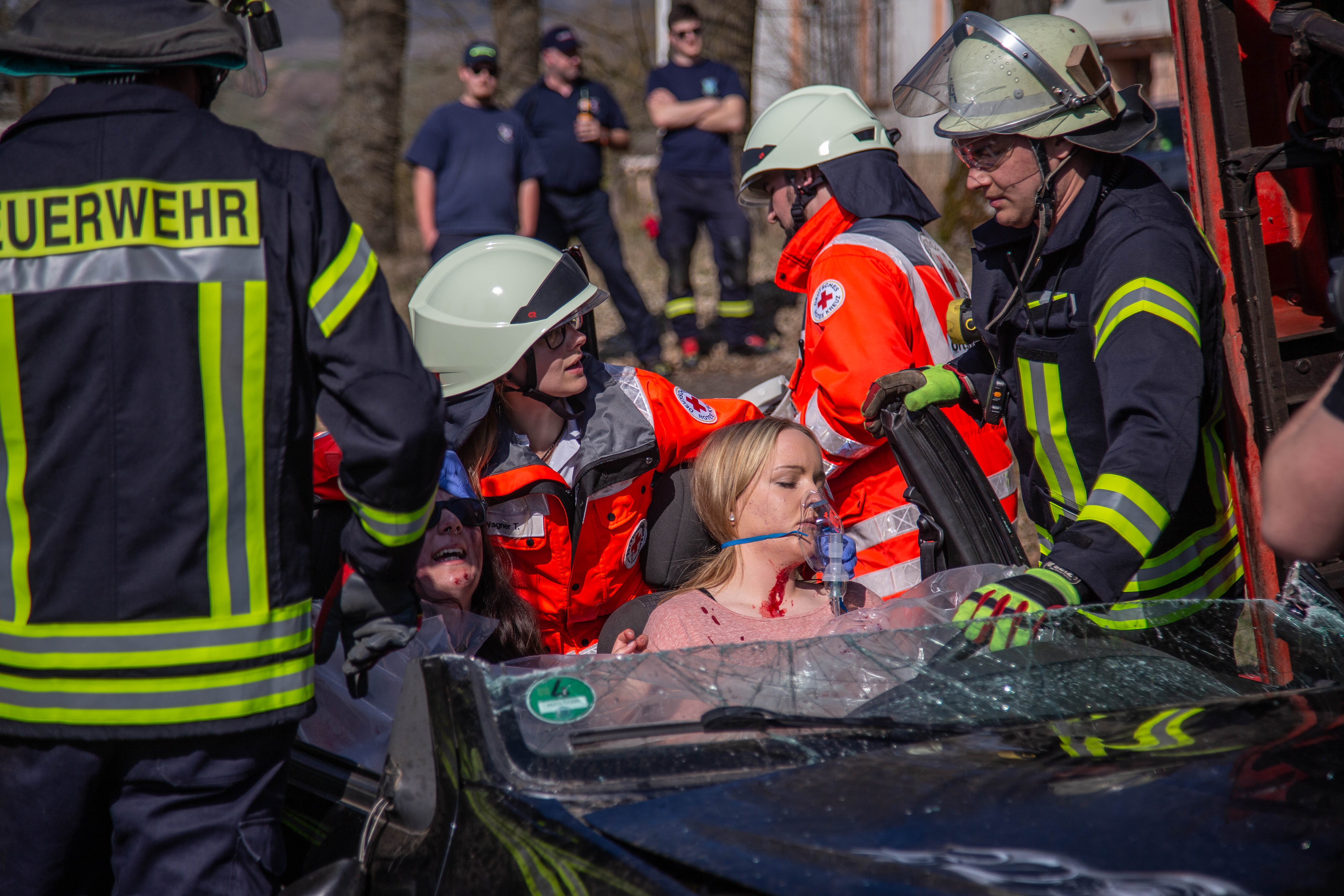 Den Einsatzabschnitt „PKW“ übernahm die Feuerwehr Beurig, die eine patientengerechte Rettung der Fahrzeuginsassen durchführte.