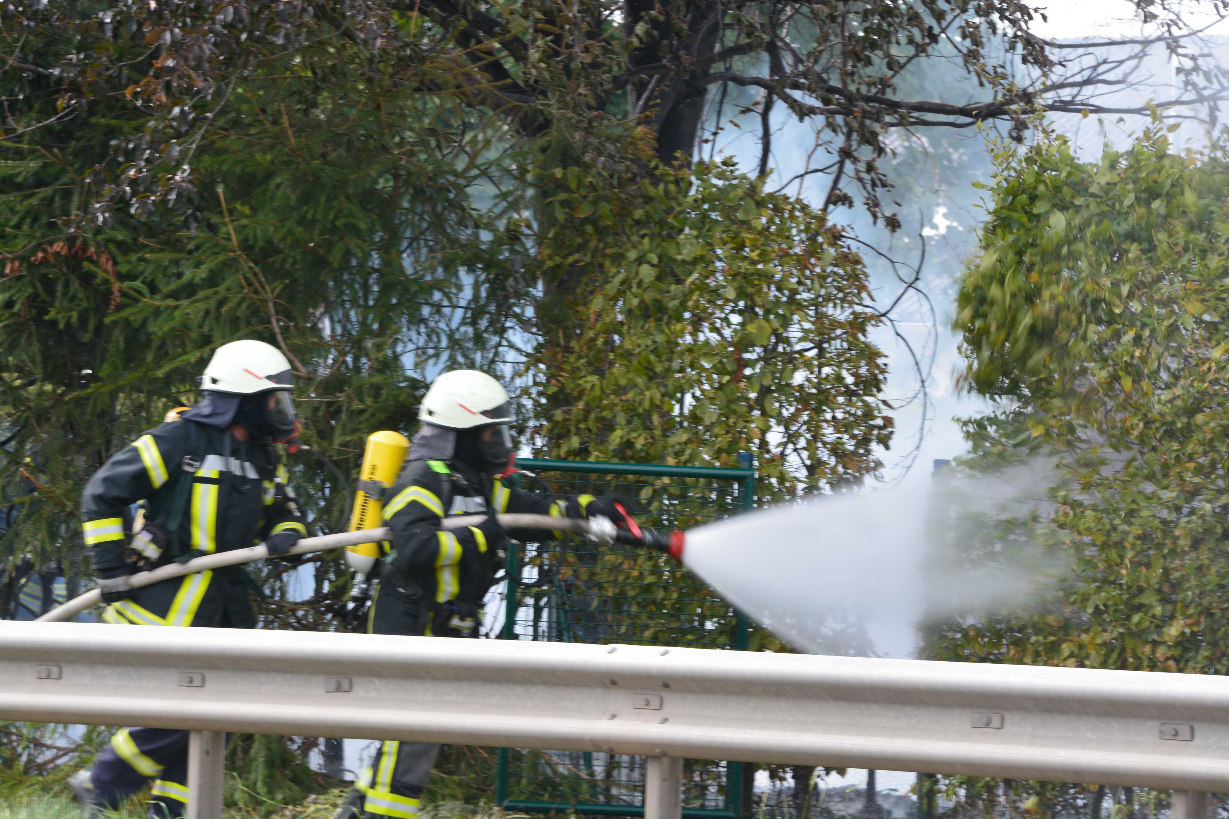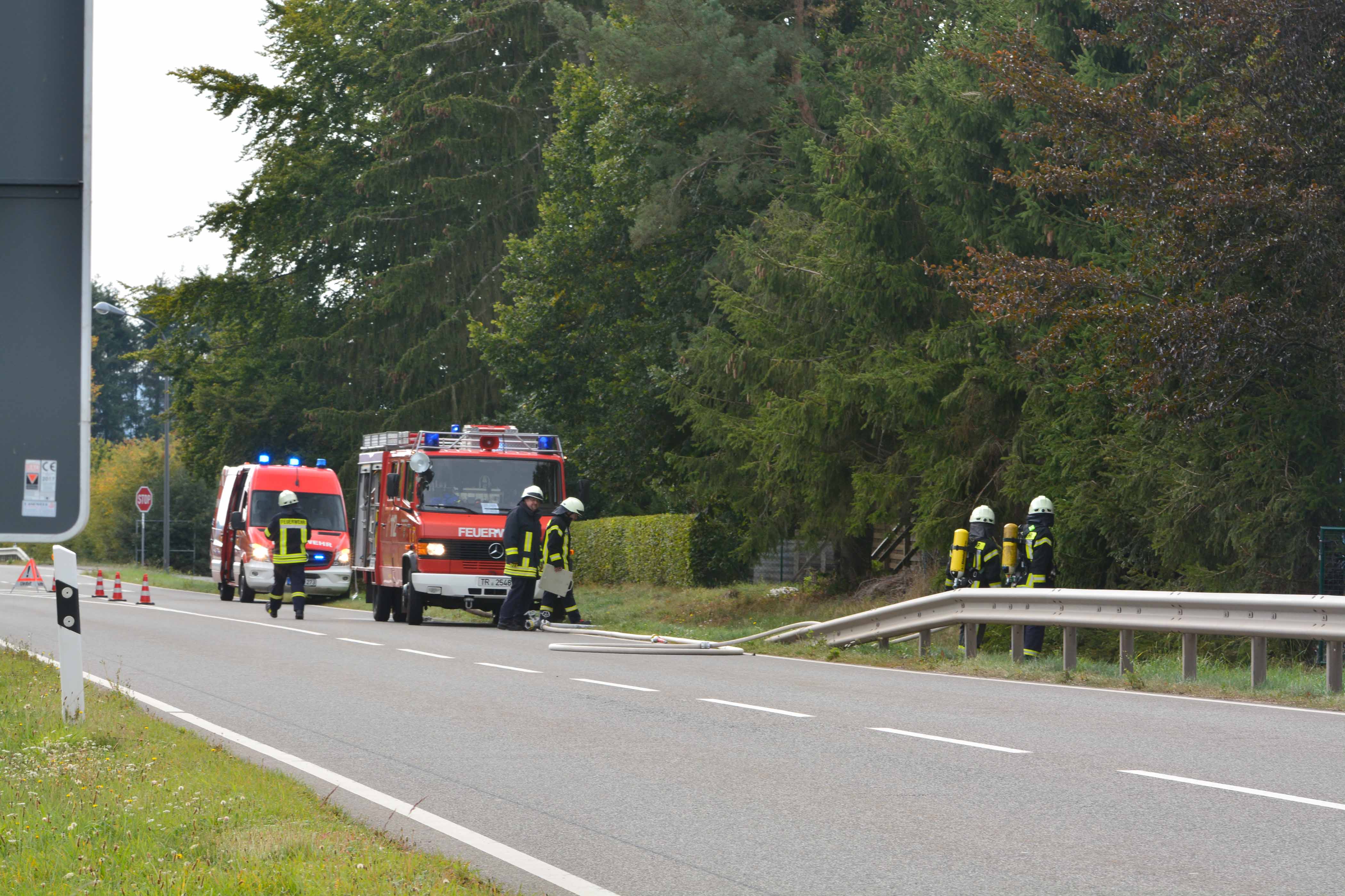 Die Bundesstraße 407 musste für die Löscharbeiten voll gesperrt werden.