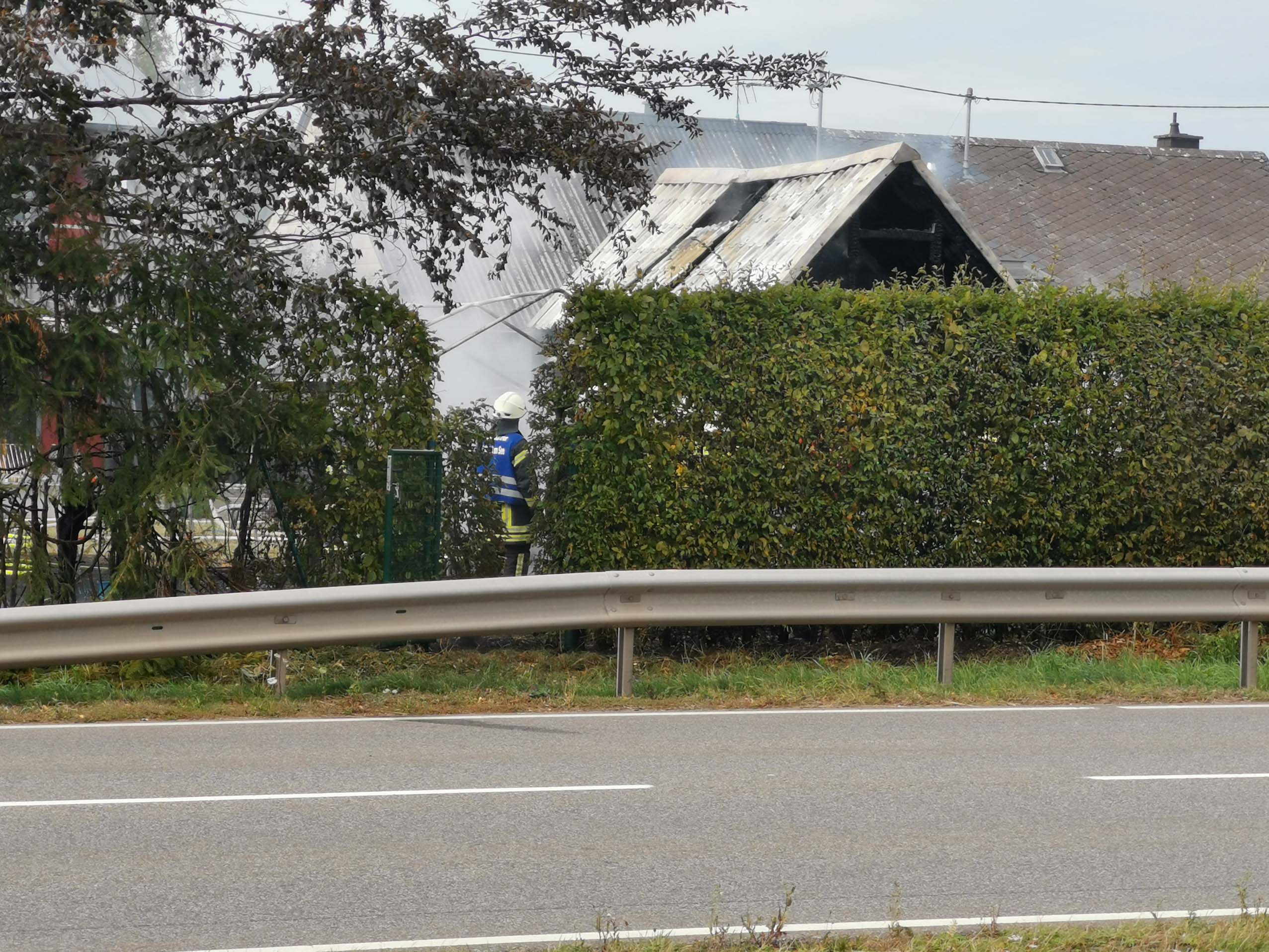 Nach einer Geburtstagsfeier von Jugendlichen am Samstagabend wurde laut Augenzeugen offenbar ein Grillfeuer im Garten nicht ausgemacht. Die heiße Glut entfachte sich erneut und das Feuer griff am Sonntagmittag auf das Gartenhaus über. Die Grillstelle soll sich laut dem Augenzeugen vor dem Gartenhaus befunden haben. Die Hausbesitzer waren nicht zu Hause. Die Polizei hat die Ermittlungen aufgenommen aber den Hergang noch nicht bestätigt.