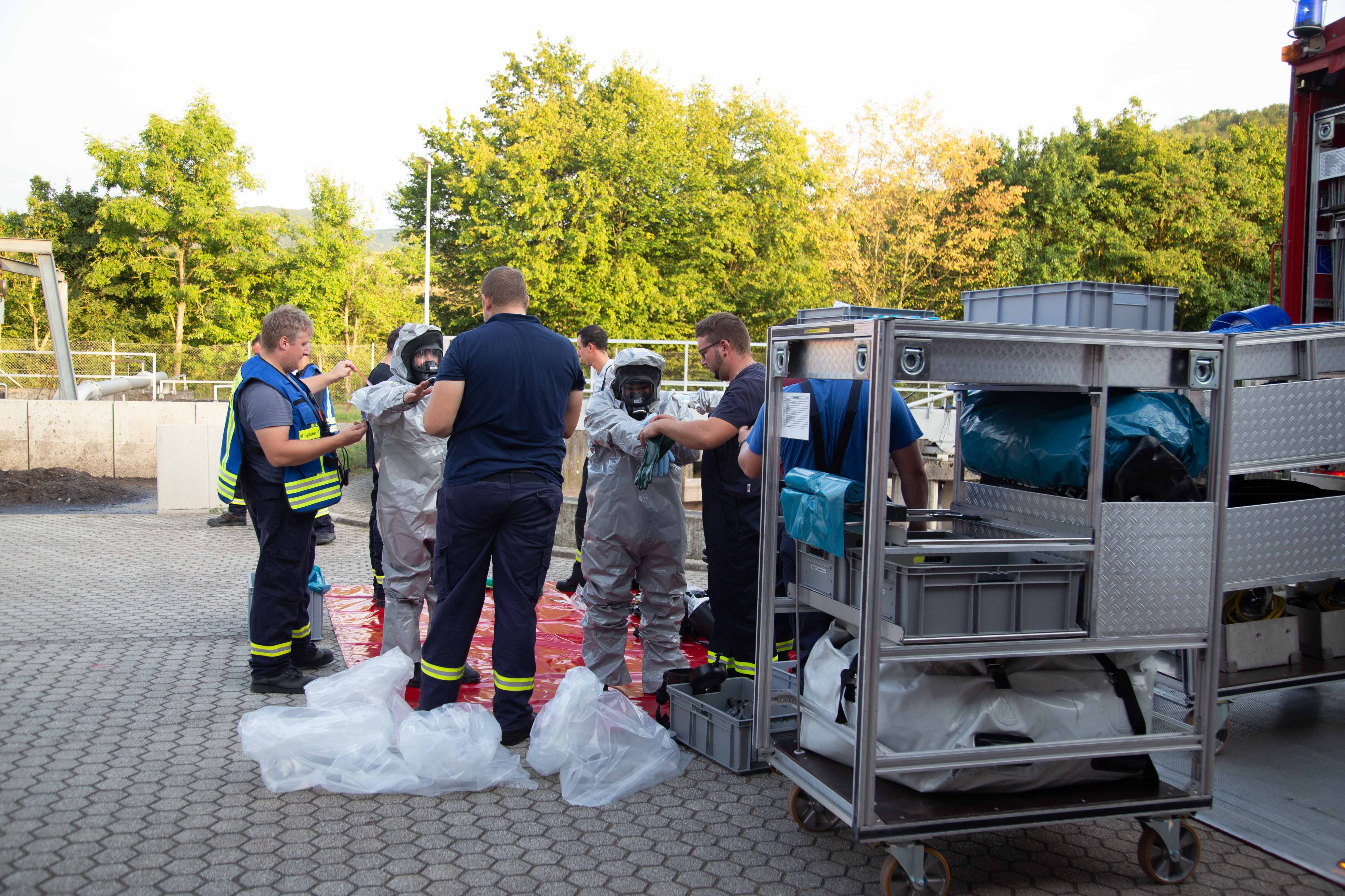 Die Fahrzeuge und der Wohnwagen wurden vom Gefahrstoffzug am Klärwerk Saarburg dekontaminiert. Hierzu musste auch der Chemikalienschutzanzug getragen werden. Der Einsatz in Saarburg konnte gegen 20.30 Uhr beendet werden.