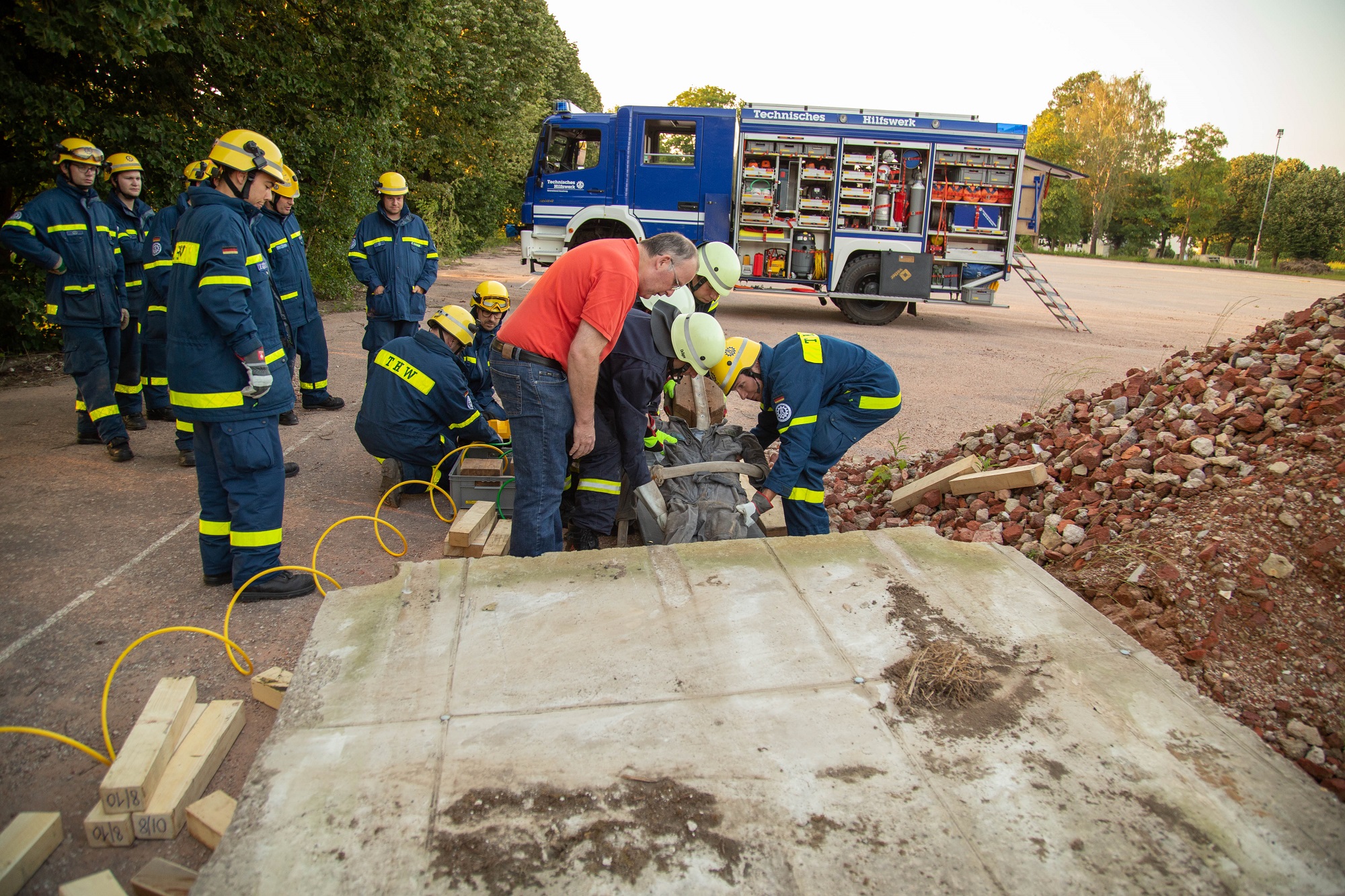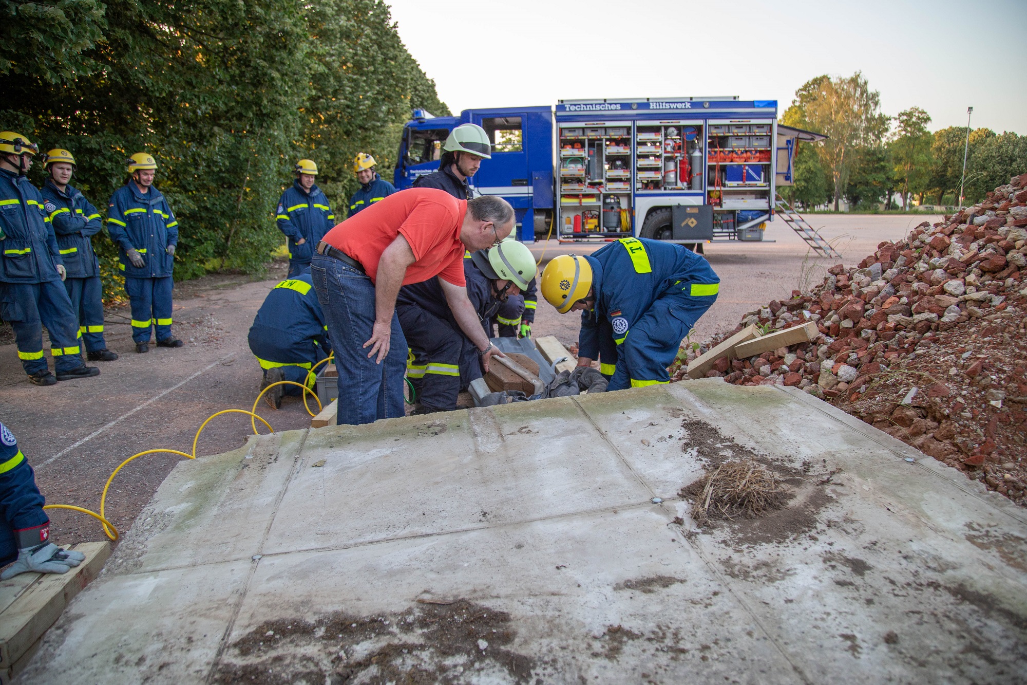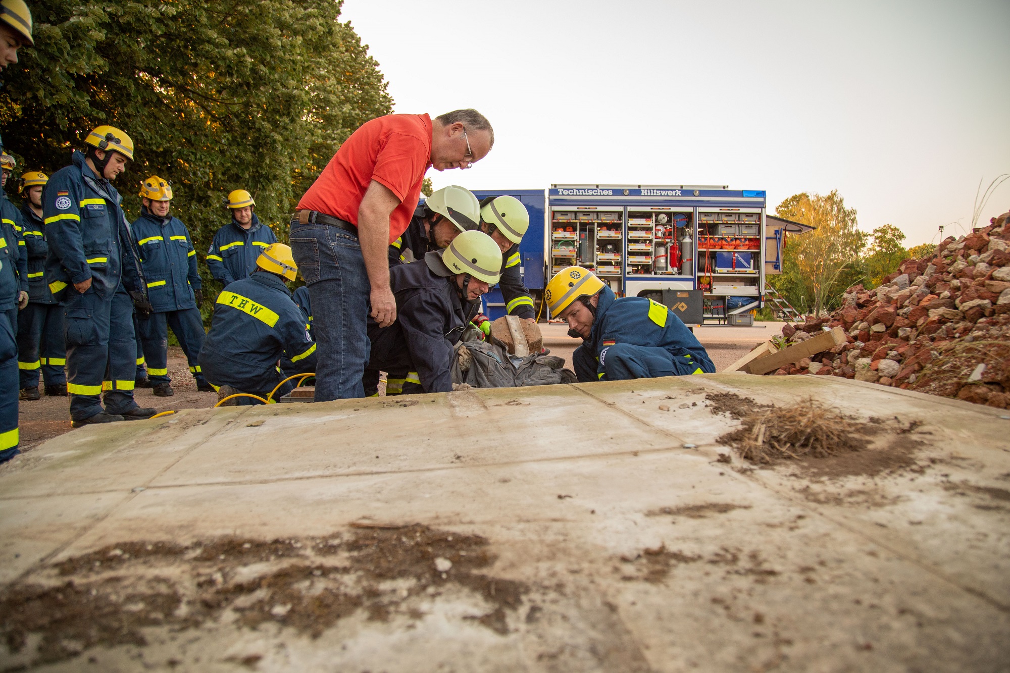 In einer kurzen theoretischen Einführung  durch Dr. Poss mit Informationen zur Rettung verunfallter Verkehrsteilnehmer in der Feuerwache Saarburg, stand die Praxis im Vordergrund. In der ehem. frz. Kaserne in Saarburg-Beurig wurden mehrere Szenarien mit einem KFZ und einer 2,5 t schweren Betonplatte durchgeführt. Die Kommunikation zwischen den einzelnen Hilfskräften der Einheiten aus Feuerwehr und THW sowie das patientenschonende Retten von Personen wurde unter ärztlicher Aufsicht mit spezifischen Anweisungen geübt.