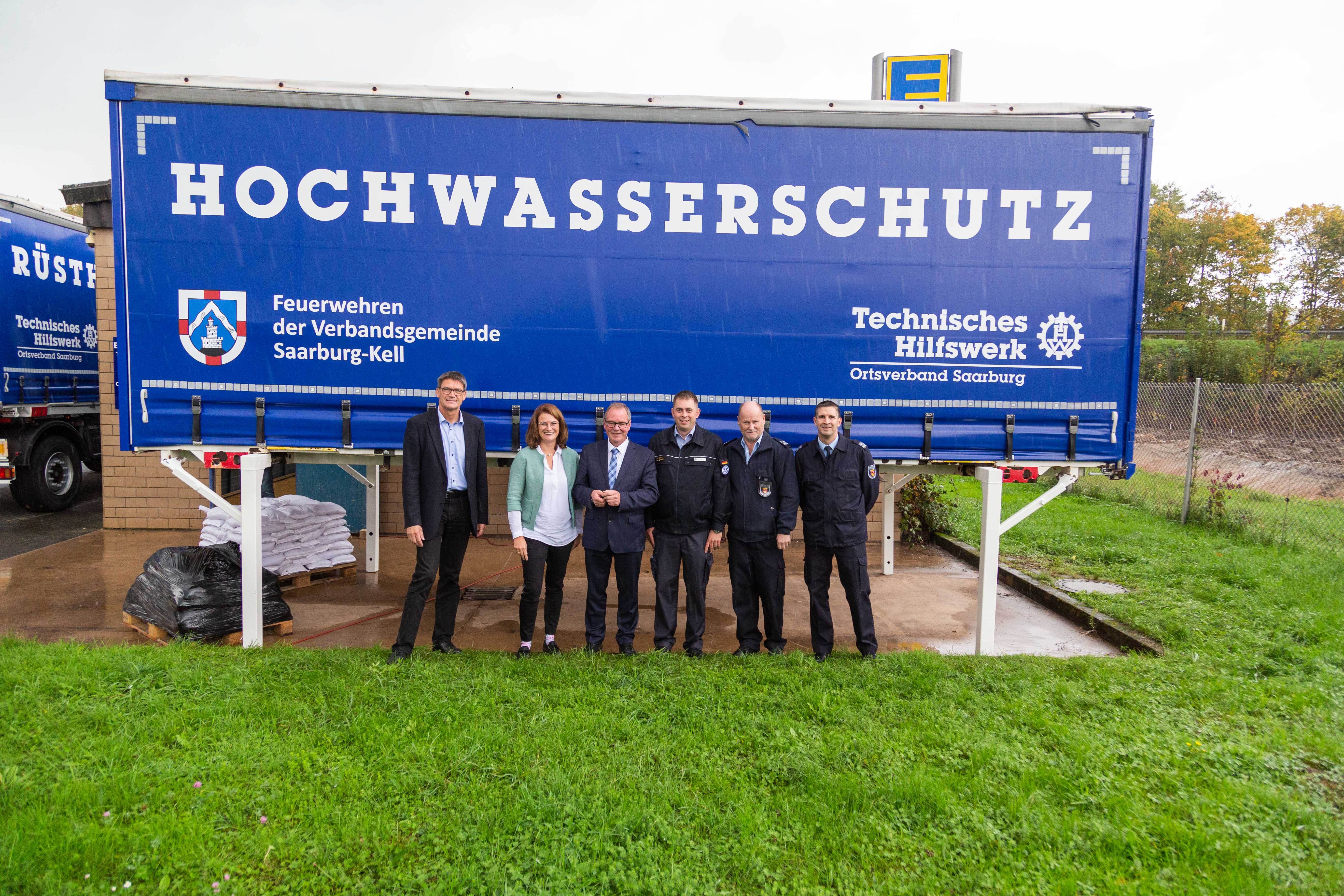 Der Landkreis Trier-Saarburg wird sich auch auf die veränderten Wetterlagen einstellen und im Bereich Katastrophenschutz entsprechende Ausrüstung und Materialen beschaffen und vorhalten müssen. Als Dank und Anerkennung für die vorbildliche Zusammenarbeit von Feuerwehr und THW innerhalb der VG Saarburg-Kell überreichte Landrat Schartz einen Scheck an die Organisationen.