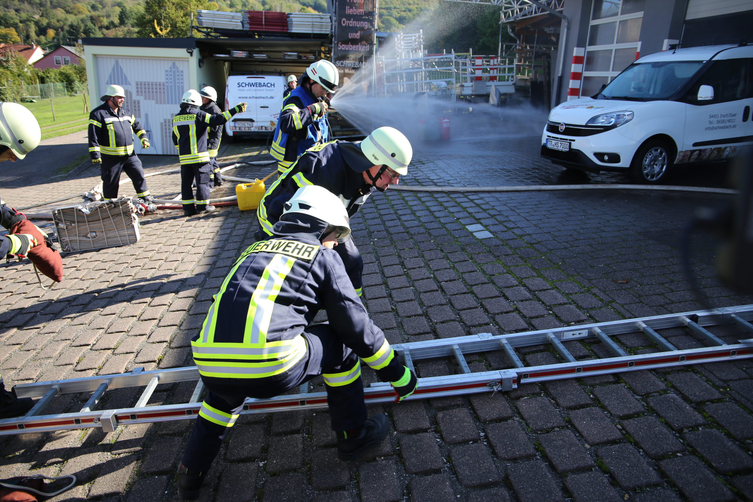 Seit mehr als vierzig Jahren üben die beiden Feuerwehren jährlich wechselseitig diese Übungen durch. Nach zwei Jahren Pandemie war man froh endlich wieder ein,  von Wehrführer Dirk Benzschawel aus Irsch gut ausgedachte Jahreshauptübung durchzuführen. Es waren fast alle Übungsszenarien von der Brandbekämpfung, eine Schaumlöschung bis hin zur Personenrettung aus dem Gebäude sowie mittels Steckleiter über ein Dachgeschoss in der Vorplanung eingeschlossen.