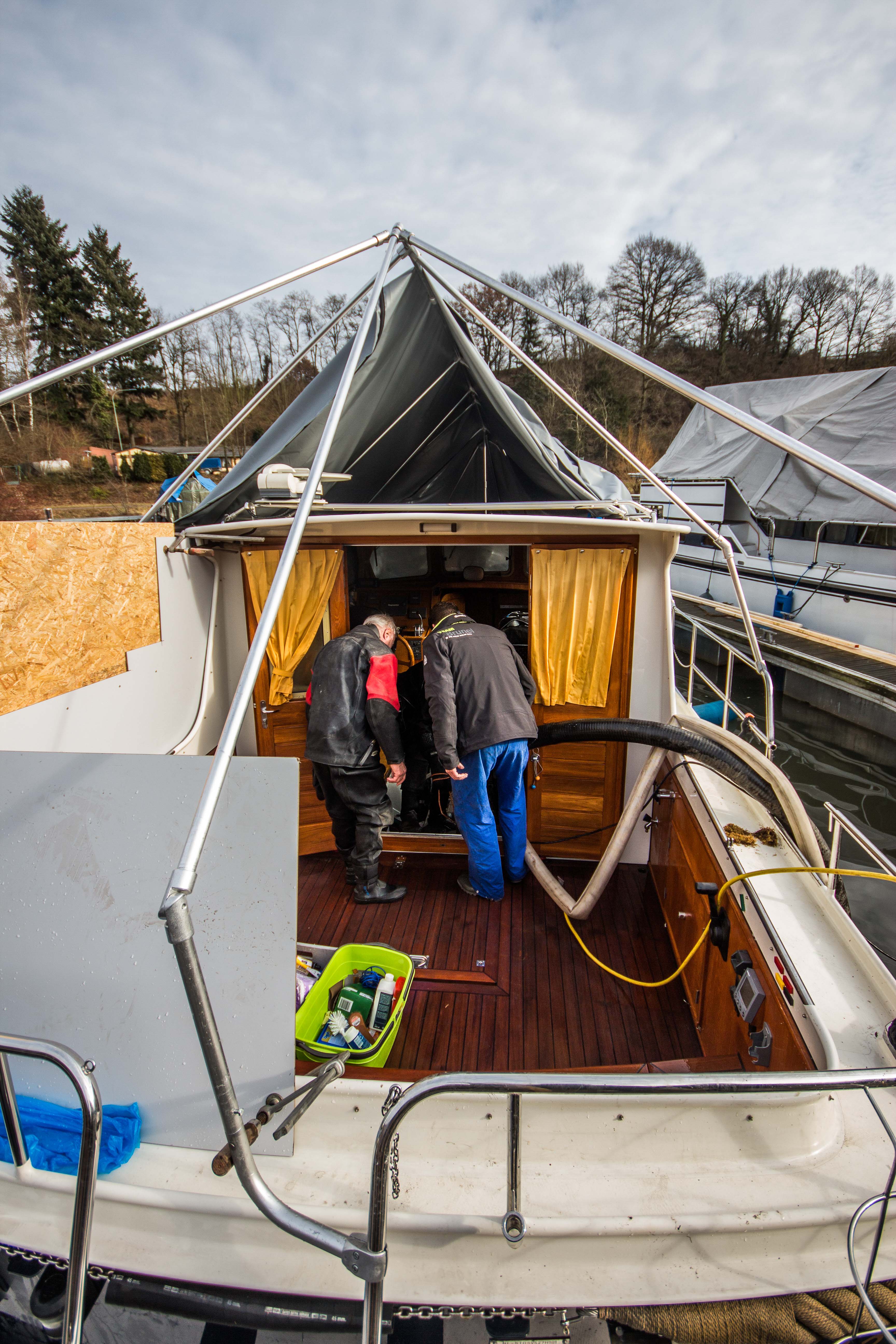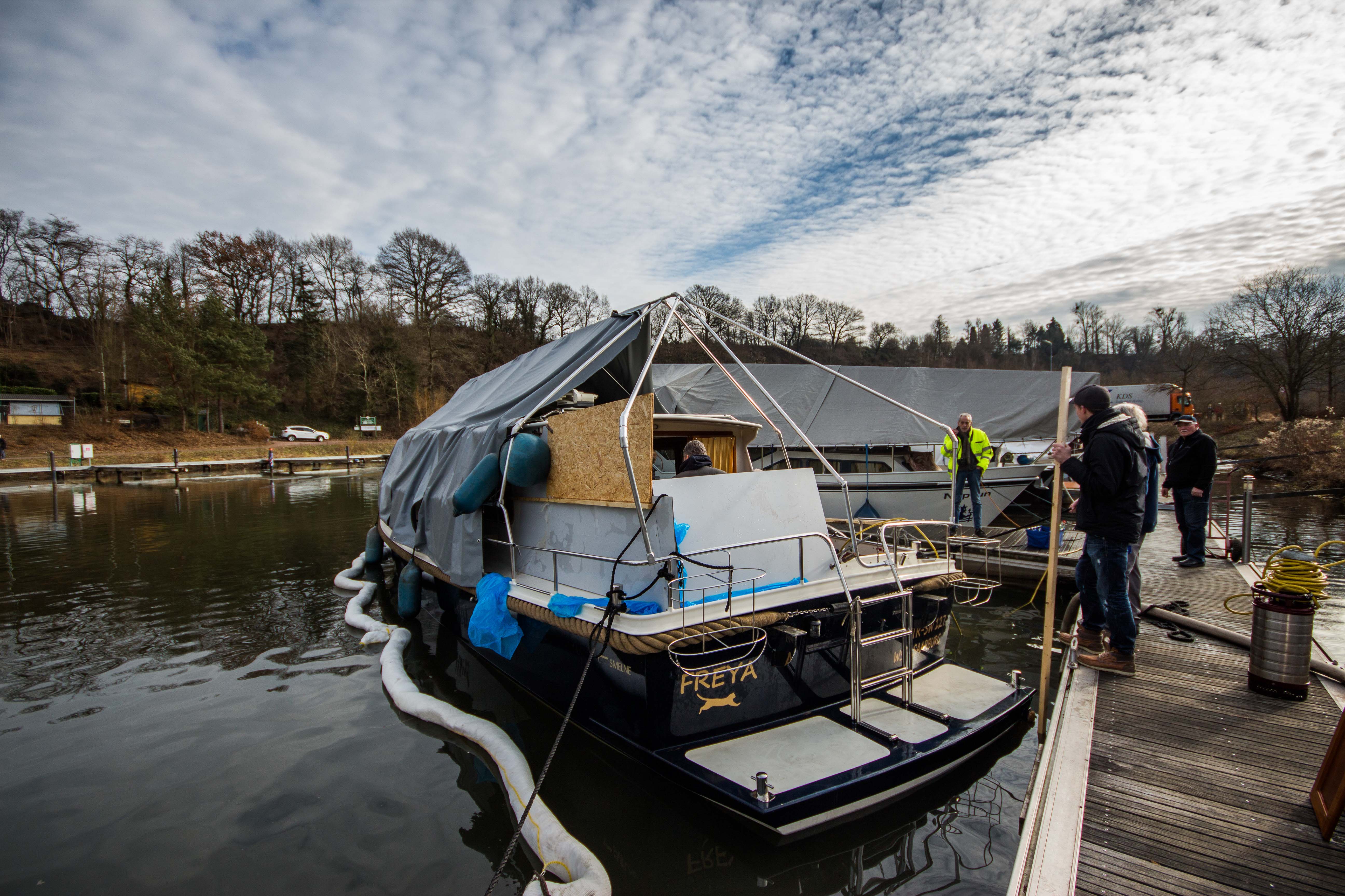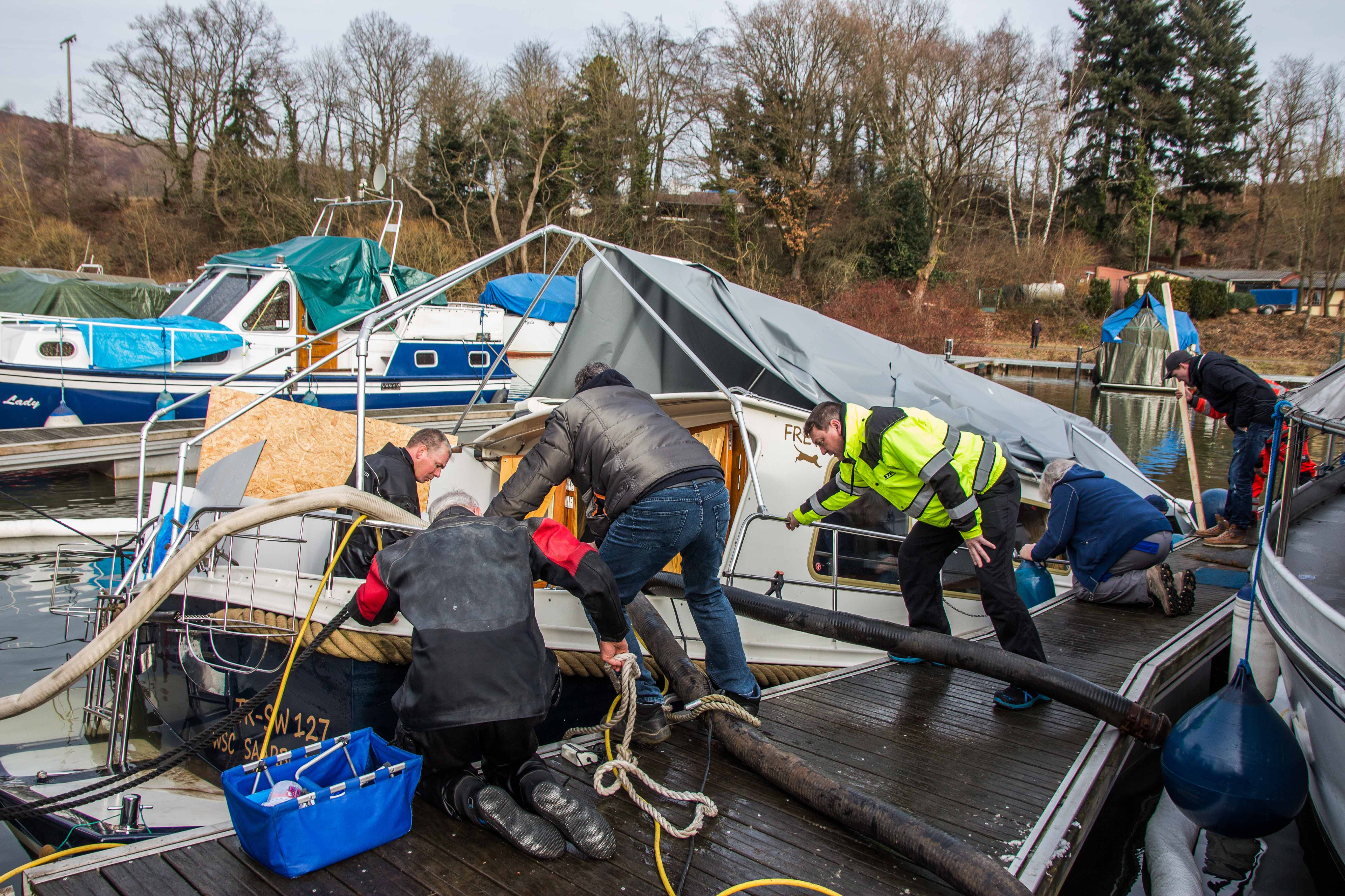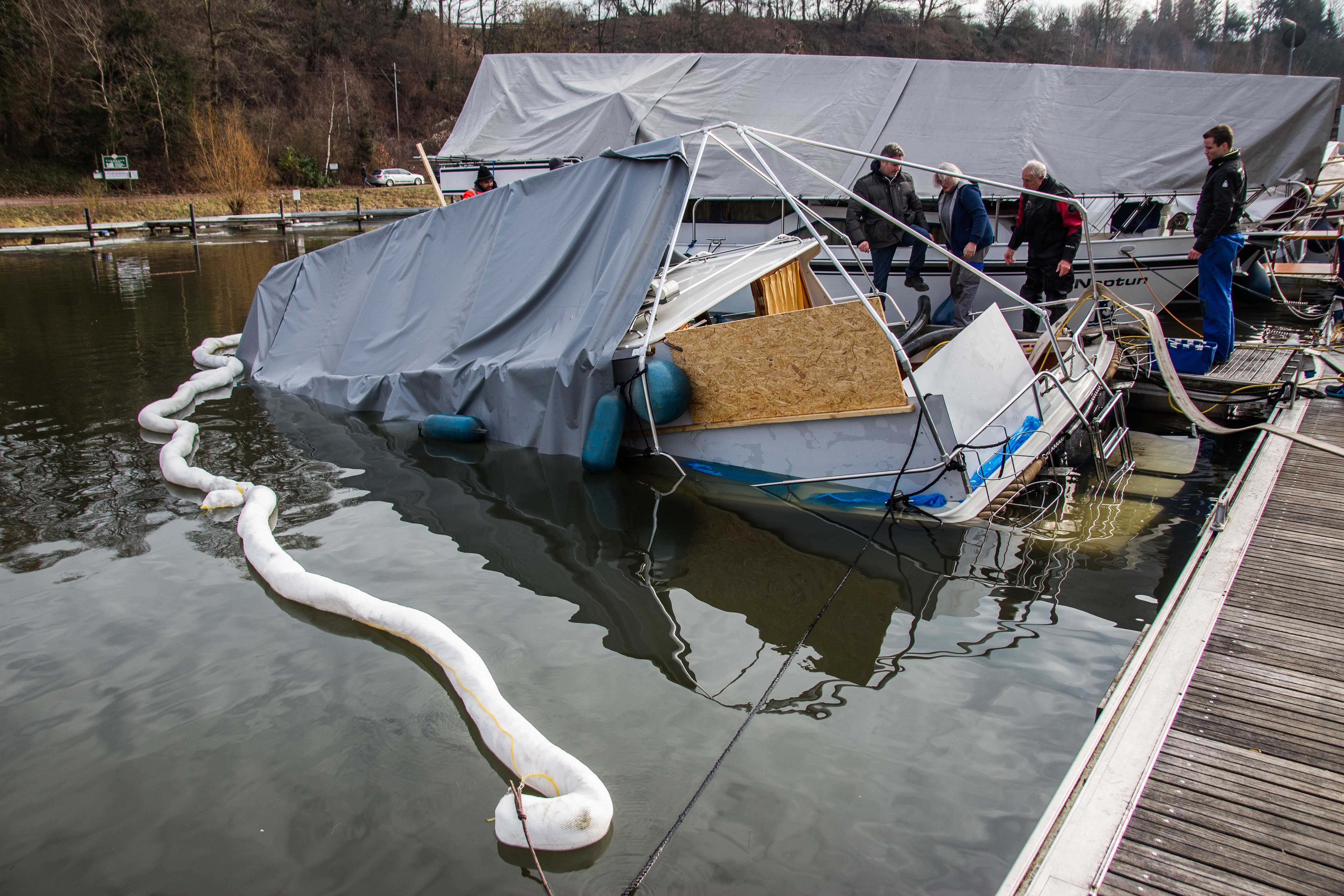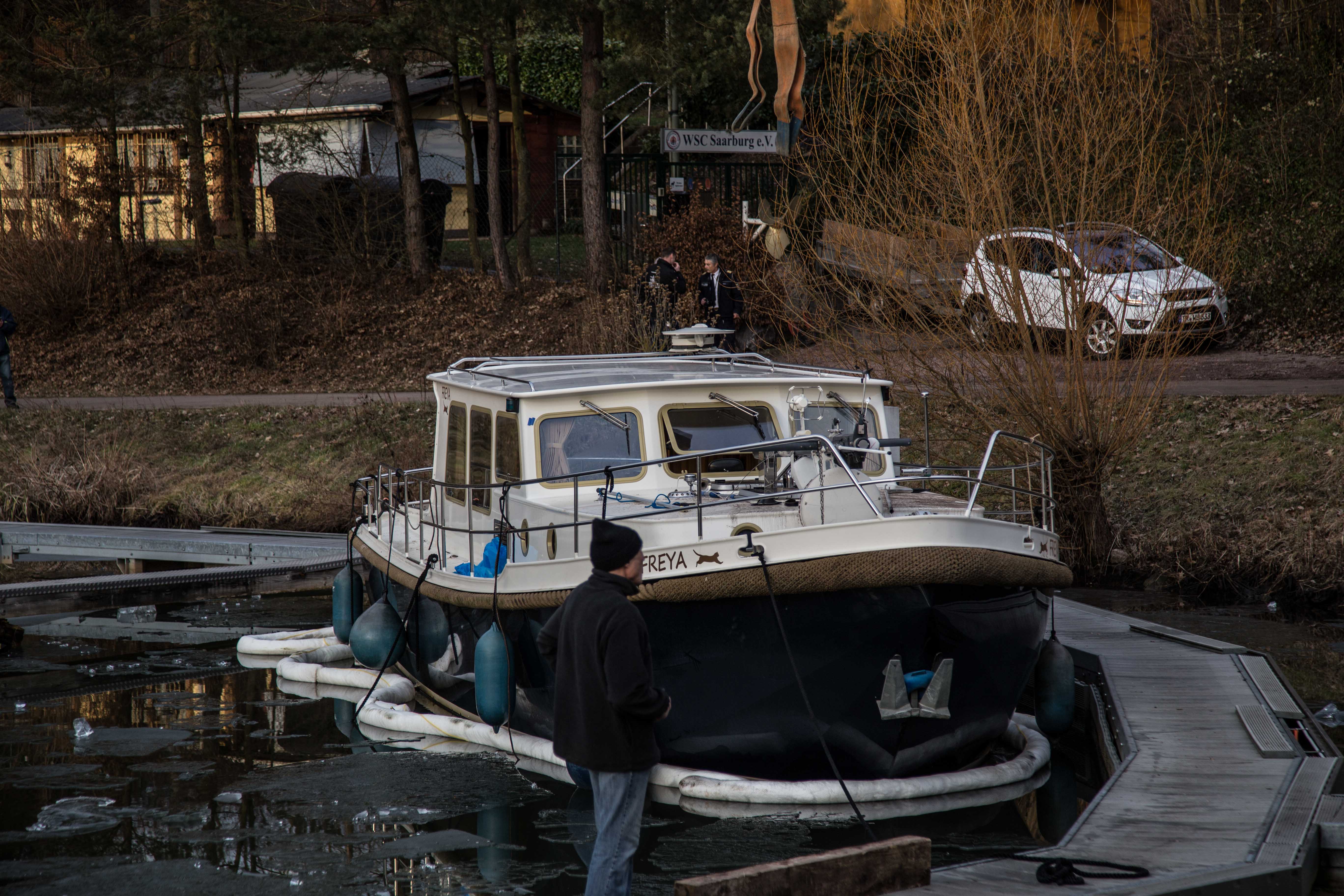 Saarburg. Die am Dienstagabend gesunkene Yacht im Saarburger Hafen wurde am Donnerstag aufwendig geborgen. Bereits am Morgen traf ein Niederländisches Bergungsteam im Saarburger Hafen ein. Die Spezialisten haben das gesunkene Boot zunächst mit Neoprenanzügen betreten und mit Holzplatten abgedichtet. Anschließend wurde die Seetaugliche Yacht mit drei Pumpen ausgepumpt damit diese wieder auftrieb bekam .