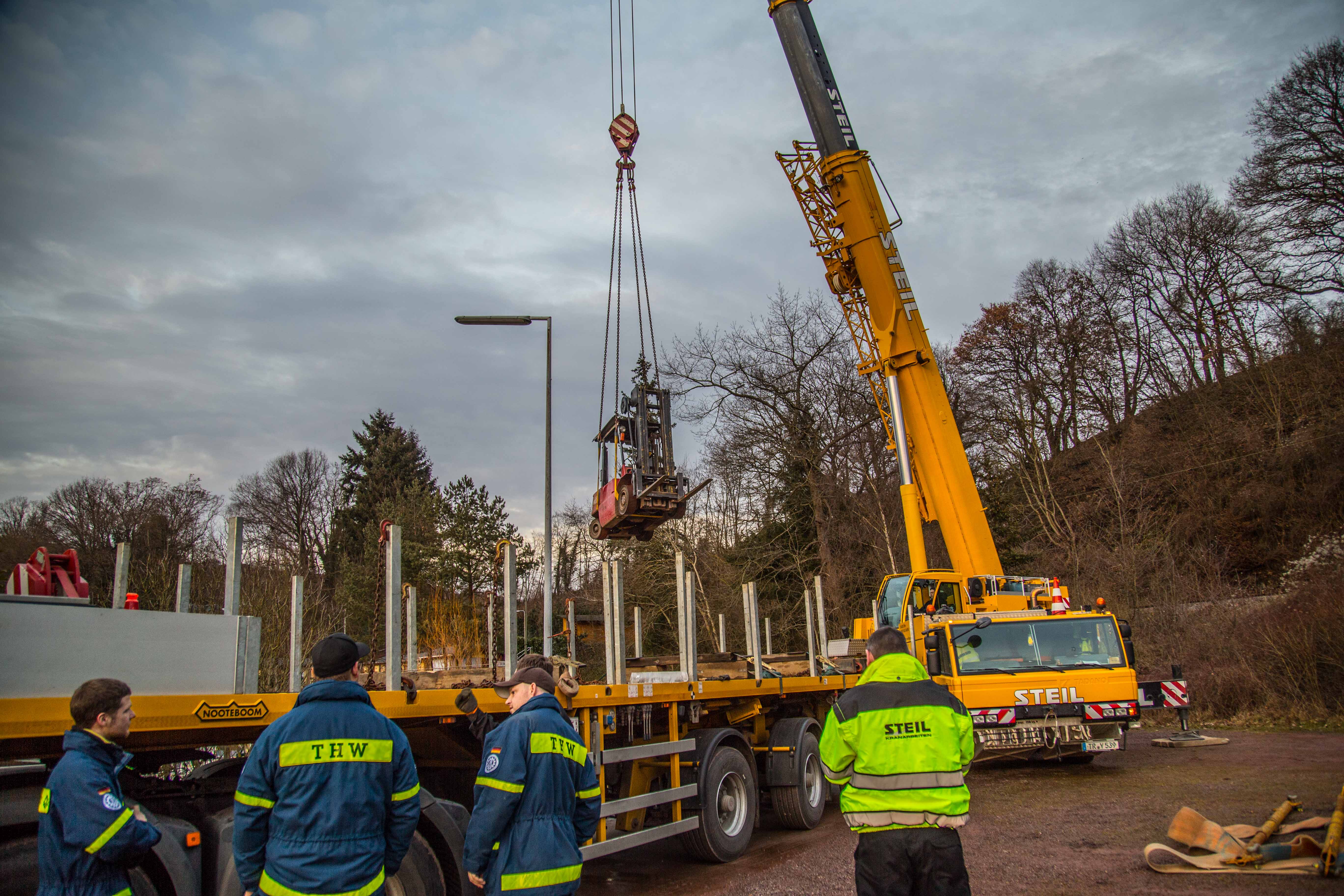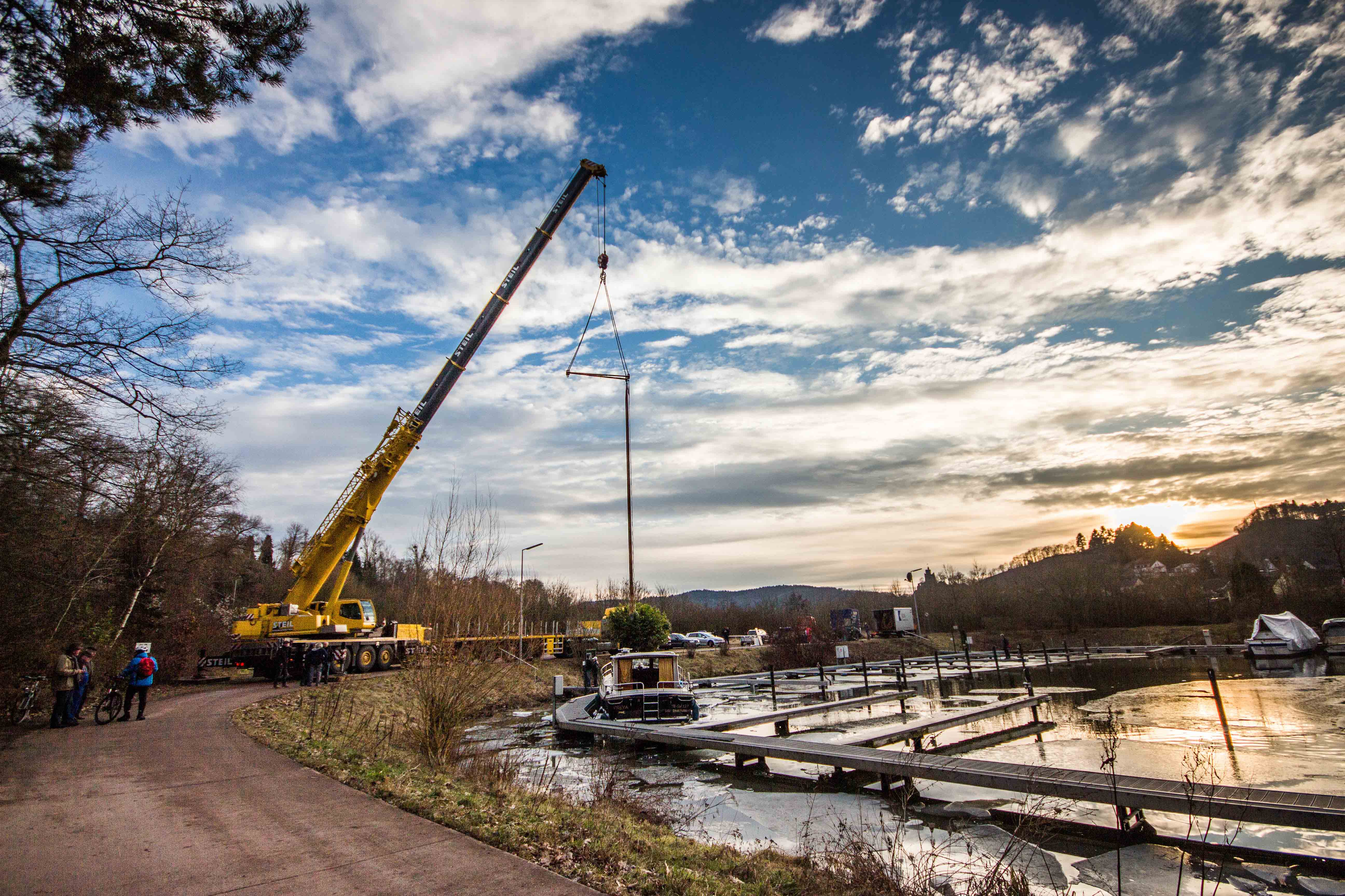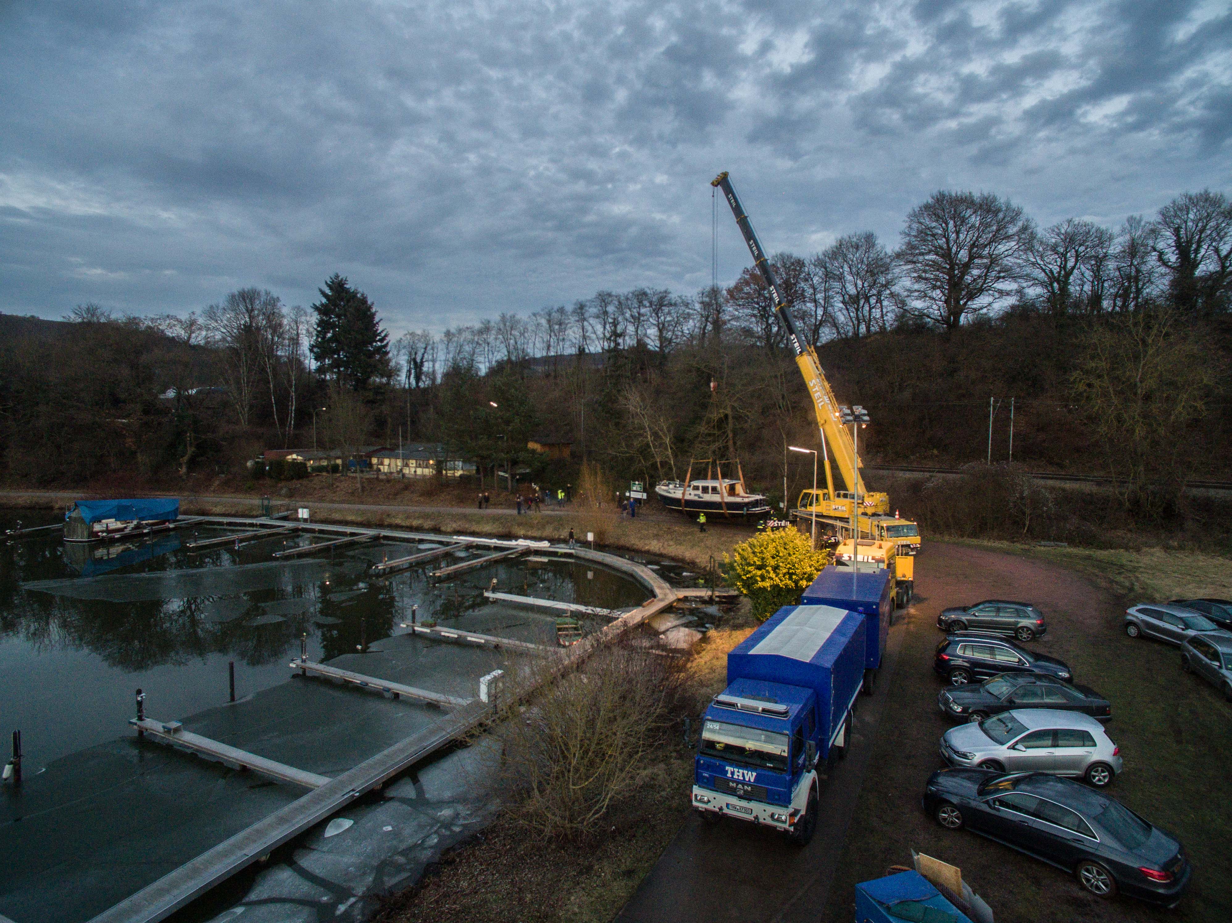 Das Technische Hilfswerk aus Saarburg unterstützte den Pumpeinsatz und stellte die Stromversorgung sicher. Nach rund einer Stunde Pumpen stieg das Boot dann wieder auf, ein Leck war auf den ersten Blick nicht zu erkennen. Daraufhin wurde das Boot mit Stricken zur anderen Hafenseite gezogen. Ein Kranunternehmen aus Trier kümmerte sich dann um die Bergung, die sich in den Abend hineinzog. Das THW musste die Einsatzstelle ausleuchten.