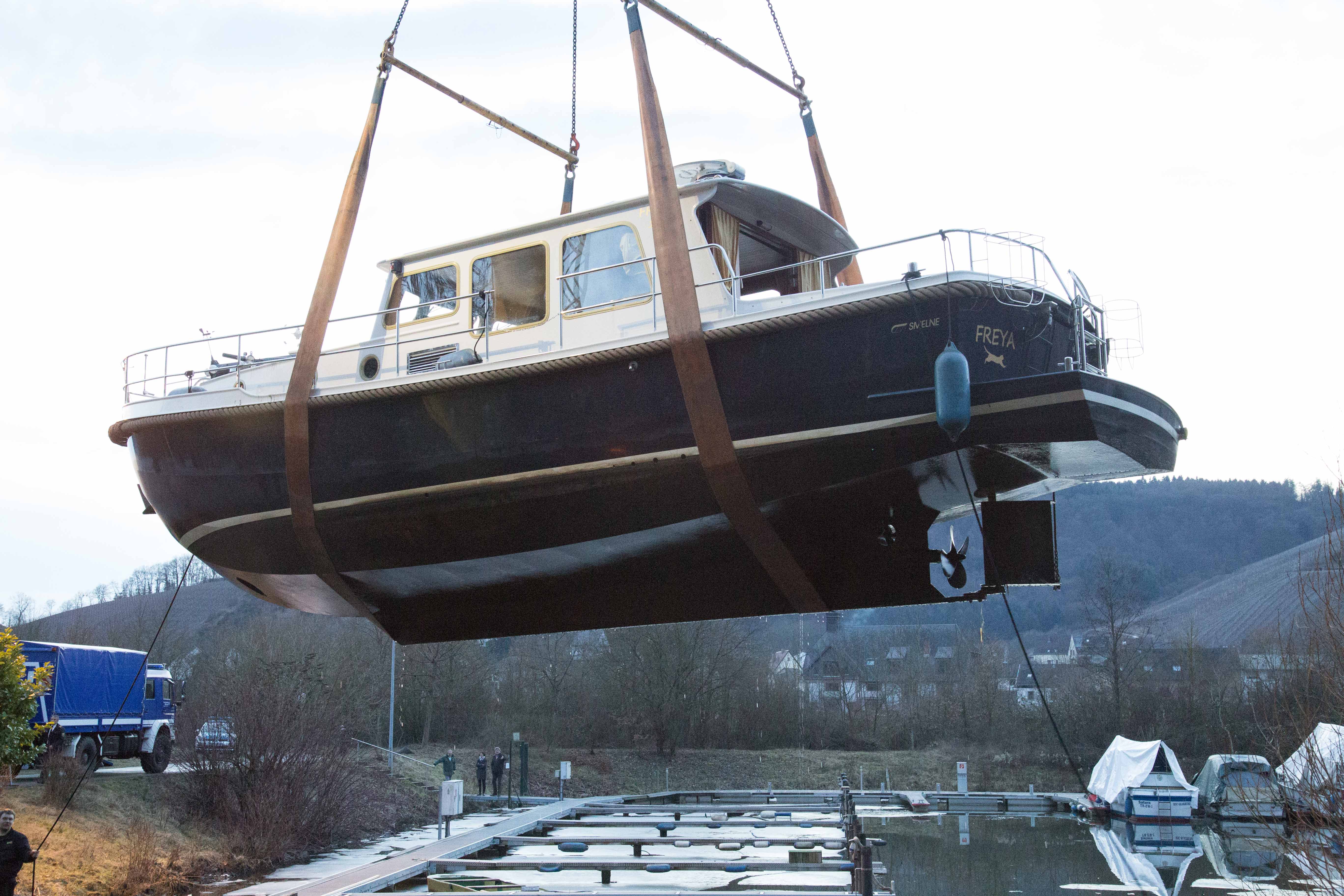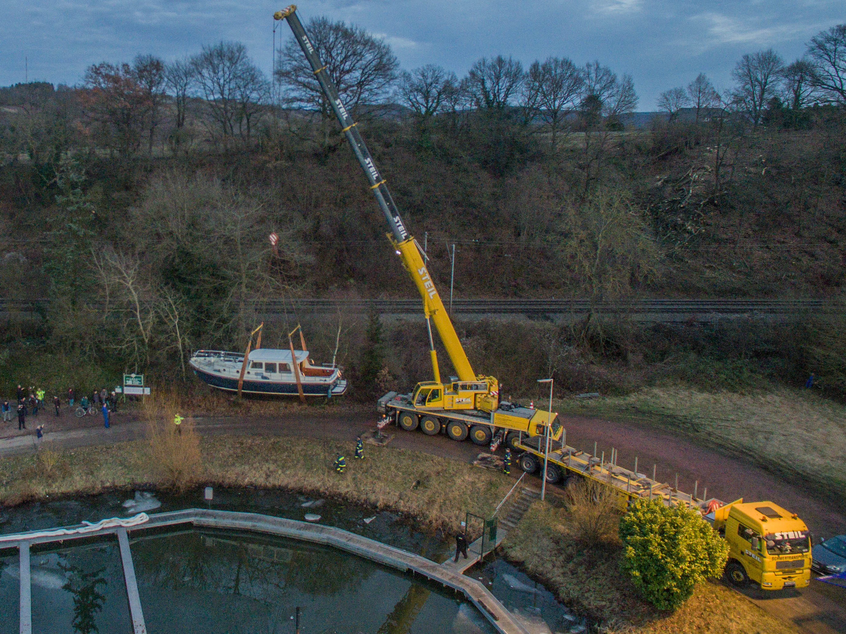 Schwierigkeiten gab es keine, der 130-Tonnen Kran hob die Yacht auf einen spezial Tieflader. Die Yacht wird zur eine Niederländischen Werft transportiert und dort genau untersucht. Der Sachschaden liegt bei mehreren 10.000 €.