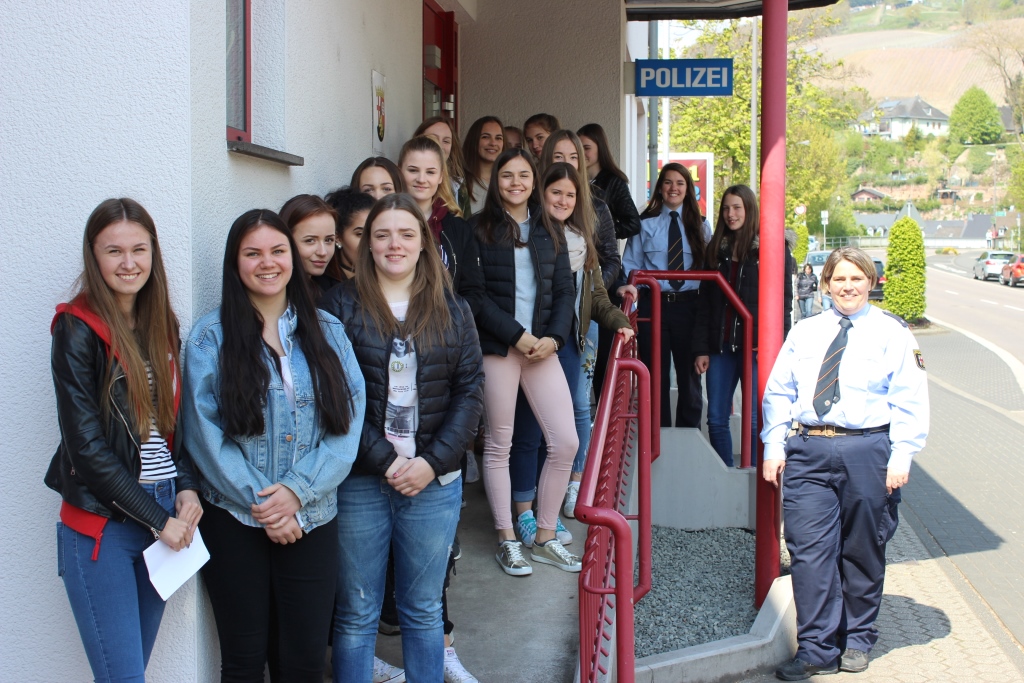 Sie wurden von der im Wechselschichtdienst der Polizeiinspektion Saarburg eingesetzten Polizeikommissarin Silke Brausch und der zur Zeit im Studium an der Hochschule der Polizei befindlichen Polizeikommissaranwärterin Lisa Bertel in den Räumen der Polizeiinspektion Saarburg begrüßt und durch die Veranstaltung geführt. Frau Bertel ist der Polizeiinspektion Saarburg für ein Praktikum im Wechselschichtdienst, als Bestandteil des Studiums zugewiesen.