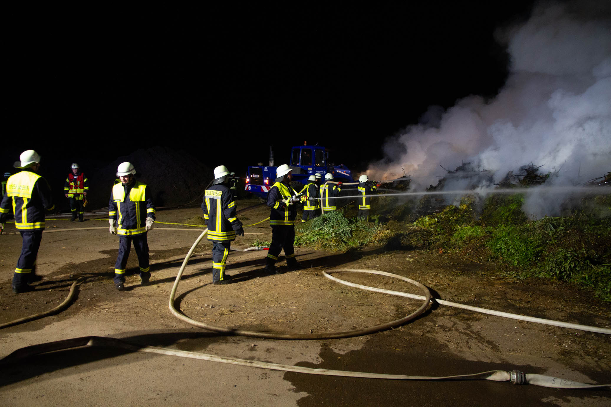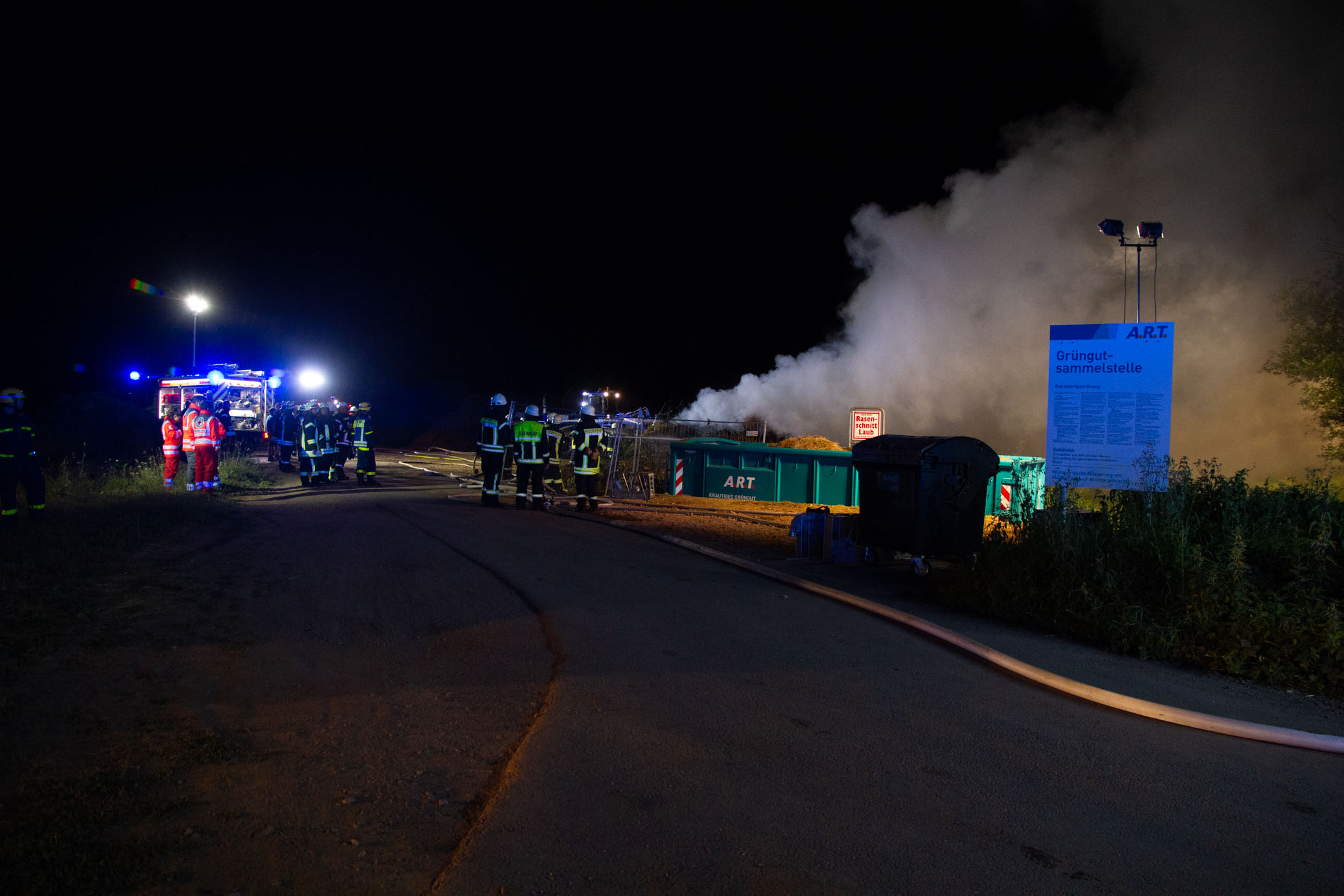 Die ersten Einsatzkräfte stellten sehr schnell fest, dass die gesamte Grünschnittsammelstelle in Flammen stand, daraufhin wurden zahlreiche Einheiten durch den Einsatzleiter nach alarmiert.
