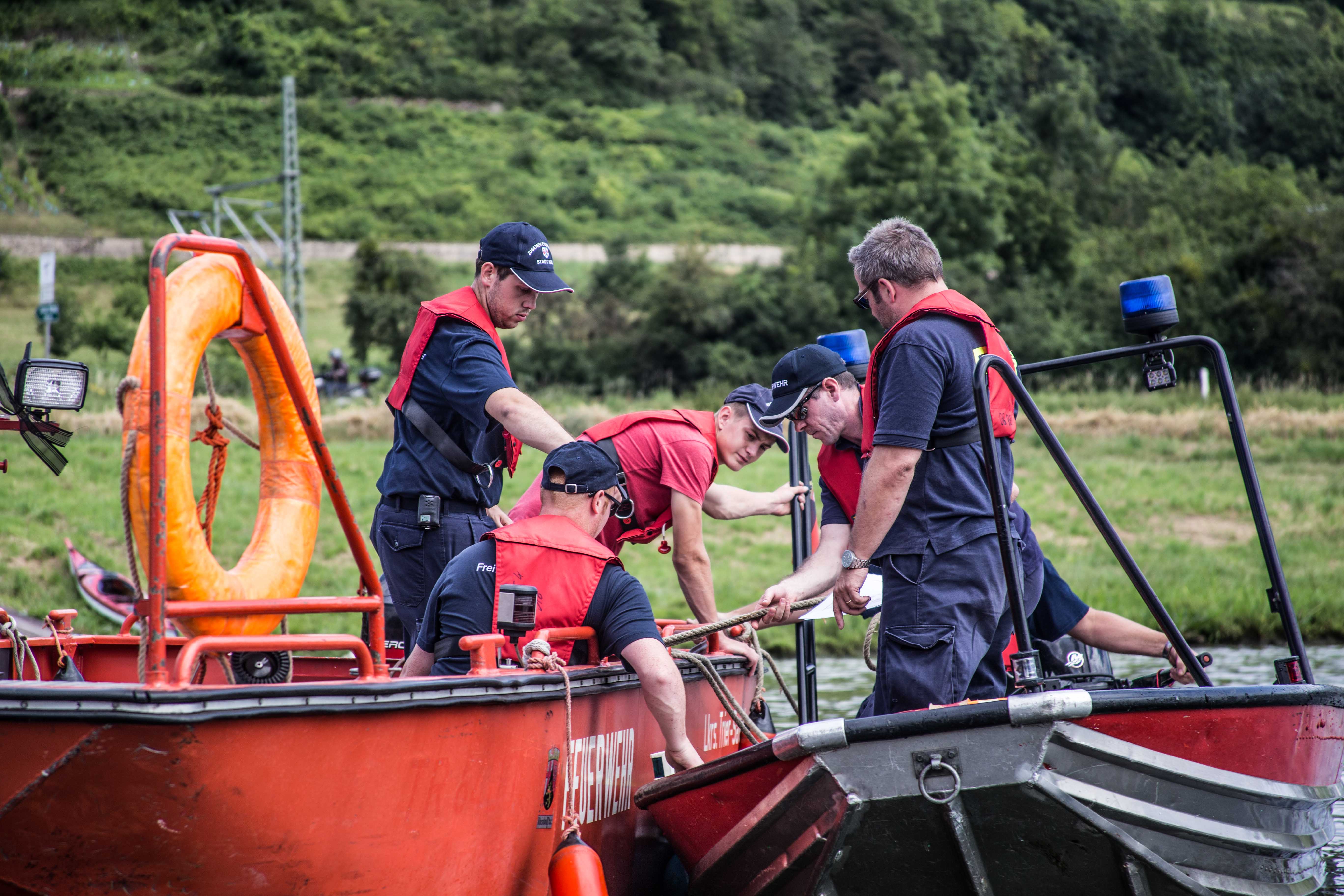 Konz/Wasserliesch. Ausbilder, Bootsführer und die Mannschaften der Feuerwehren Nittel,Wasserliesch, Oberbillig, Konz, Kanzem und Filzen trafen sich am Samstag bei idealen Witterungsbedingungen zur Auffrischung  der Ausbildungsinhalte zum Bootsführer und Herstellung der Einsatzbereitschaft auf der Mosel Bei dieser Übung galt es die Kameradschaft zu fördern und die Einsatzbereitschaft der Feuerwehren auf dem Wasser zu gewährleisten. Knotenkunde, der Umgang mit den unterschiedlichen Bootstypen, das Anlegen, Schleppmanöver und die Personenrettung standen auf dem Übungsplan. Alle 34 freiwilligen Wehrfrauen und Wehrmänner waren mit Arrangement und Konzentration bis in den frühen Nachmittag bei der Gemeinschaftsübung anwesend.