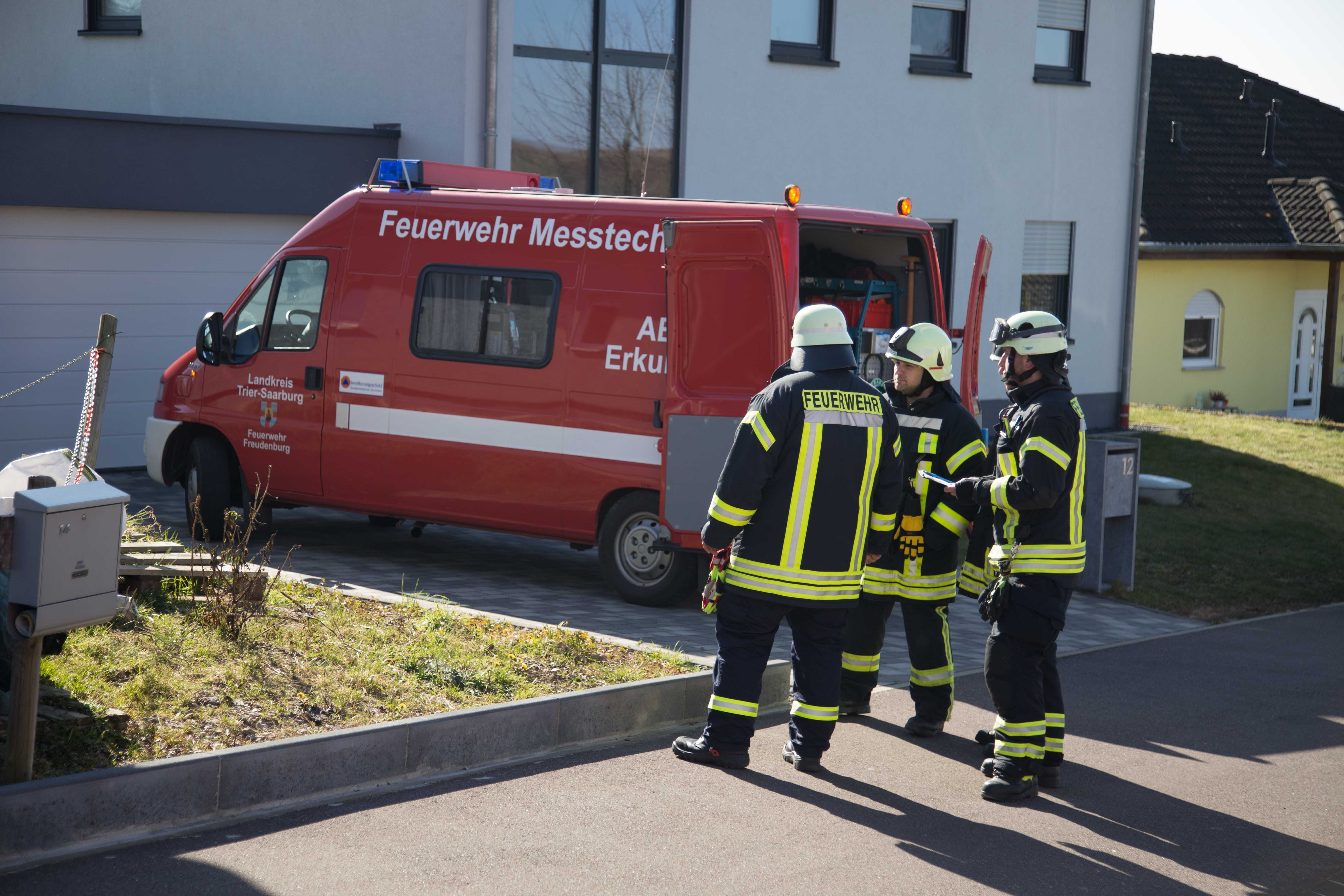 Die Feuerwehr Helfant und die ABC-Erkunder der Feuerwehr Freudenburg untersuchten unter Atemschutz das Wohnhaus, drehten die Gasleitungen ab und lüfteten die Räume.
