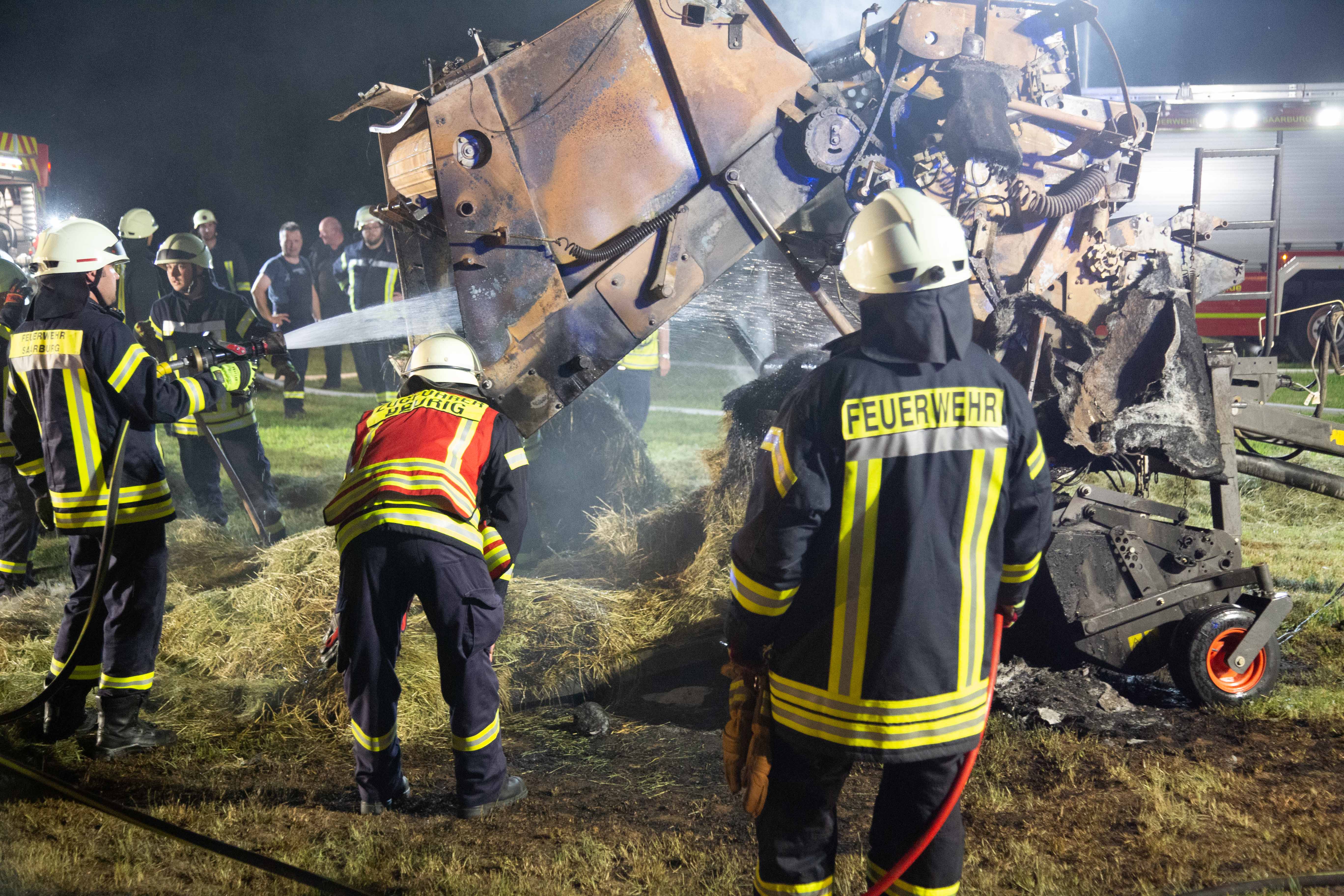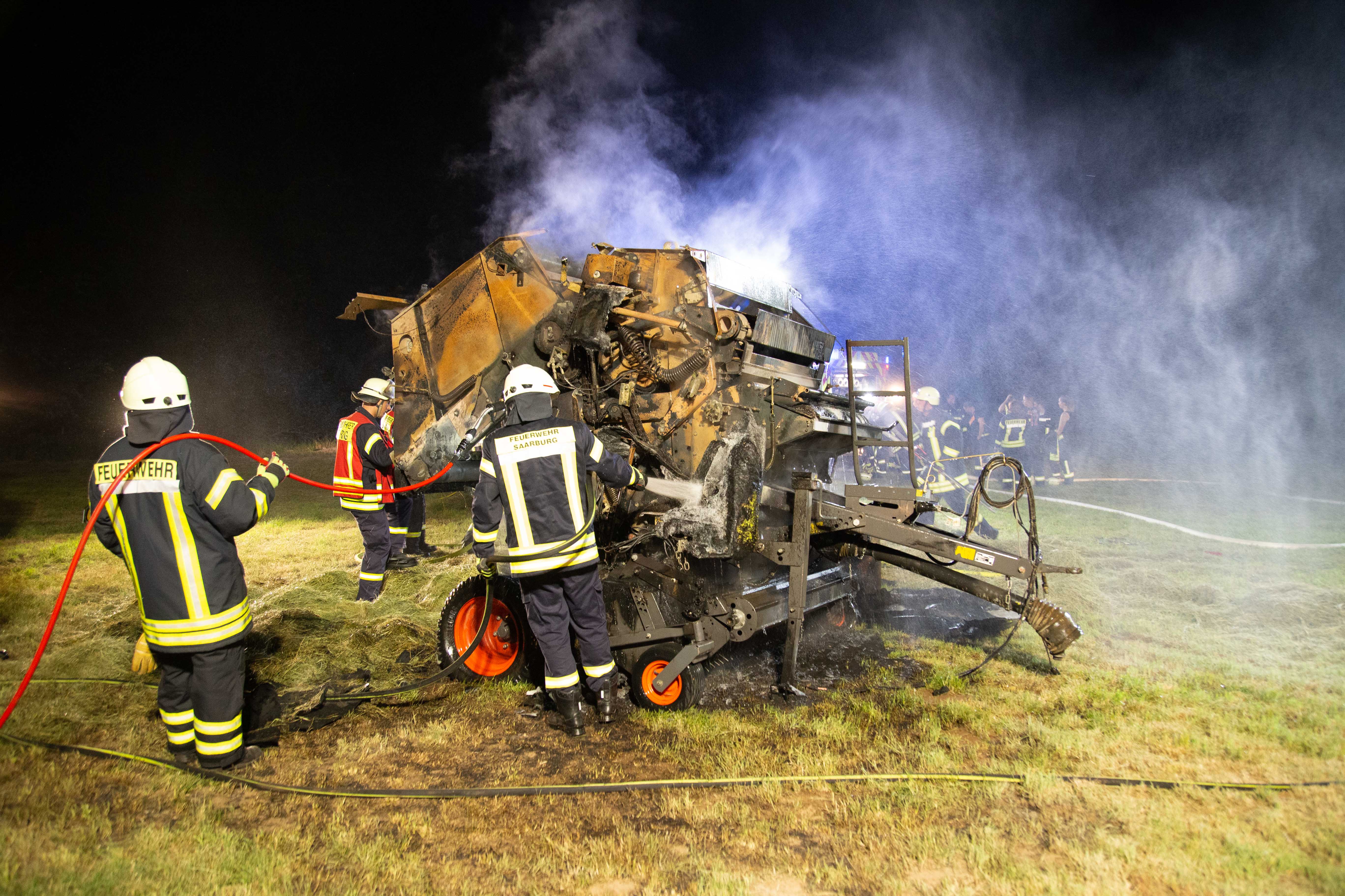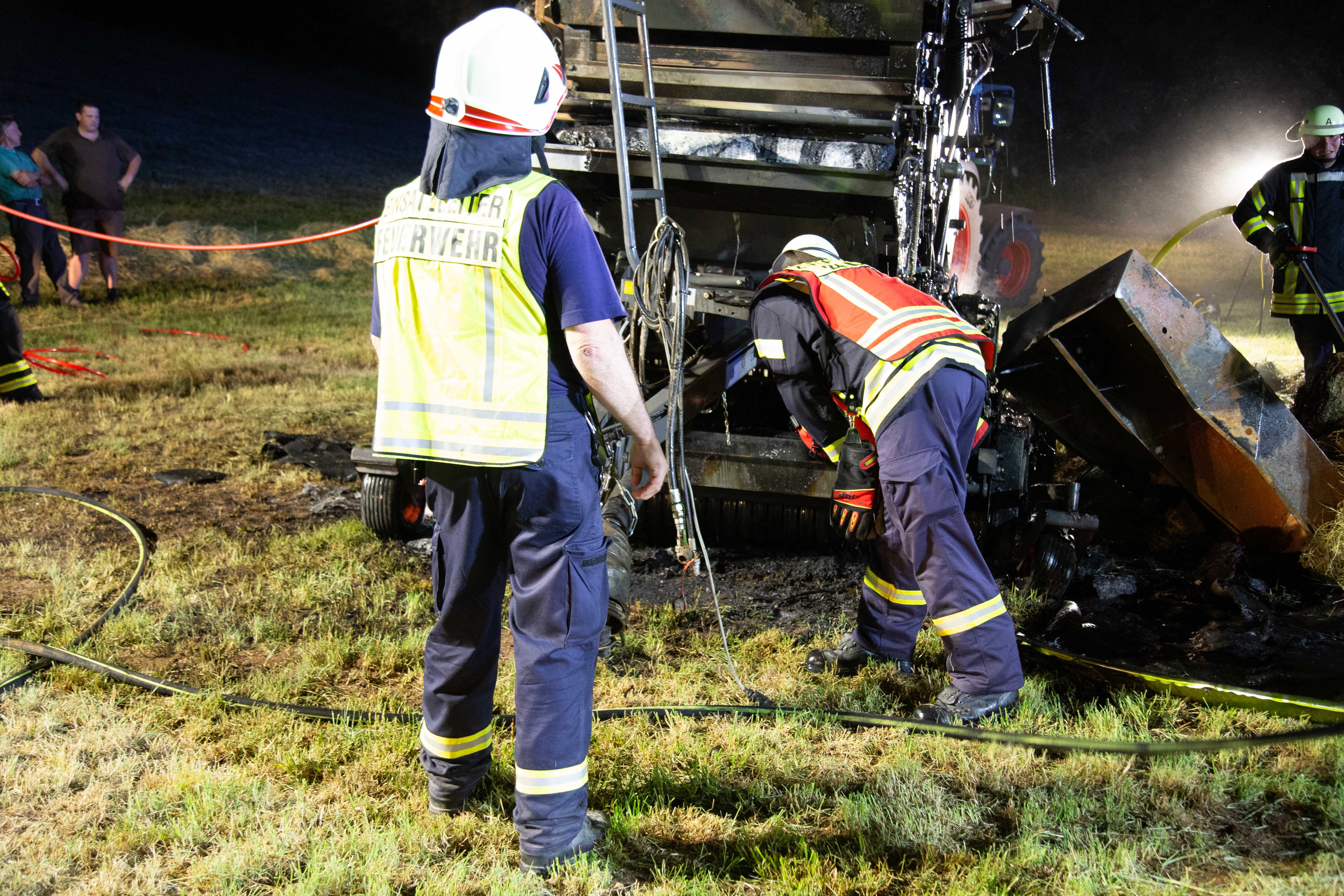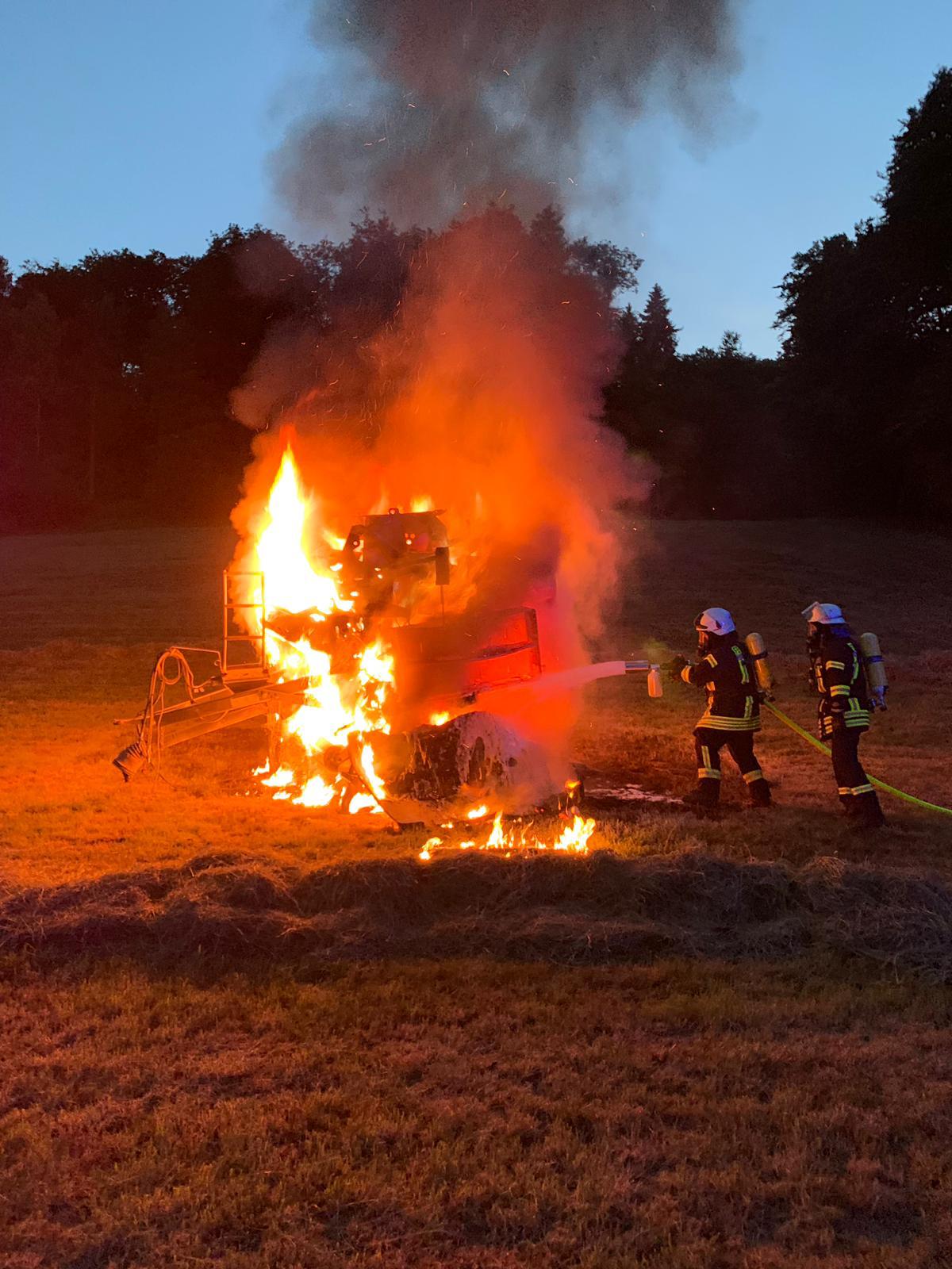 Heuballenpresse gerät bei Trassem in Brand – 30.000 € Schaden