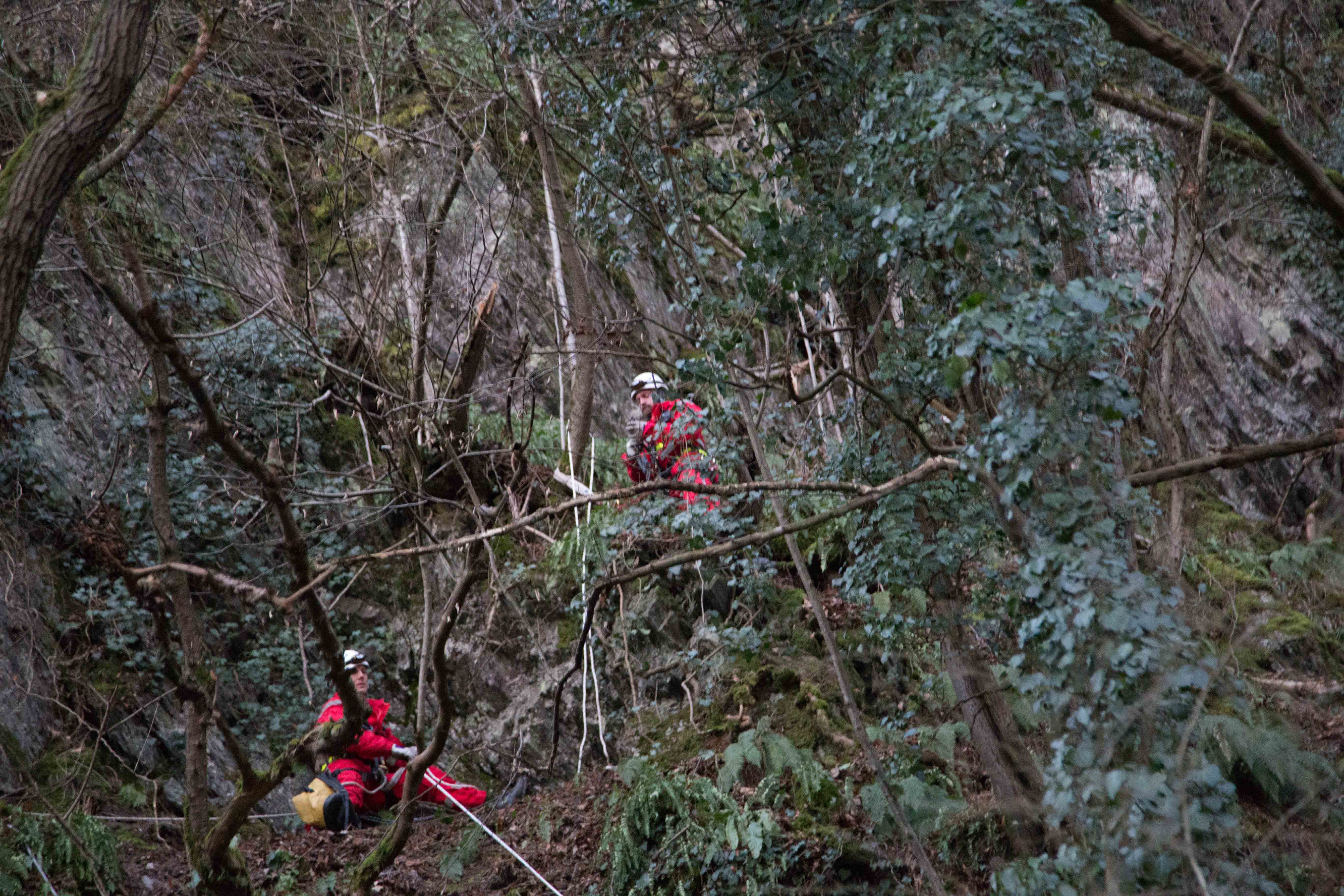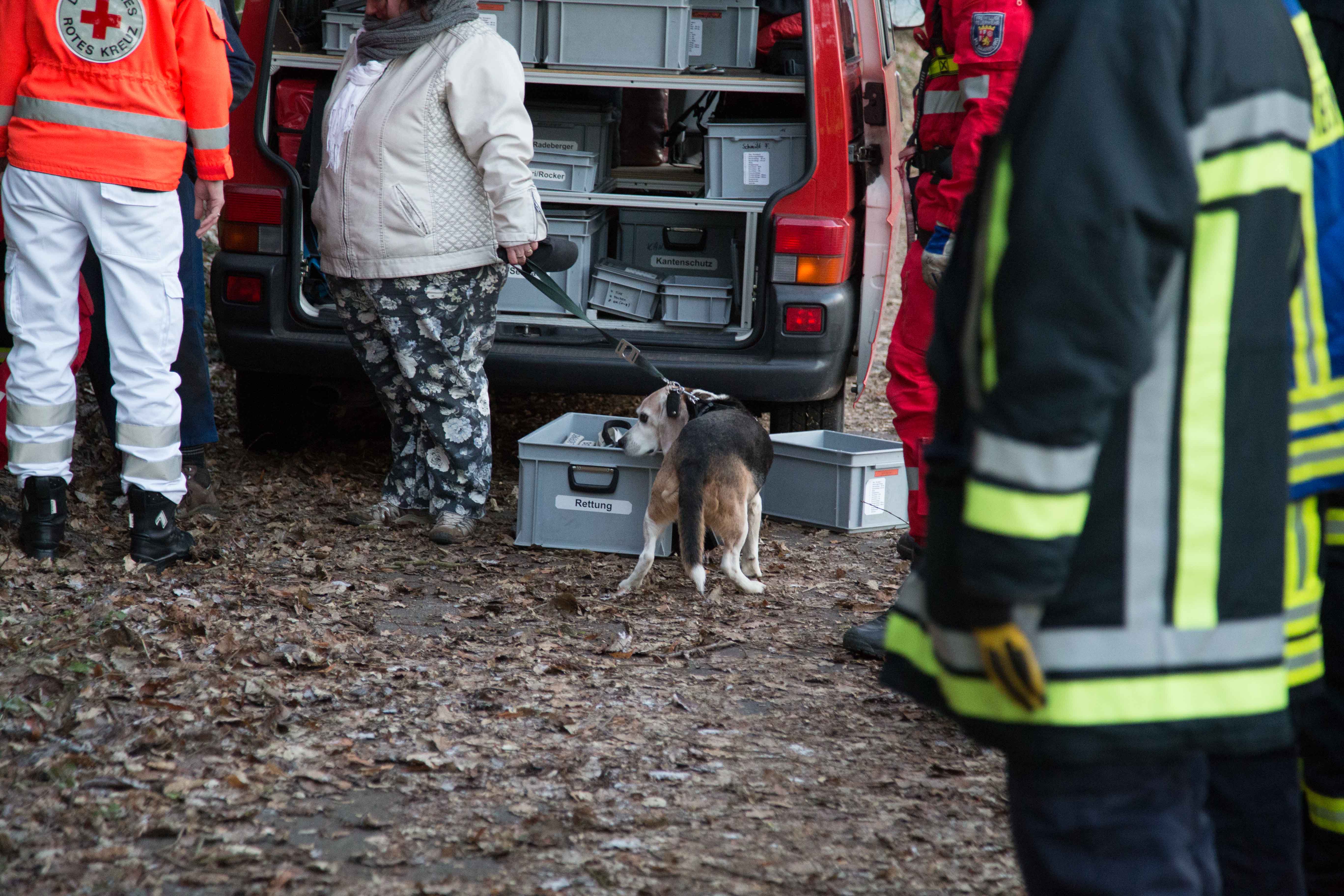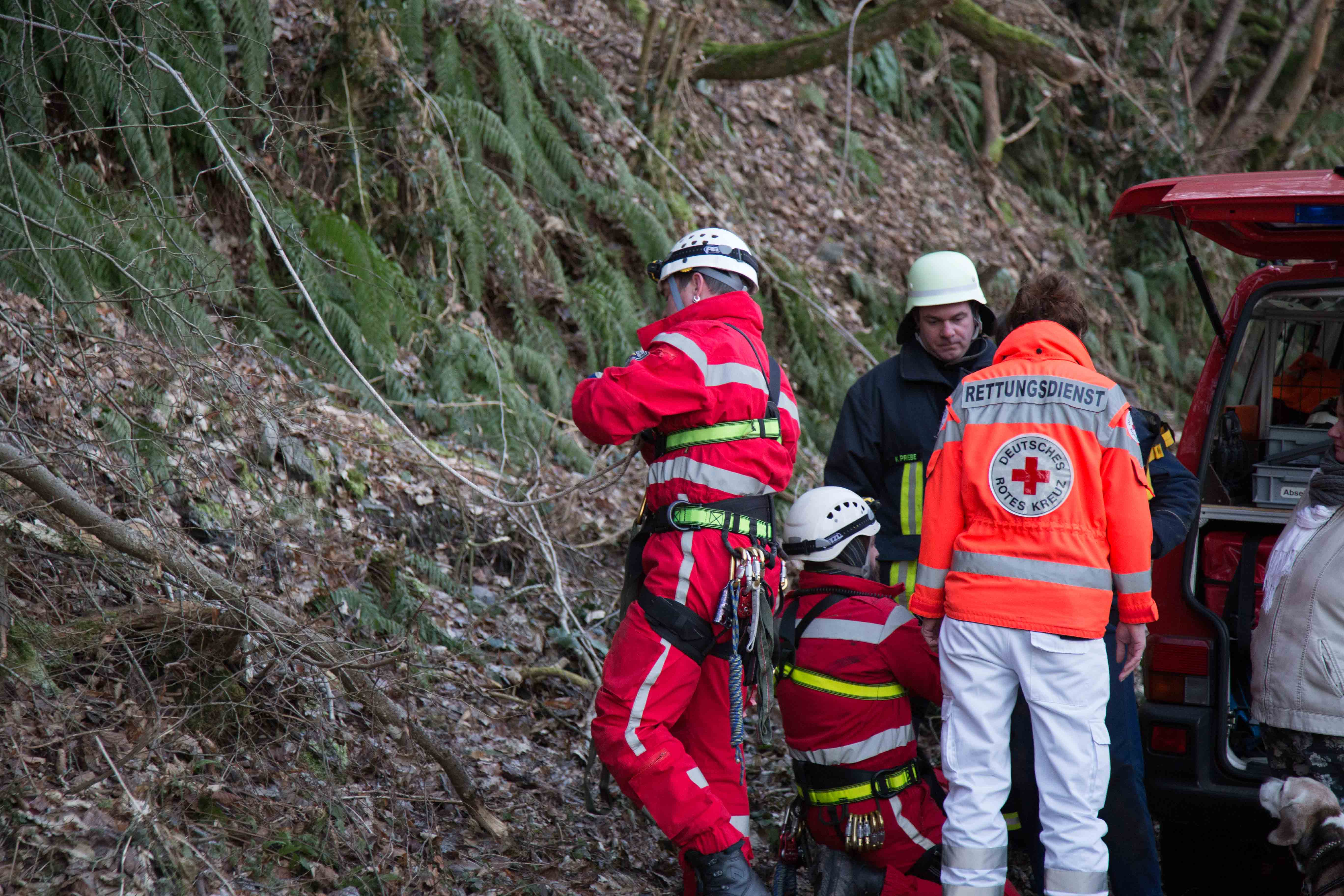 Der Beagle, ein instinktiver Jagdhund, war mit seinem Frauchen spazieren. Als er etwas witterte, lief er den Felshang hoch, kam allerdings nicht mehr runter. Aus Verzweiflung rief die Hundeführerin ihren Mann an. Dieser kam und wollte den Hund selbständig retten, dies misslang ihm aber , so das beide in der Felswand festhingen. Daraufhin wurde die Feuerwehr Taben-Rodt und die Höhenrettung der Feuerwehr Beurig alarmiert. Die Männer der Höhenretter haben nach Absprache mit dem Hundehalter zuerst den Hund abgeseilt und dann den Hundehalter. Beide blieben unverletzt,wurden allerdings kurz vom Rettungsdienst betreut, da sie bei minus zwei Grad leicht unterkühlt waren.