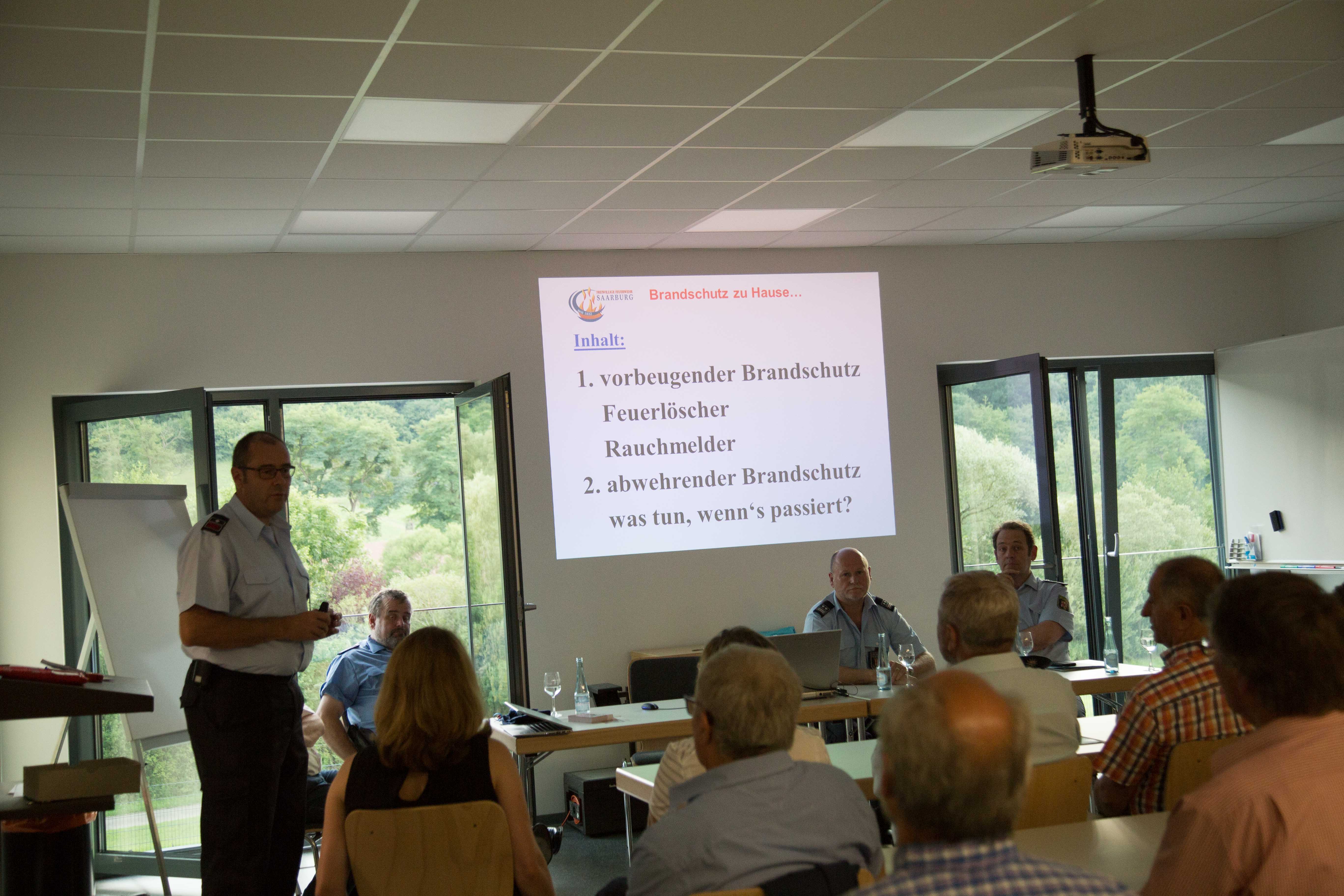 Auch der Wehrführer des Löschzugs Mitte der Feuerwehr Saarburg ,Christof Leinenbach zeigte den Zuhörern mit Bildmaterial die vielfältigen Möglichkeiten des vorbeugenden Brandschutz zu Hause.