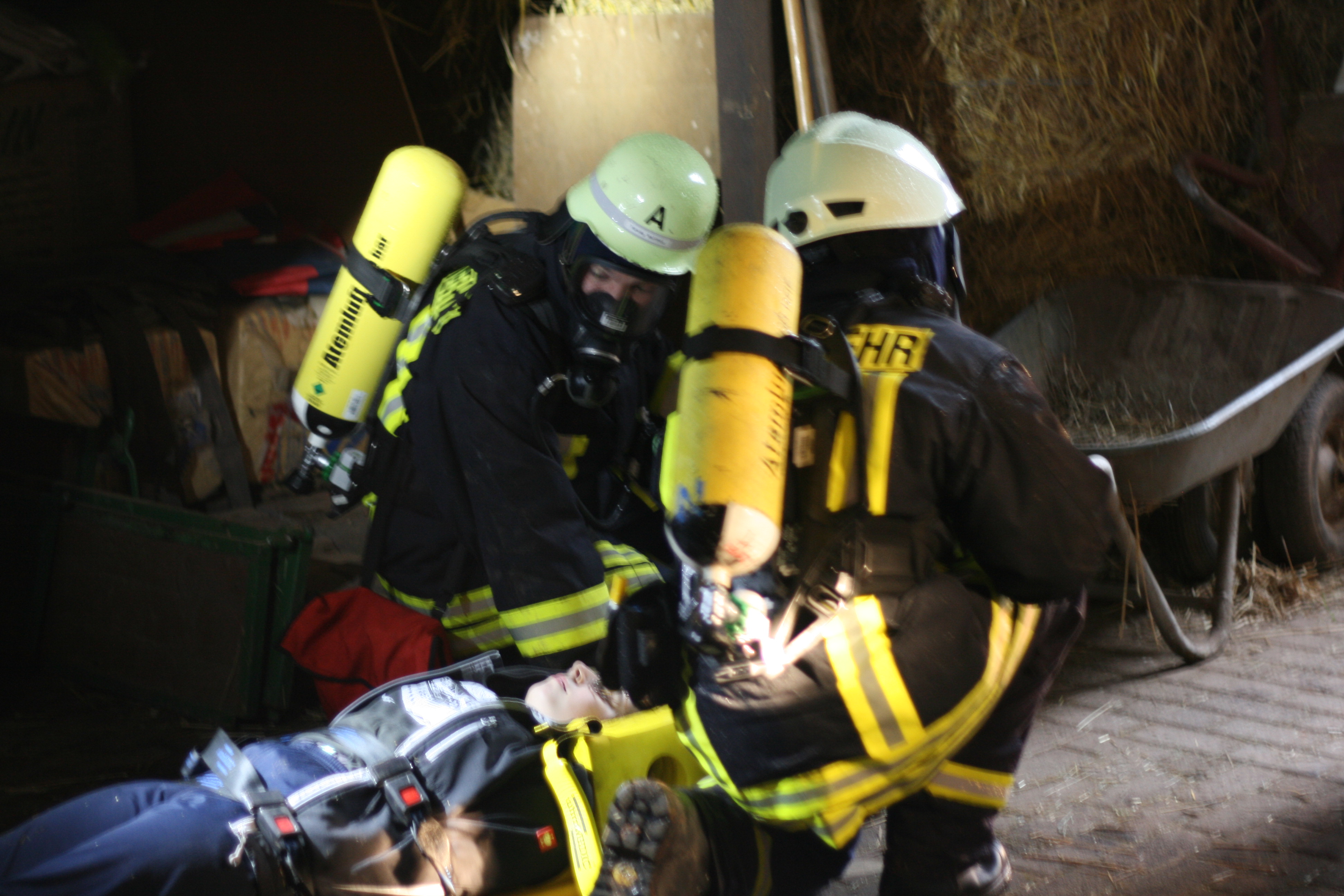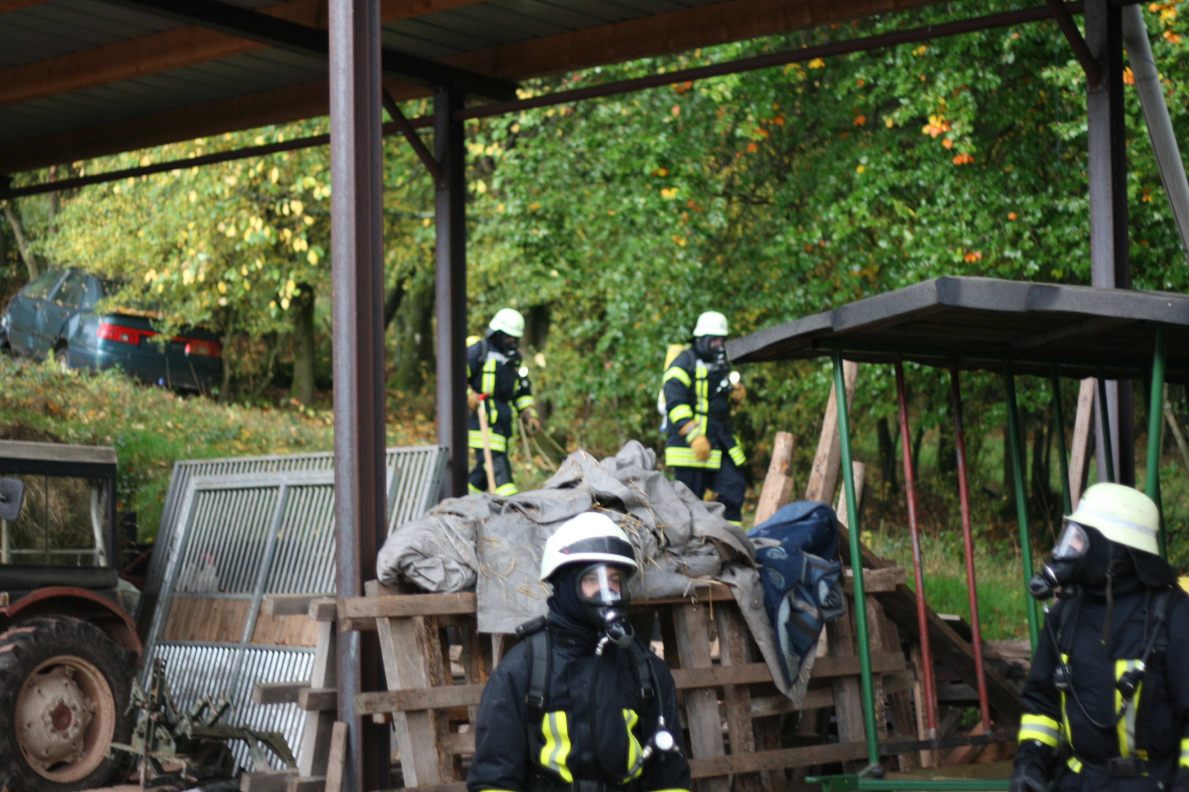 Das Einsatzsszenario bestand hierbei aus einem Waldbrand, der drohte auf landwirtschaftliche Gebäude überzugreifen. Bei Ankunft an der Einsatzstelle wurde eine bereits verrauchte Halle vorgefunden. 3 Personen wurden vermisst. Somit mussten die Feuerwehrleute zwei verschiedene Einsatzabschnitte bewältigen.