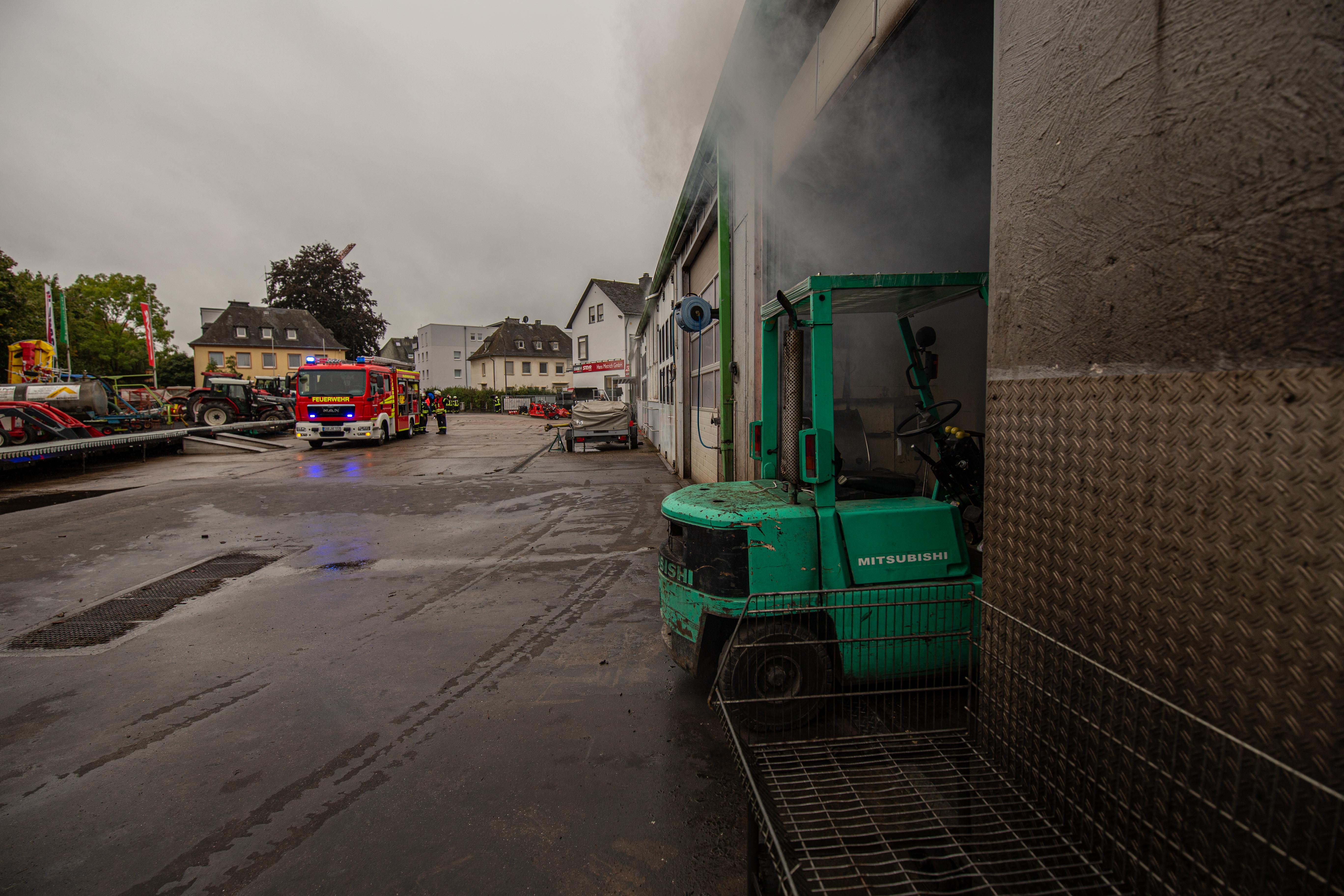 Beurig. Am Sonntagmittag gegen 14:30 Uhr alarmierte die Leitstelle Trier die Feuerwehr Beurig über Sirene zu einem Brand bei der Firma Landmaschinen Metrich in Beurig.