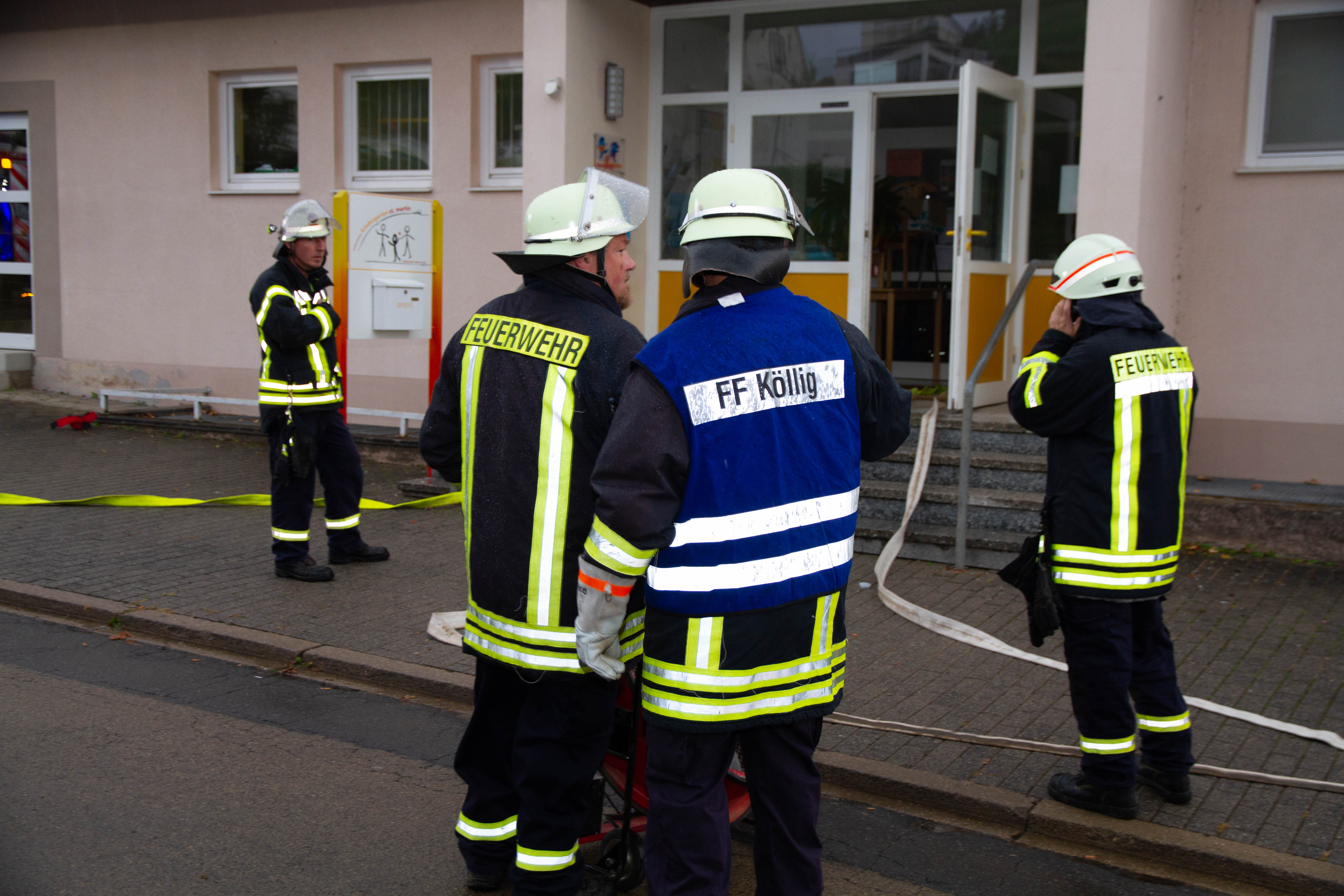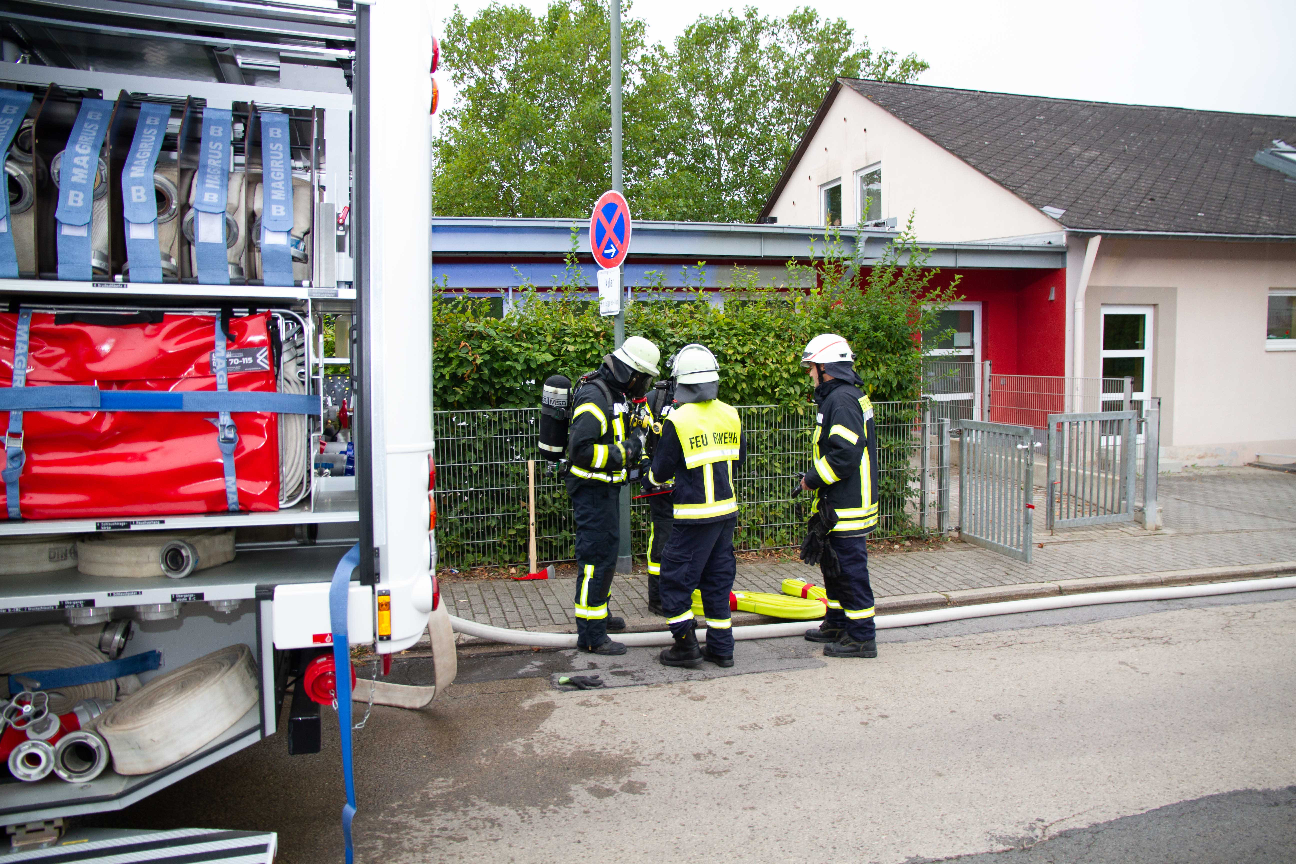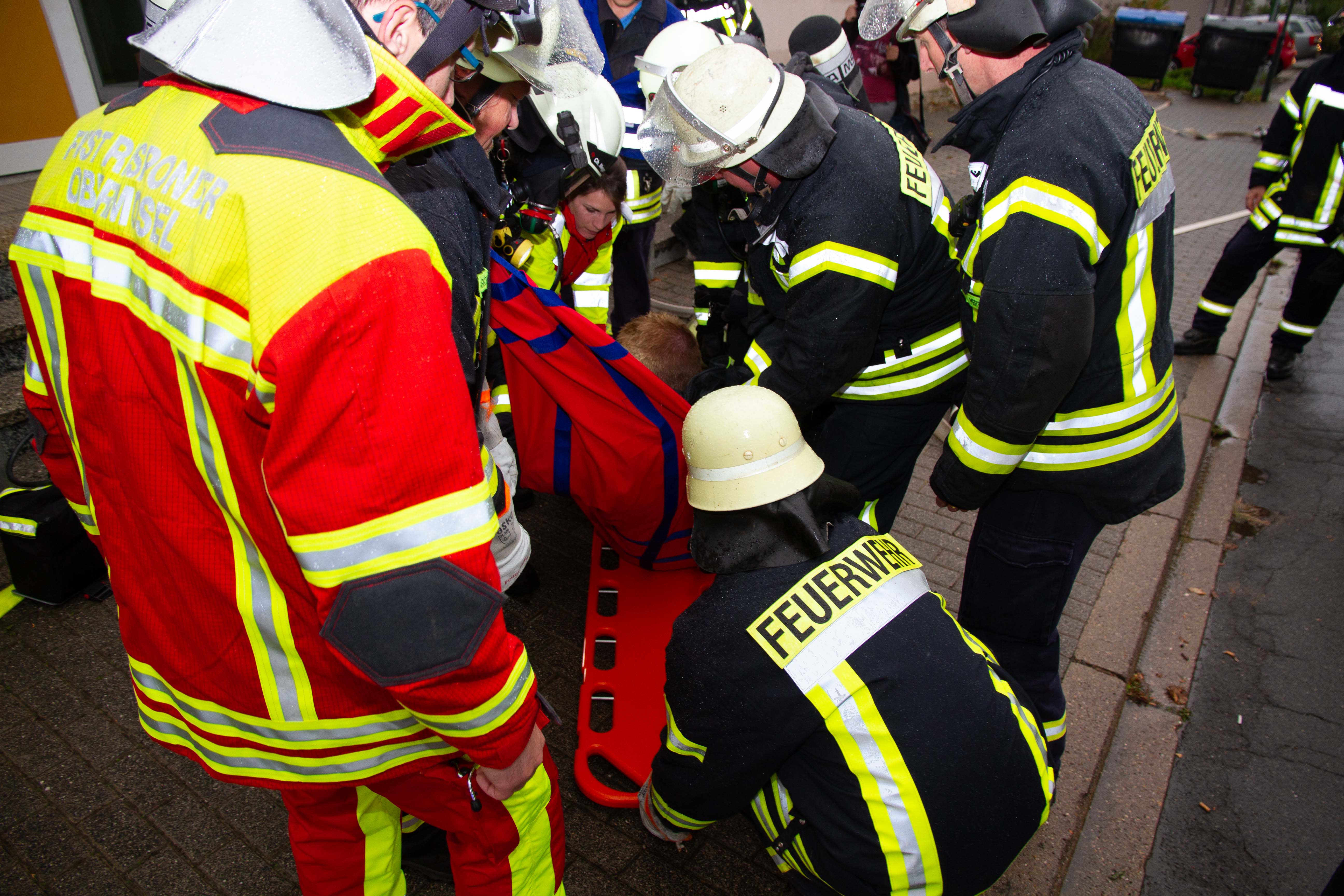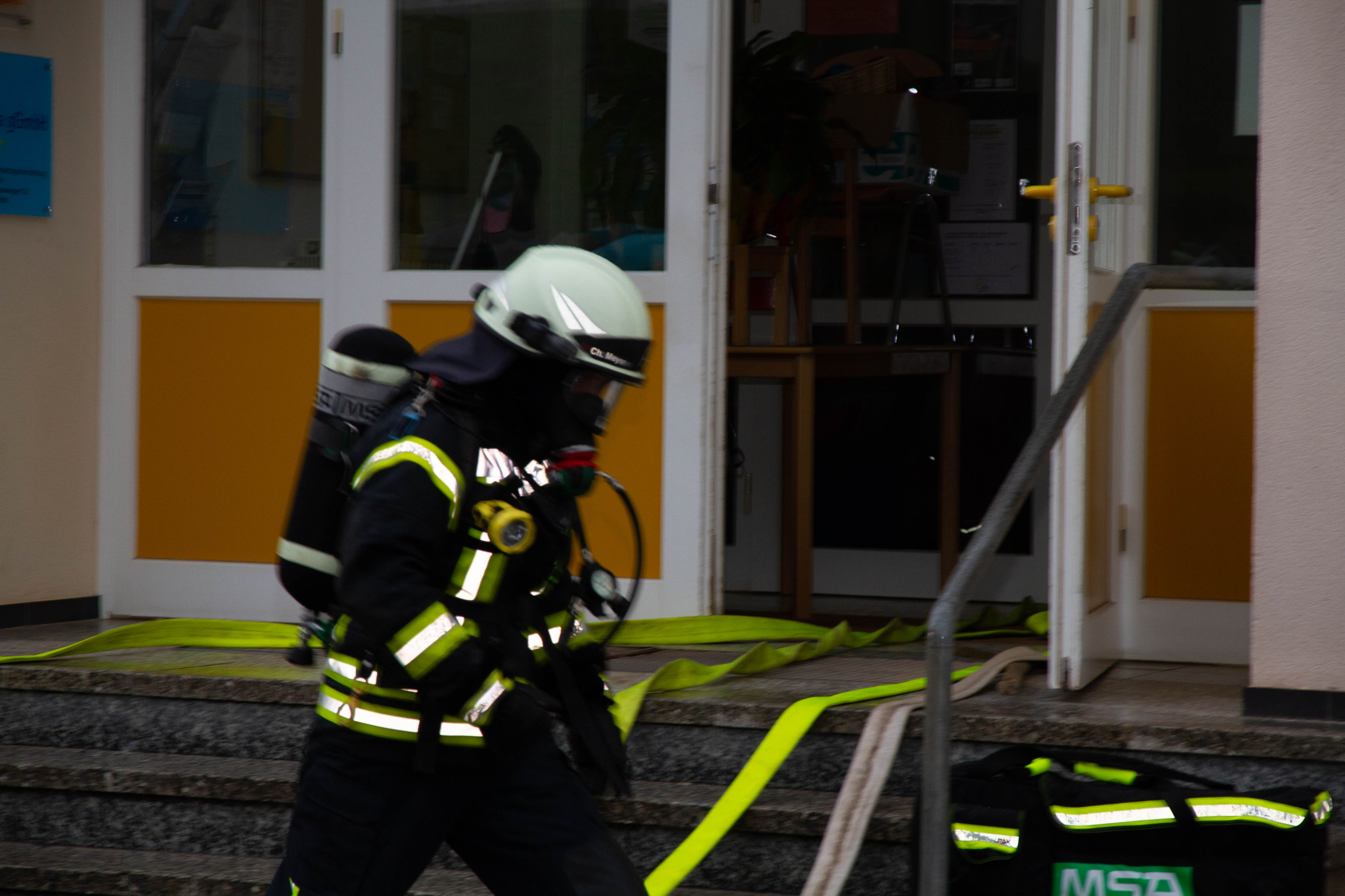 Beim öffnen der Eingangstür trat ein starker Rauch aus dem Gebäude. Nach Aufbau der Wasserversorgung begaben sich nach Ersterkundung die AGT Träger in das Gebäude. Über eine Steckleiter wurden zwei Kinder aus dem ersten Stock gerettet, während die anderen Kinder über den Haupteingang gerettet wurden.