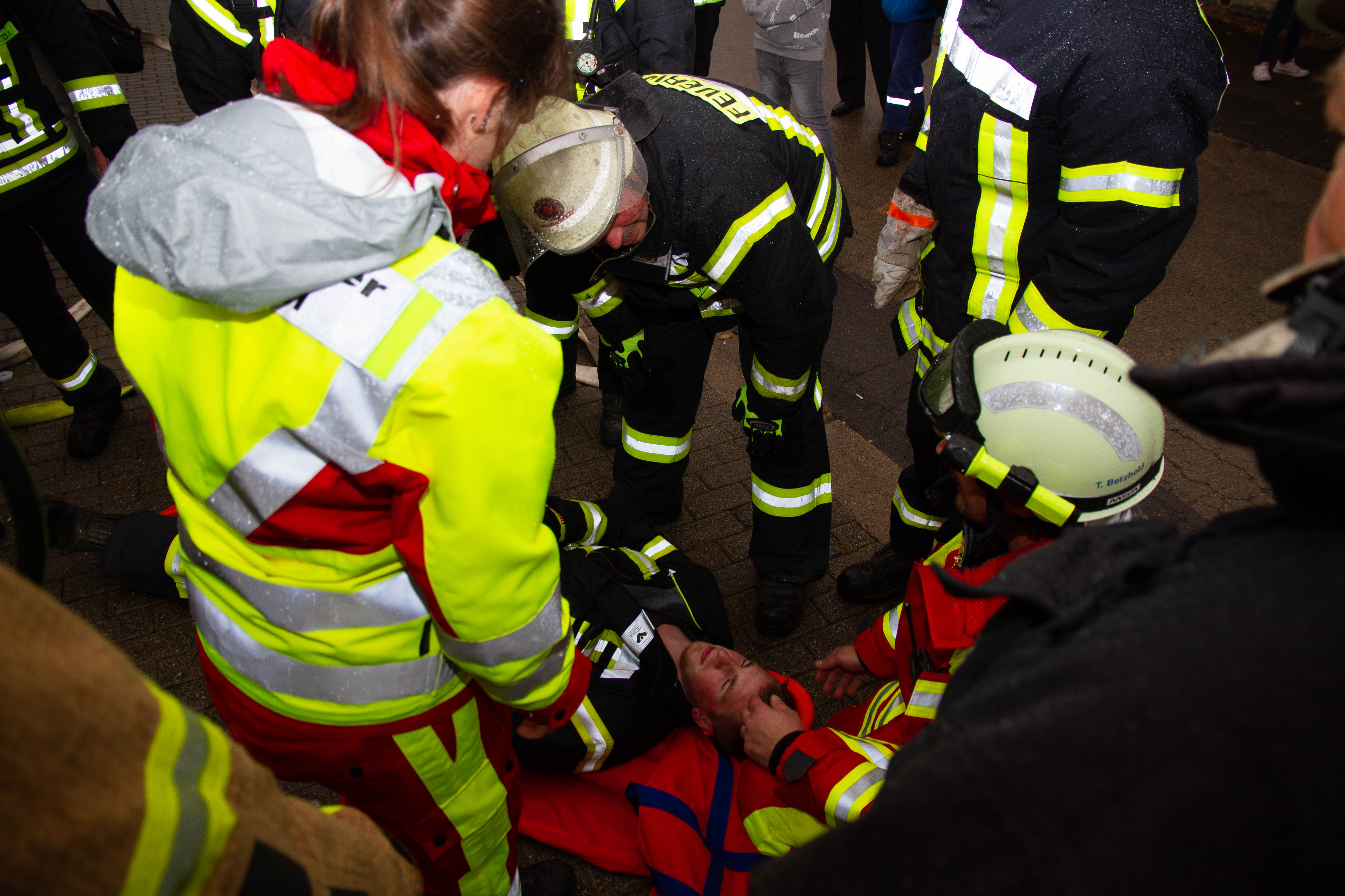 Auch ein Feuerwehrmann wurde verletzt und dem Rettungsdienst überstellt.