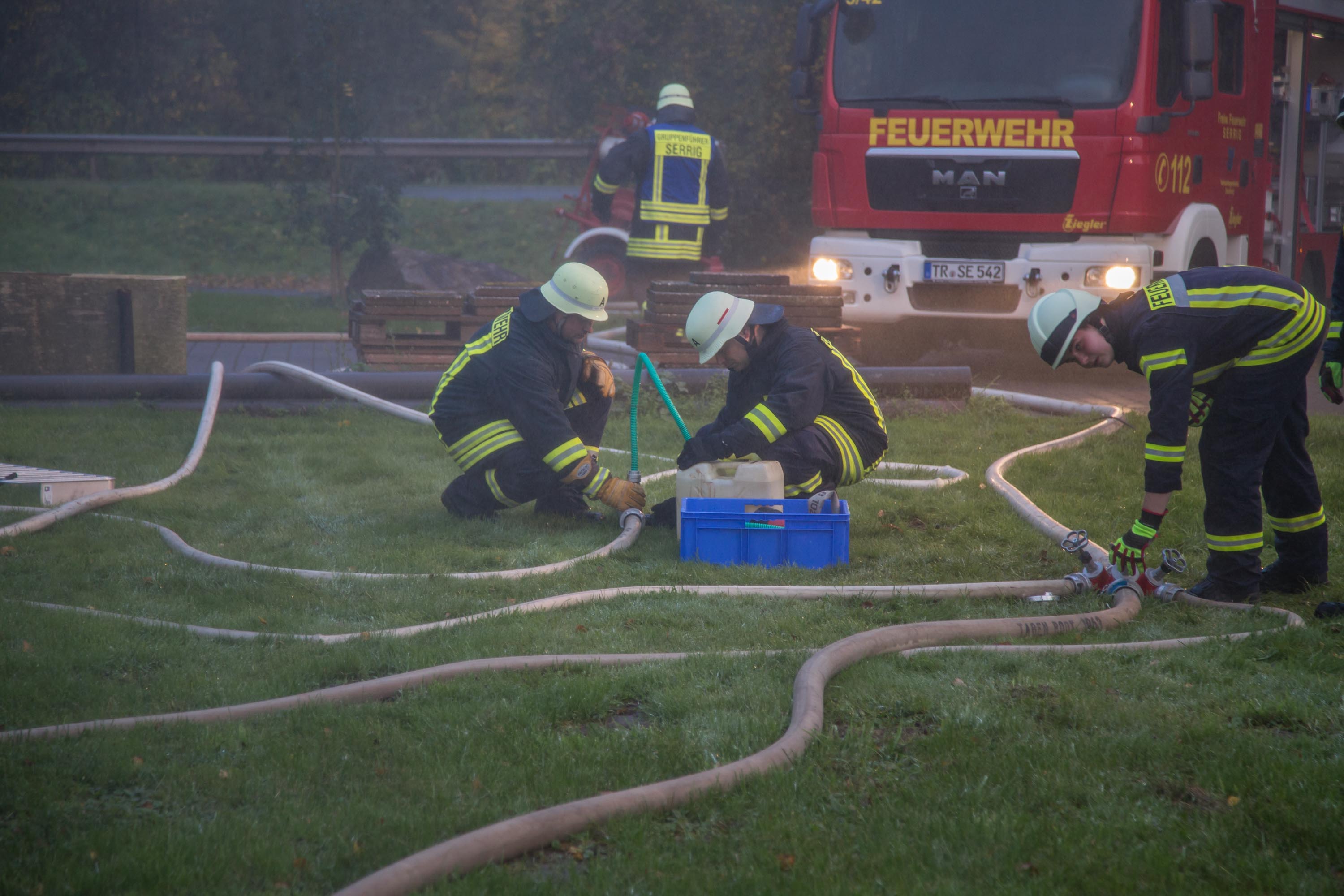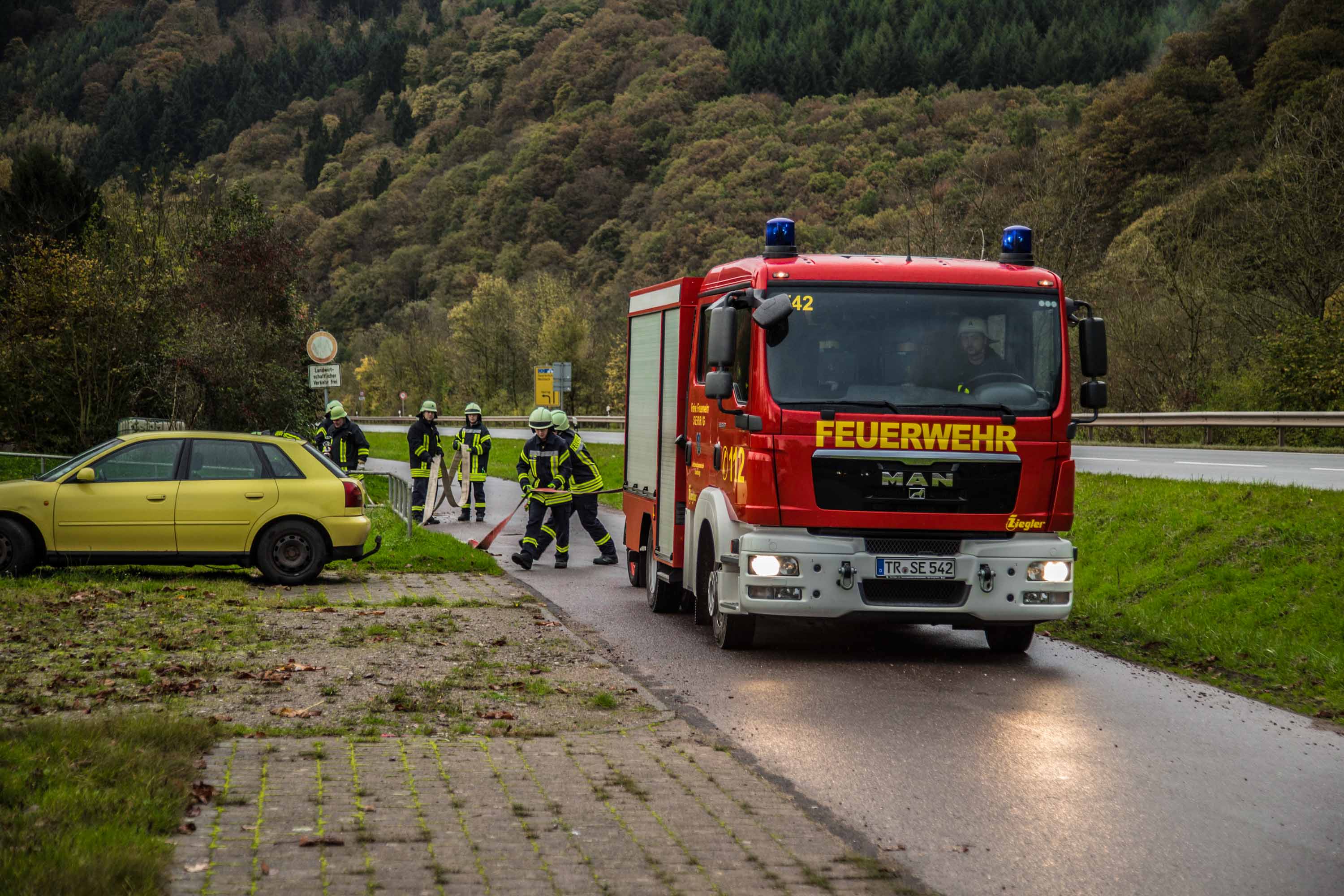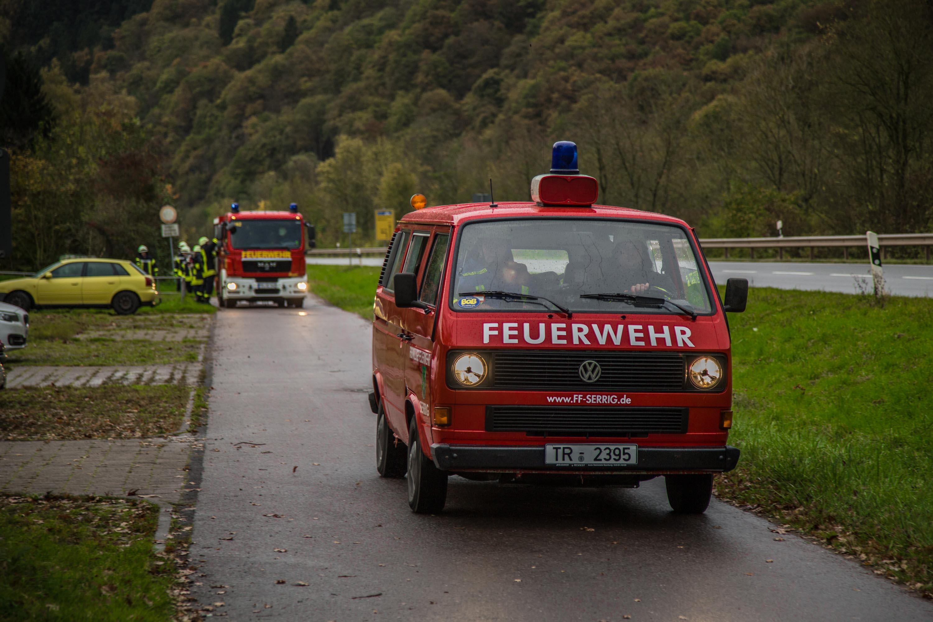 Die Feuerwehr Serrig rückte mit dem MTW, MLF und dem Schlauchanhänger aus aus.