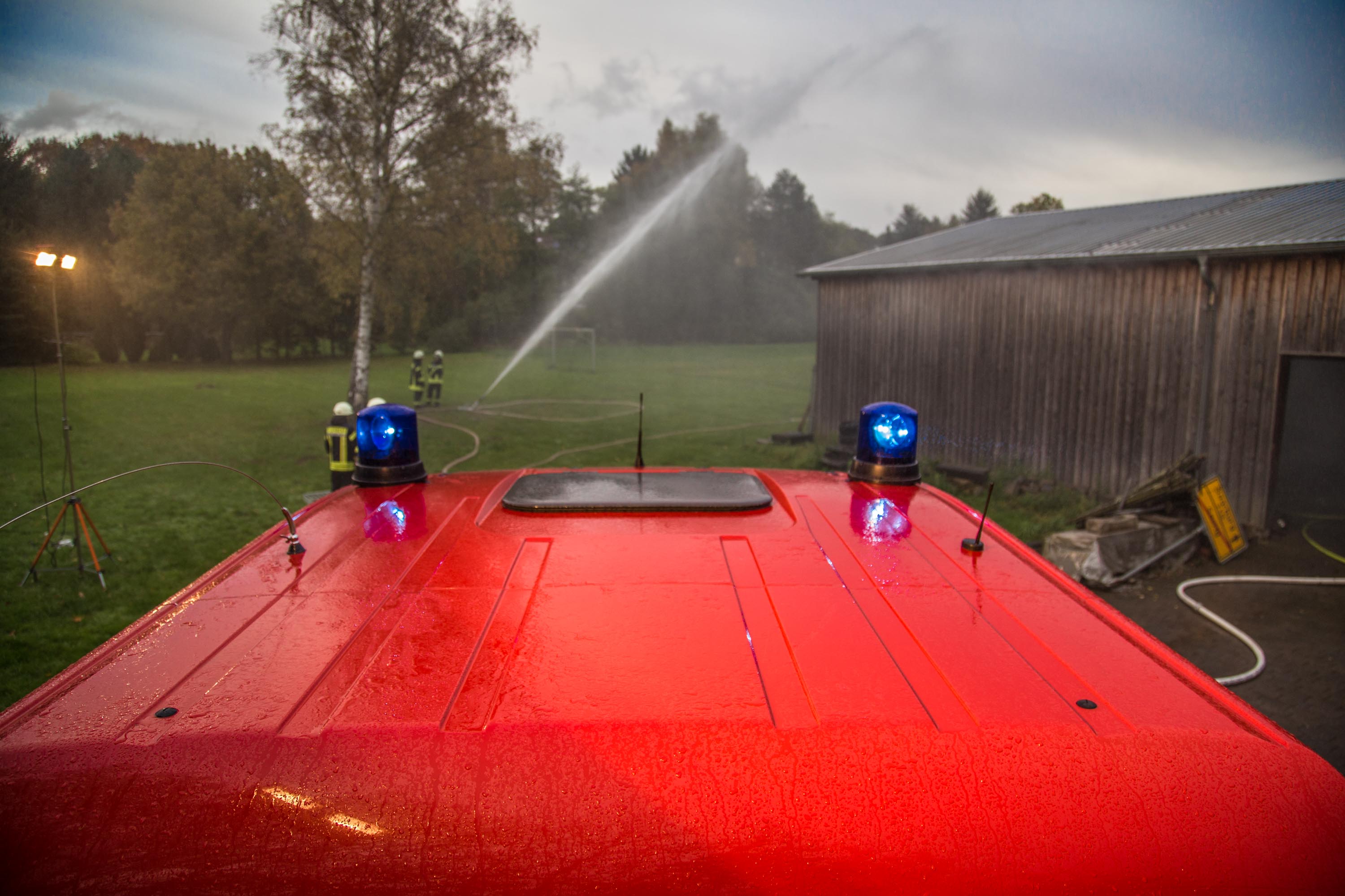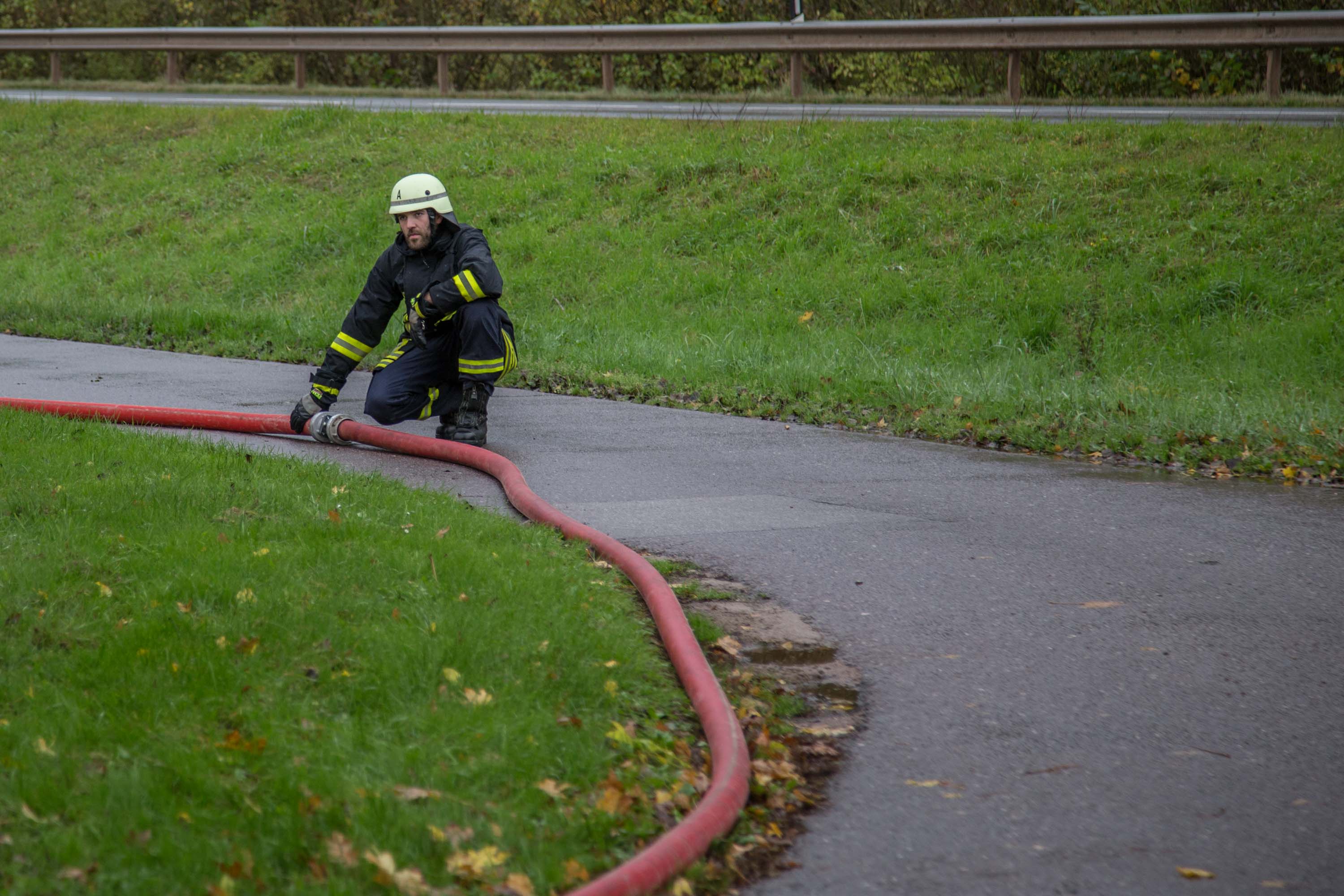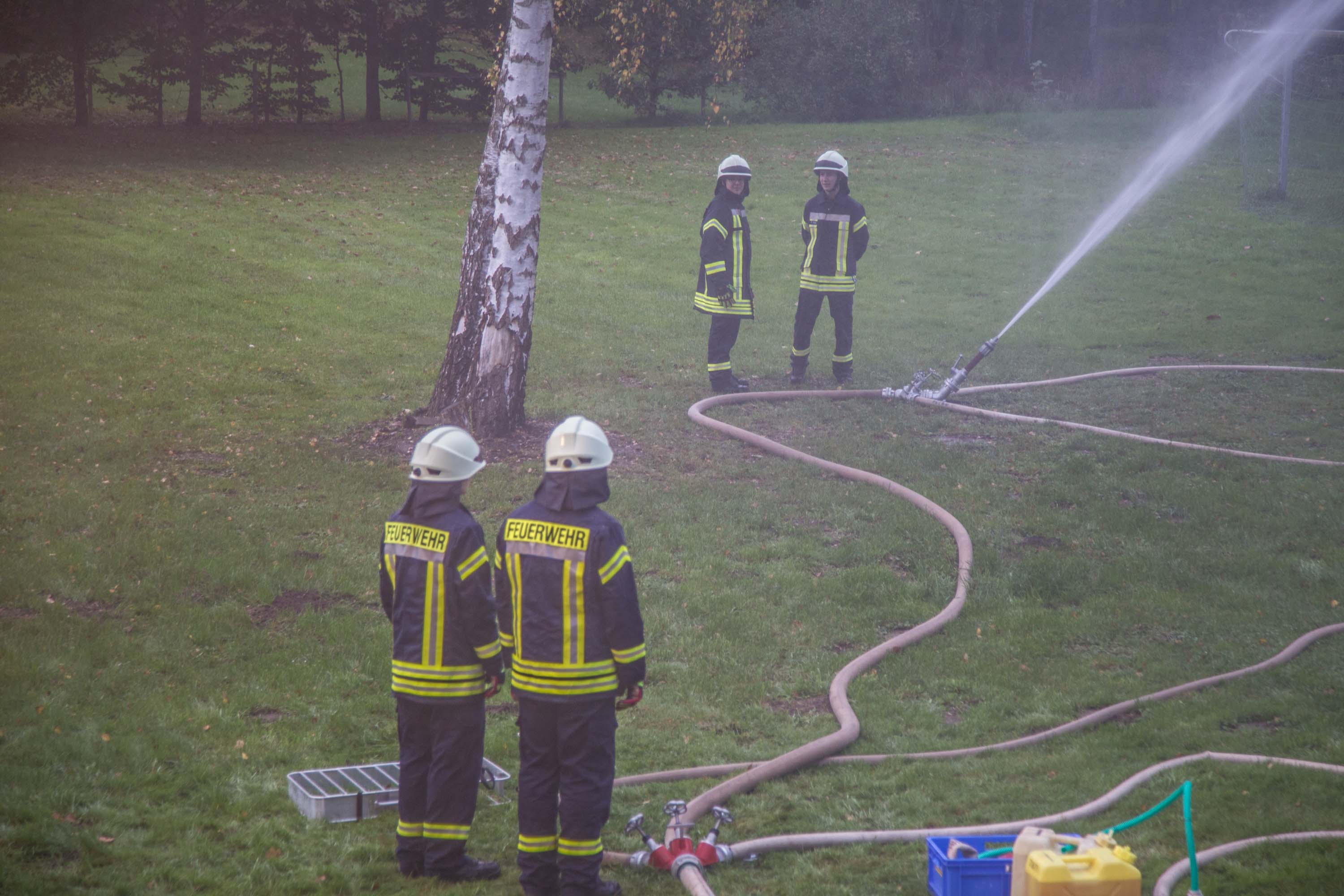 Zunächst wurde eine Wasserleitung über rund 150 Meter zum nächstem Hydranten gelegt und gleichzeitig die Lage erkundet.