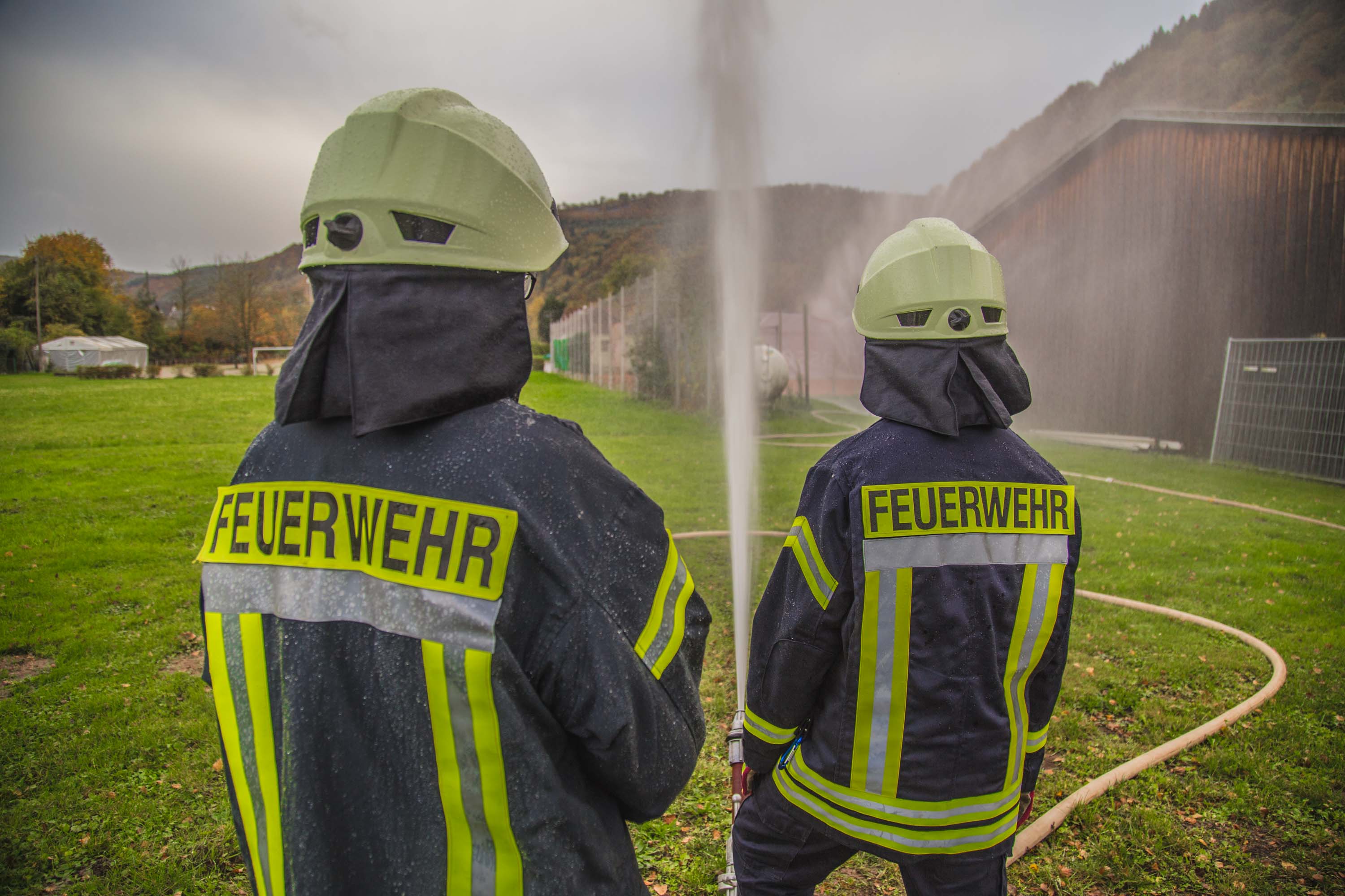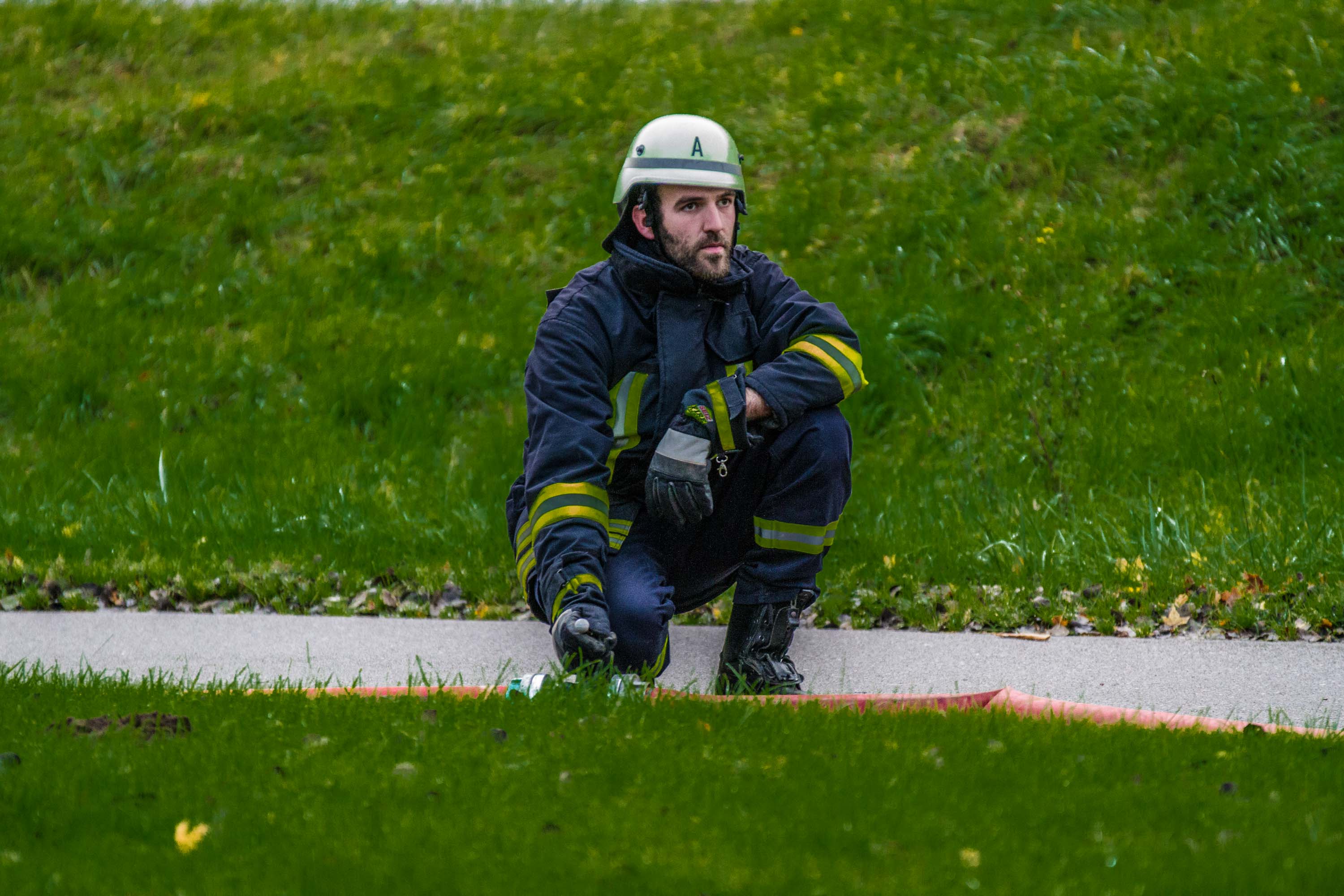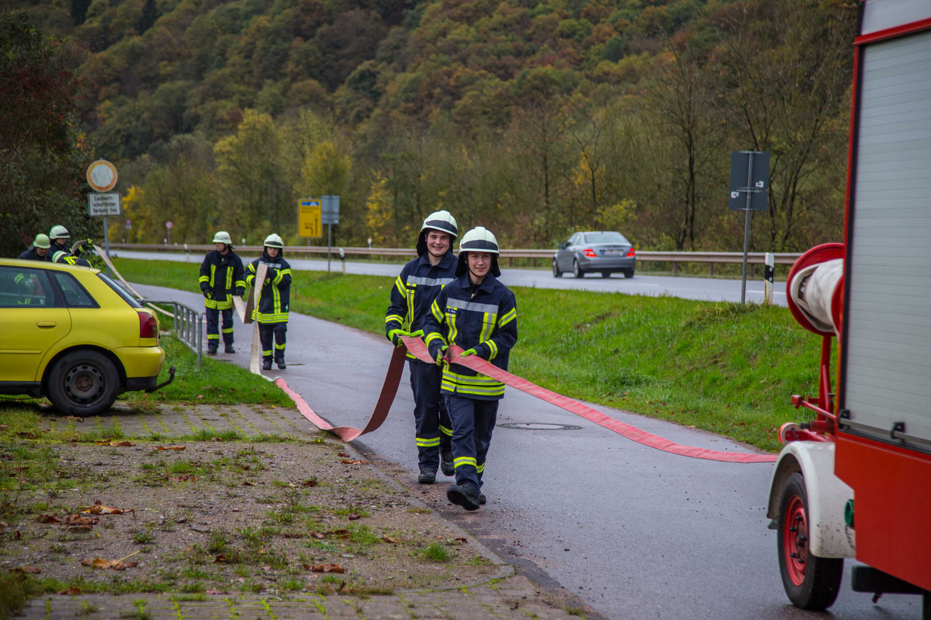 Zunächst wurde eine Wasserleitung über rund 150 Meter zum nächstem Hydranten gelegt und gleichzeitig die Lage erkundet.