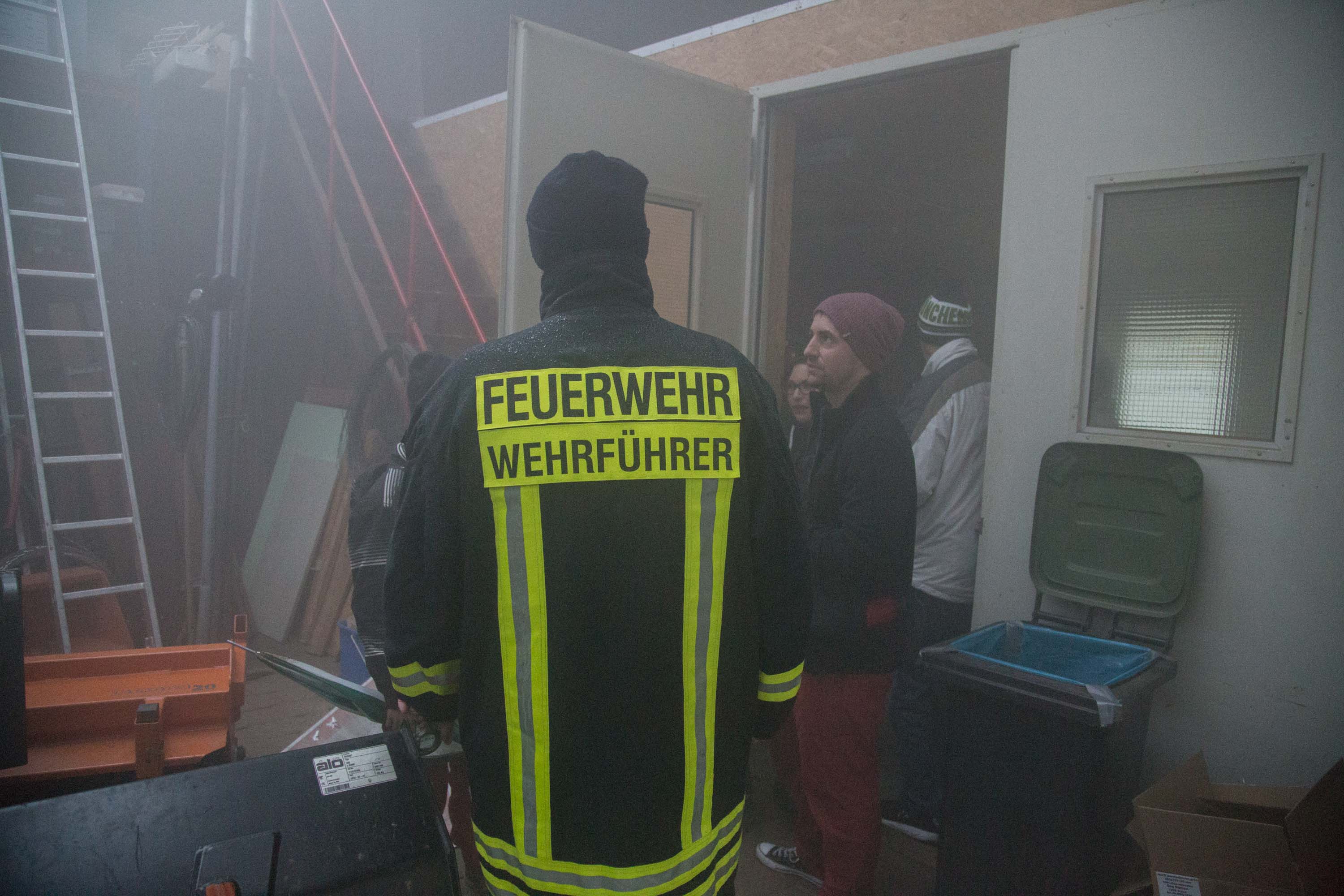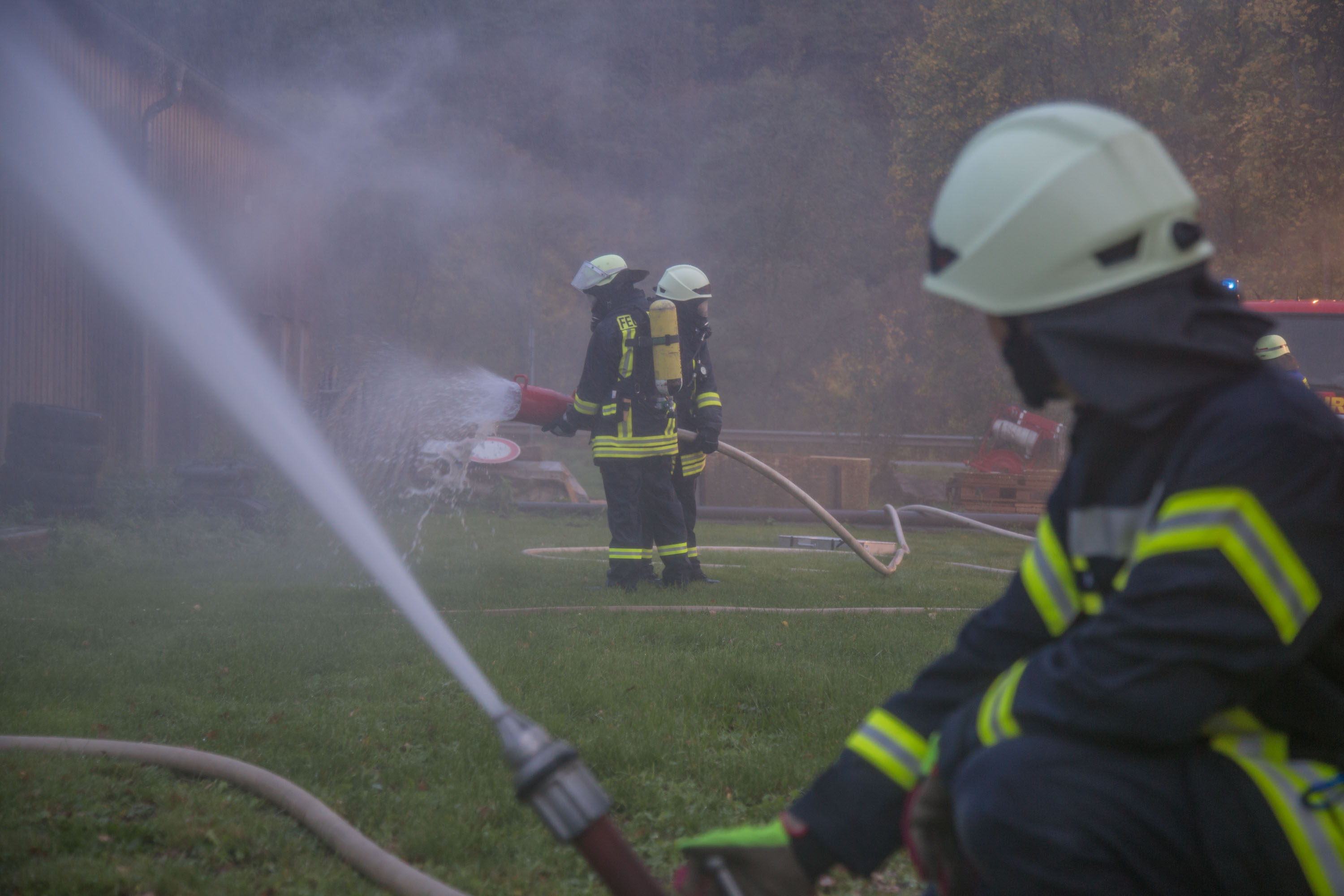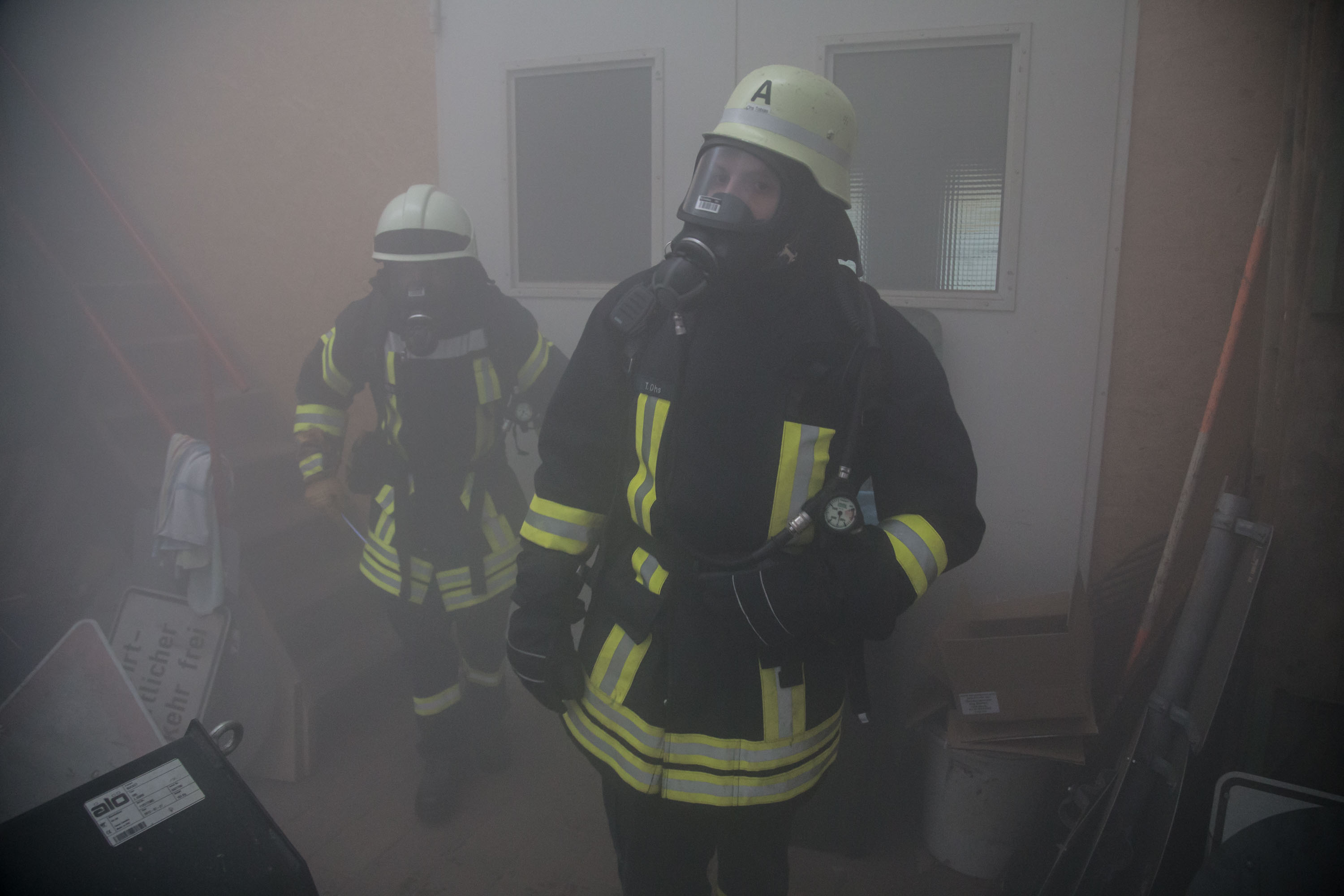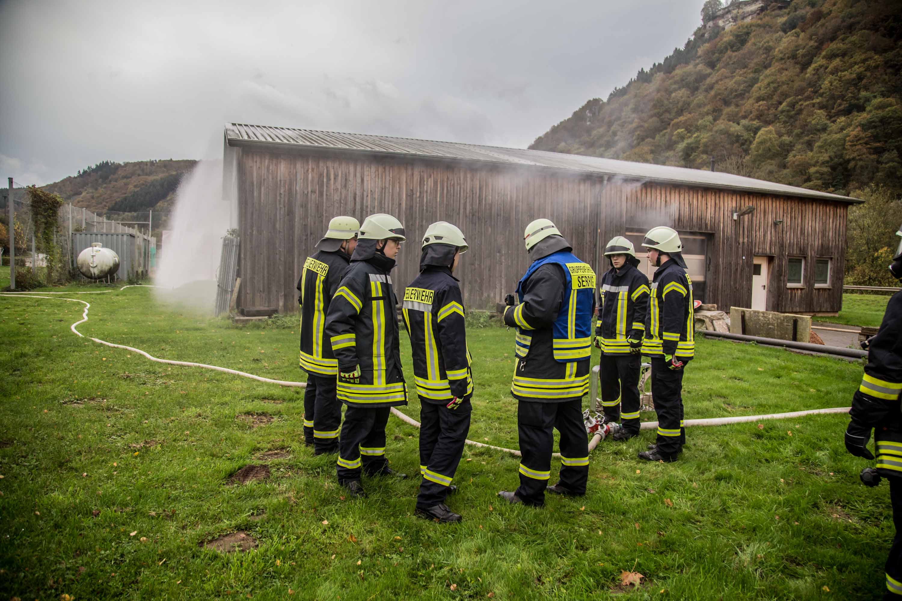 Das Szenario war eine Rauchentwicklung aus einer Lagerhalle der Gemeinde, es war unklar ob Personen in Gefahr sind.