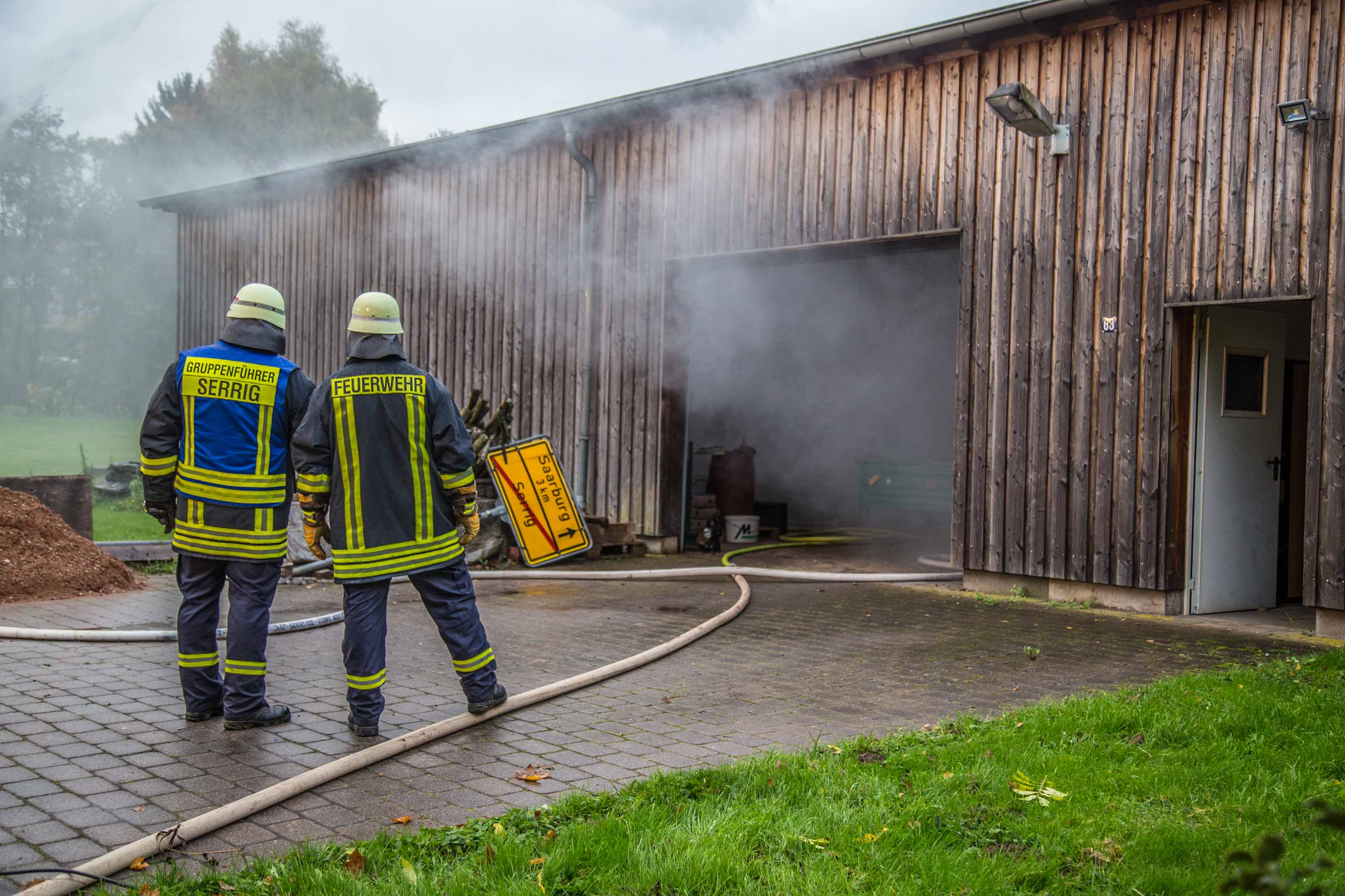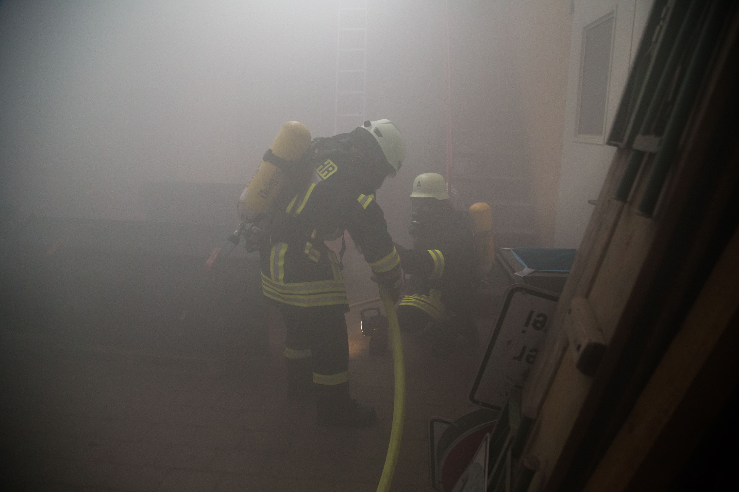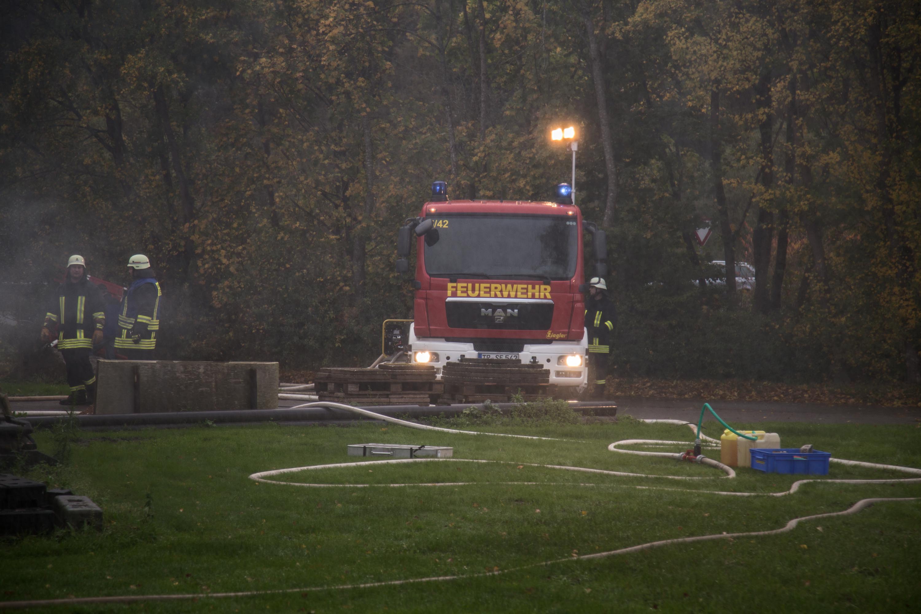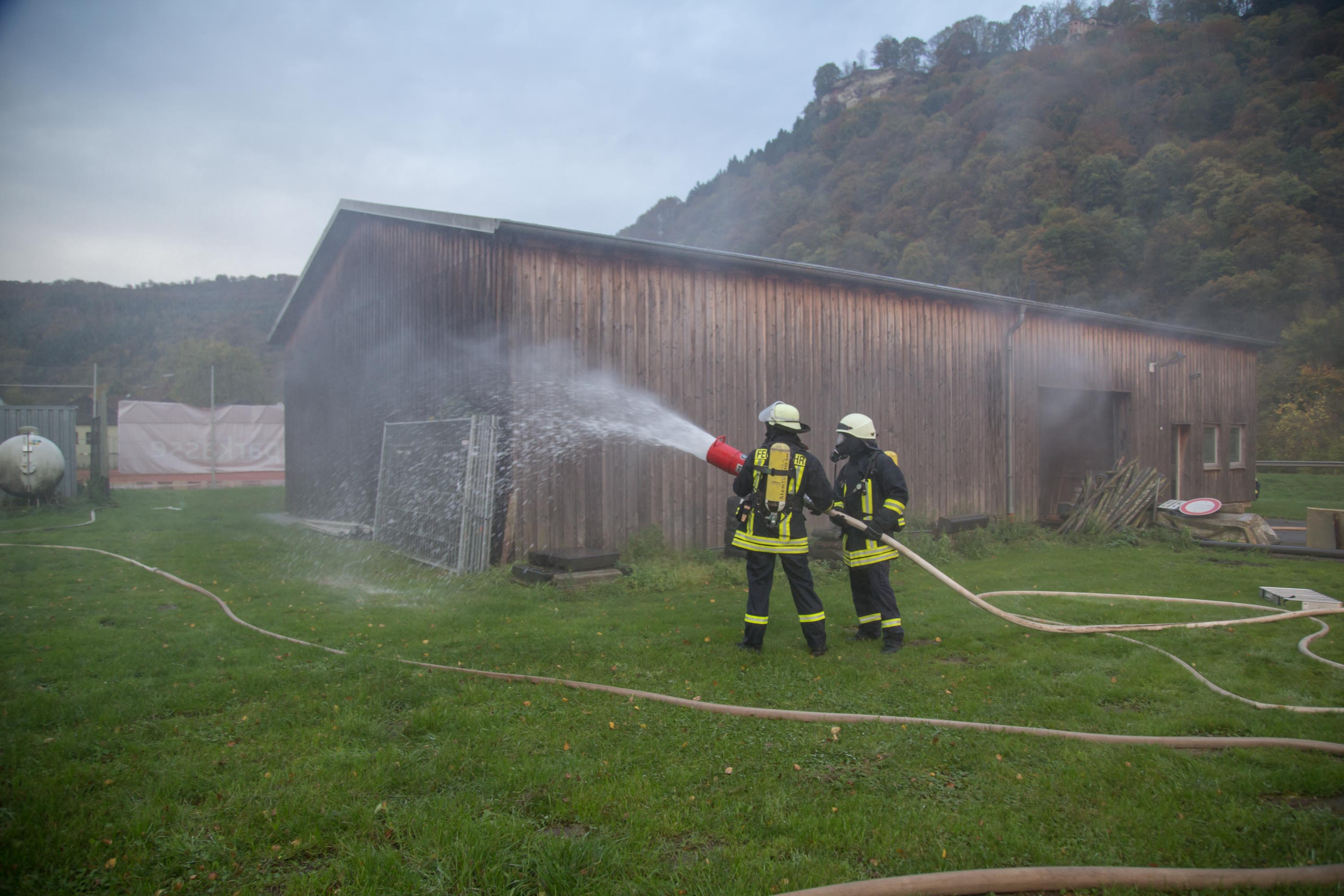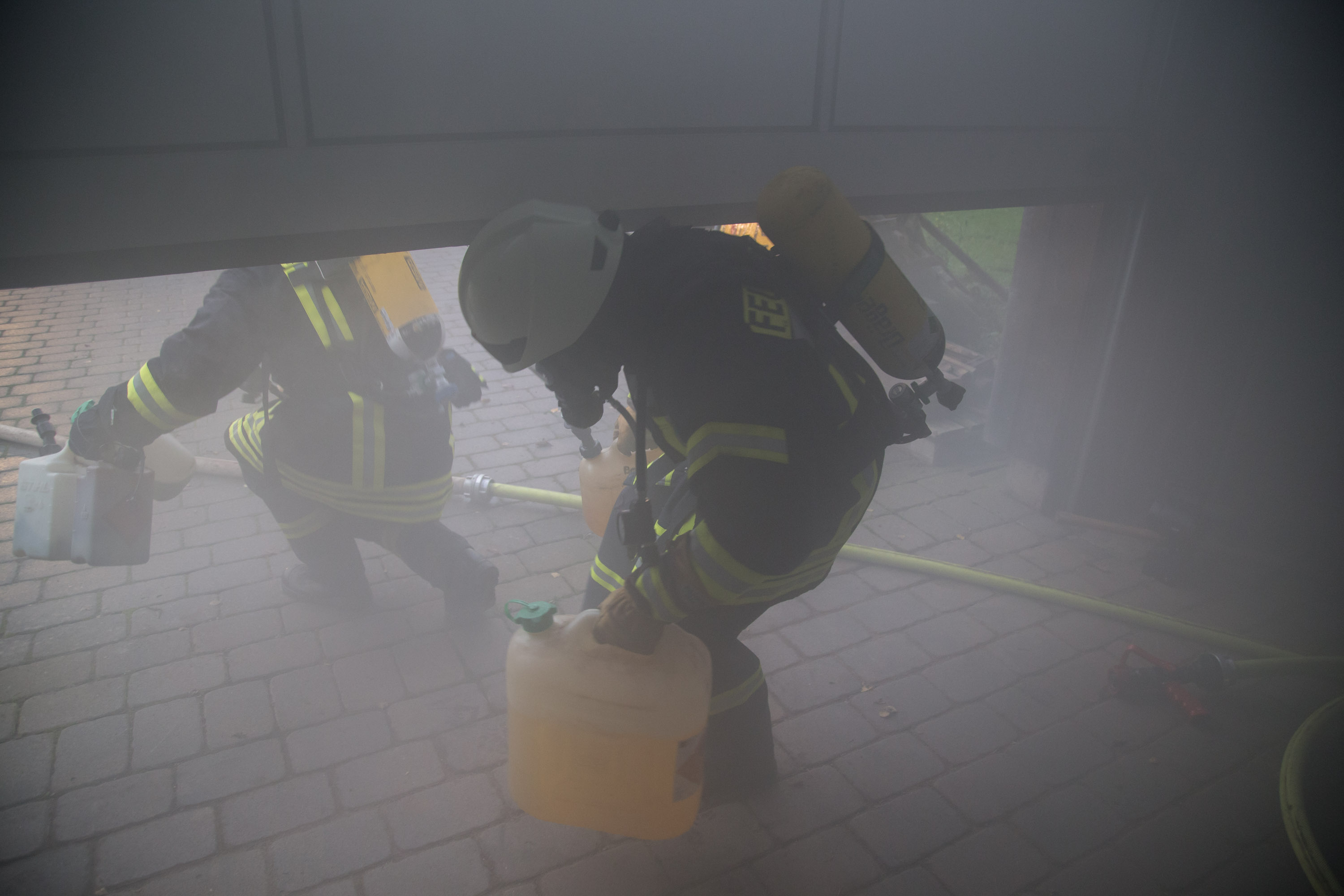 Das Szenario war eine Rauchentwicklung aus einer Lagerhalle der Gemeinde, es war unklar ob Personen in Gefahr sind.