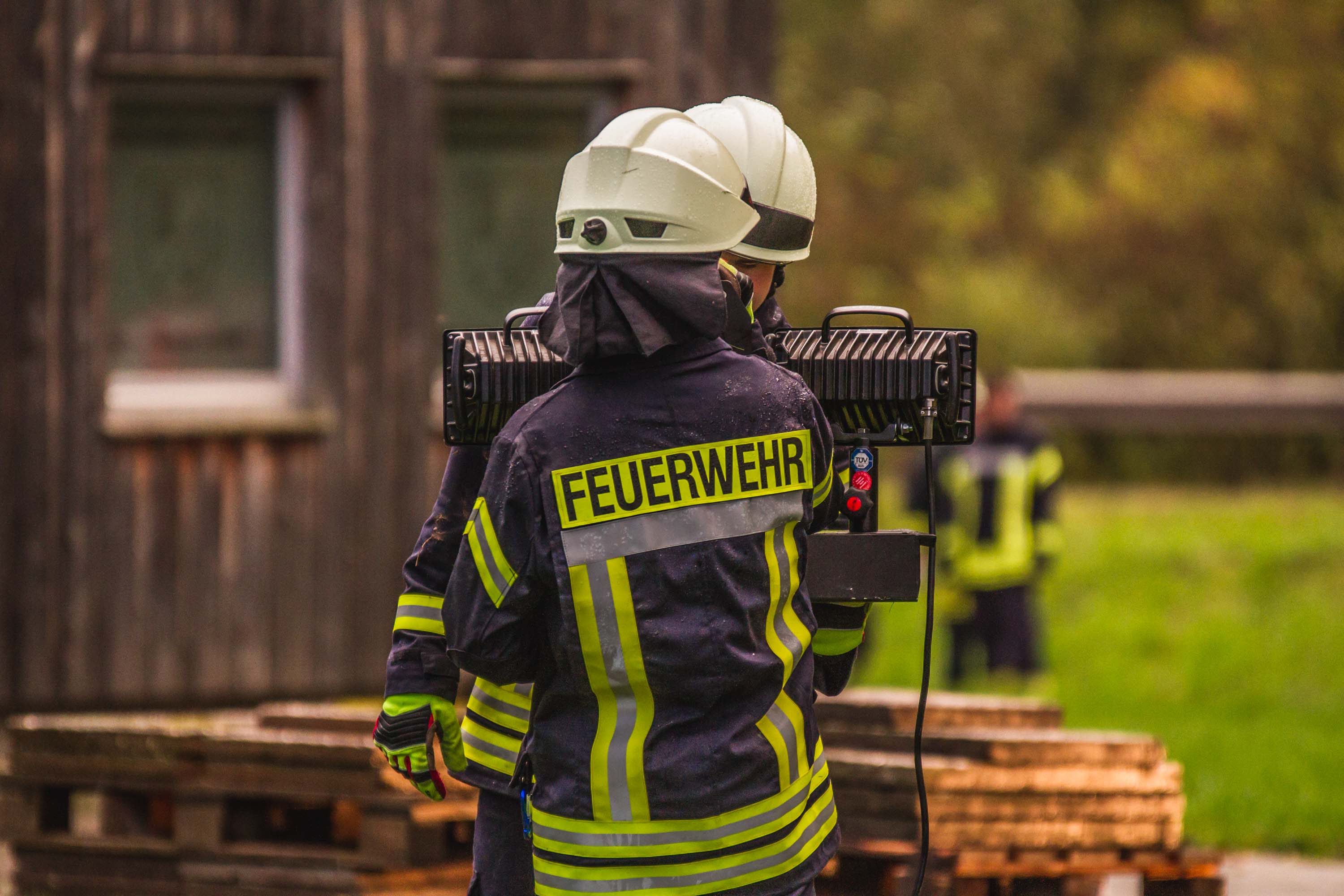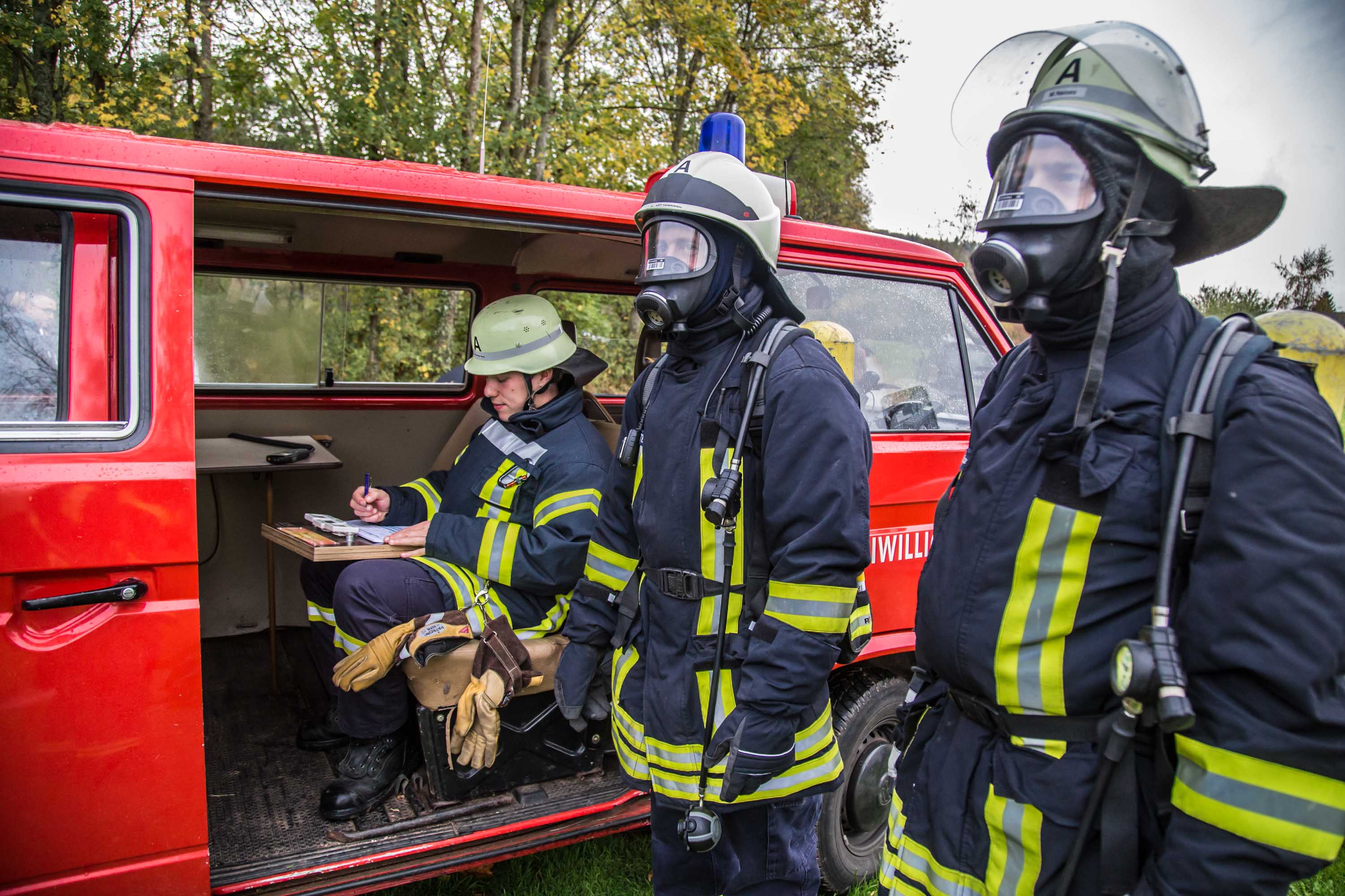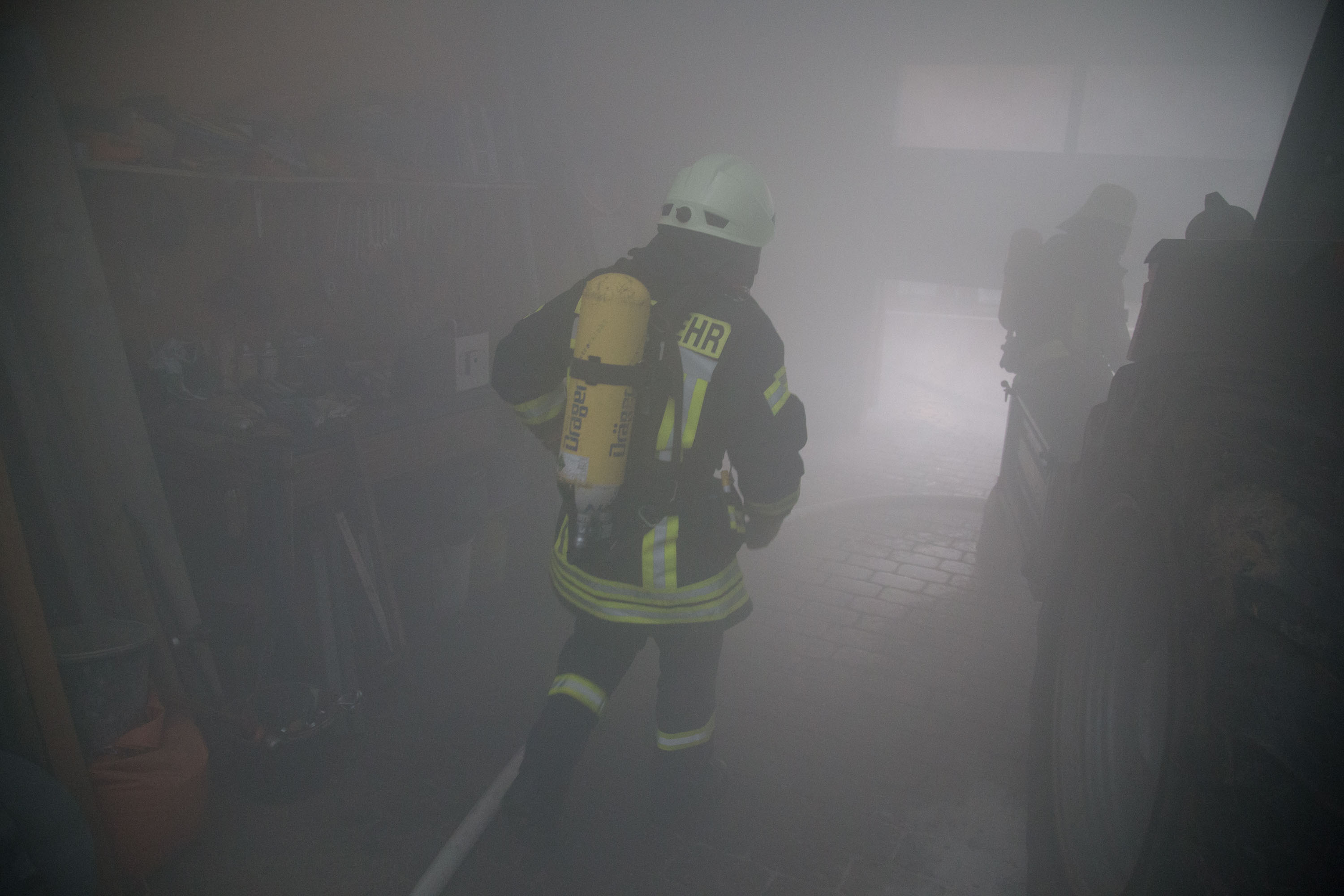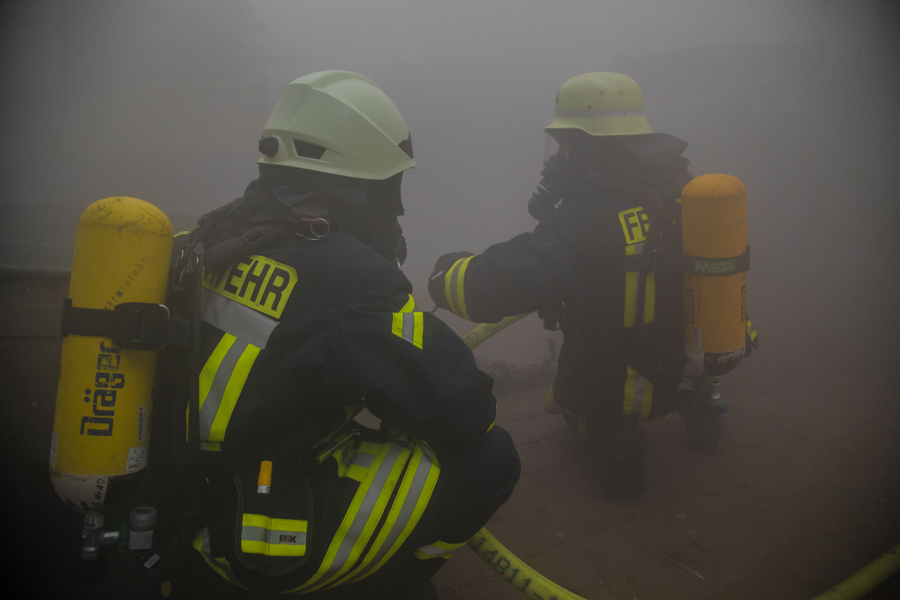 Das Szenario war eine Rauchentwicklung aus einer Lagerhalle der Gemeinde, es war unklar ob Personen in Gefahr sind.