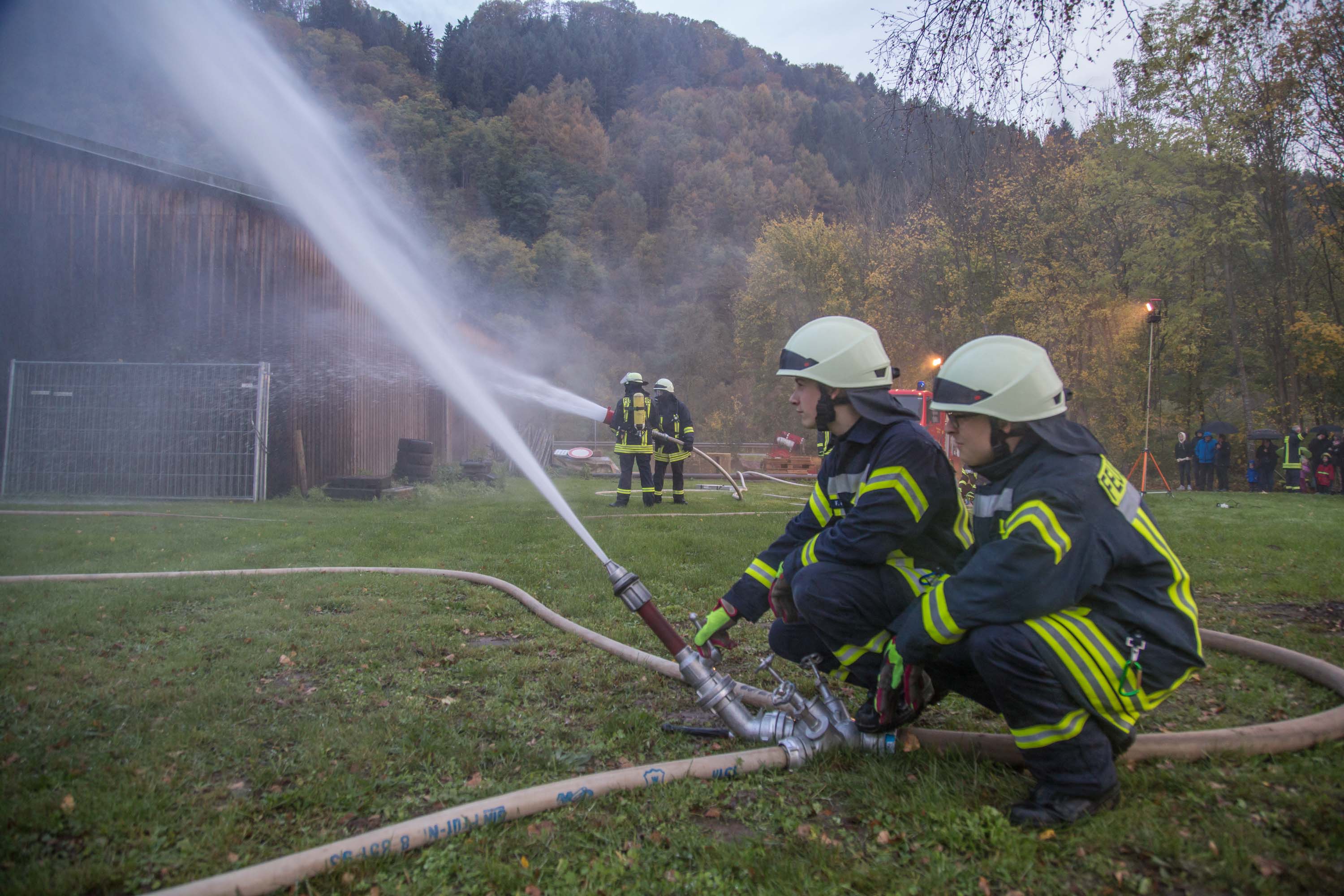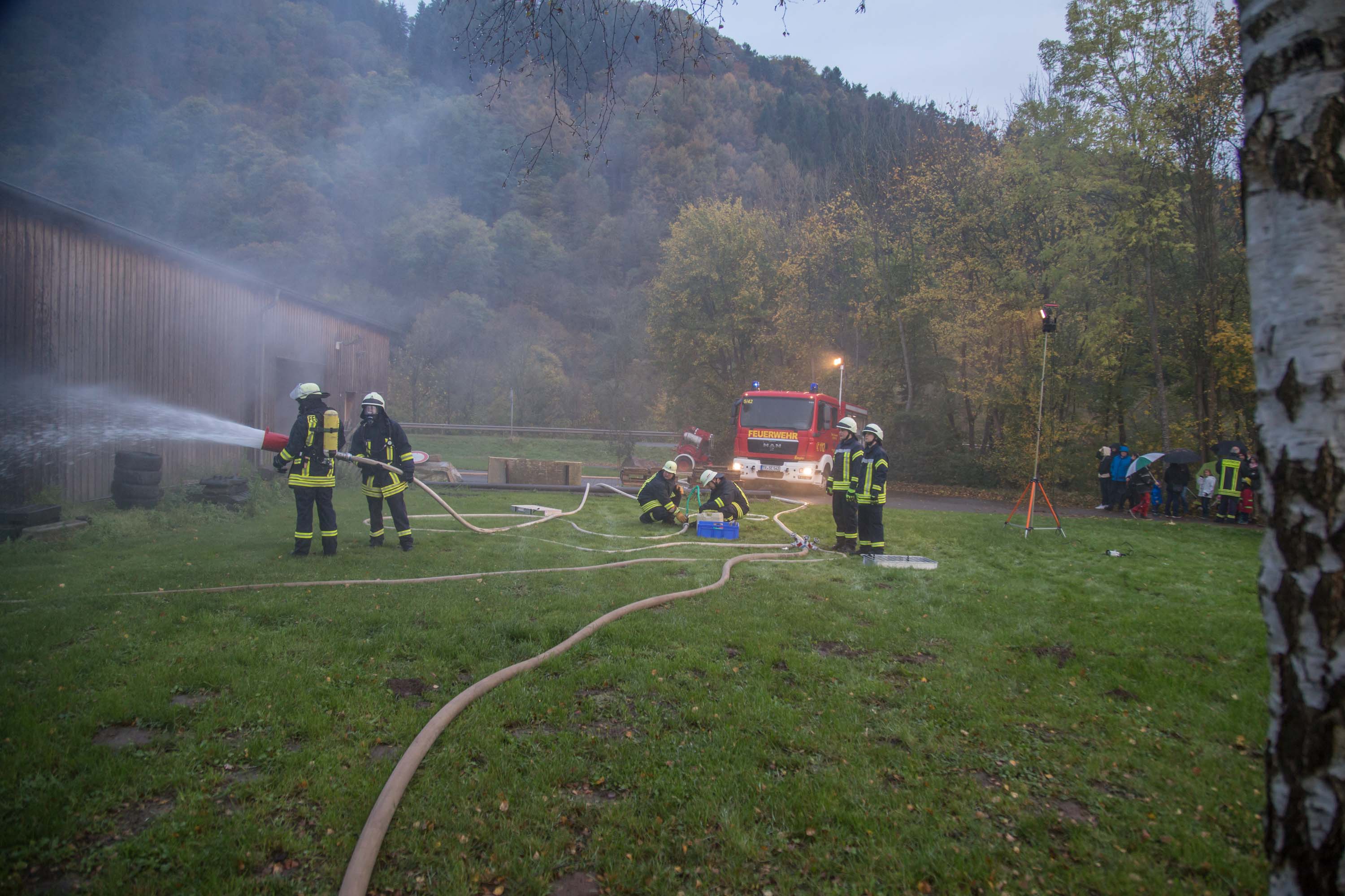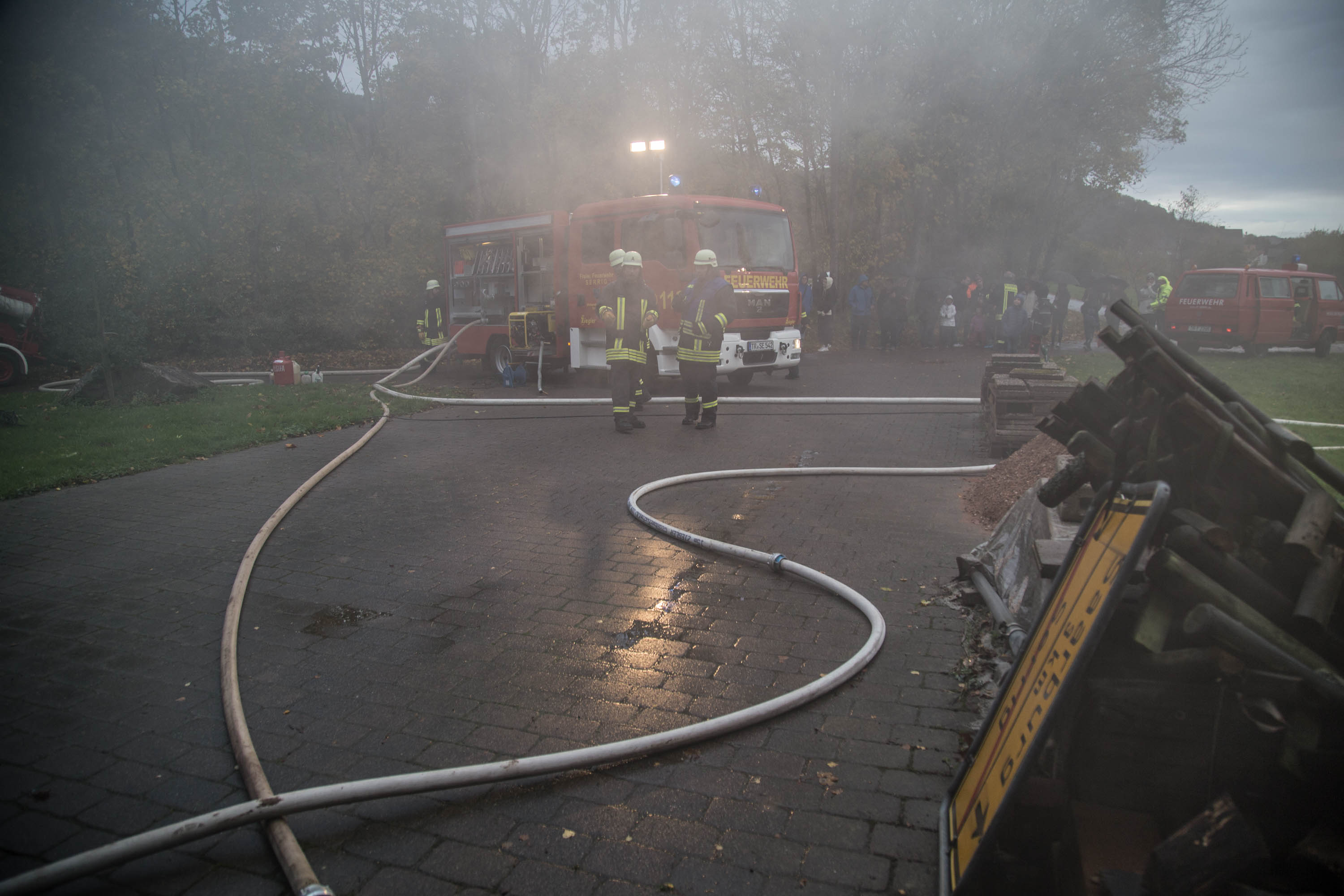Zahlreiche Zuschauer verfolgten die Übung trotz leichten Regens. Der Wehrführer der Feuerwehr Serrig, Reinhard Breidt, moderierte die Übung und erklärte den Zuschauern die Vorgehensweise der Feuerwehr genau.