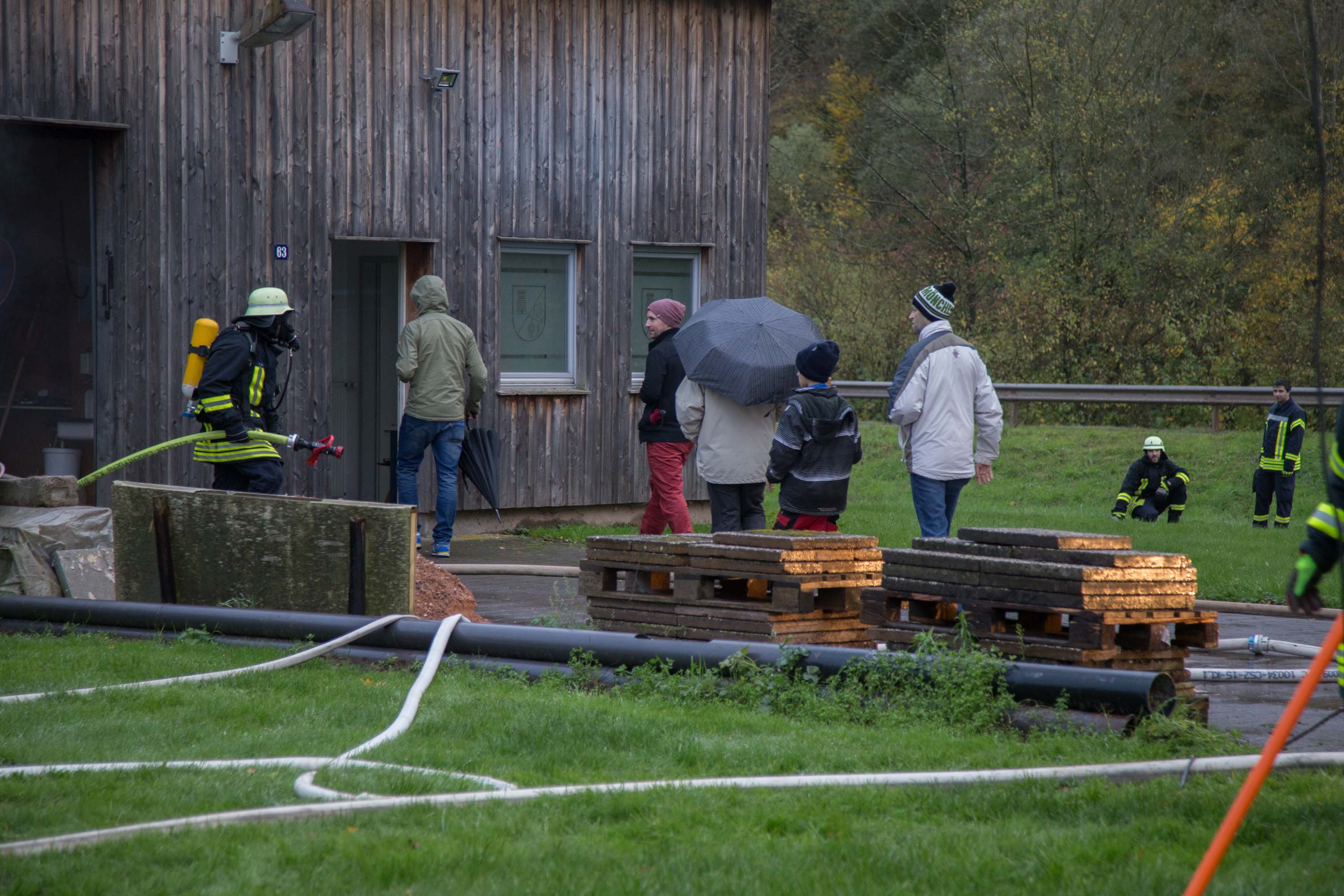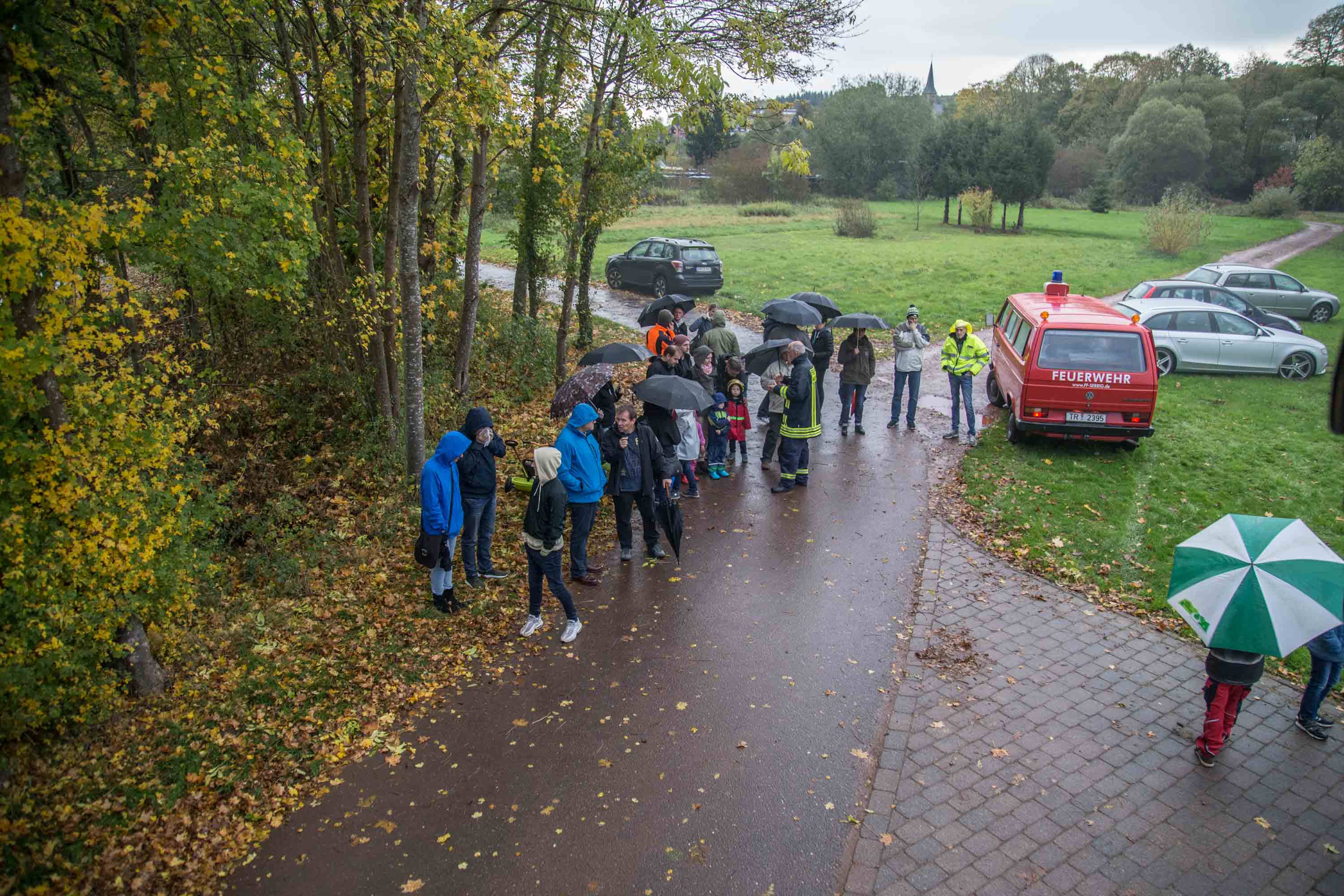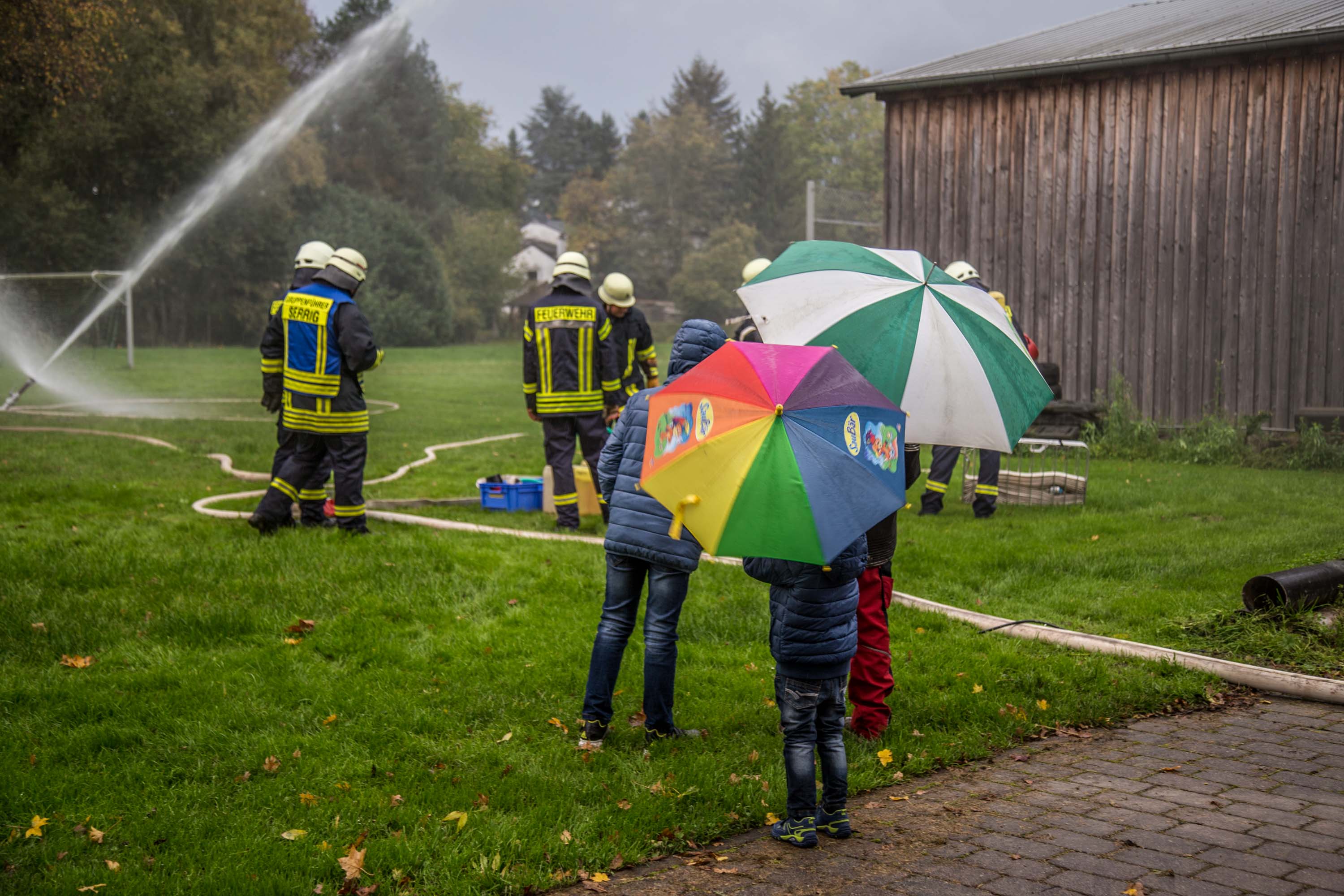 Zahlreiche Zuschauer verfolgten die Übung trotz leichten Regens. Der Wehrführer der Feuerwehr Serrig, Reinhard Breidt, moderierte die Übung und erklärte den Zuschauern die Vorgehensweise der Feuerwehr genau.